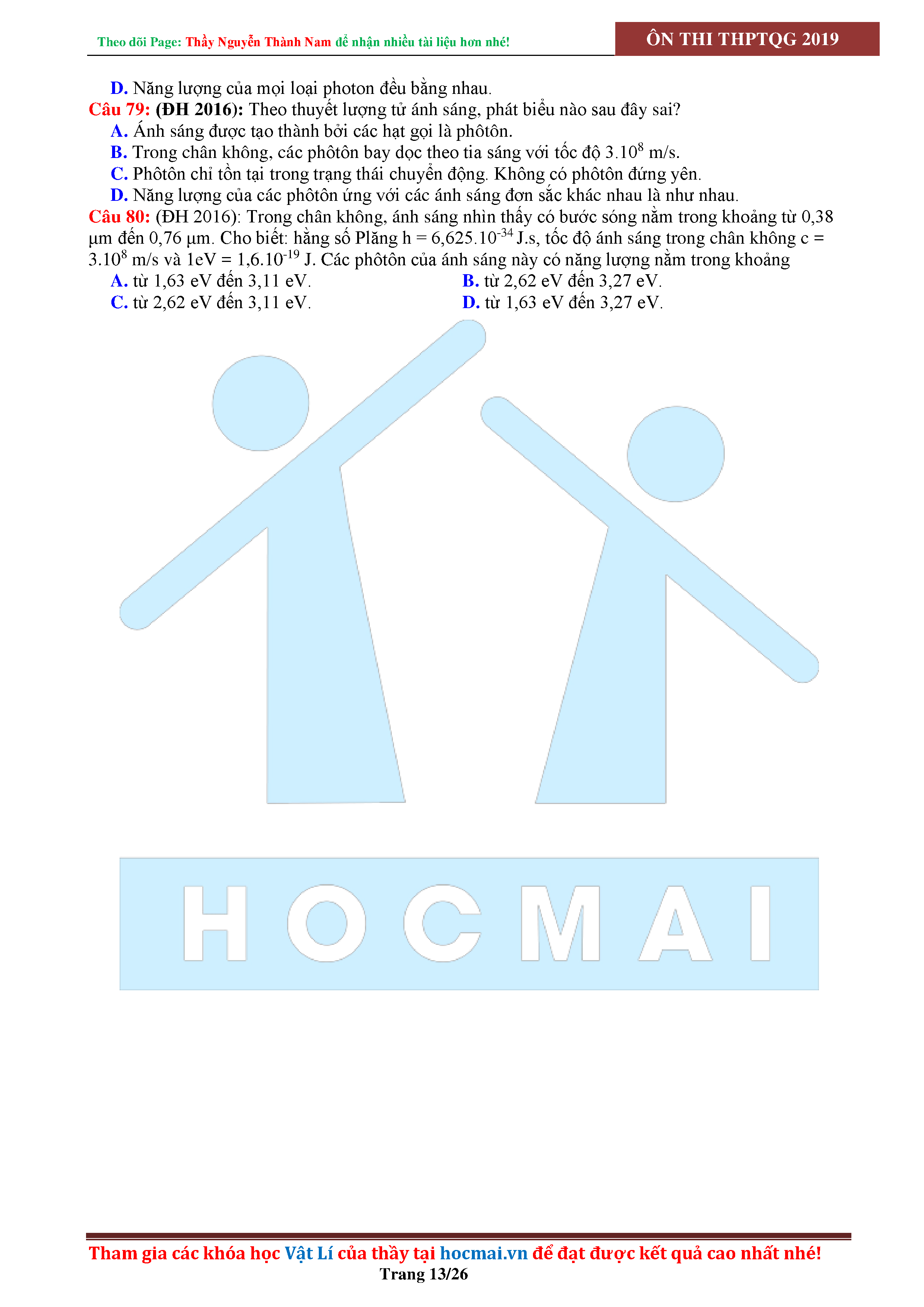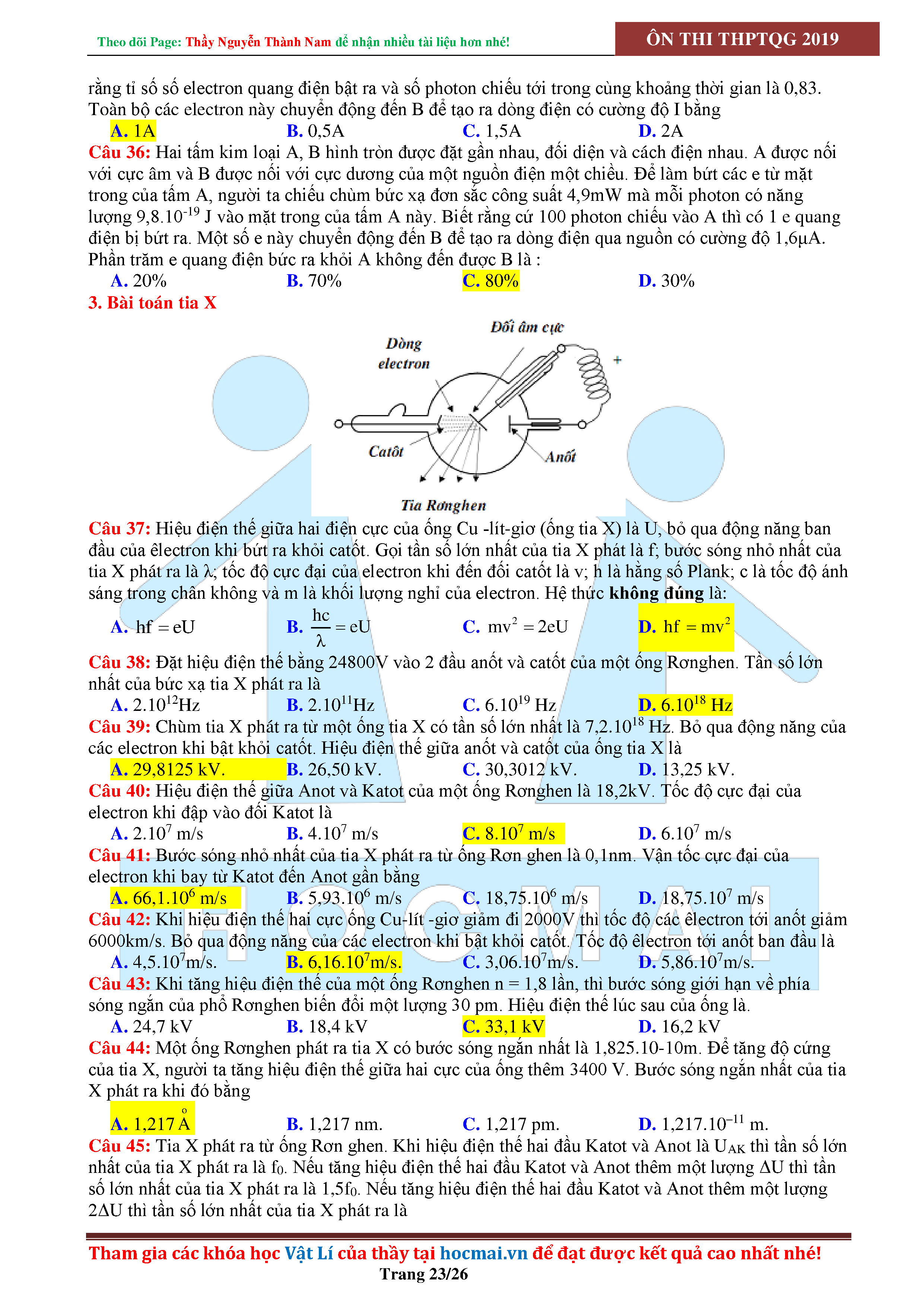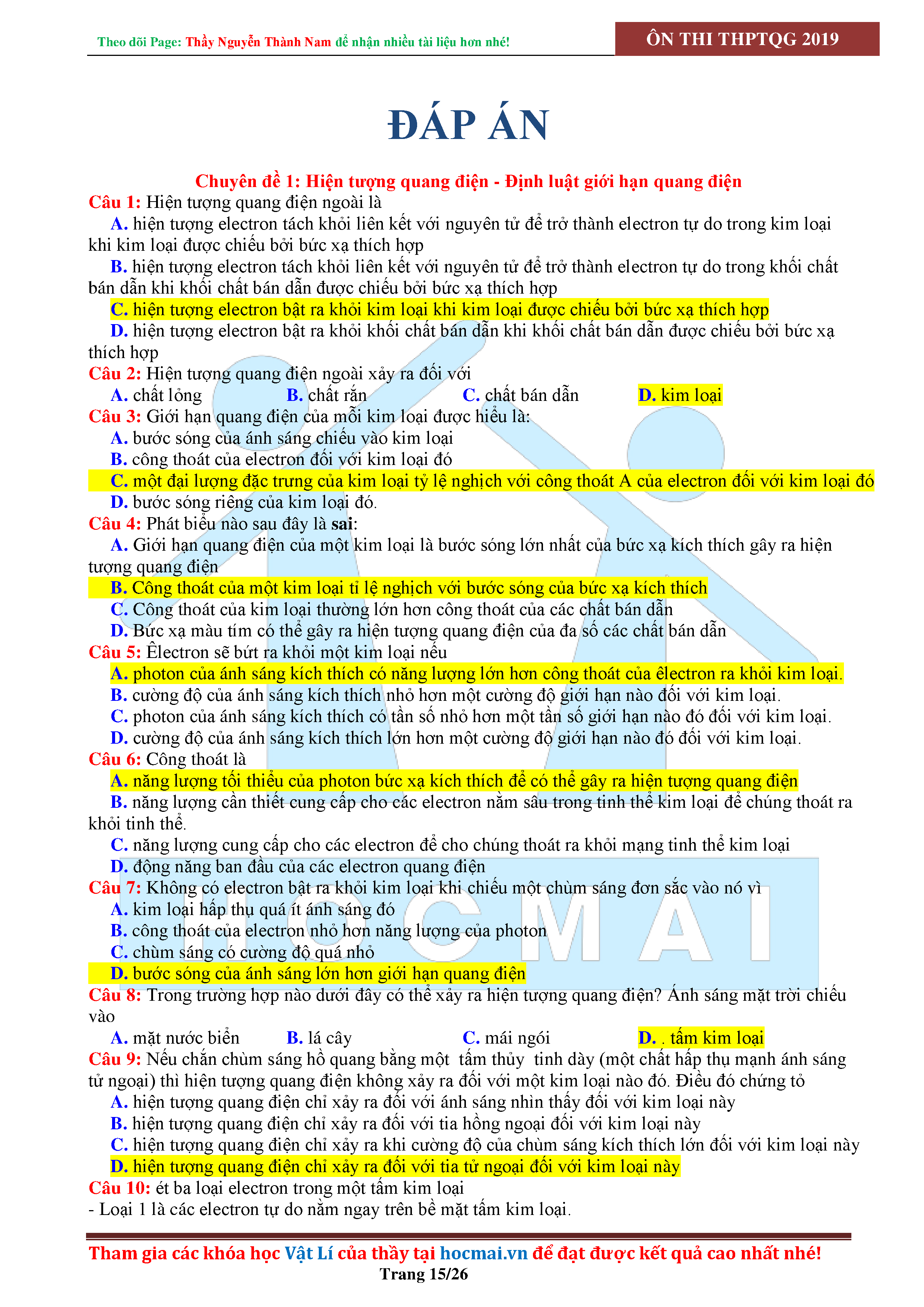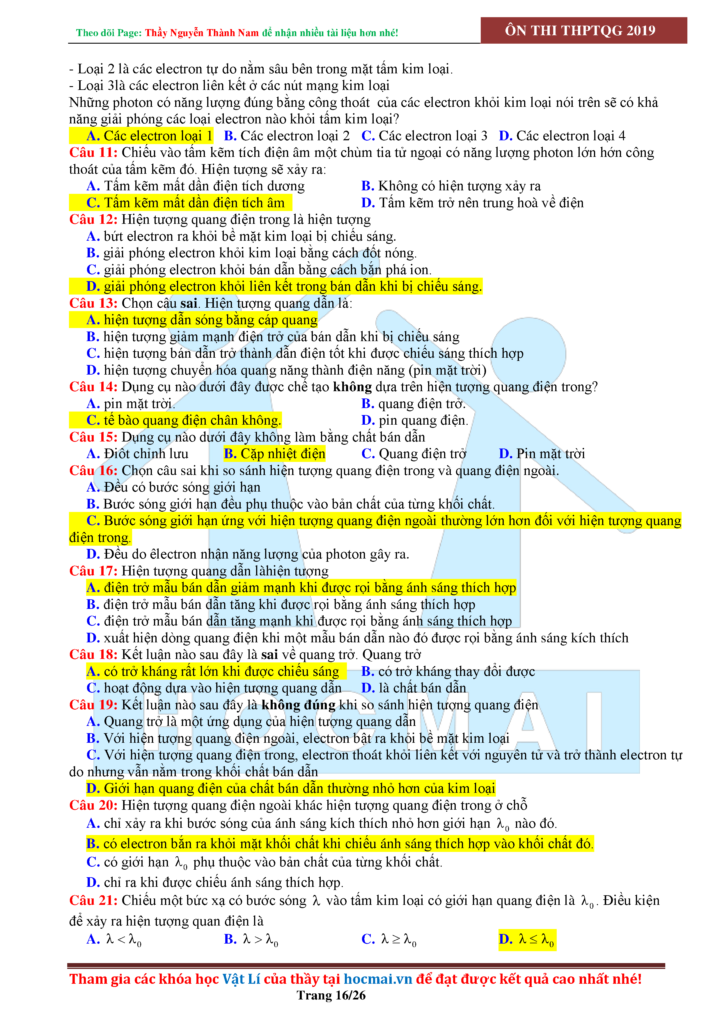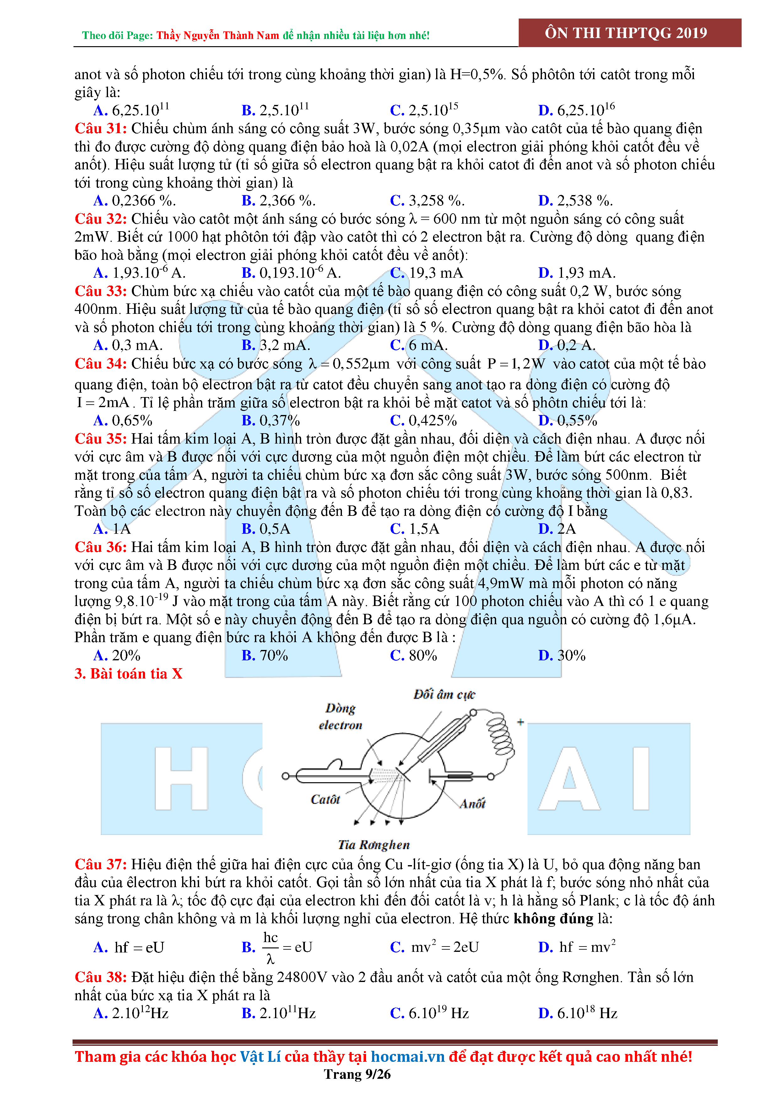 + Hệ thống các câu hỏi về lý thuyết lượng tử ánh sáng (bao gồm cả lý thuyết cơ bản và vận dụng)