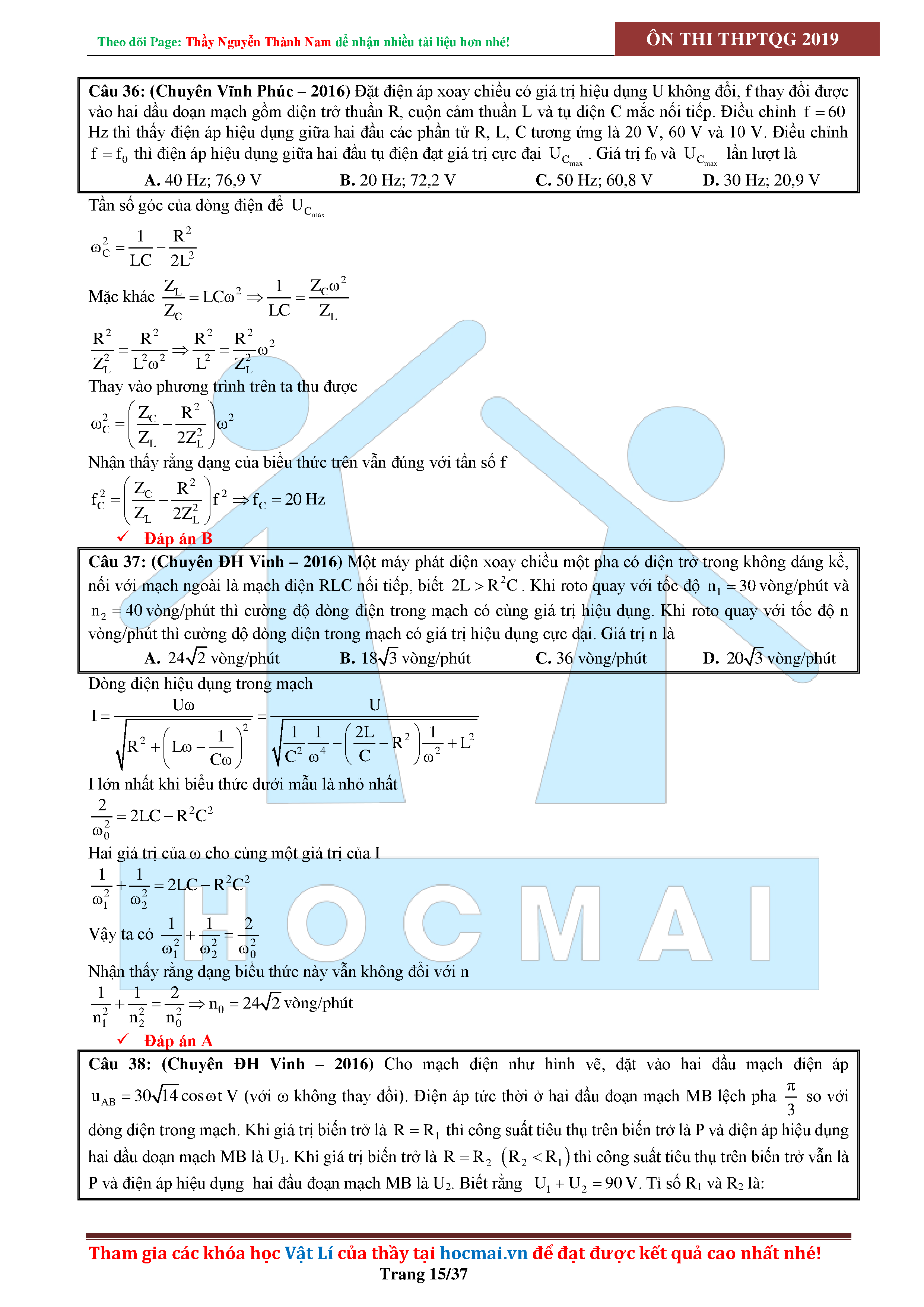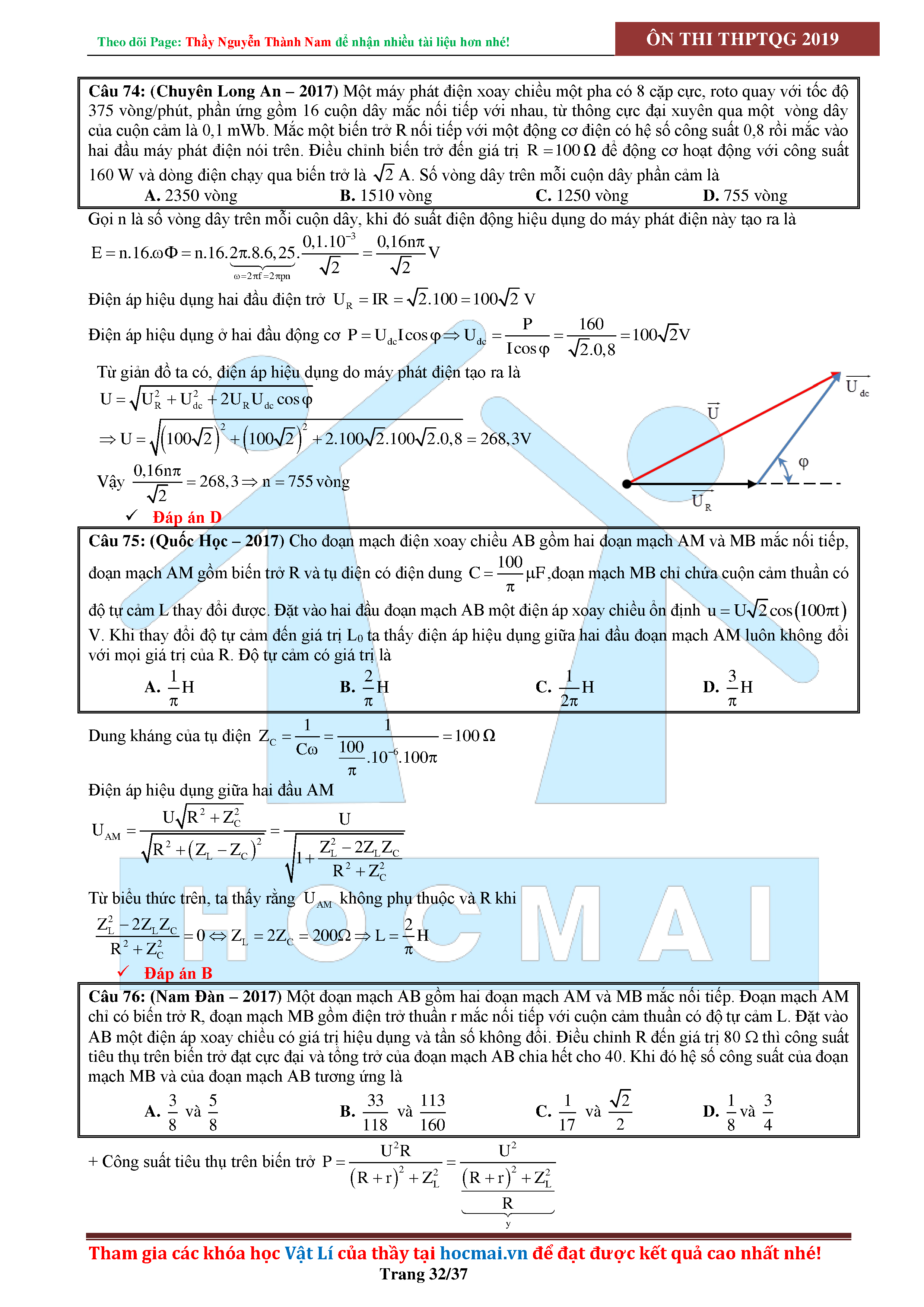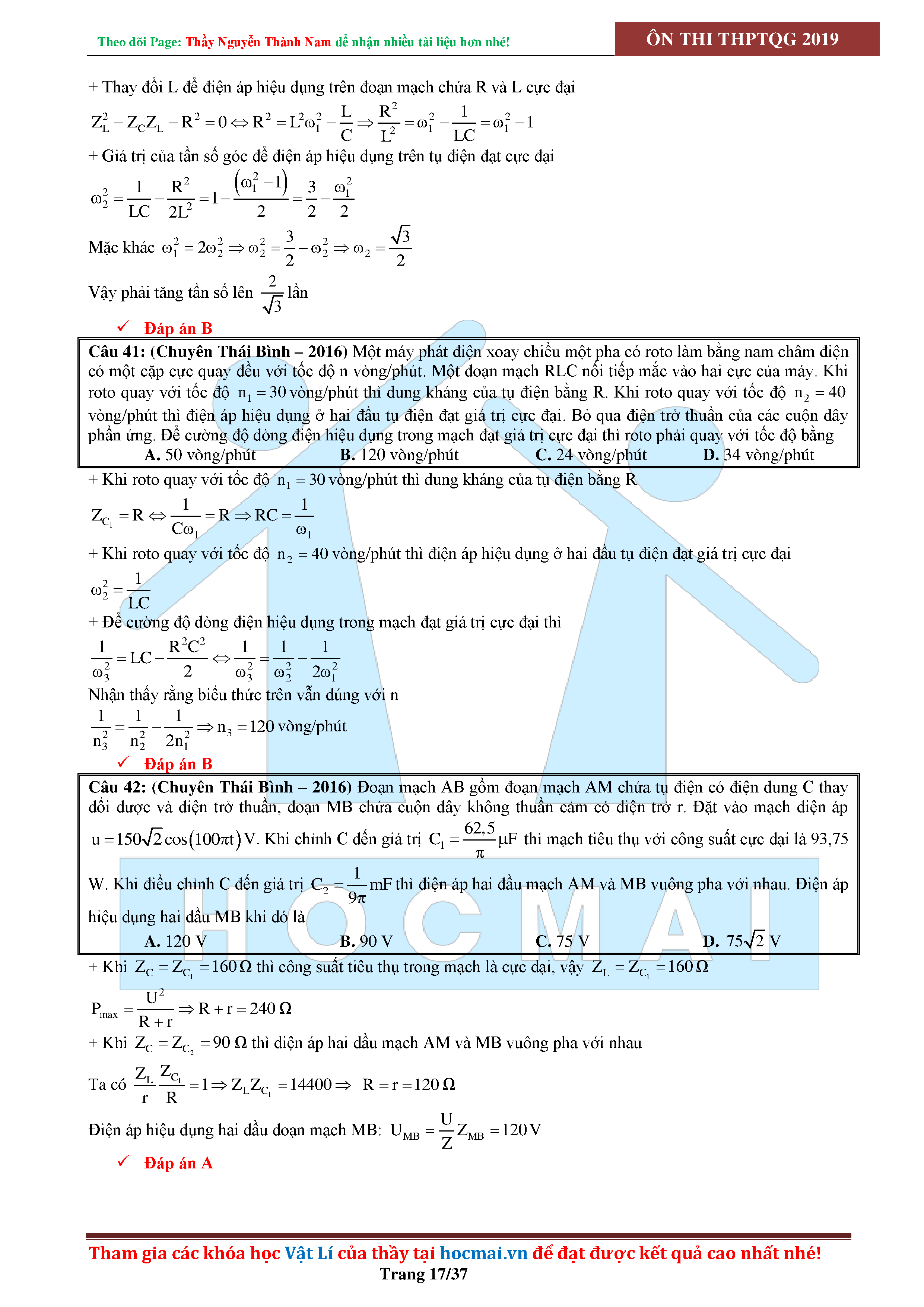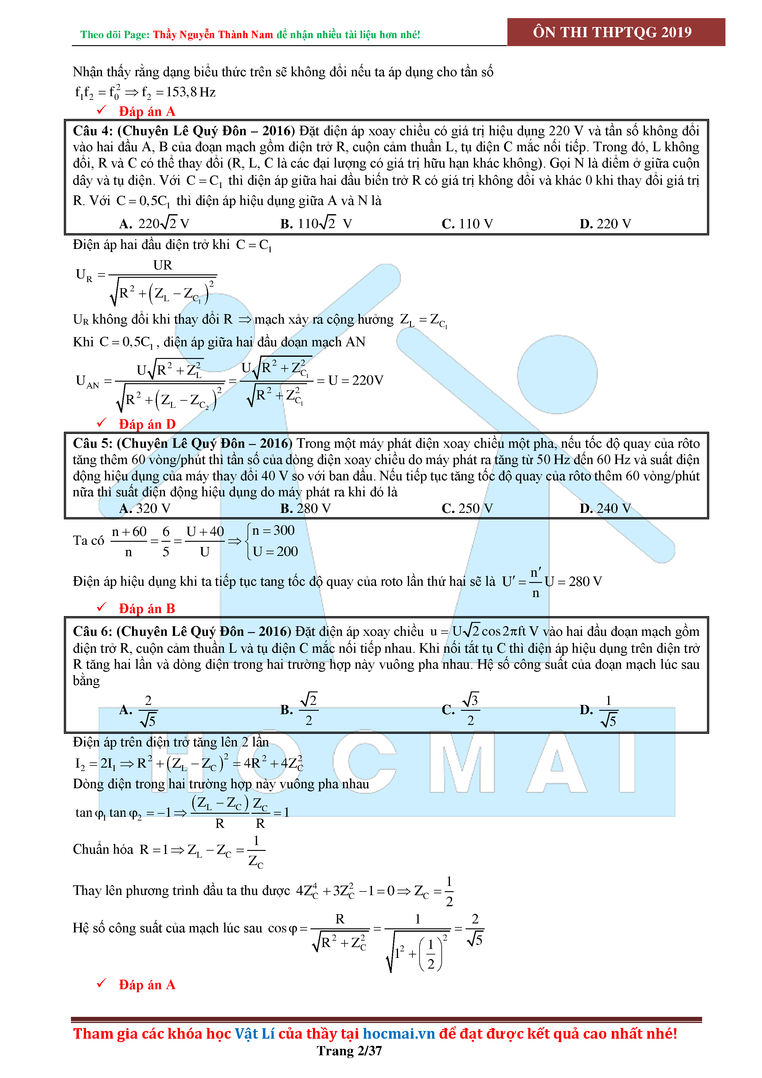 Trắc nghiệm nâng cao điện xoay chiều có lời giải chi tiết