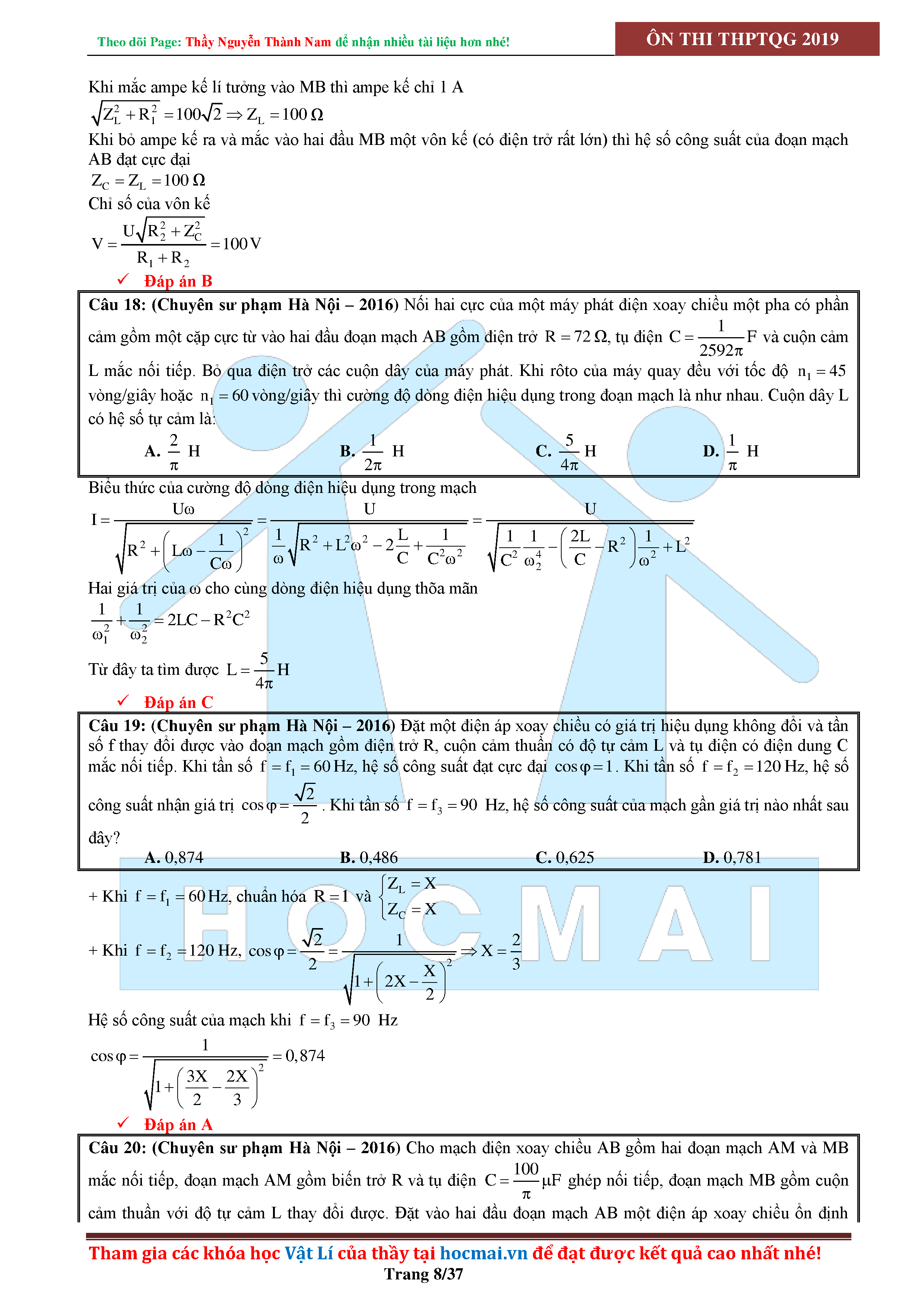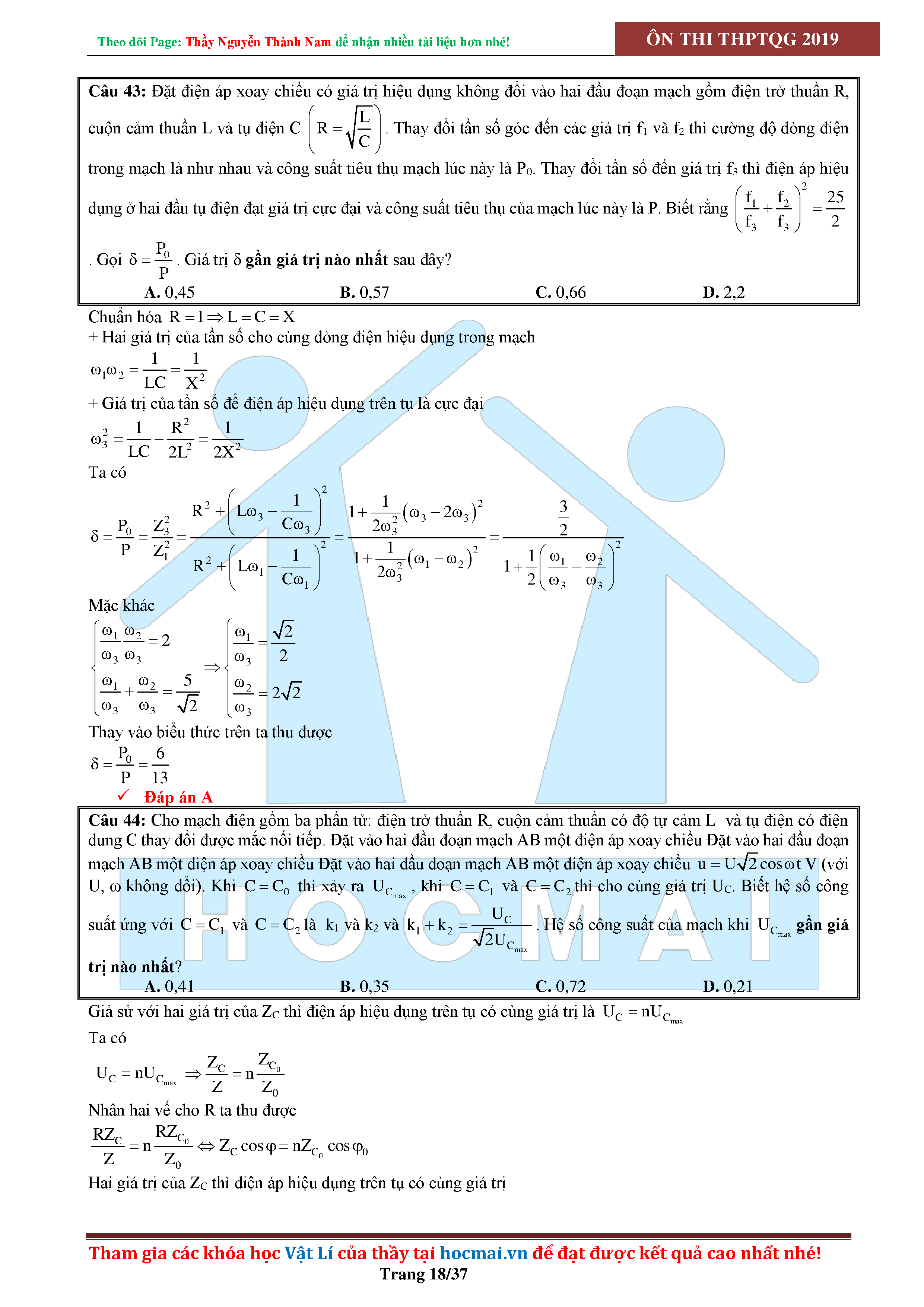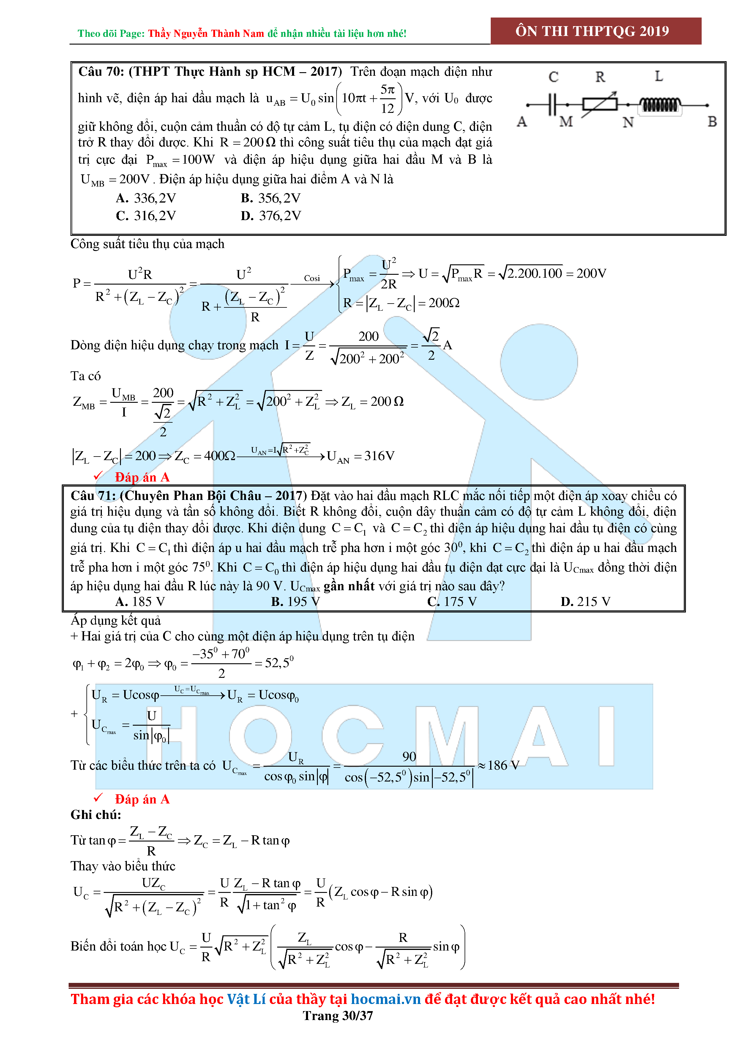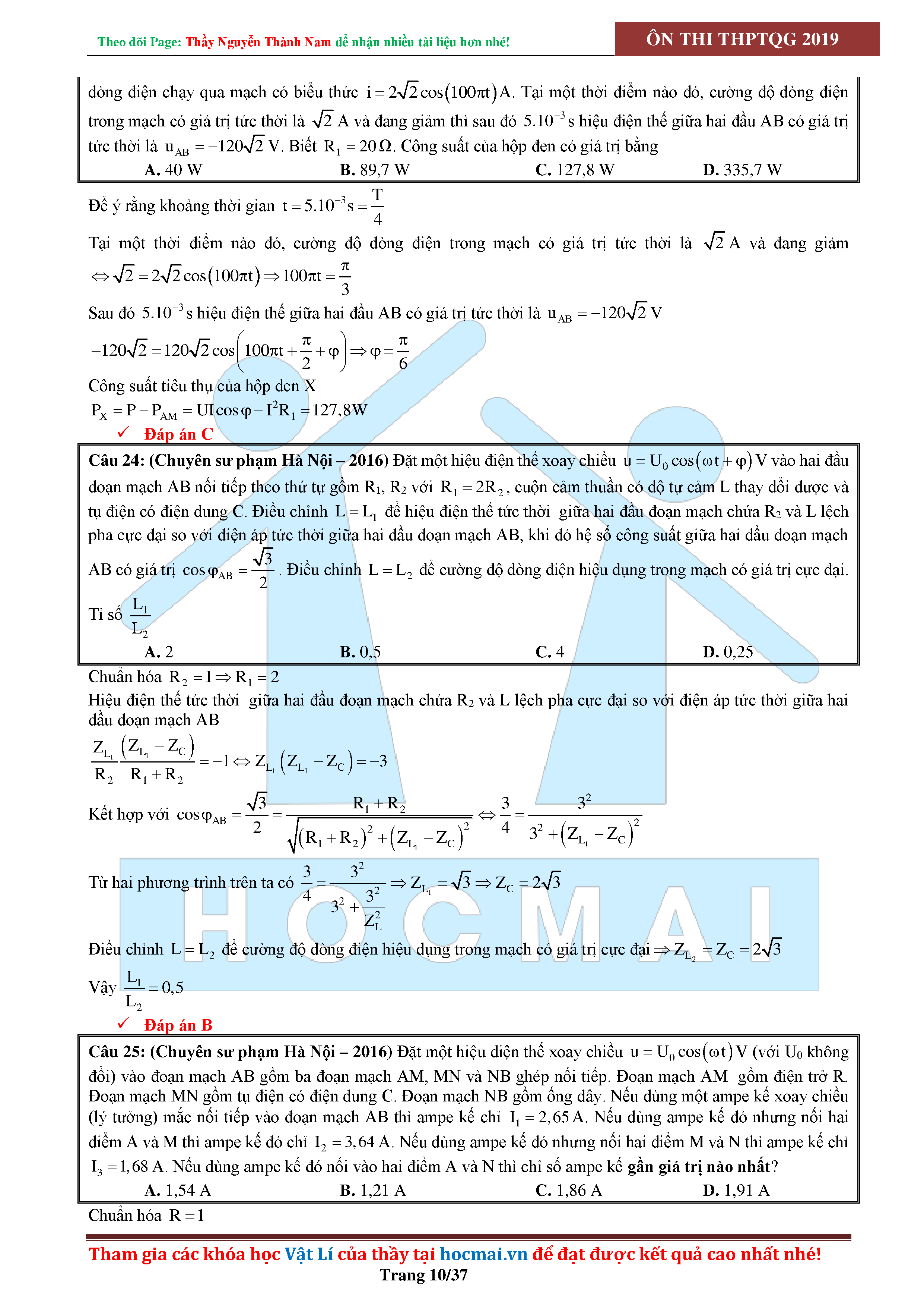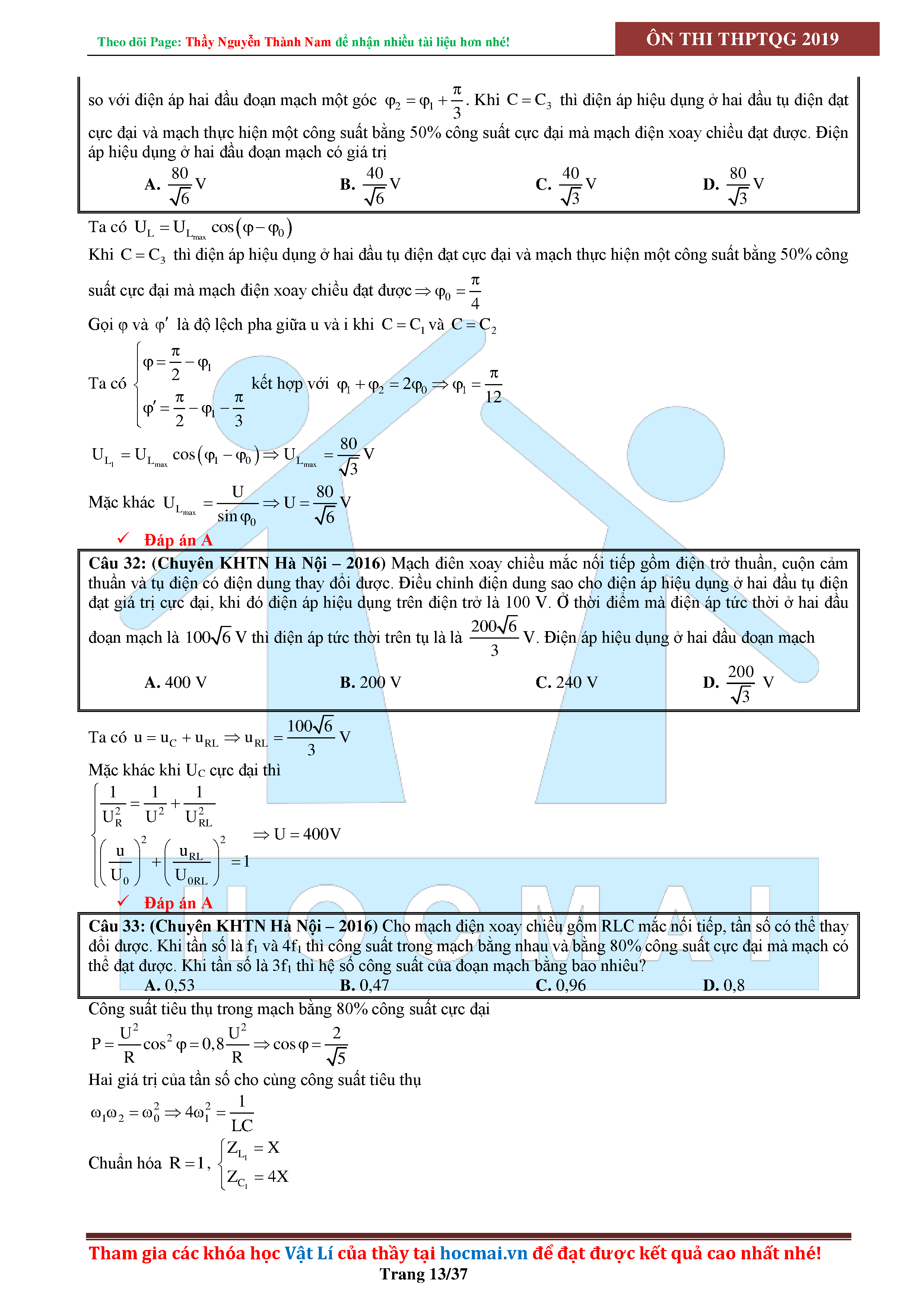 Trắc nghiệm nâng cao điện xoay chiều có lời giải chi tiết