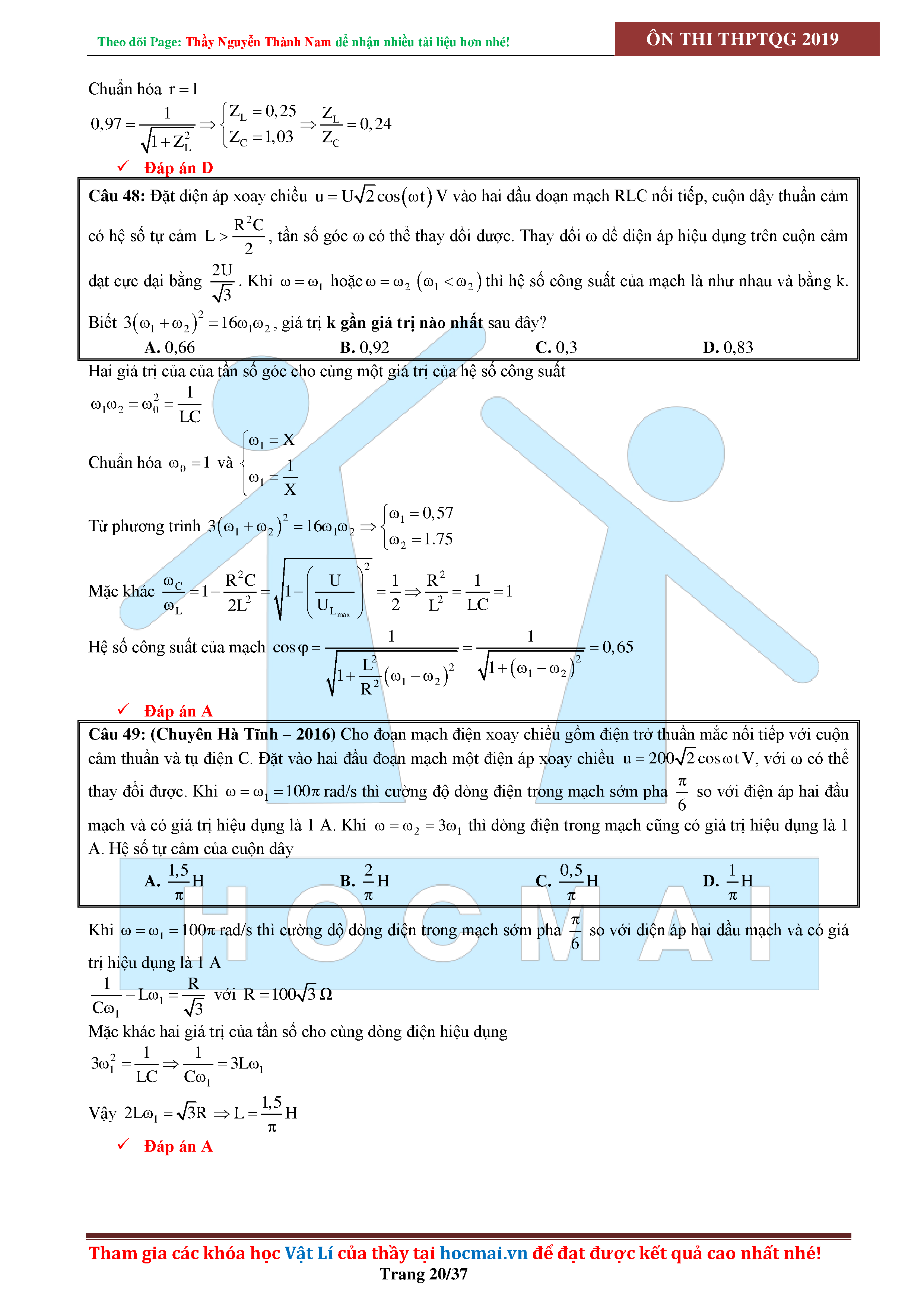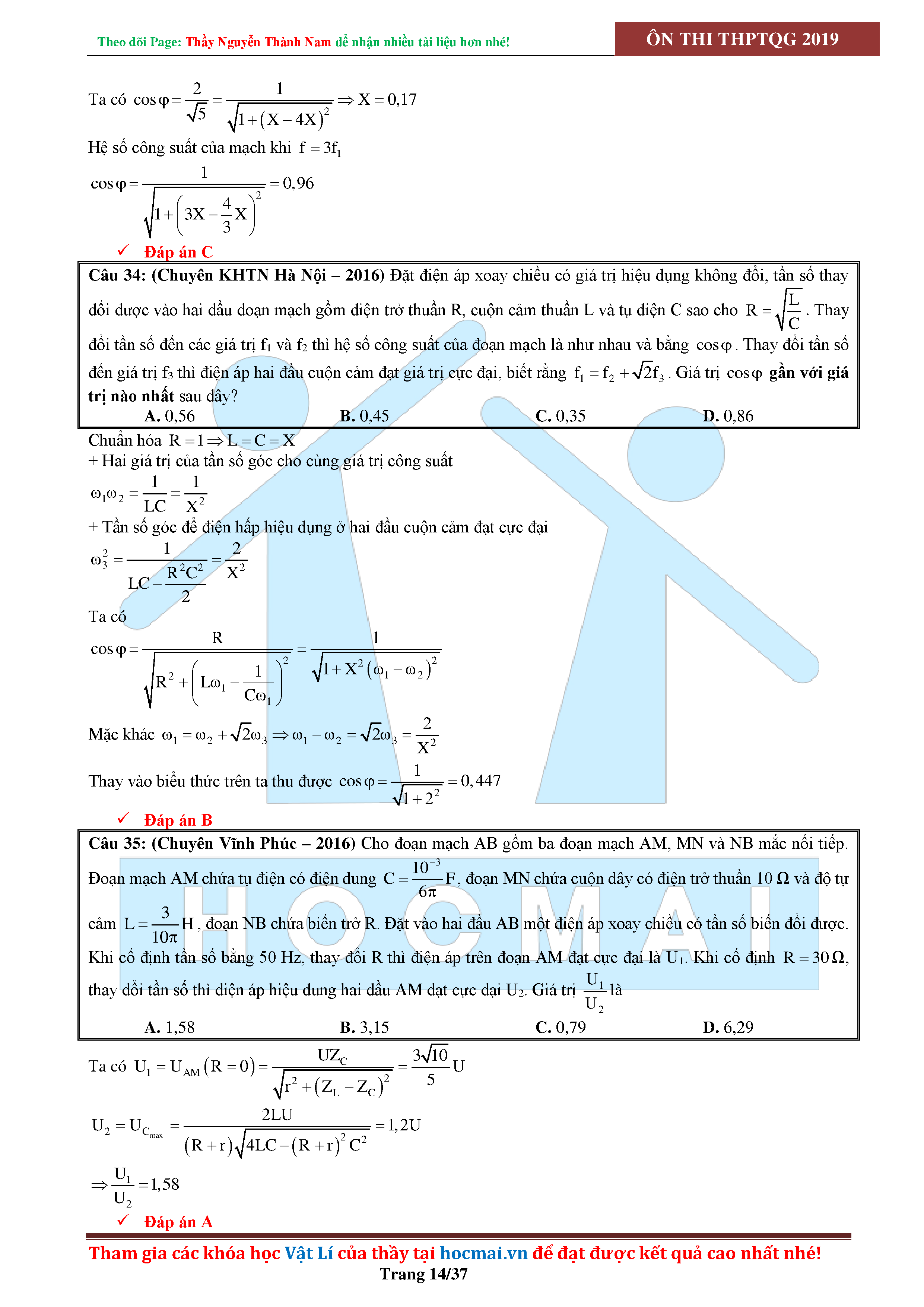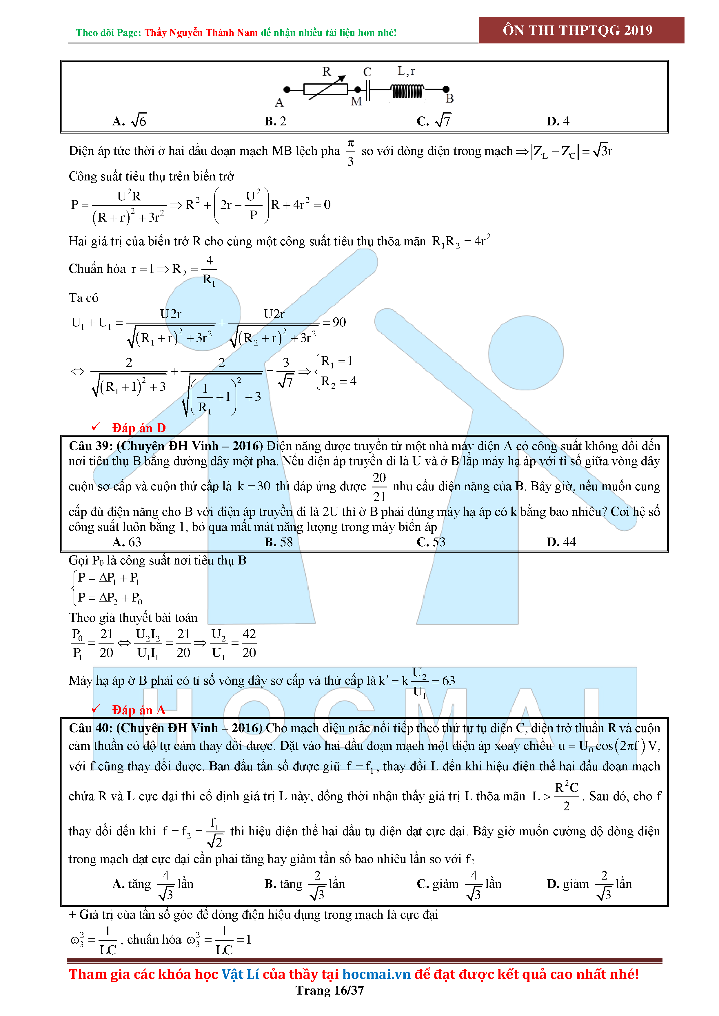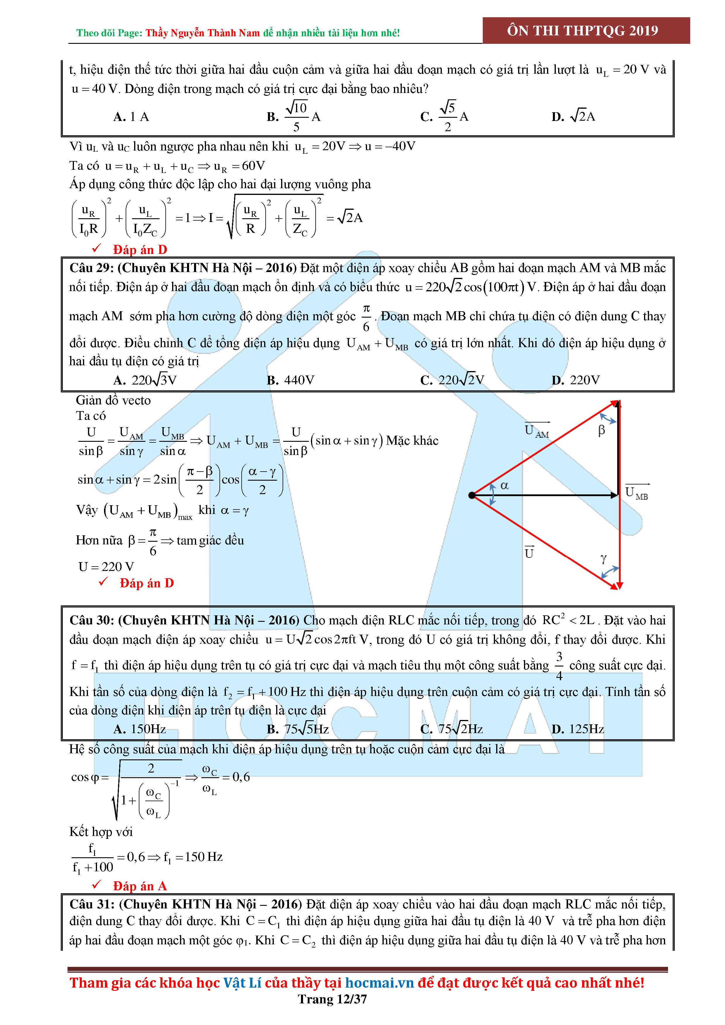 Trắc nghiệm nâng cao điện xoay chiều có lời giải chi tiết