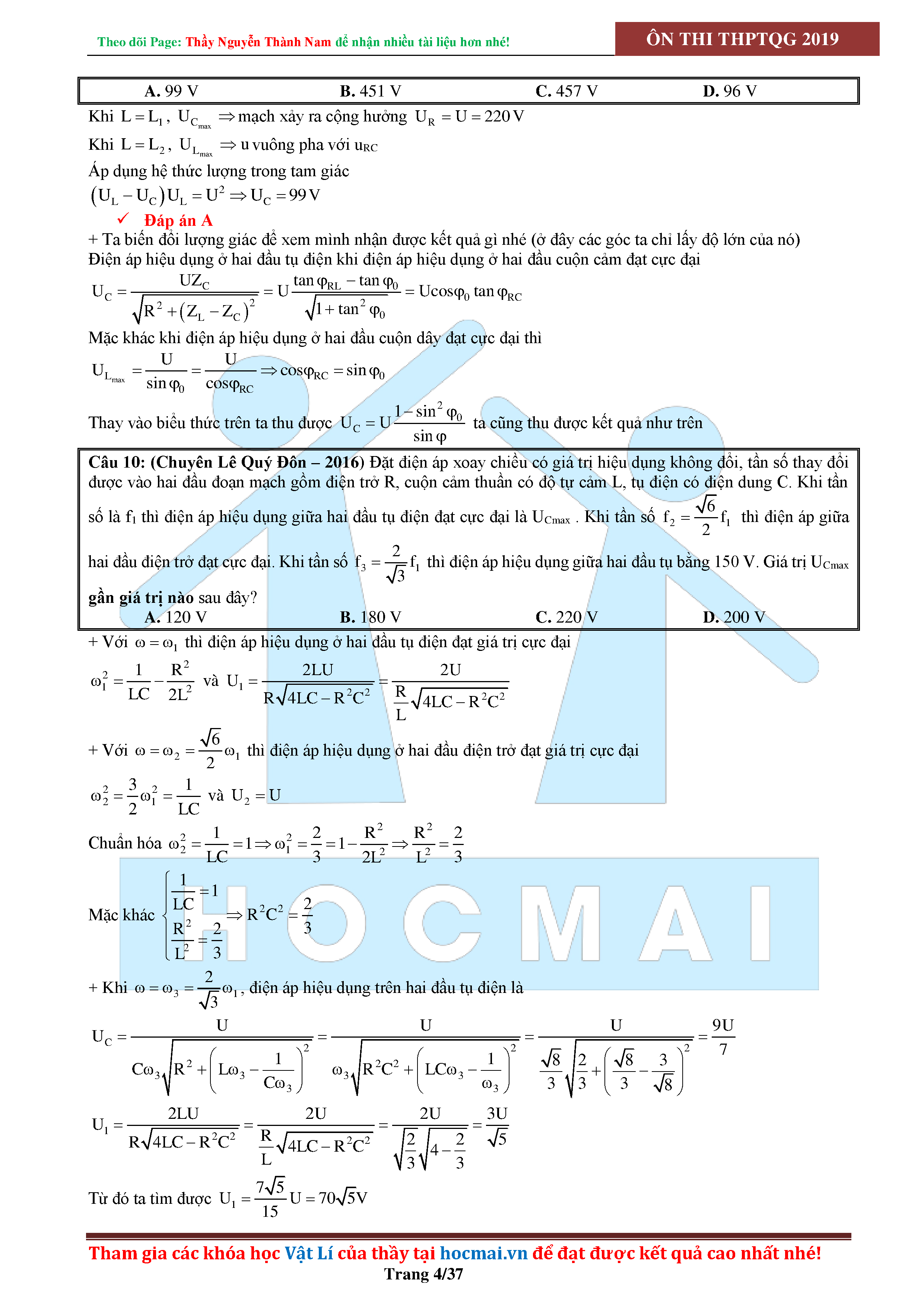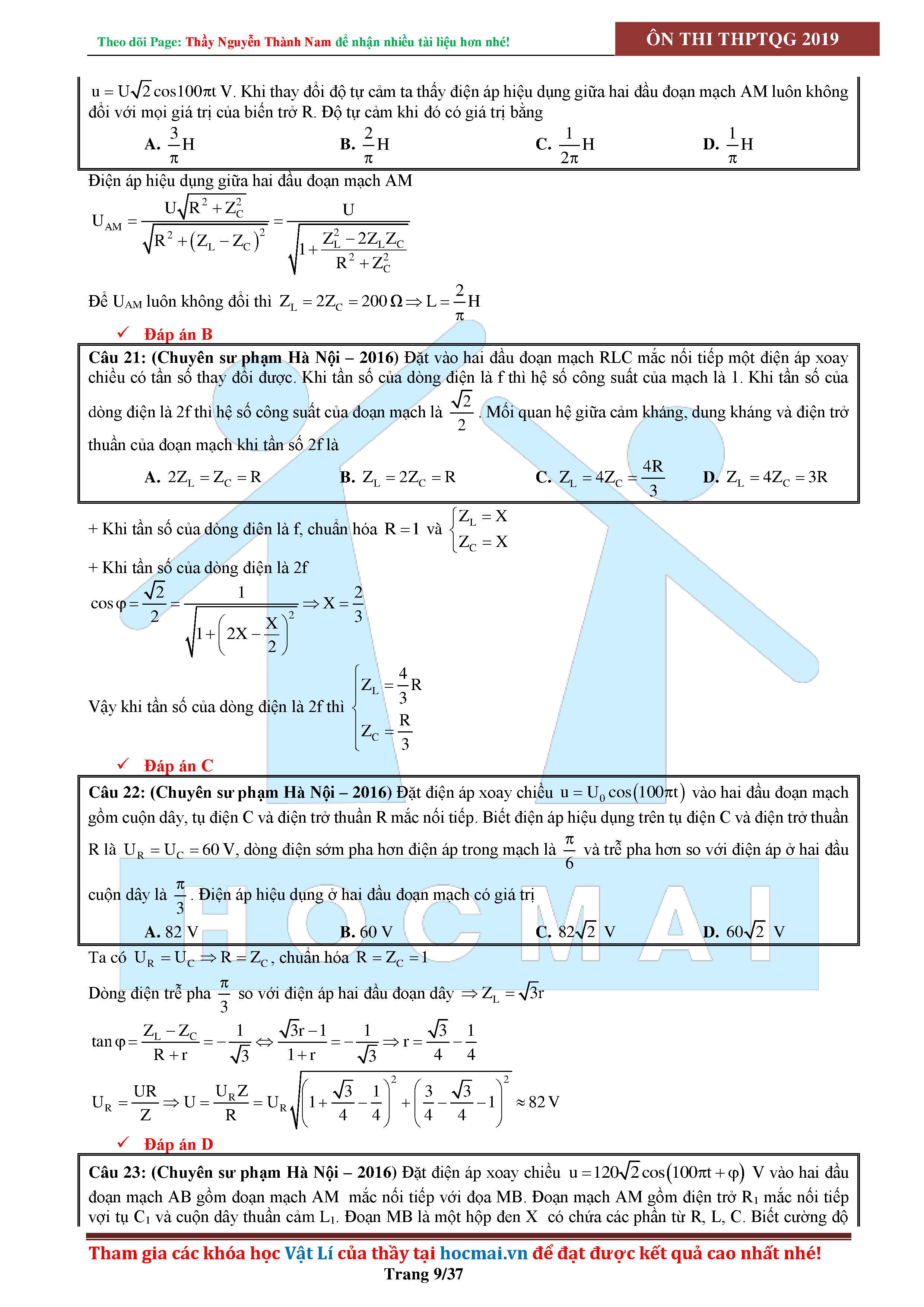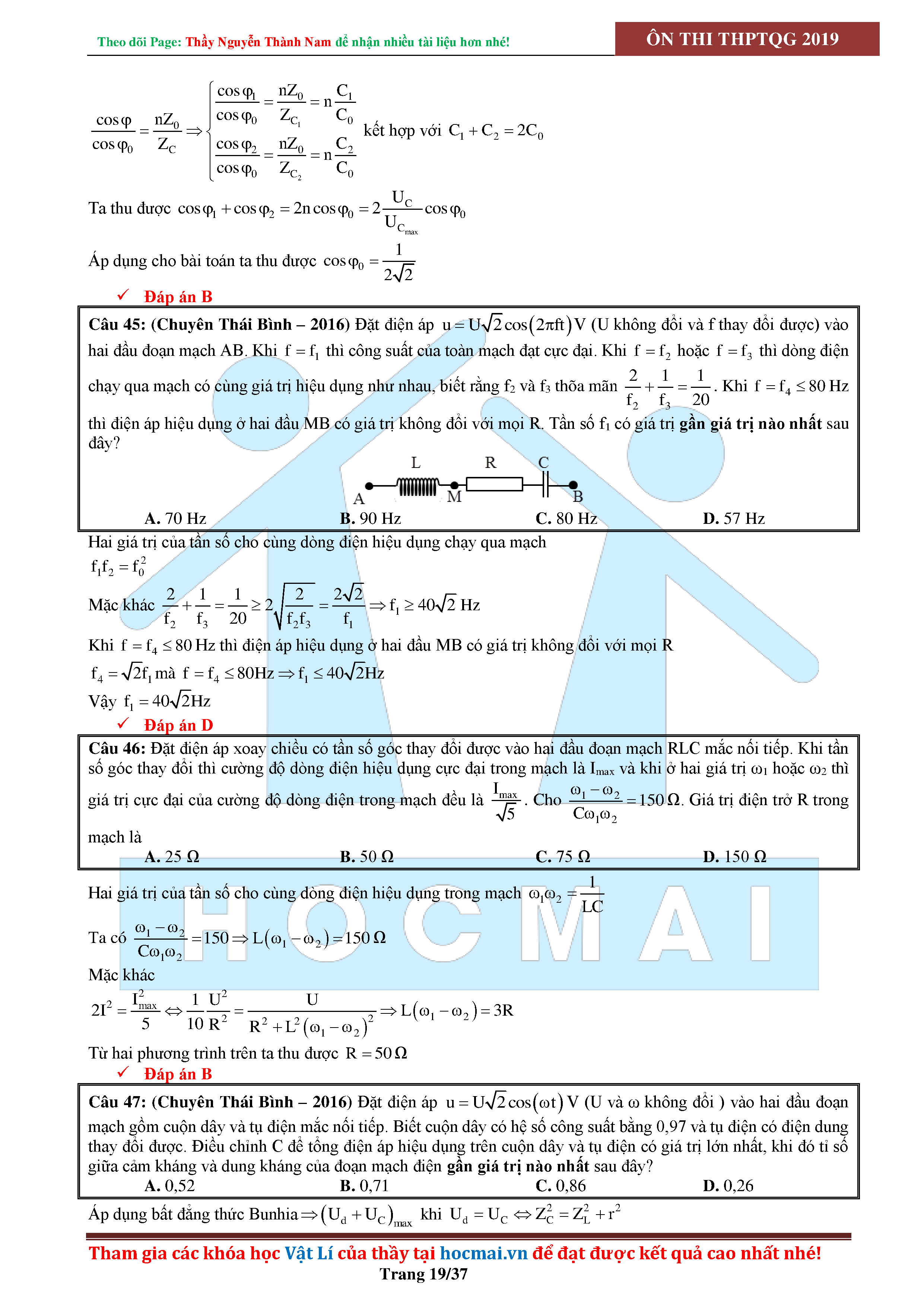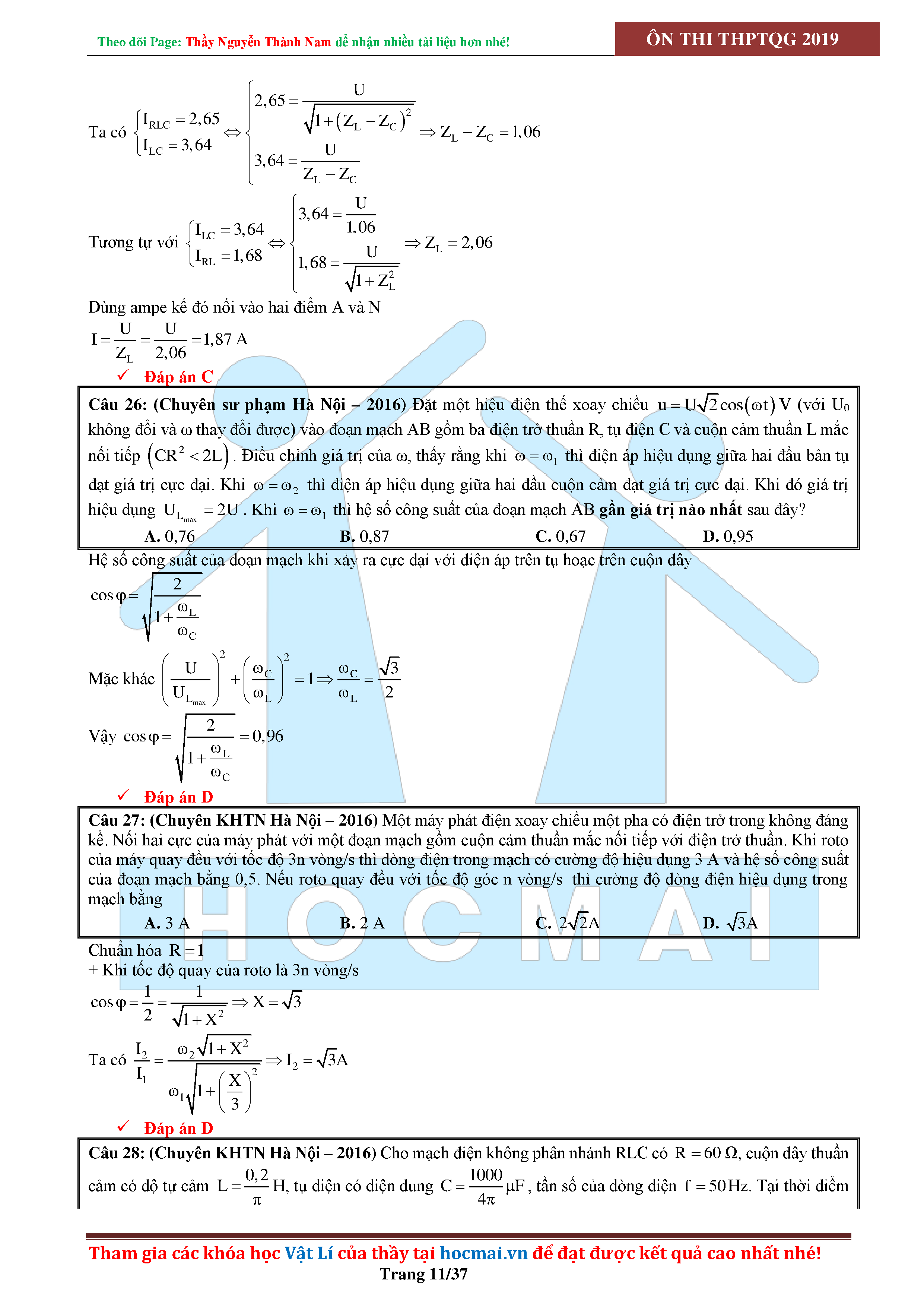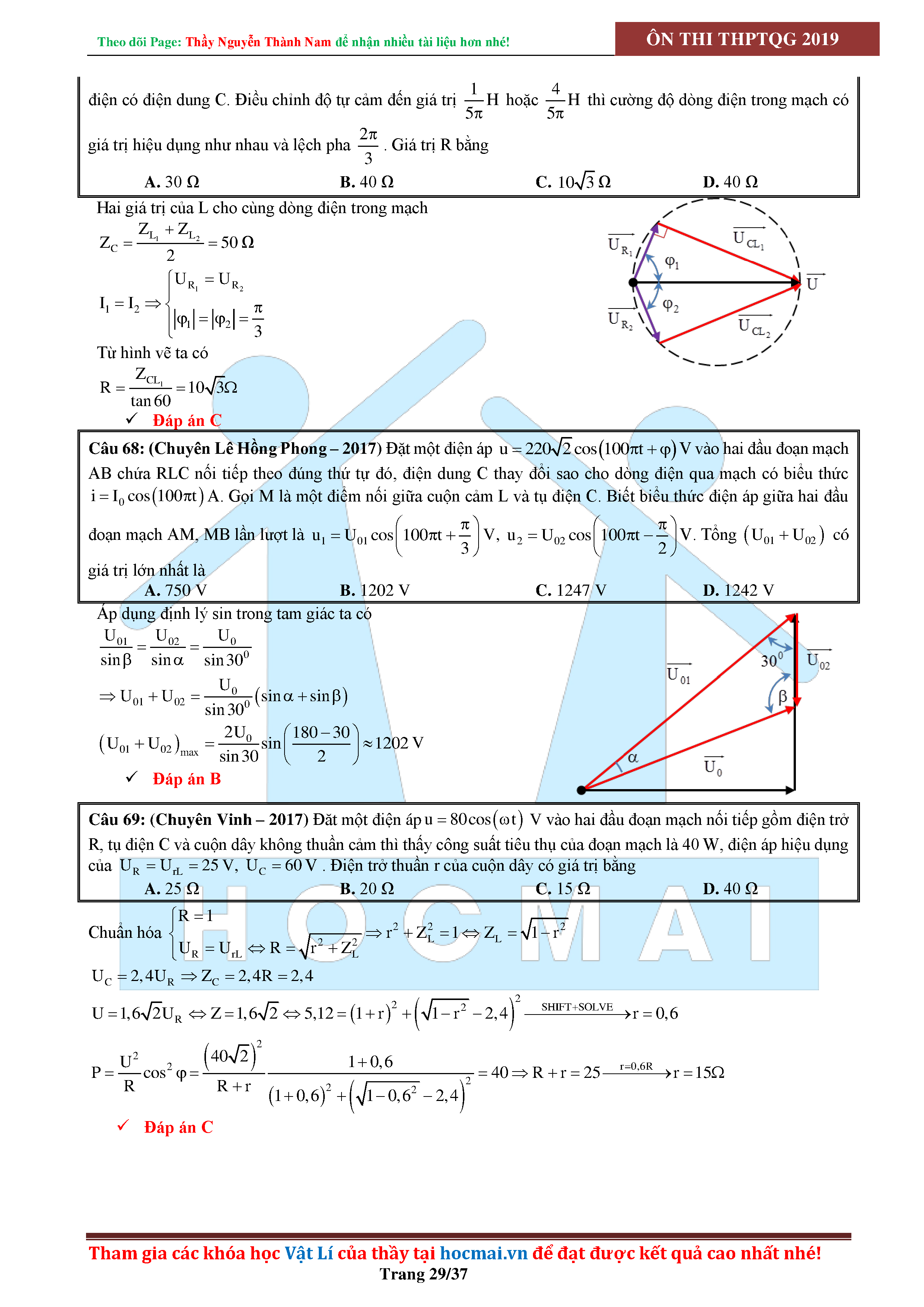 Trắc nghiệm nâng cao điện xoay chiều có lời giải chi tiết