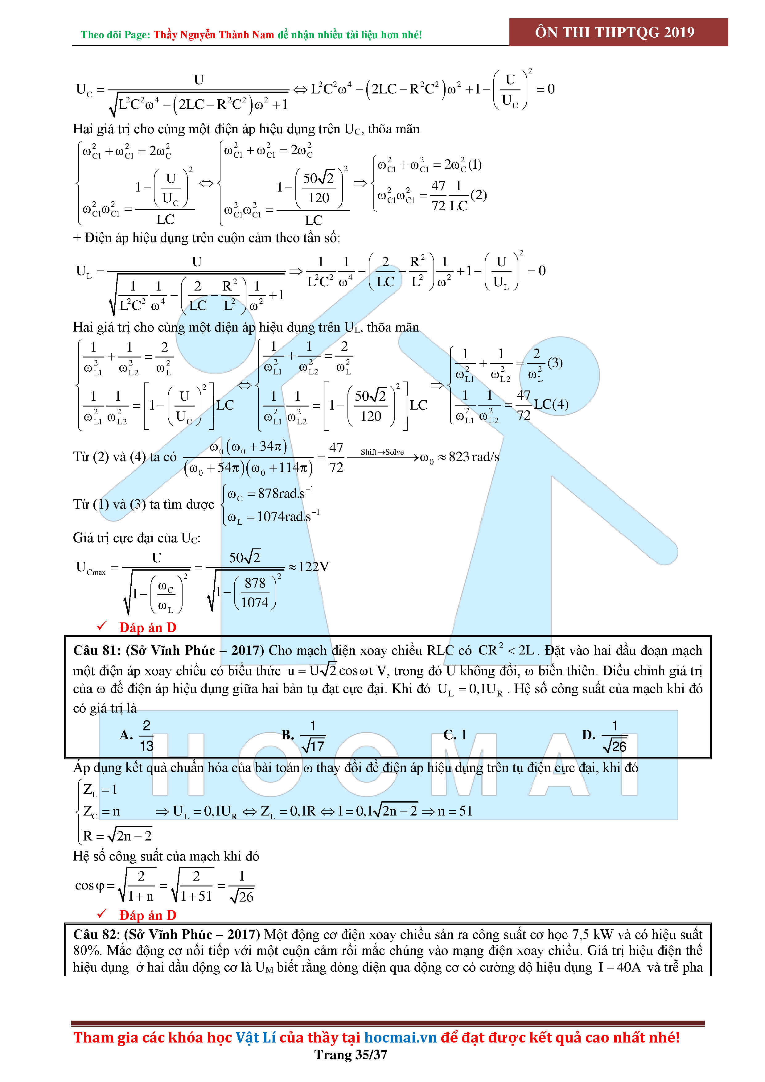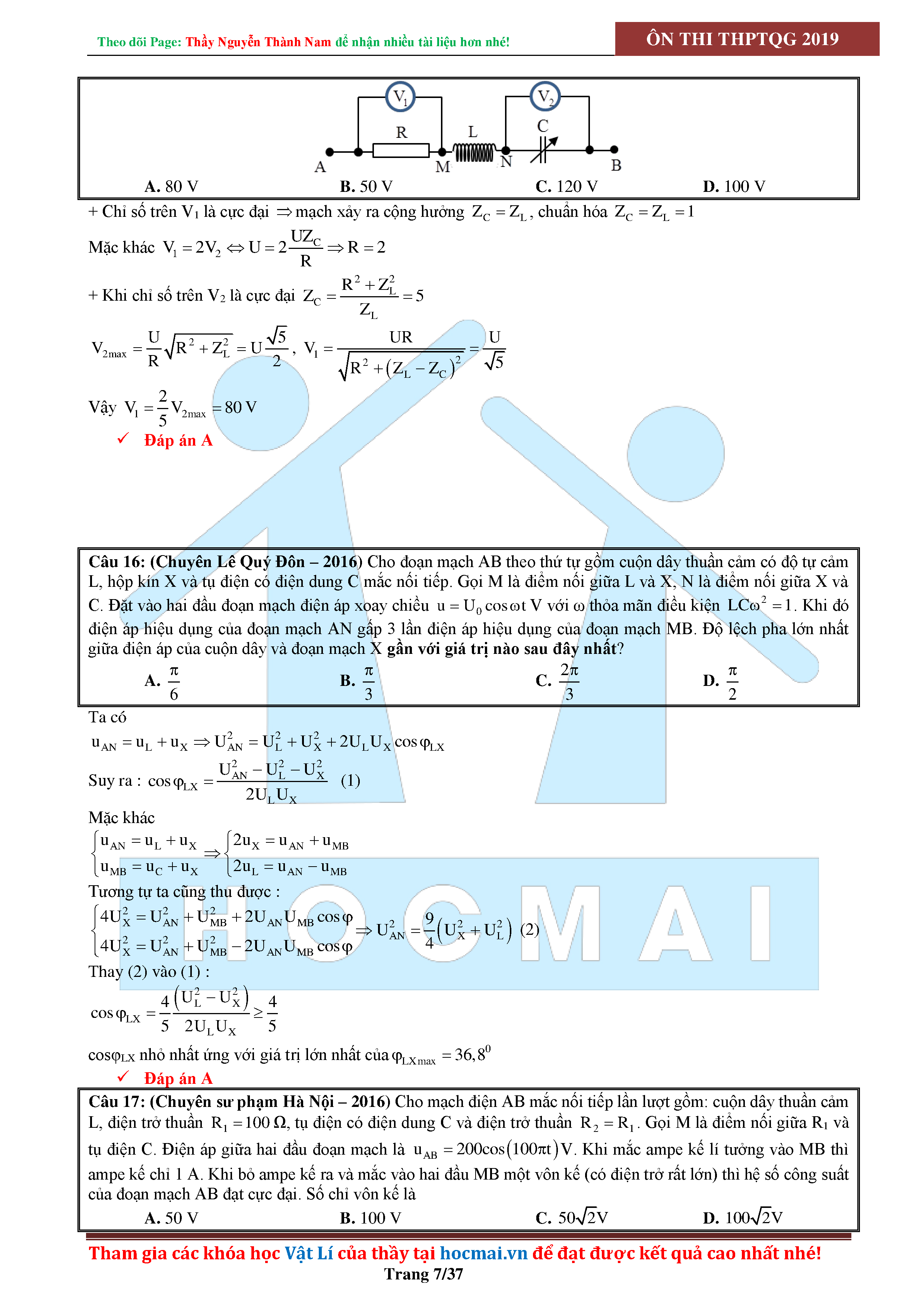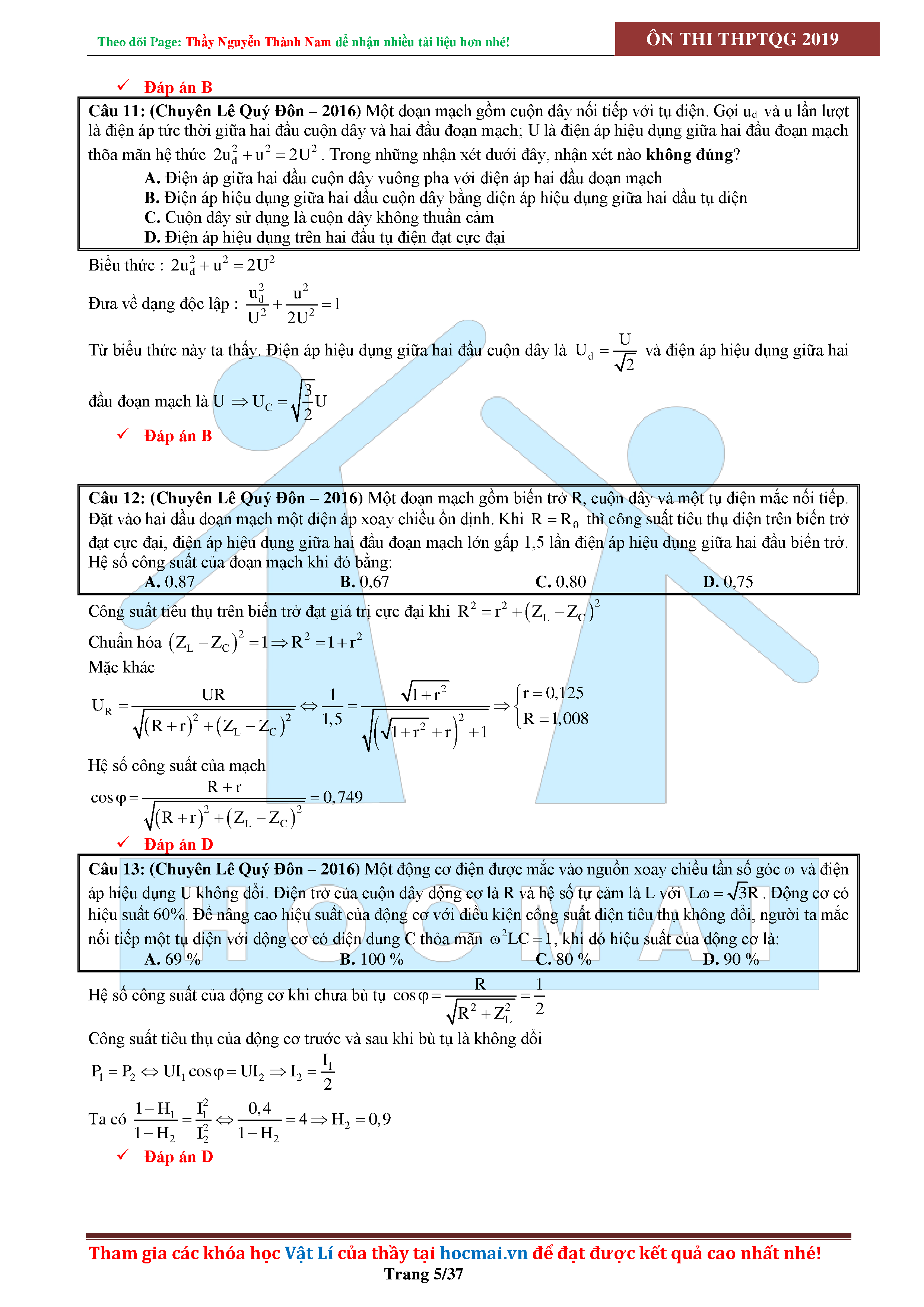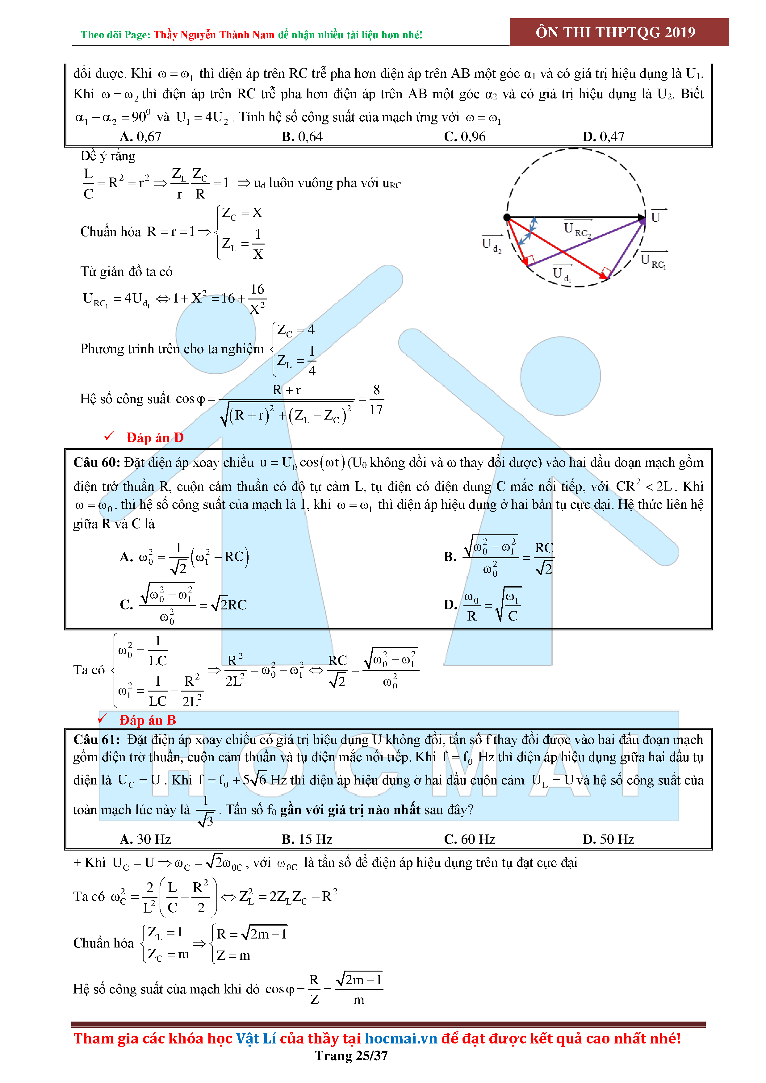 Trắc nghiệm nâng cao điện xoay chiều có lời giải chi tiết
