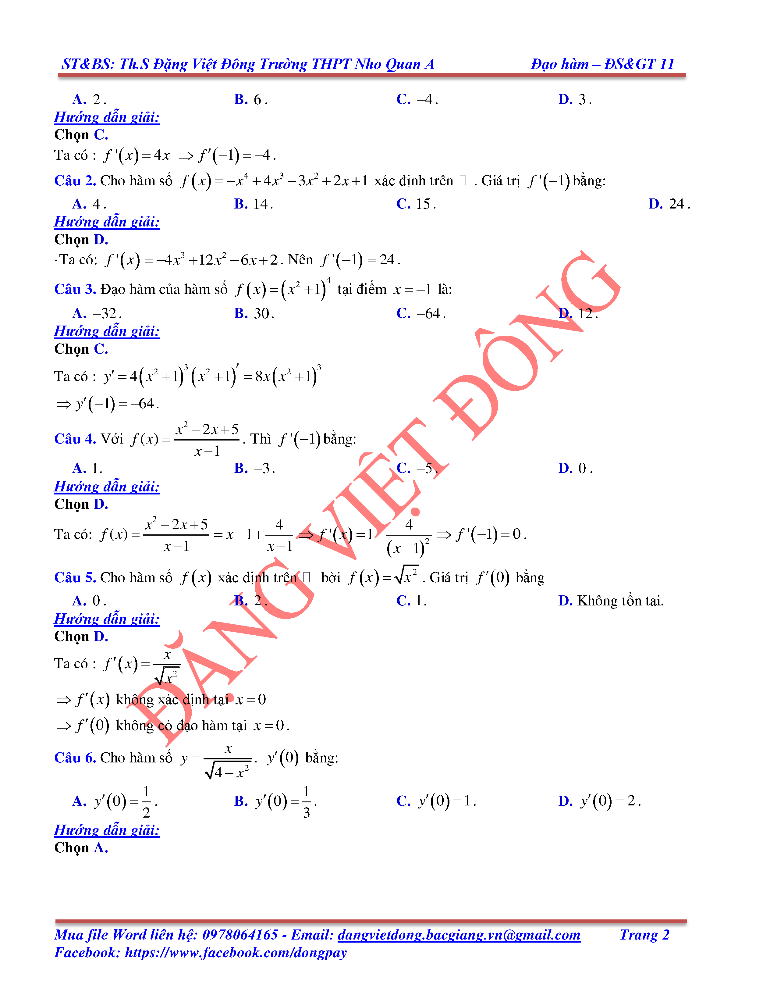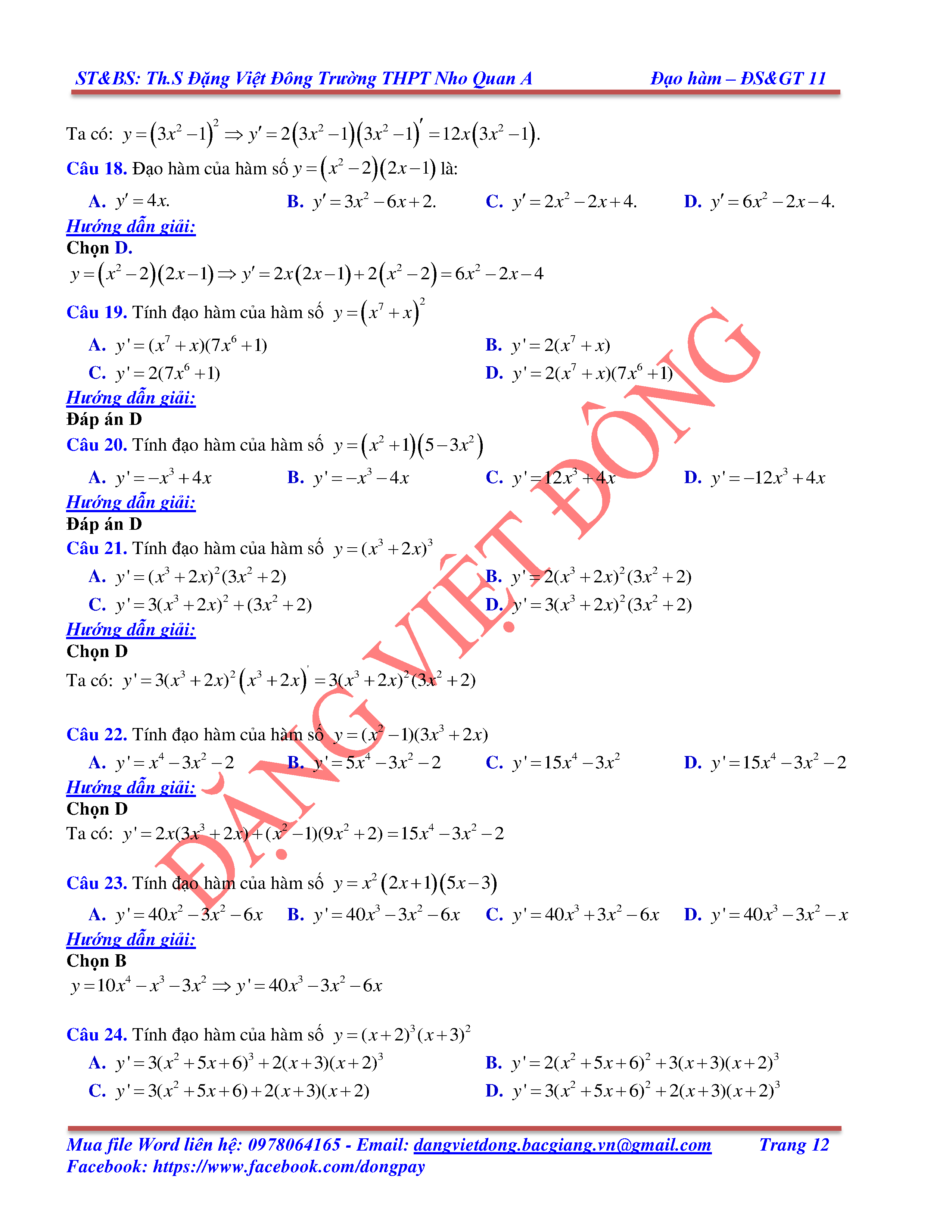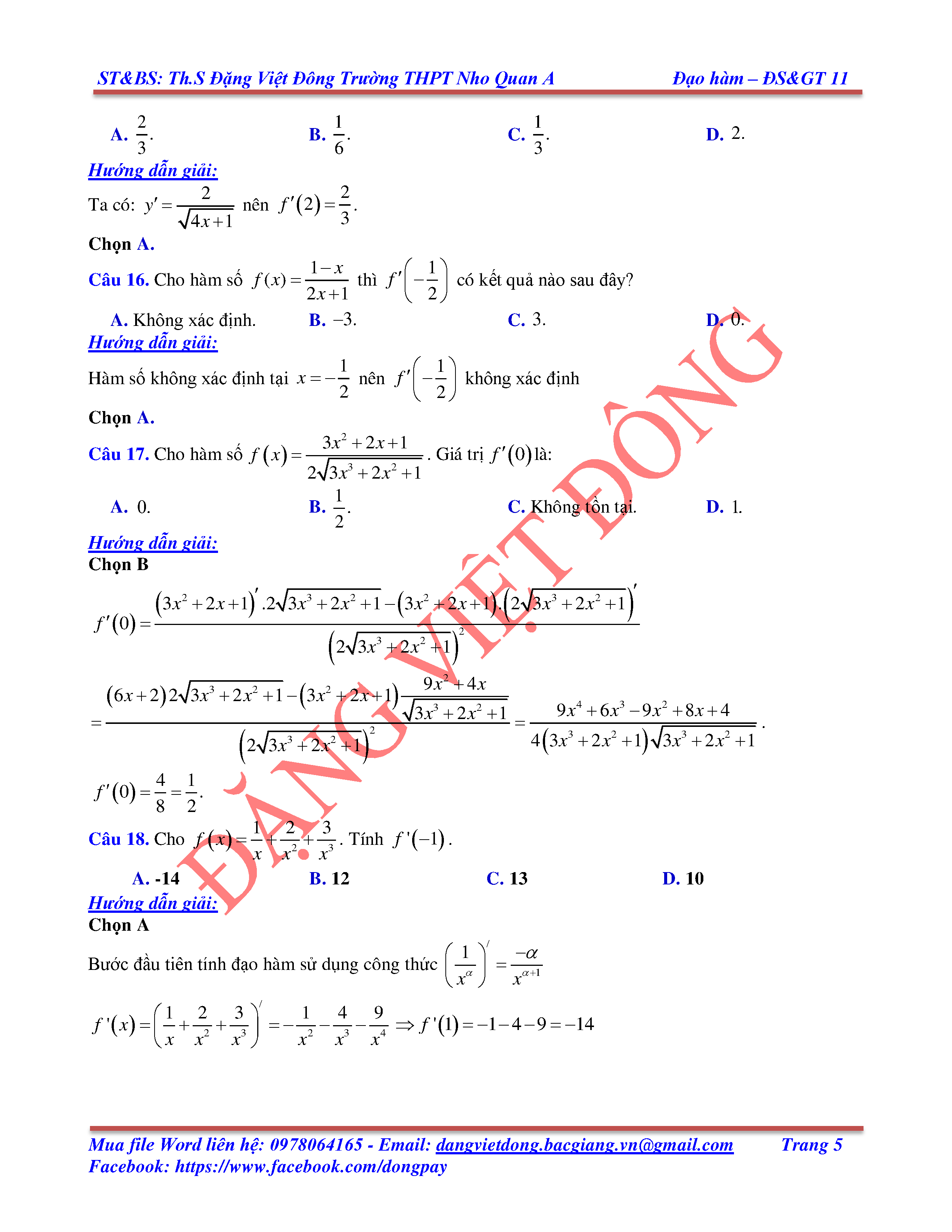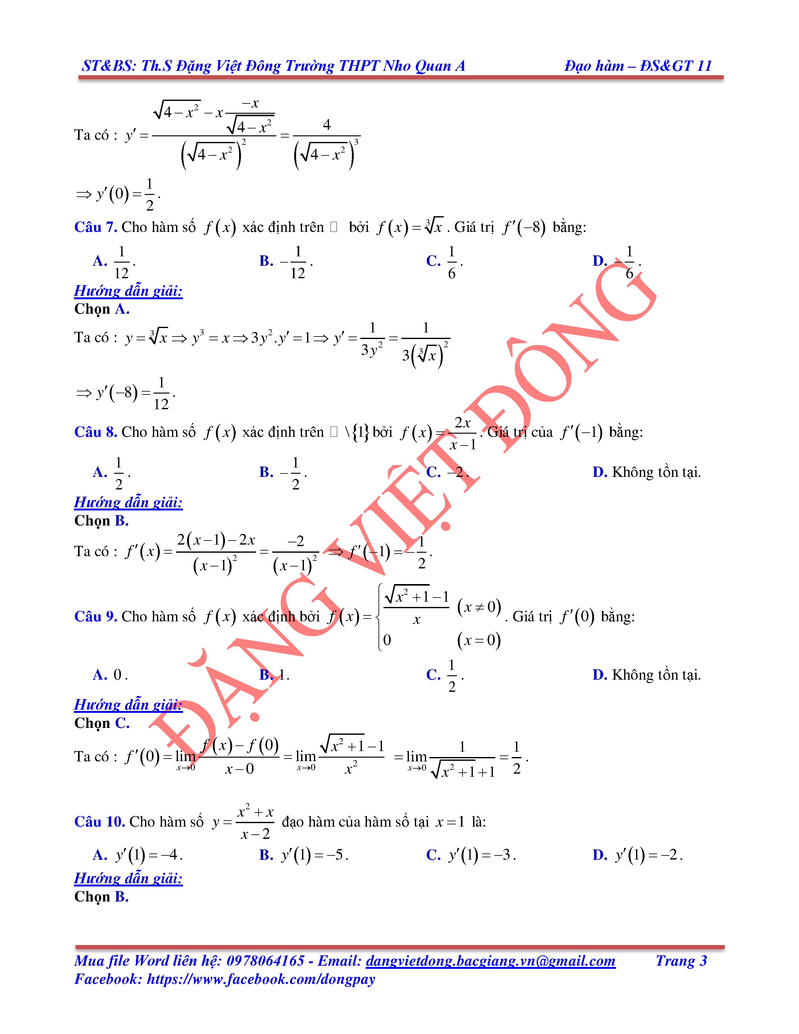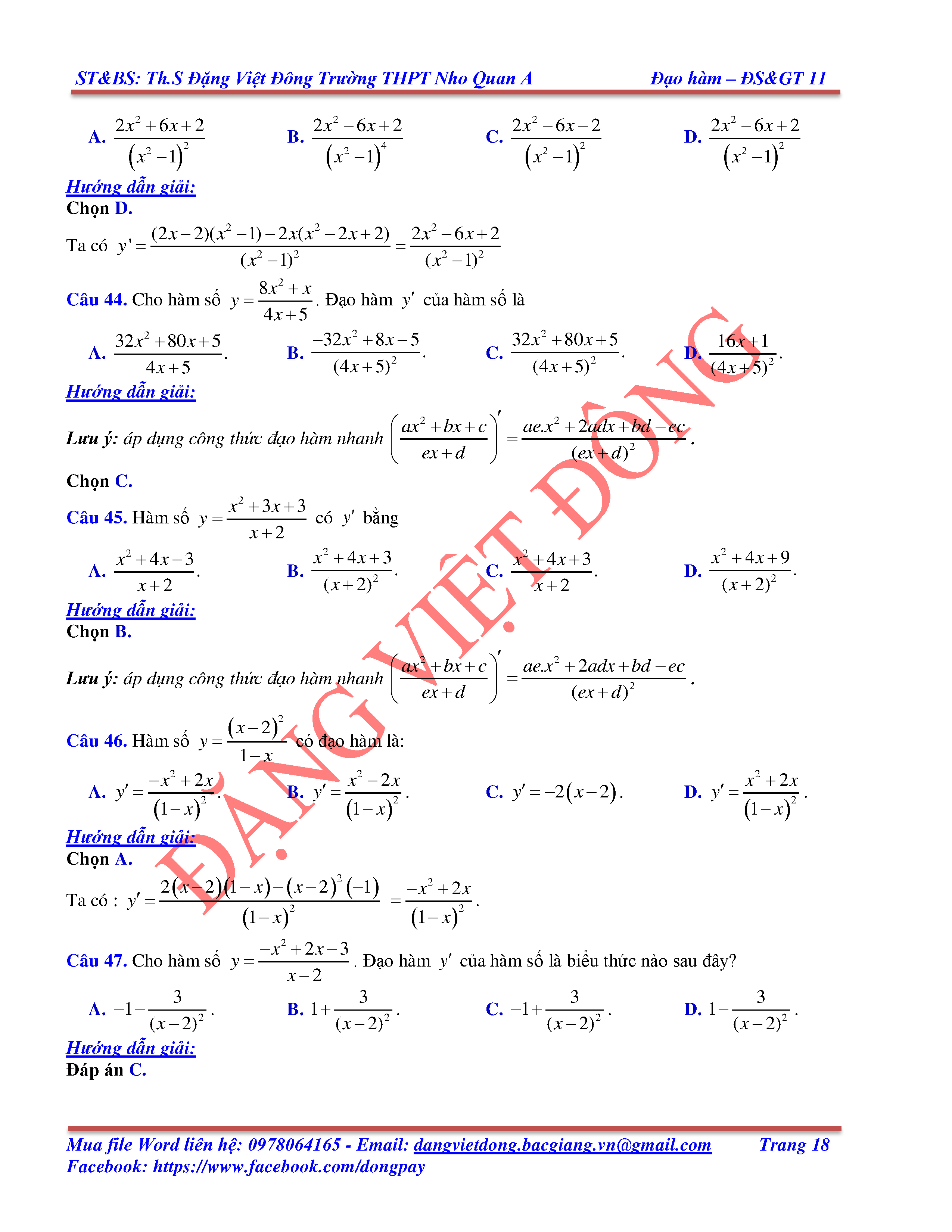 CÁC QUY TẮC TÍNH ĐẠO HÀM