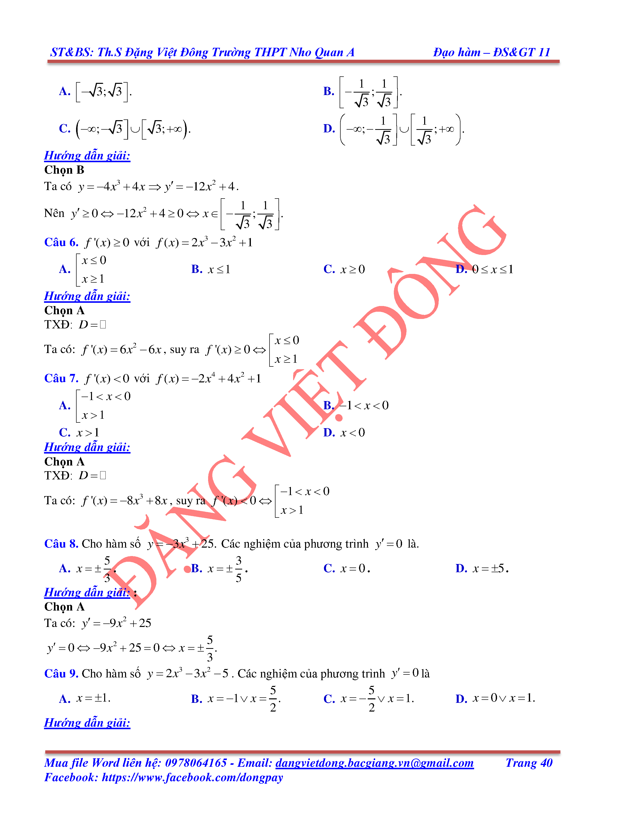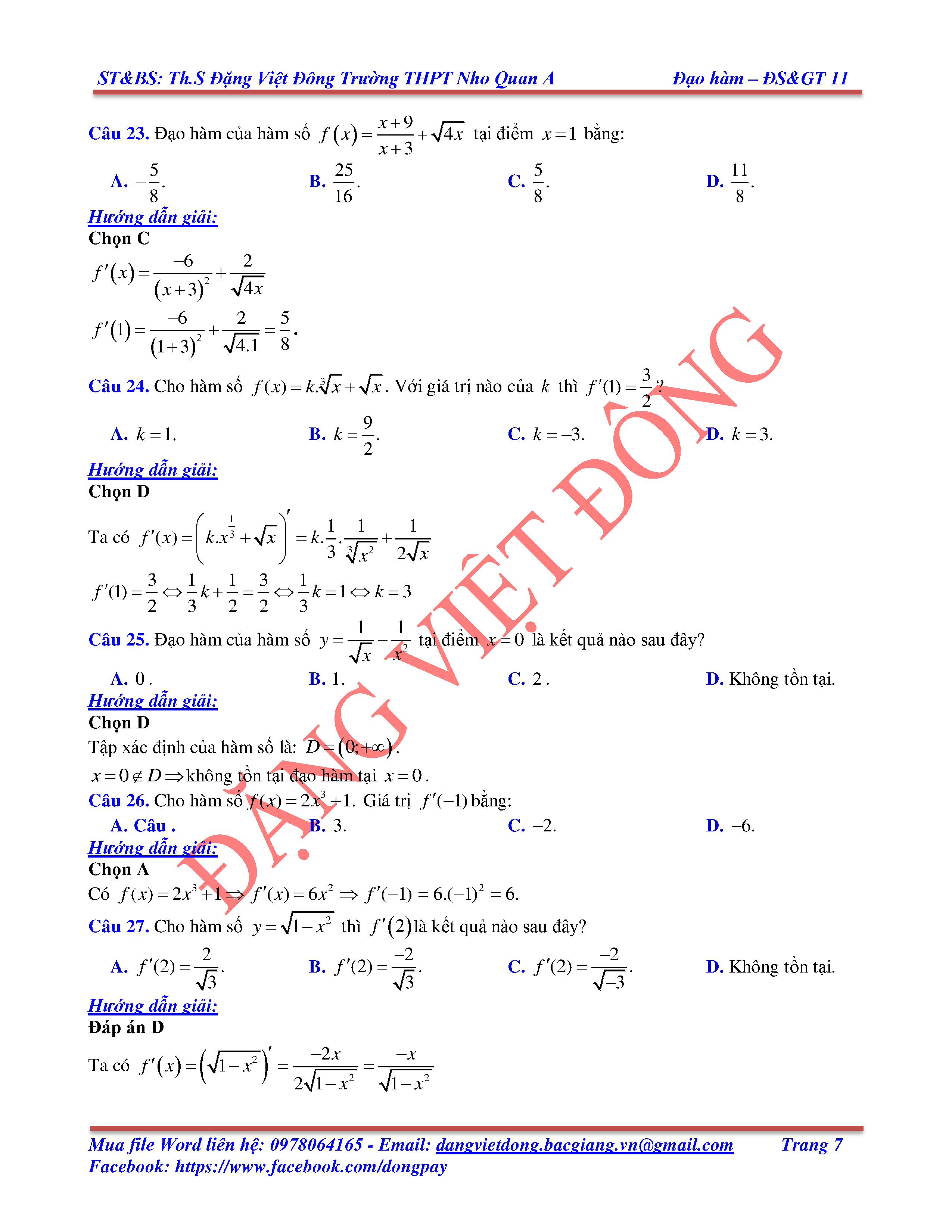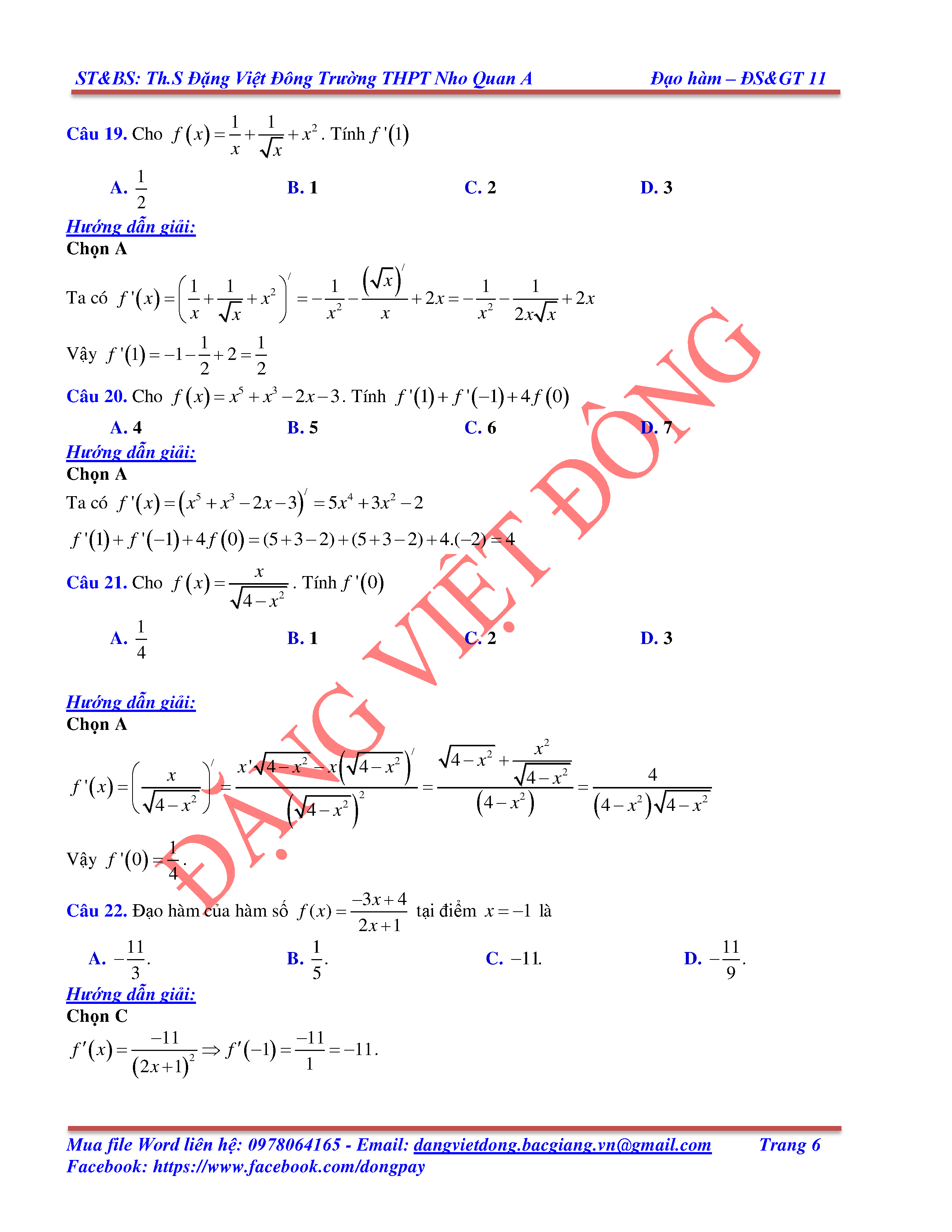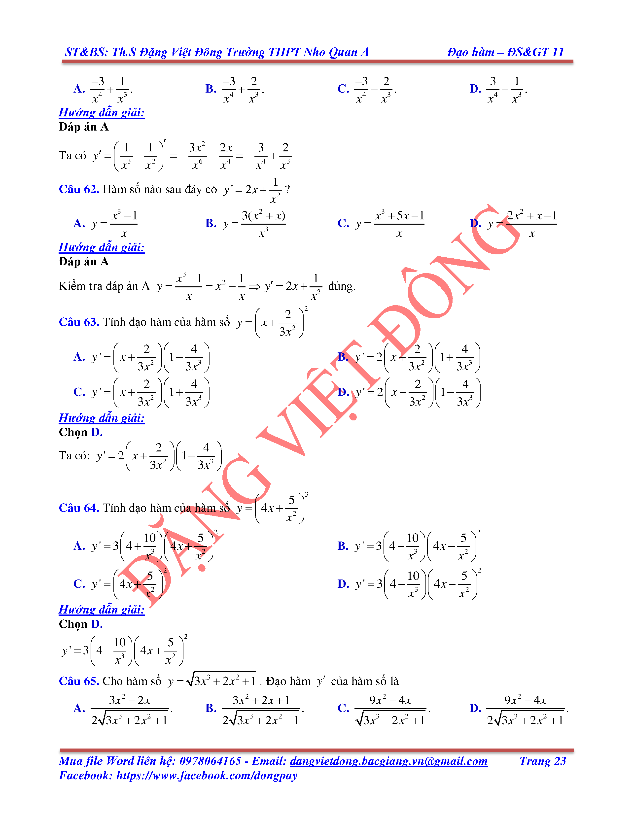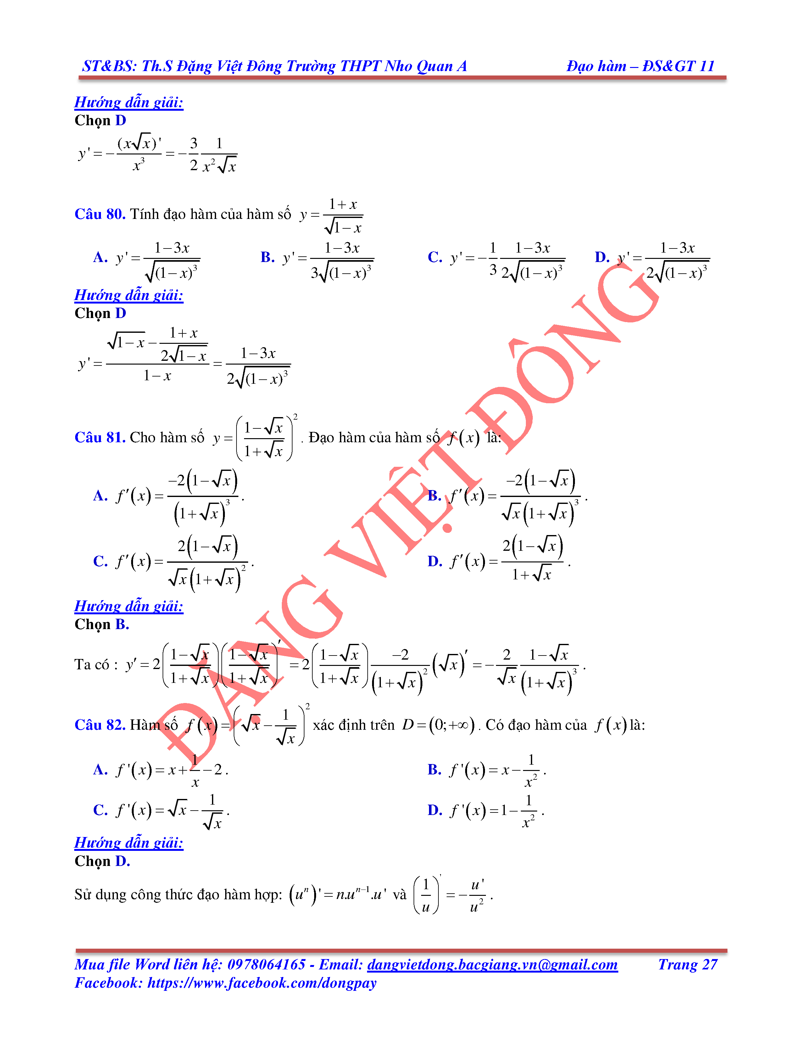 CÁC QUY TẮC TÍNH ĐẠO HÀM