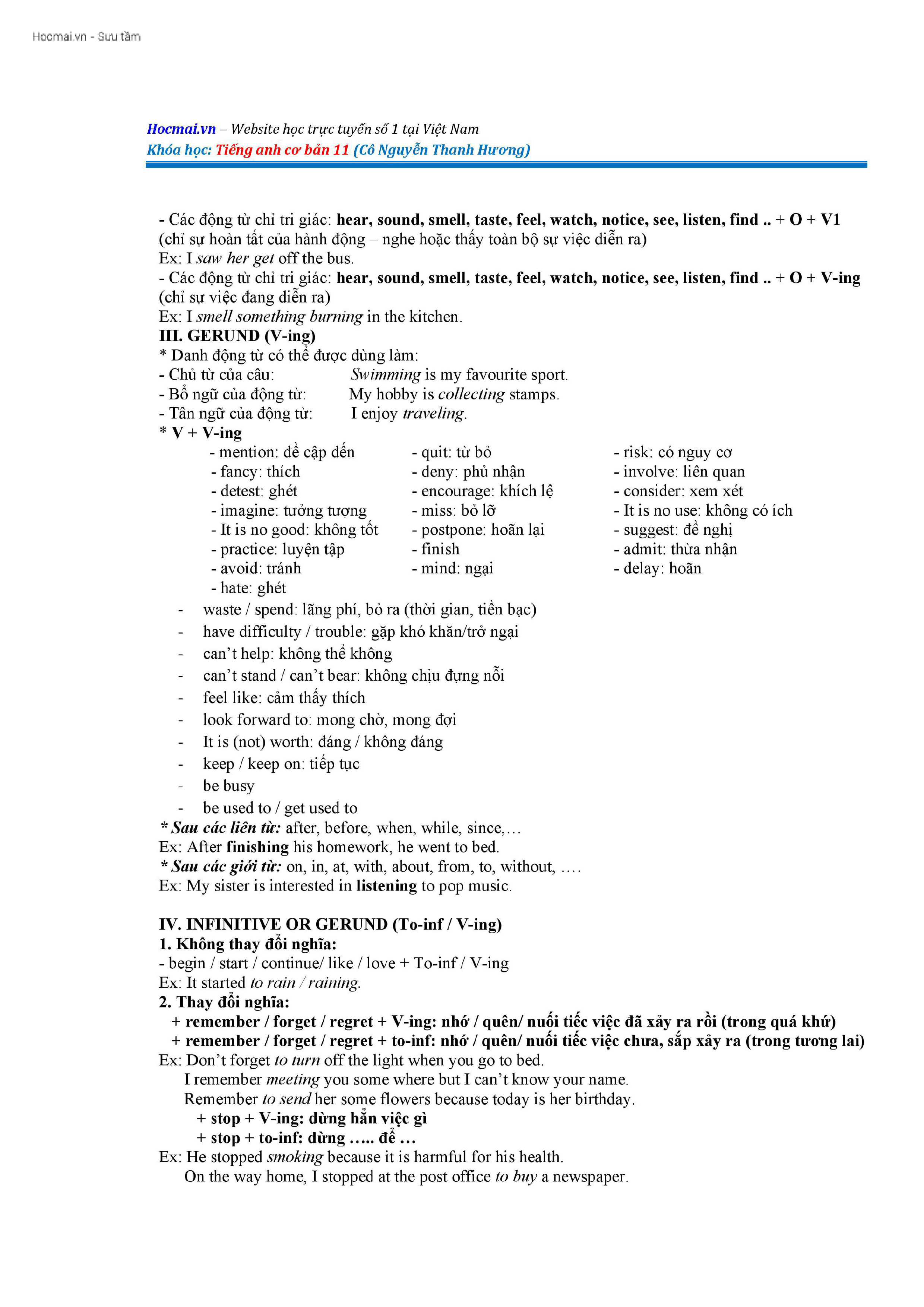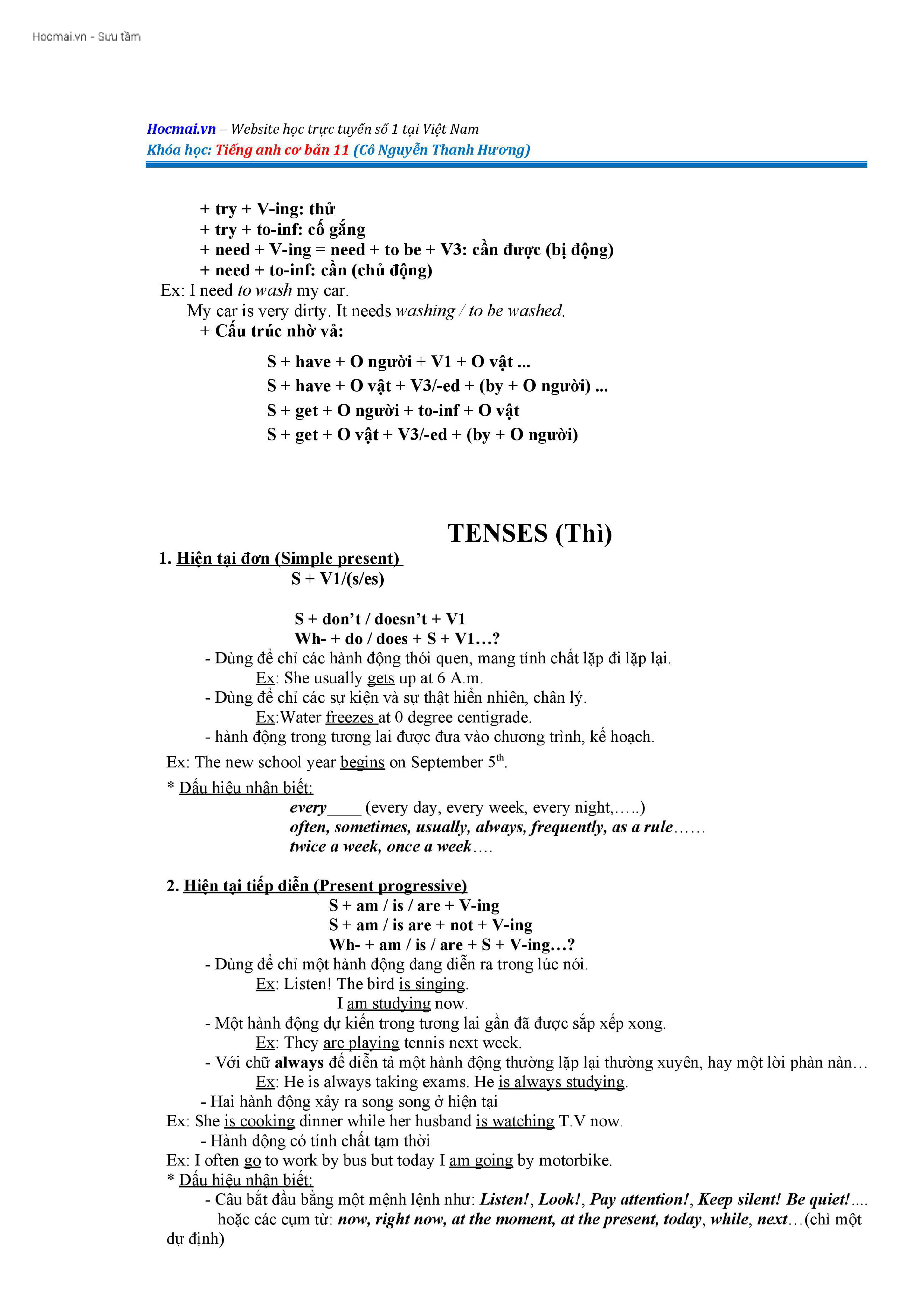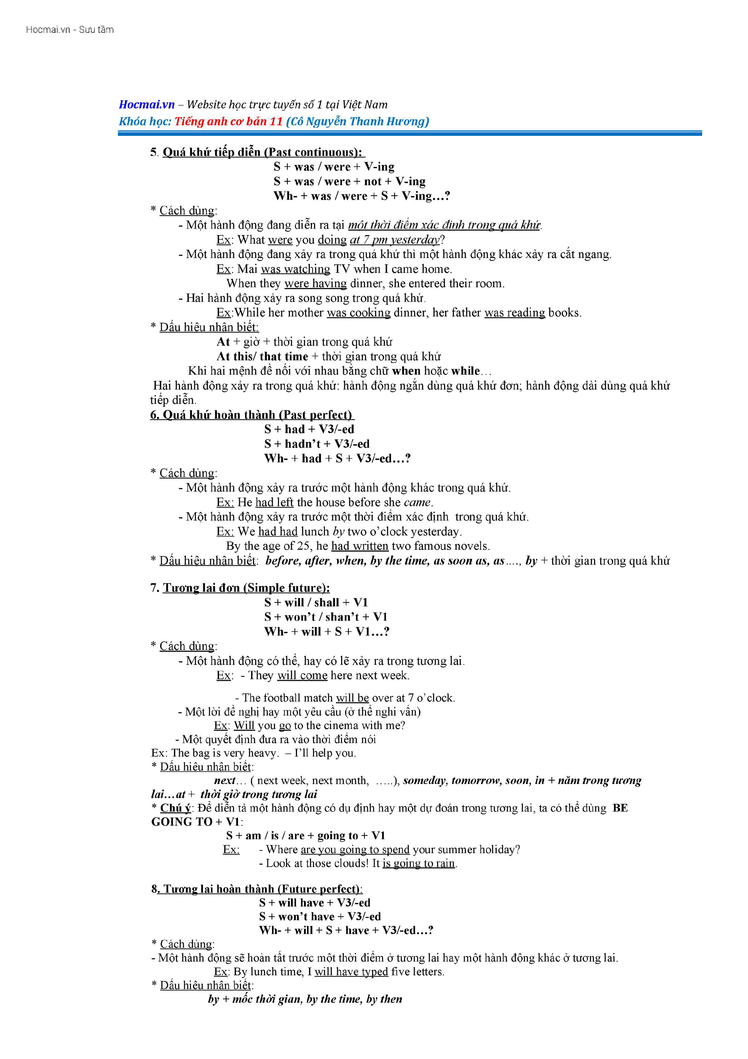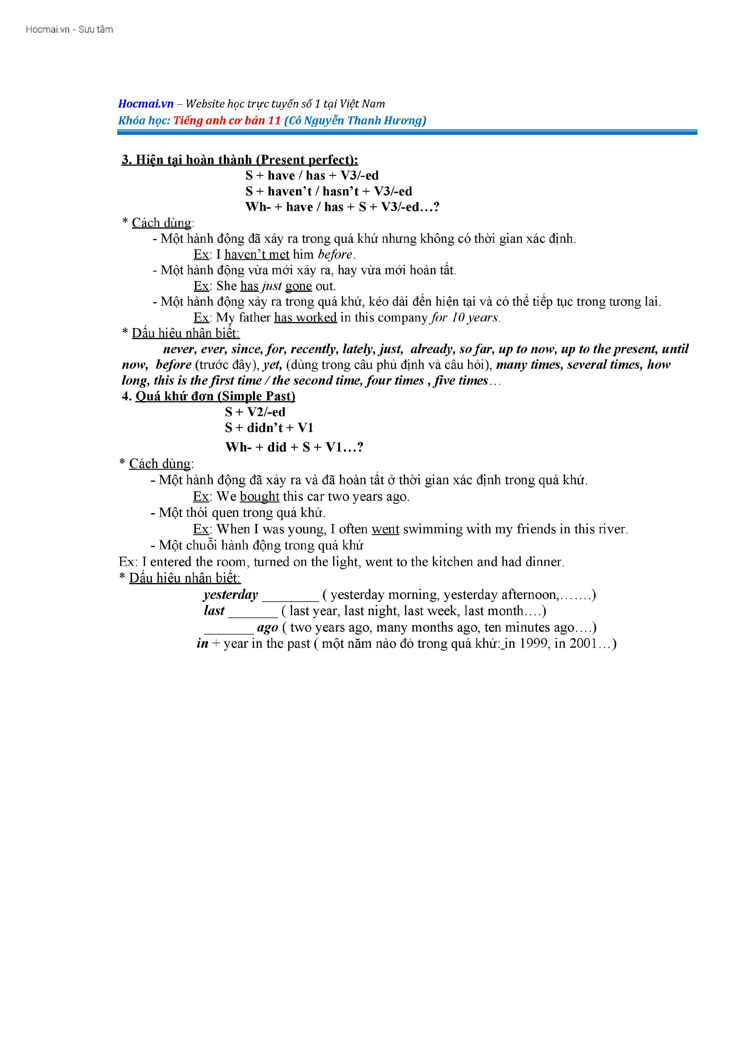 Tóm tắt ngữ pháp Tiếng Anh 11