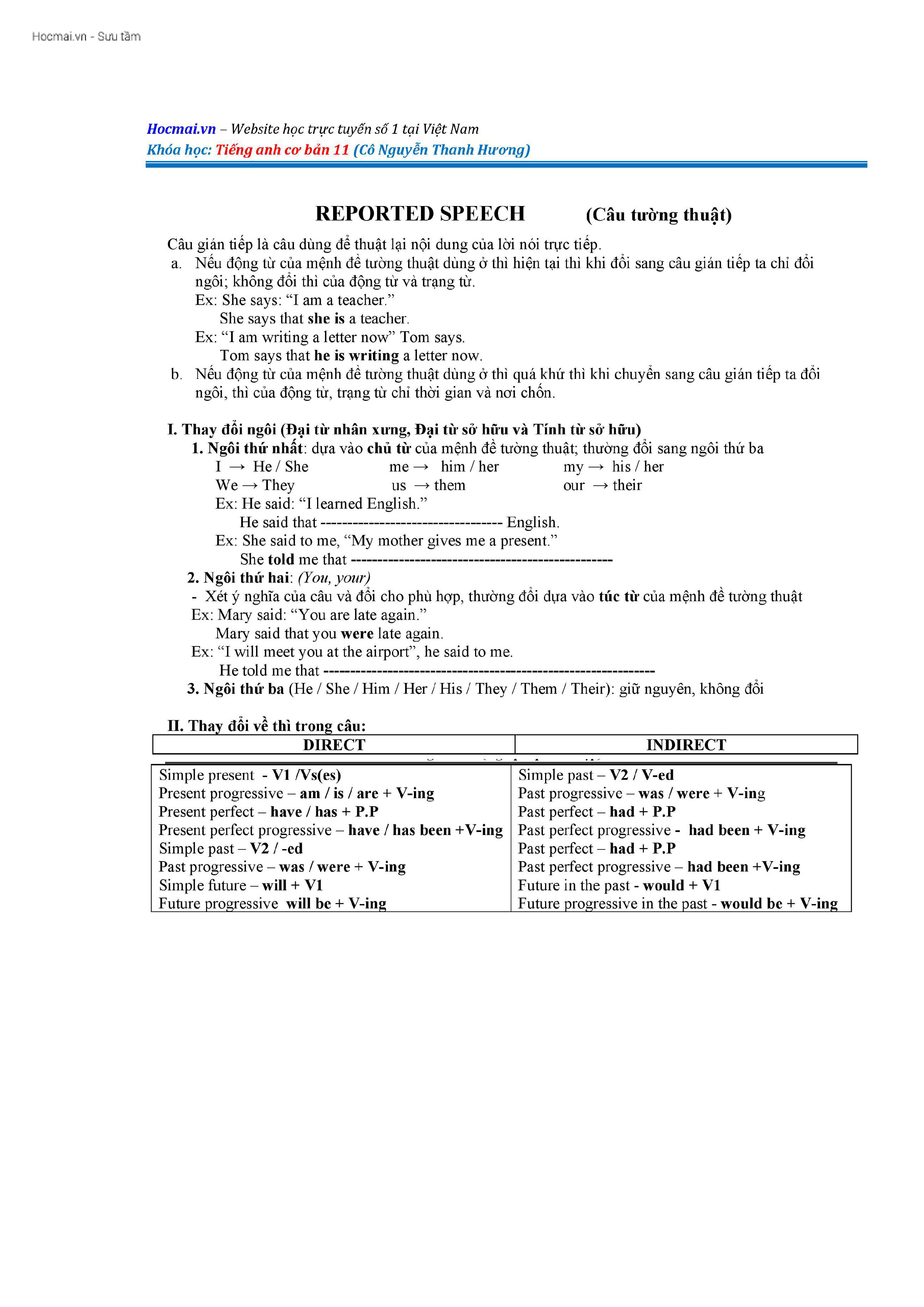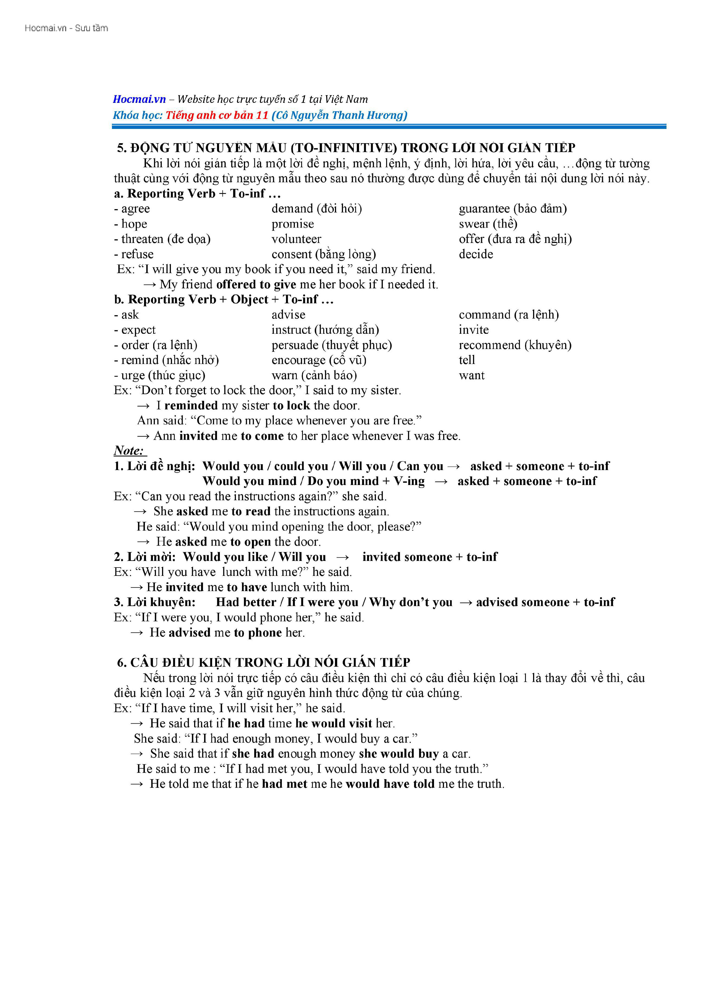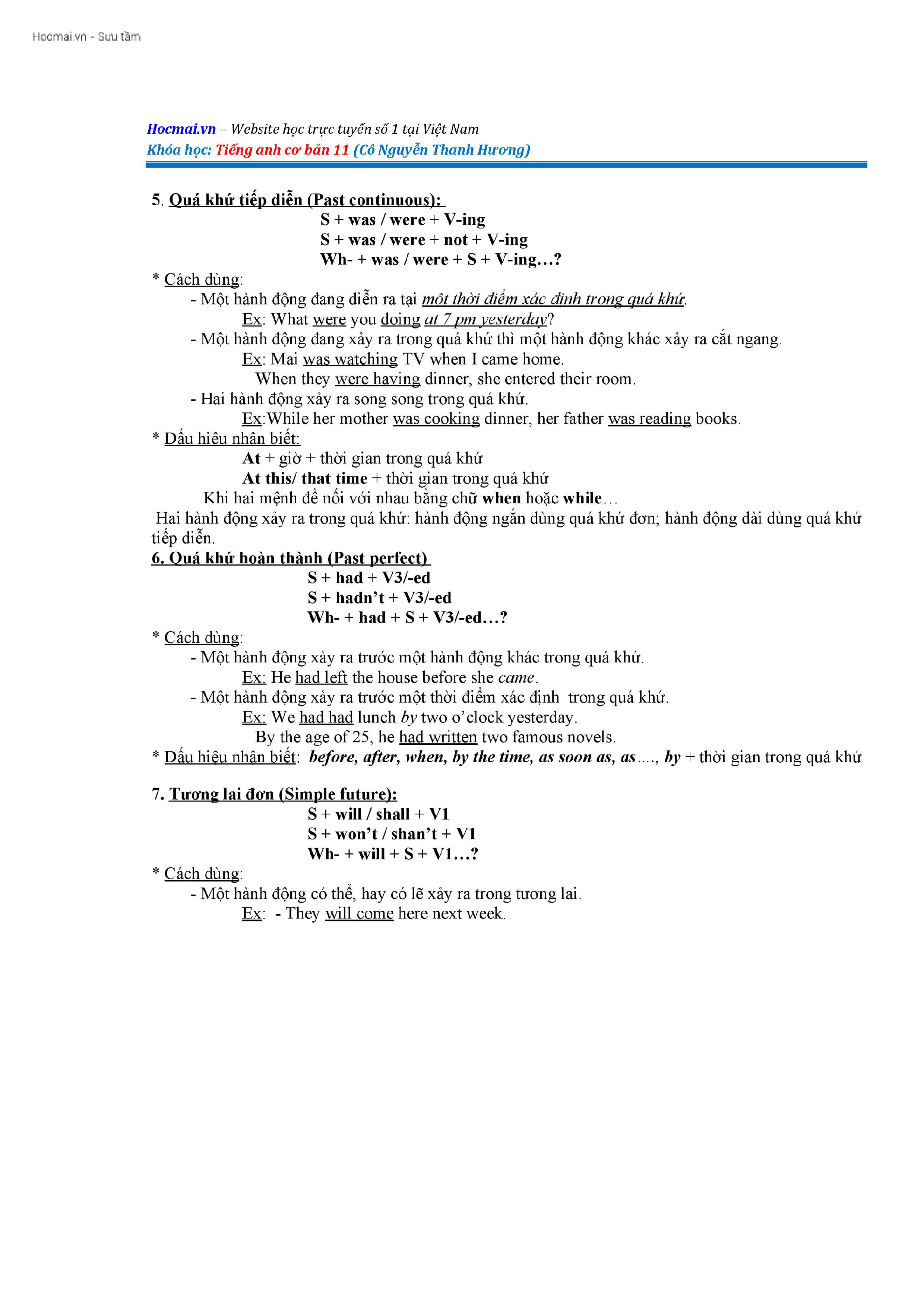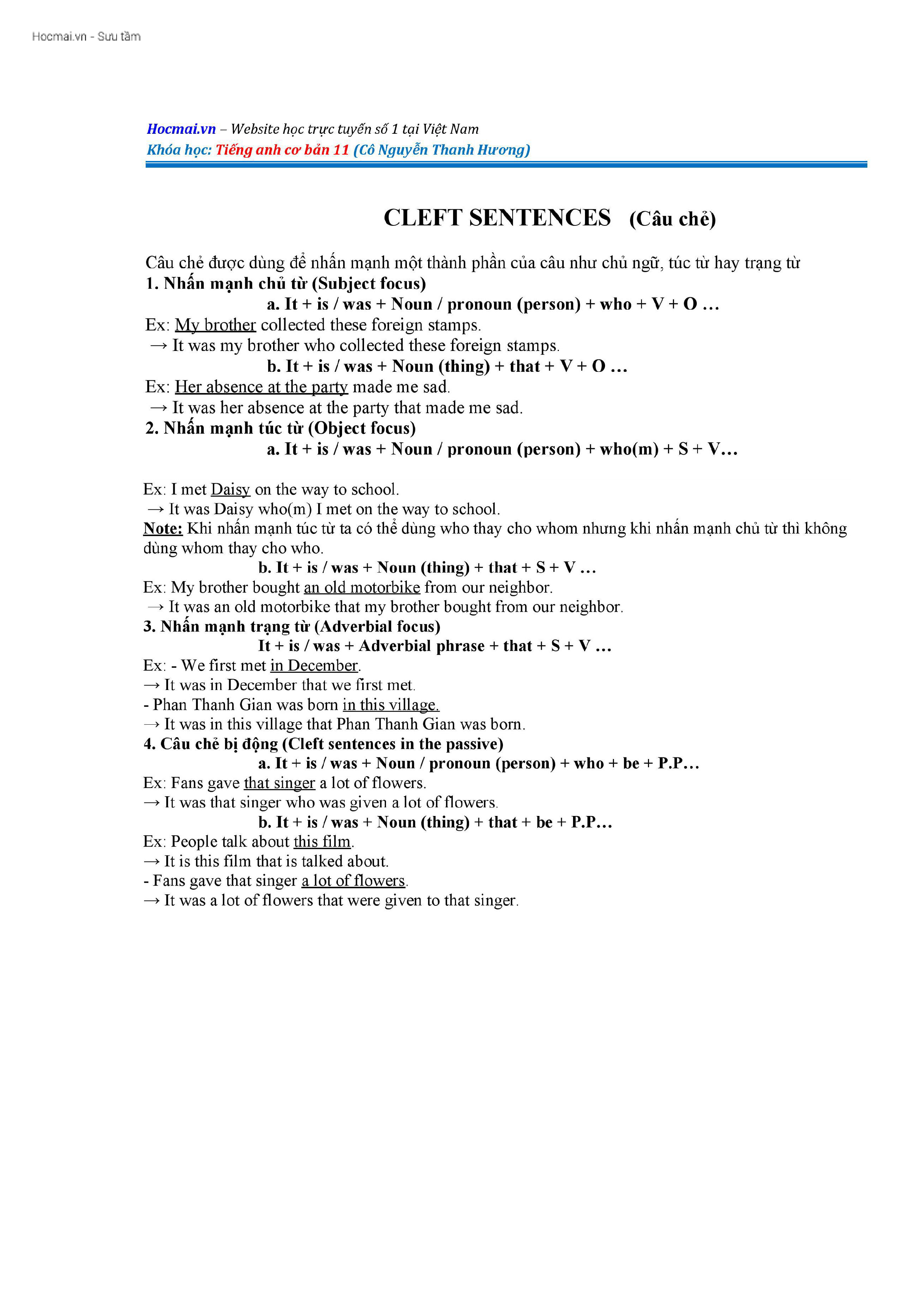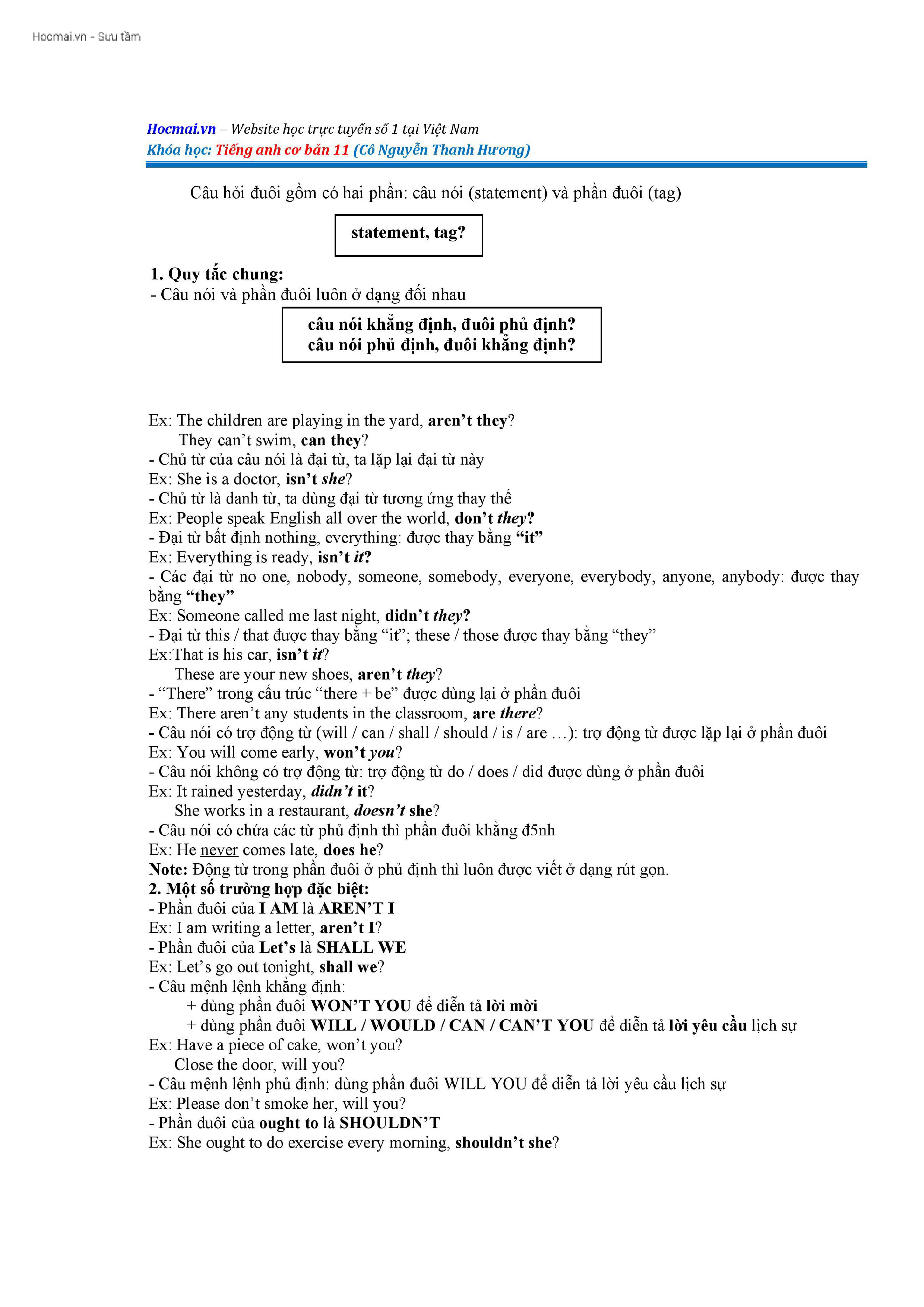 Tóm tắt ngữ pháp Tiếng Anh 11