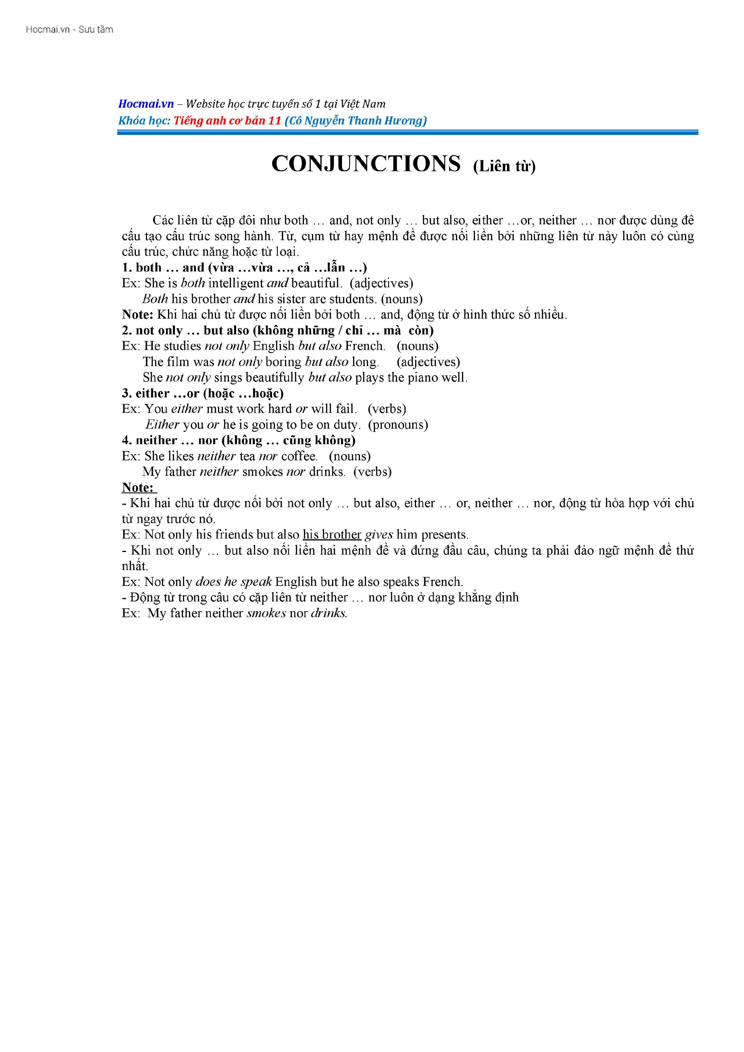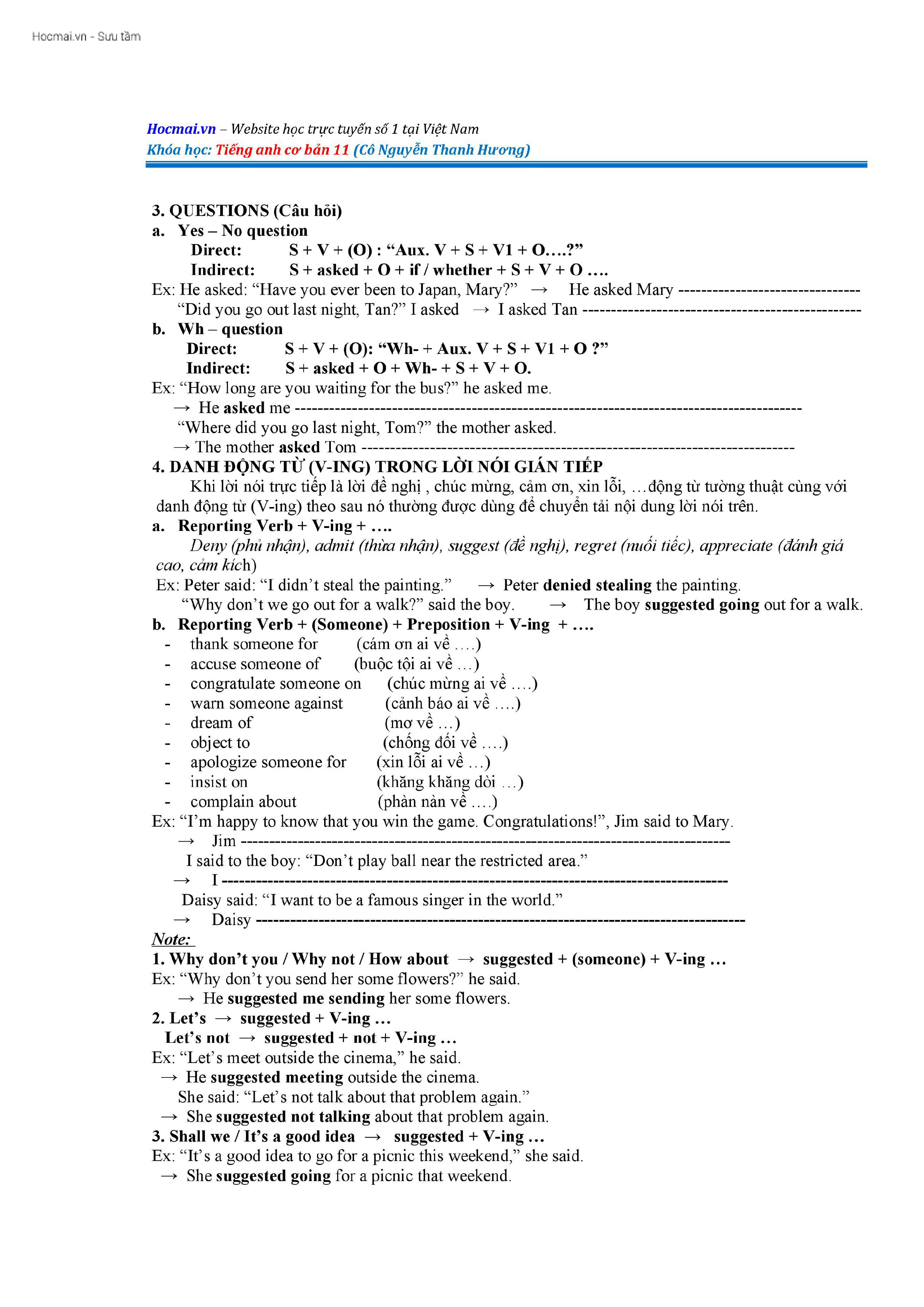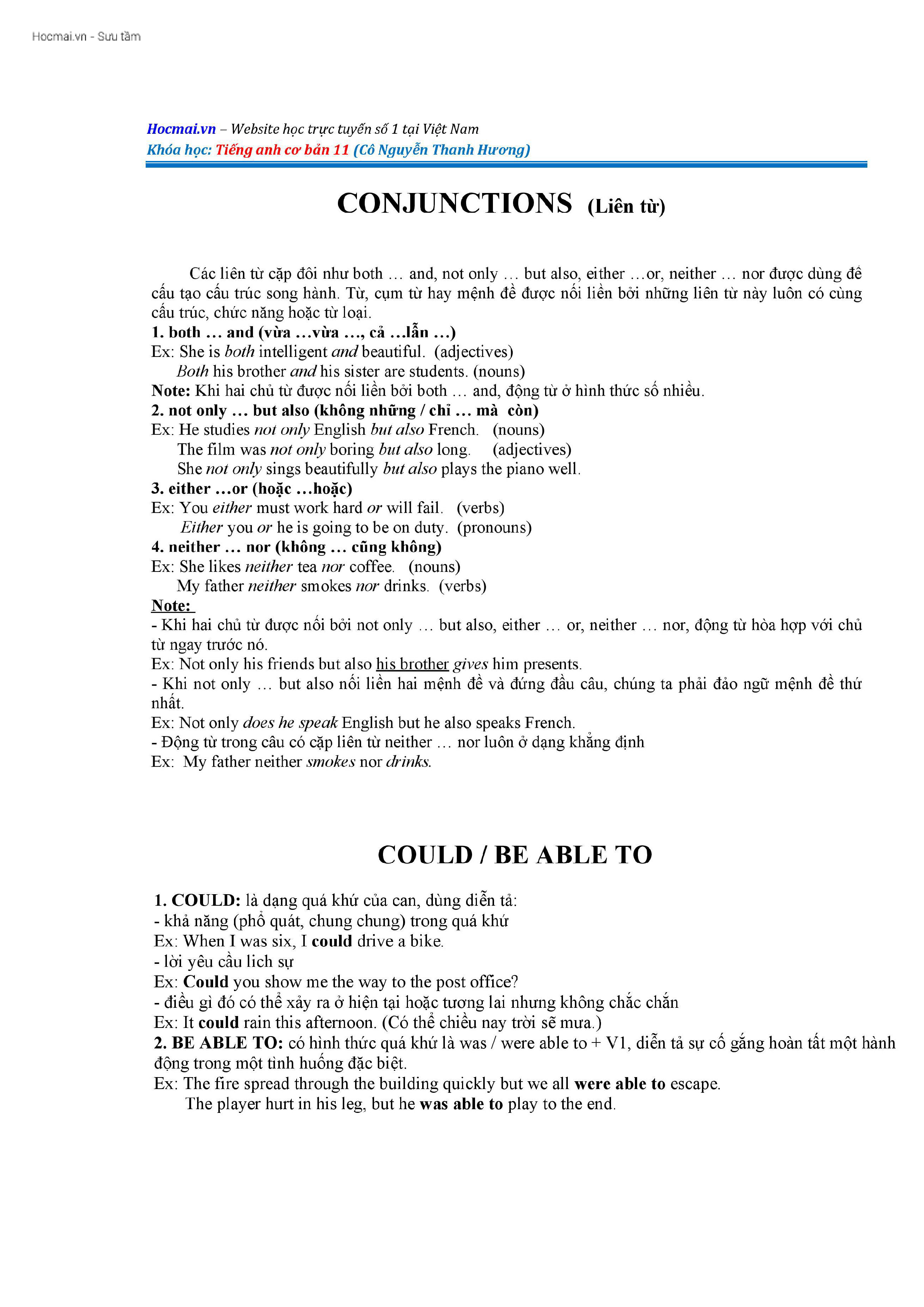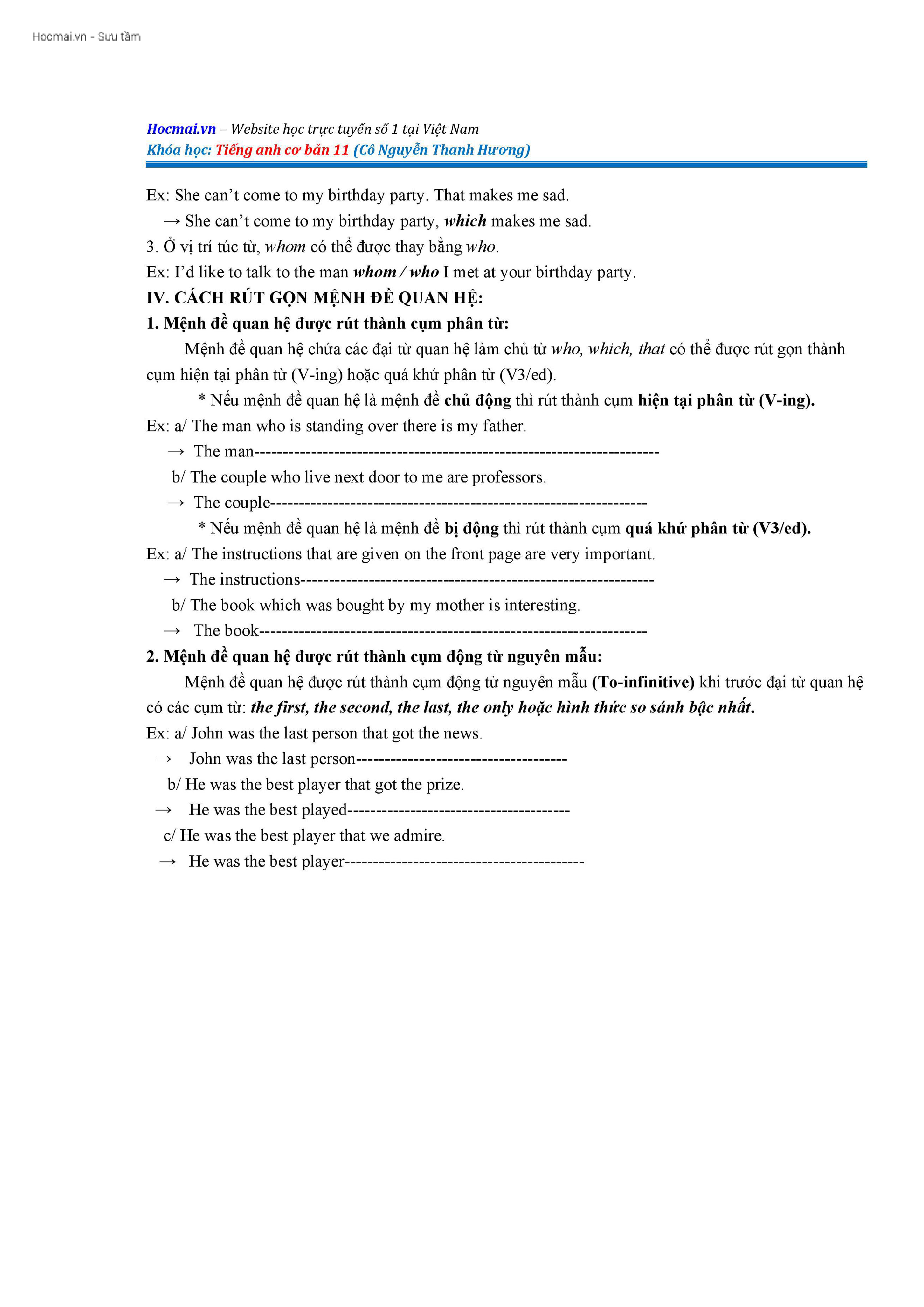 Tóm tắt ngữ pháp Tiếng Anh 11