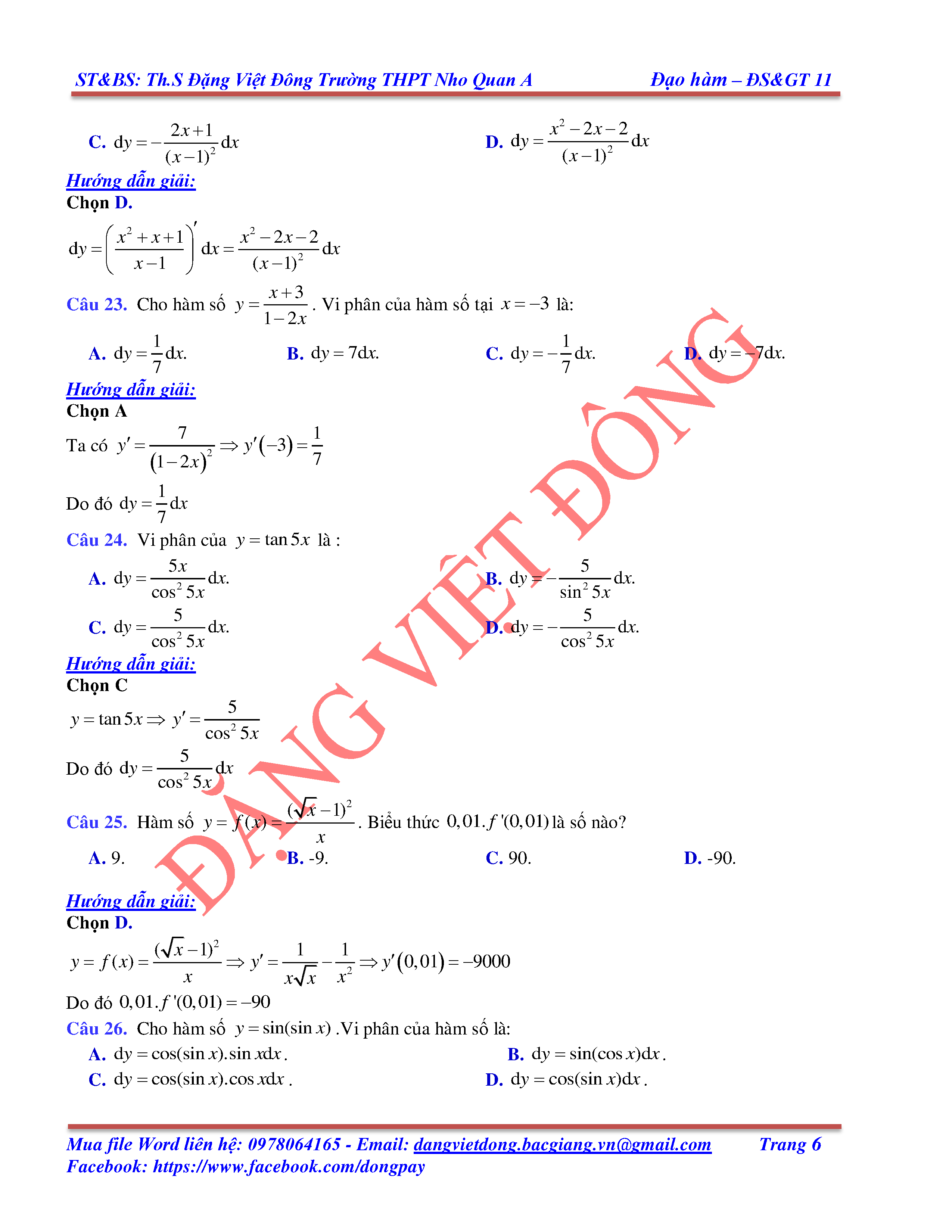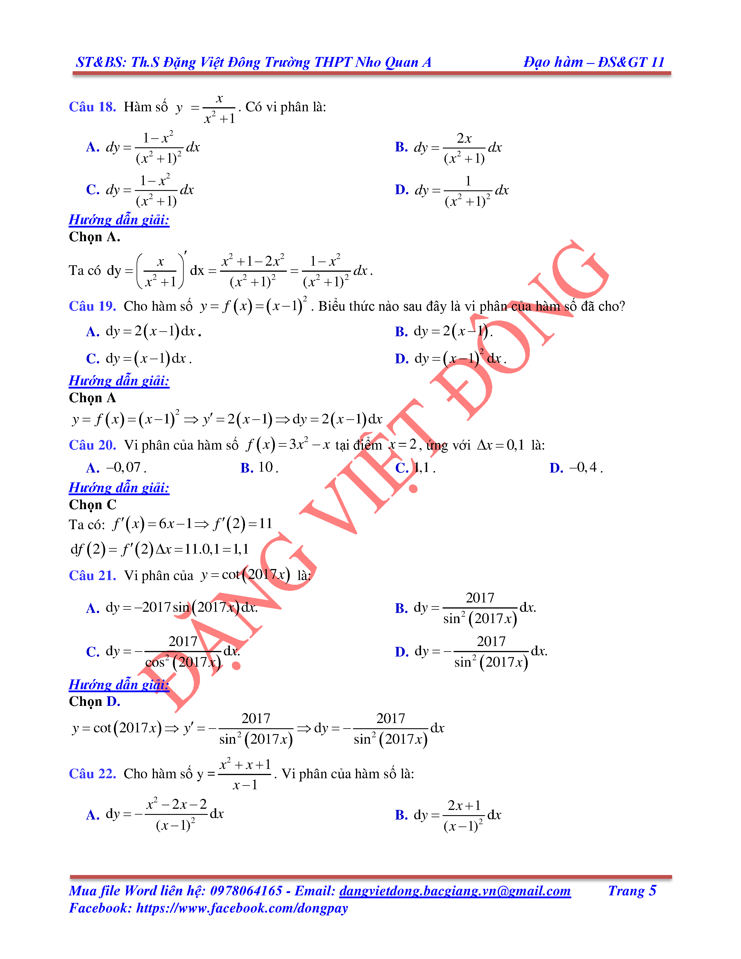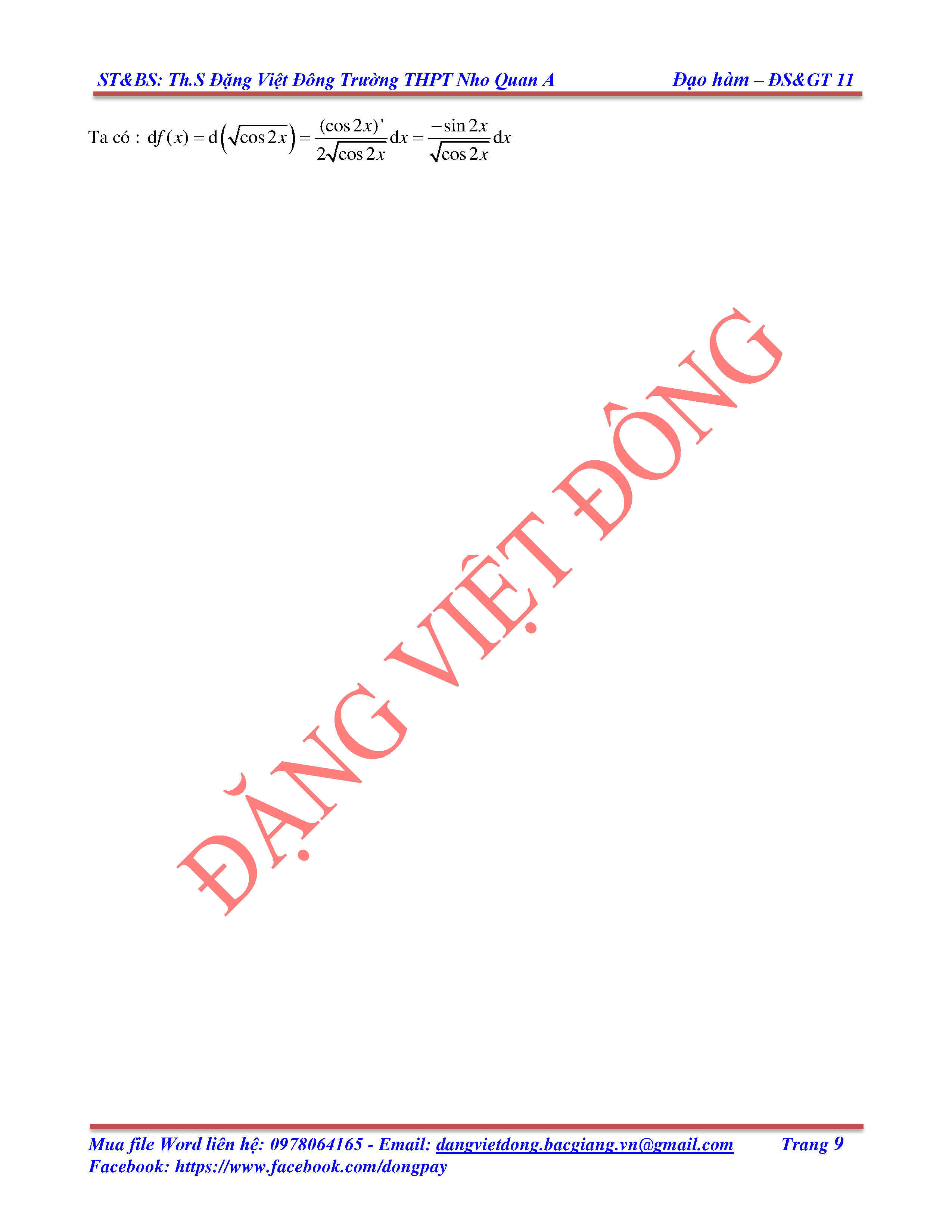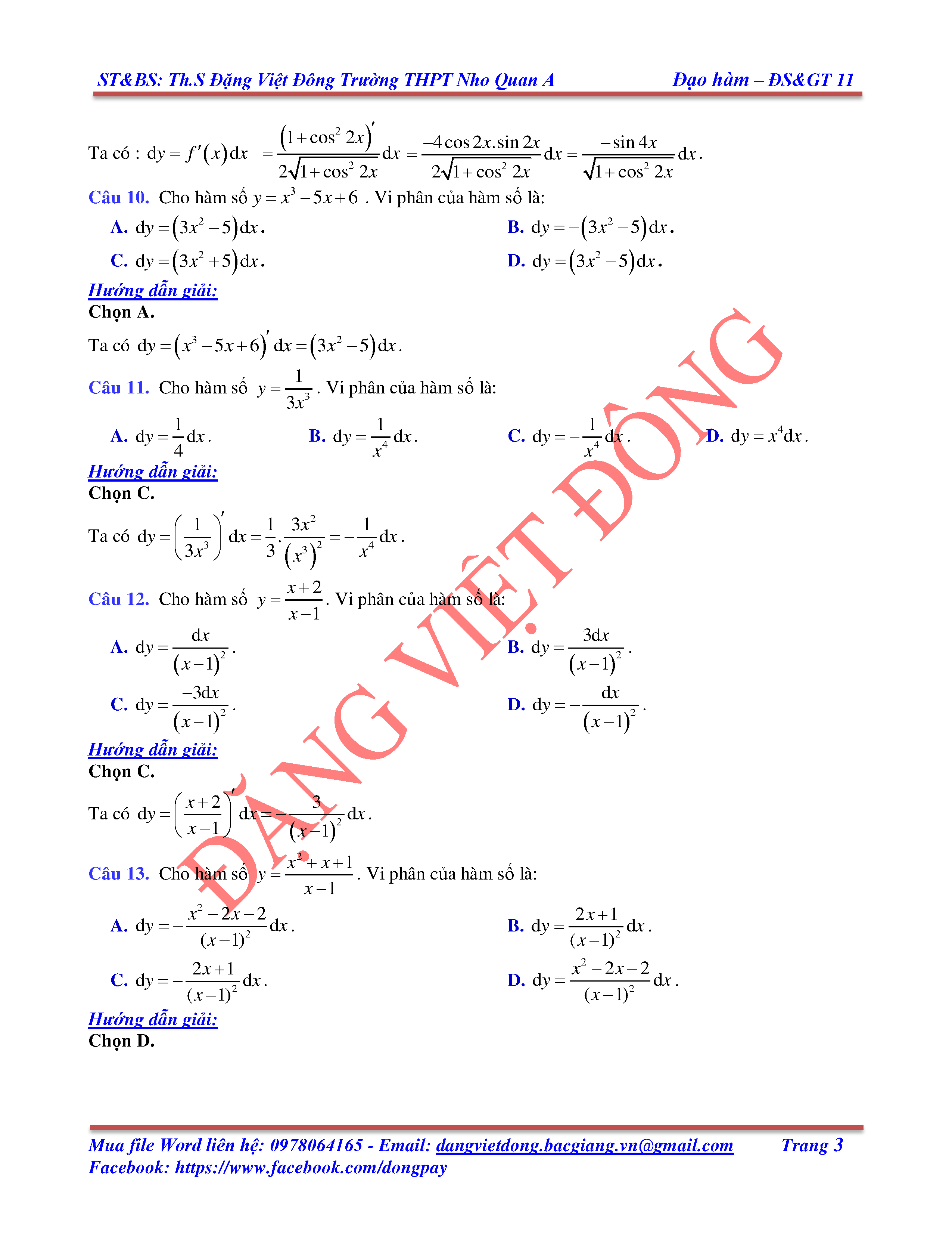 VI PHÂN CỦA HÀM SỐ - TOÁN 11