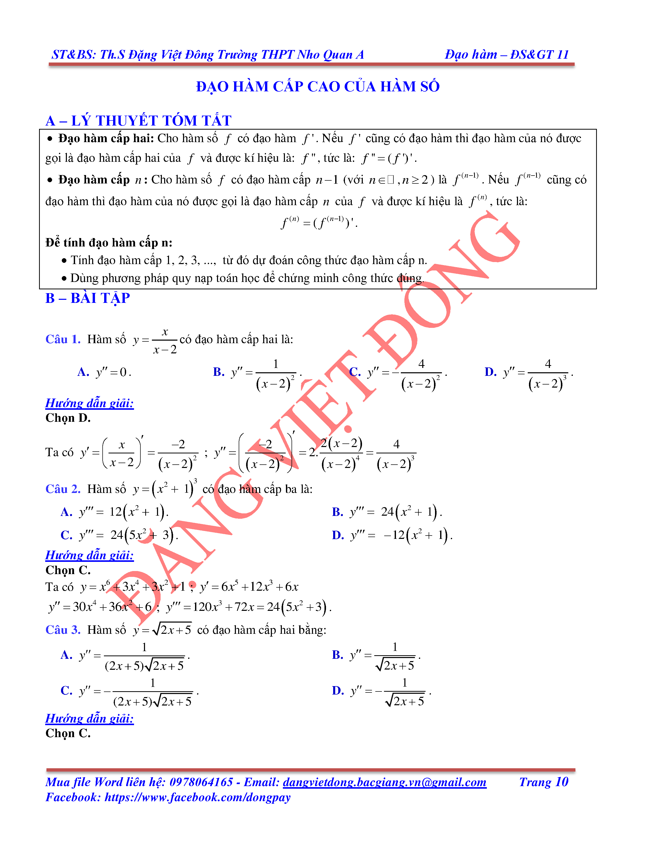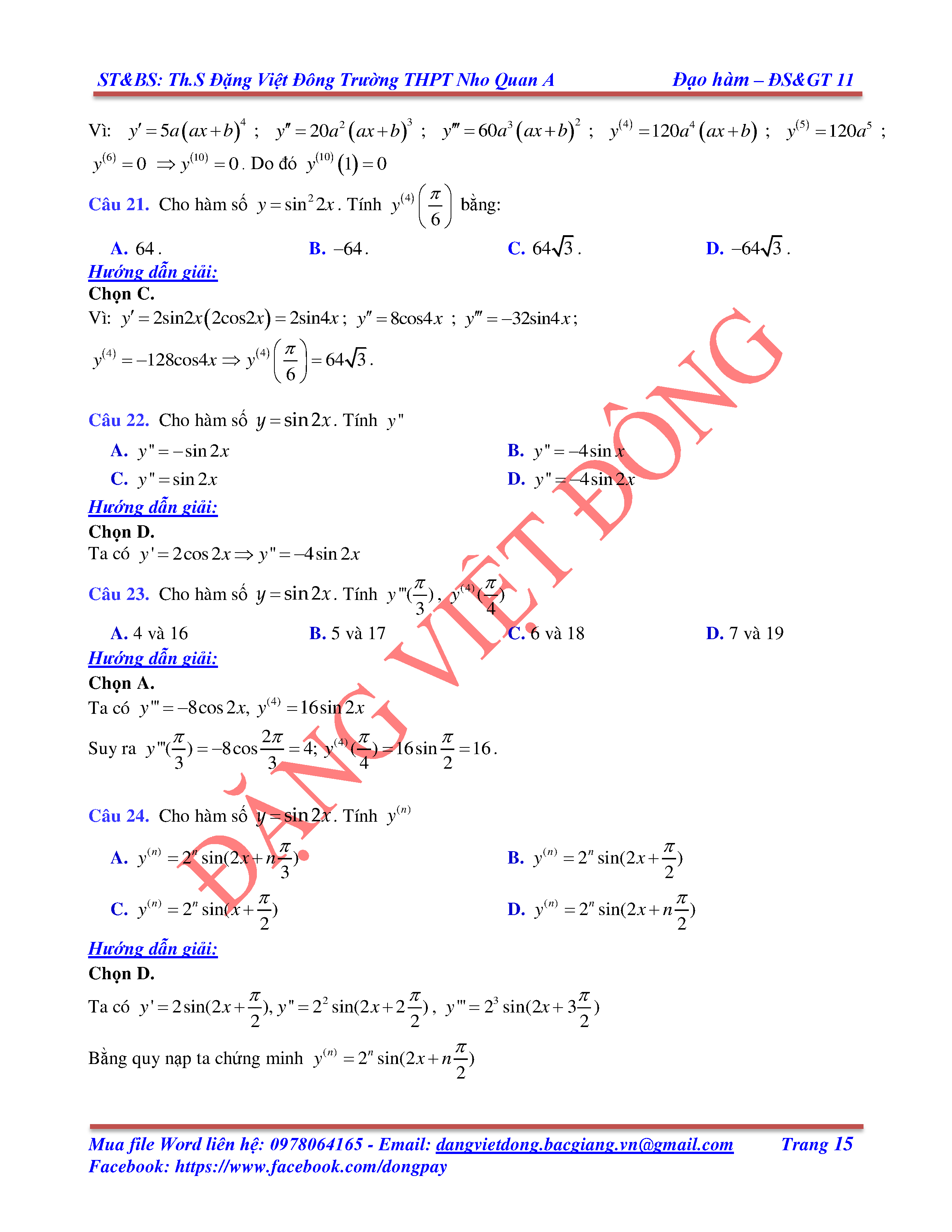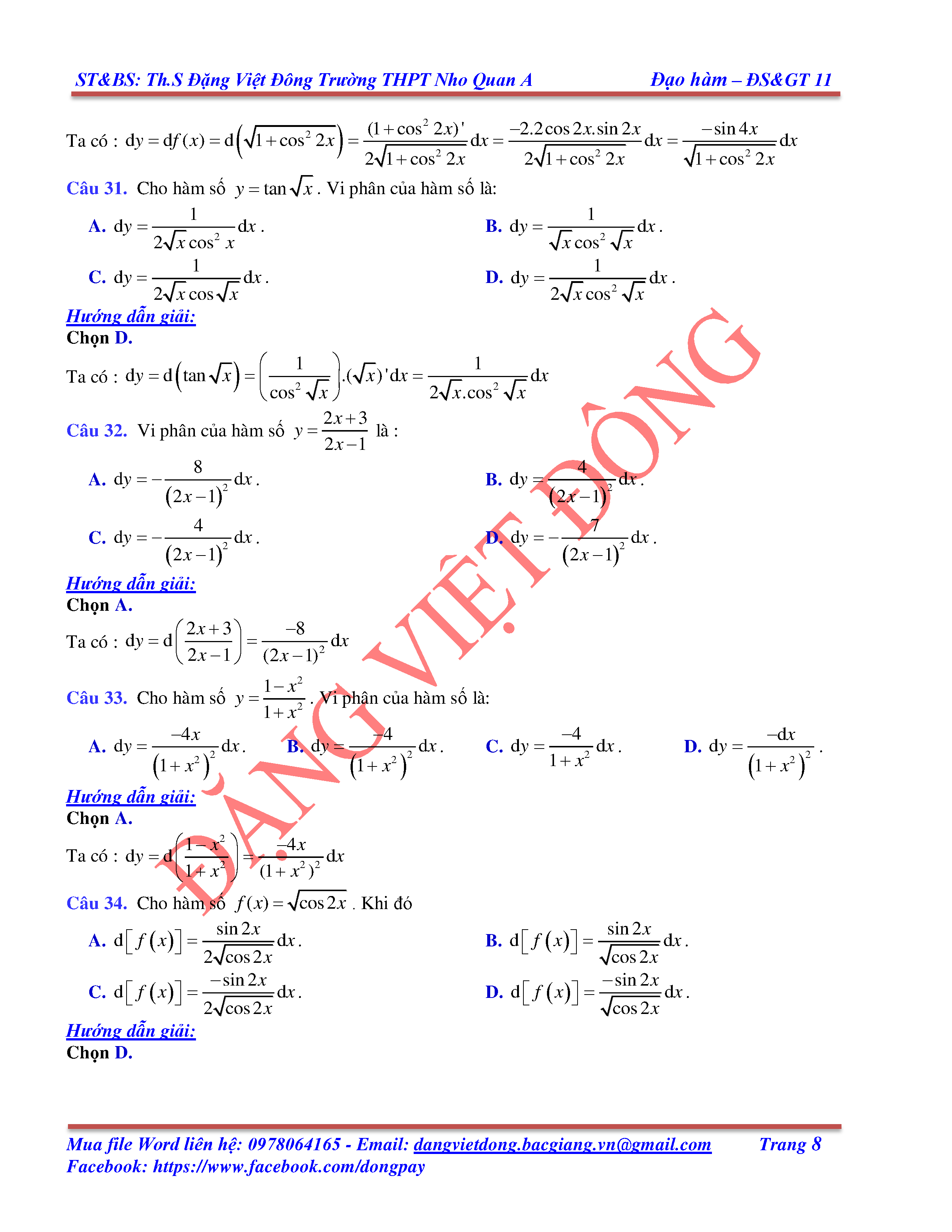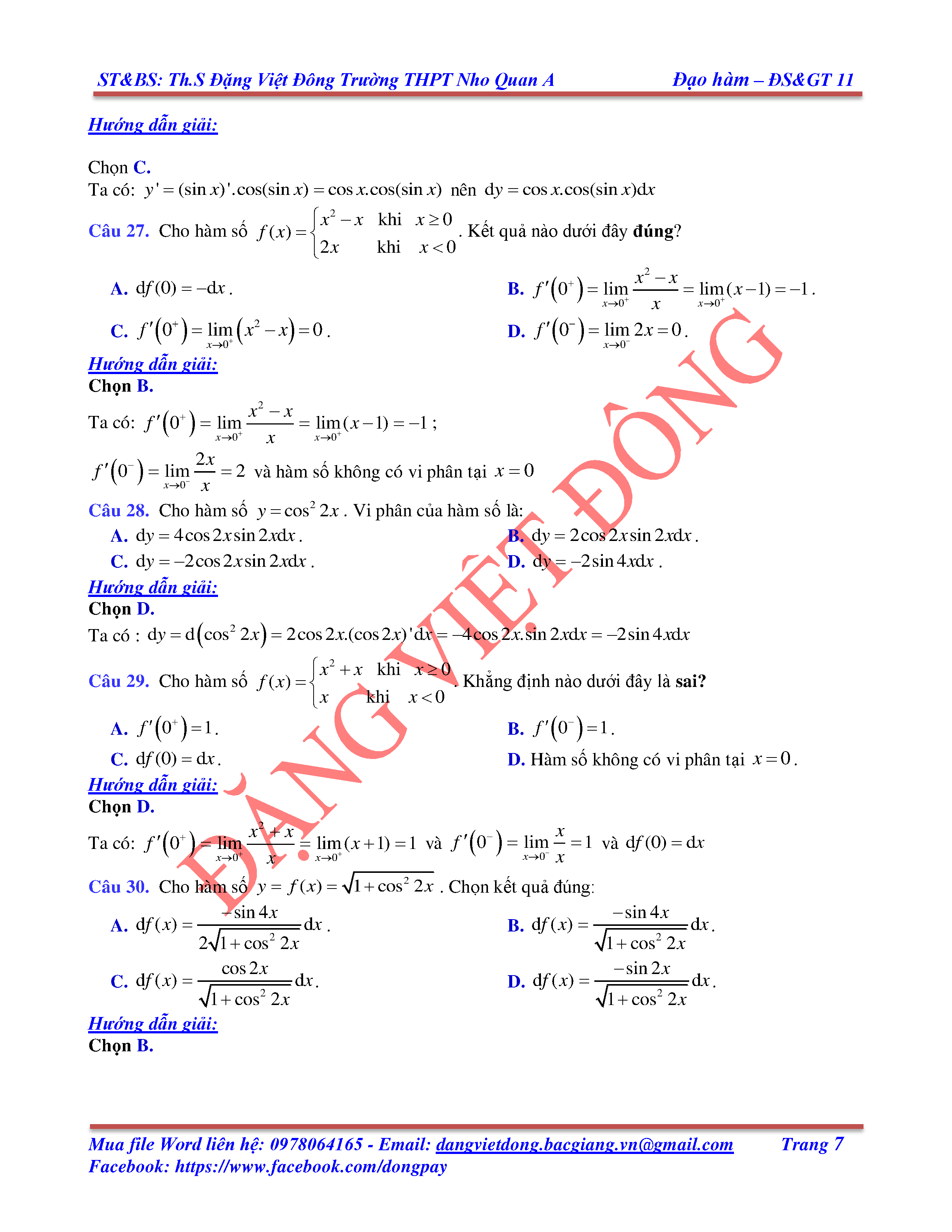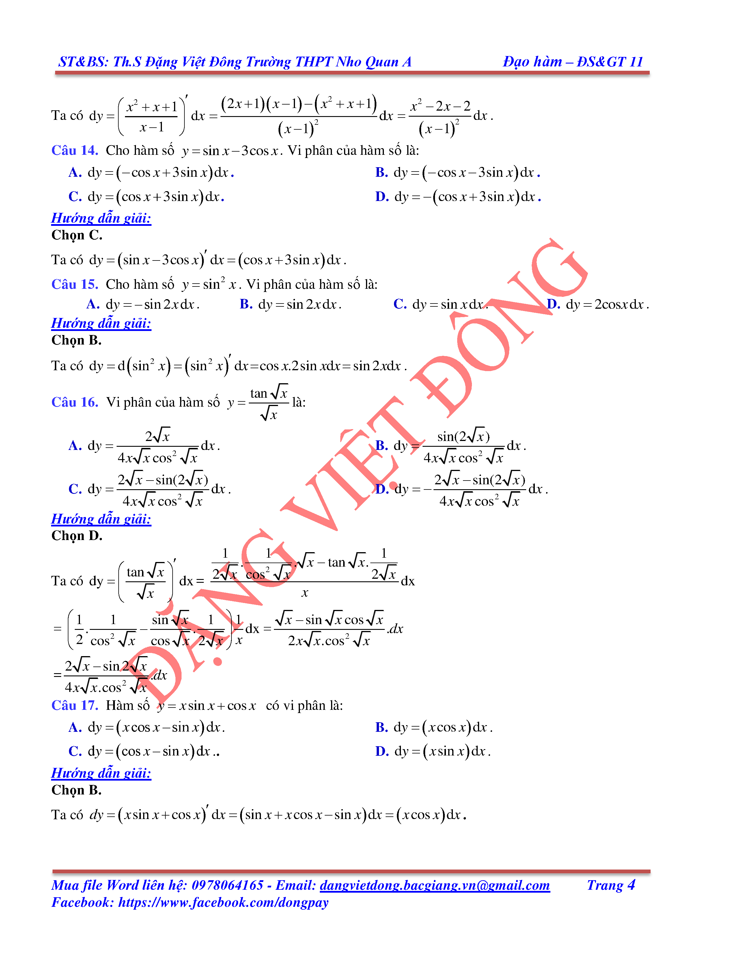 VI PHÂN CỦA HÀM SỐ - TOÁN 11