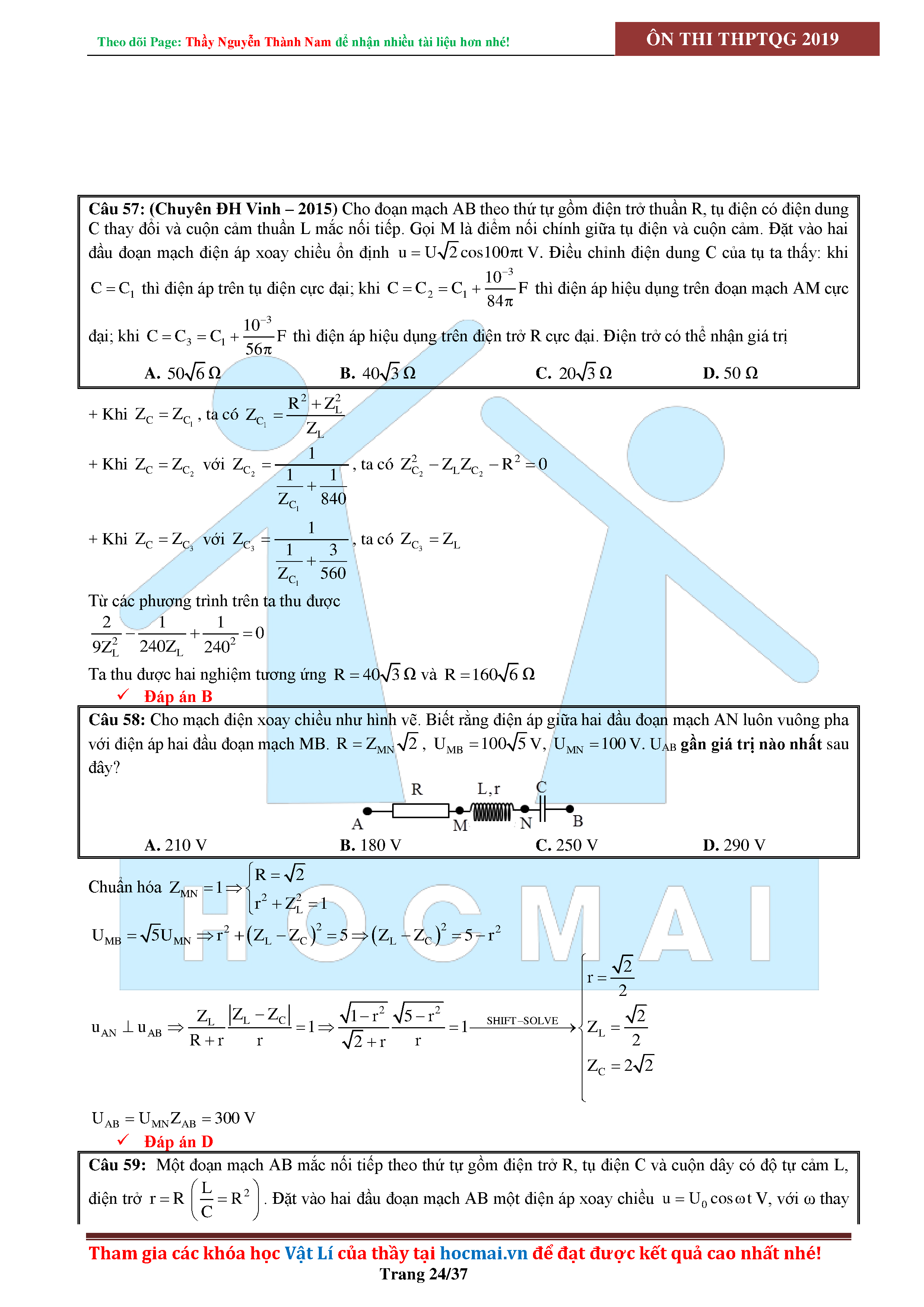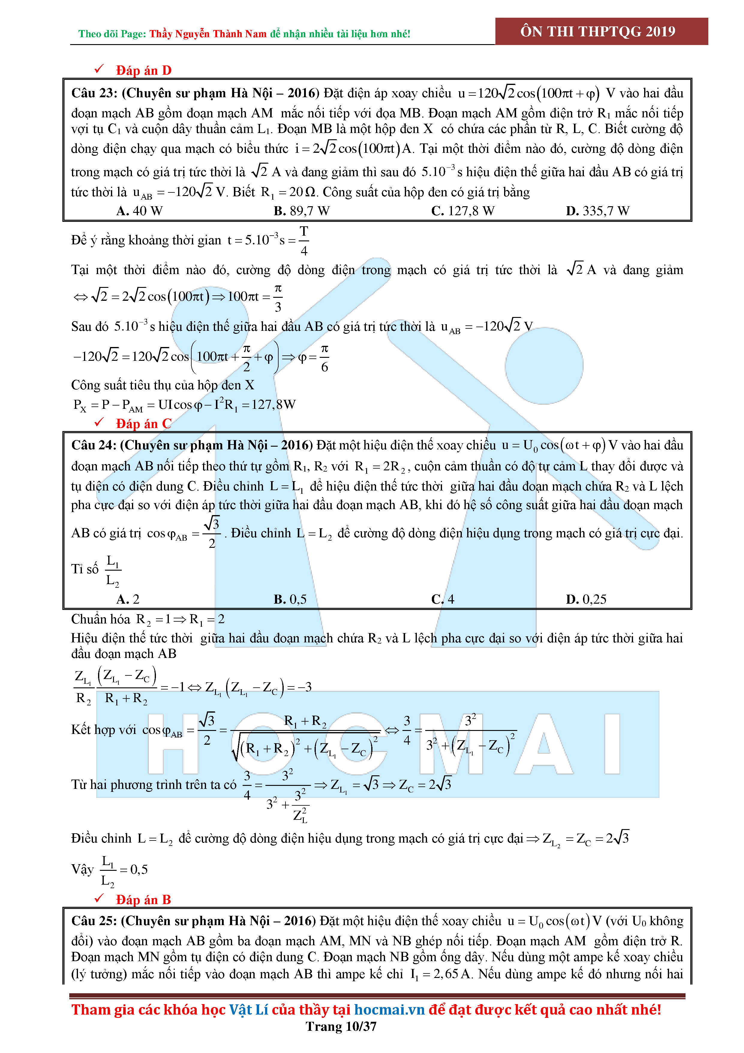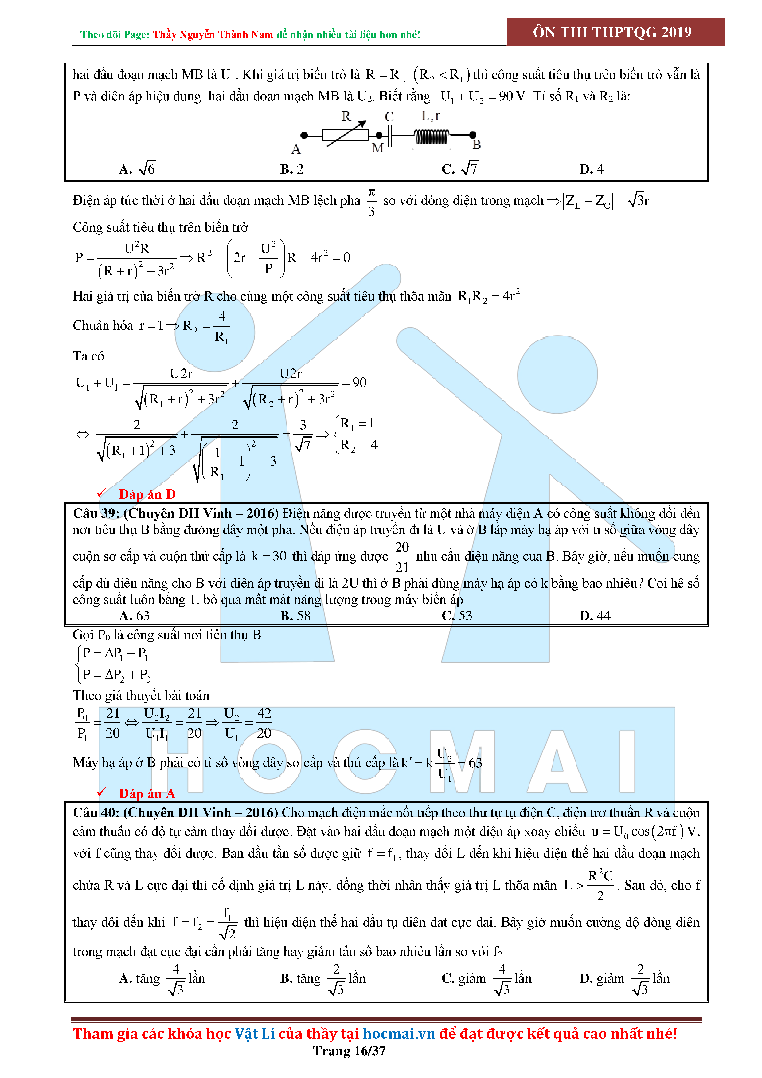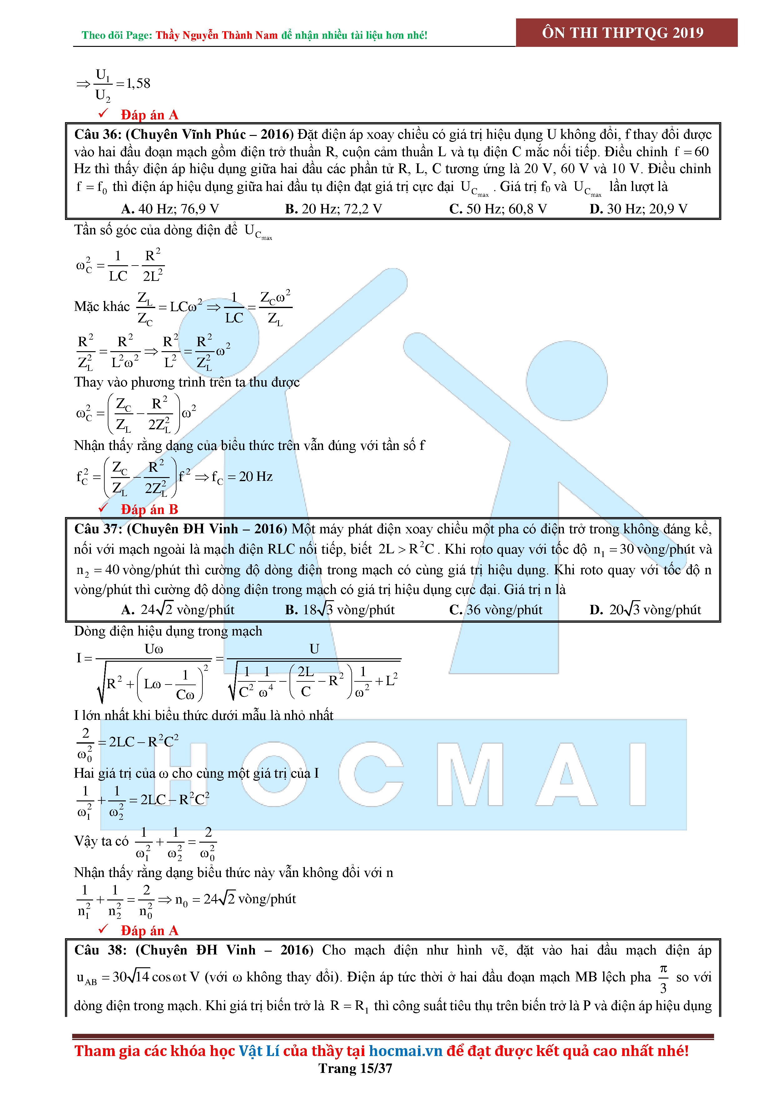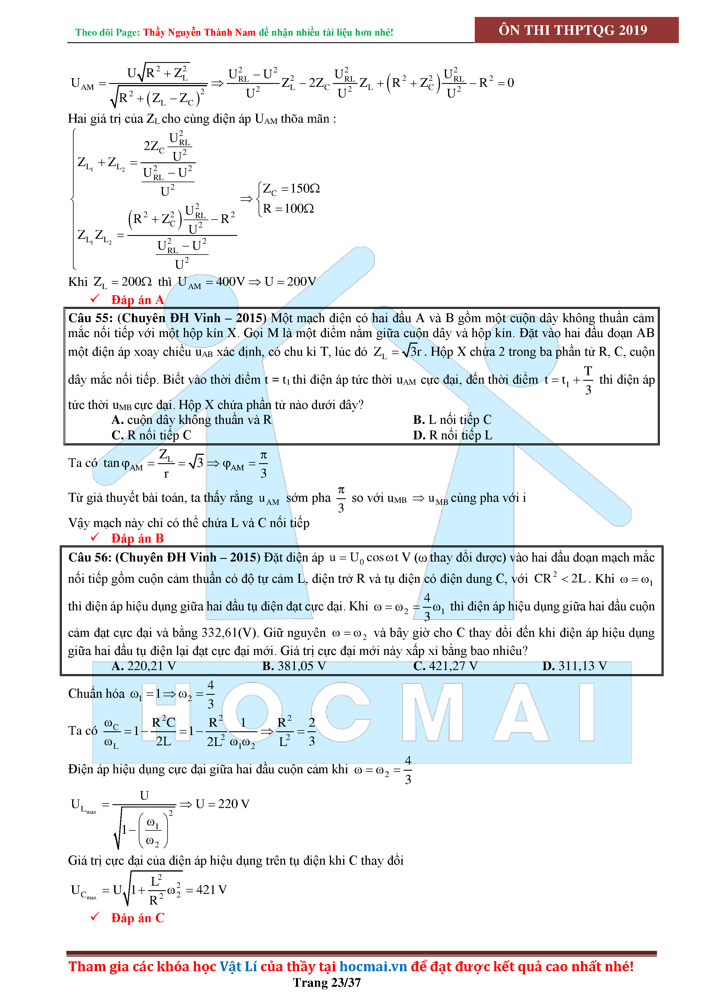 Câu hỏi trắc nghiệm VDC chương điện xoay chiều - có đáp án