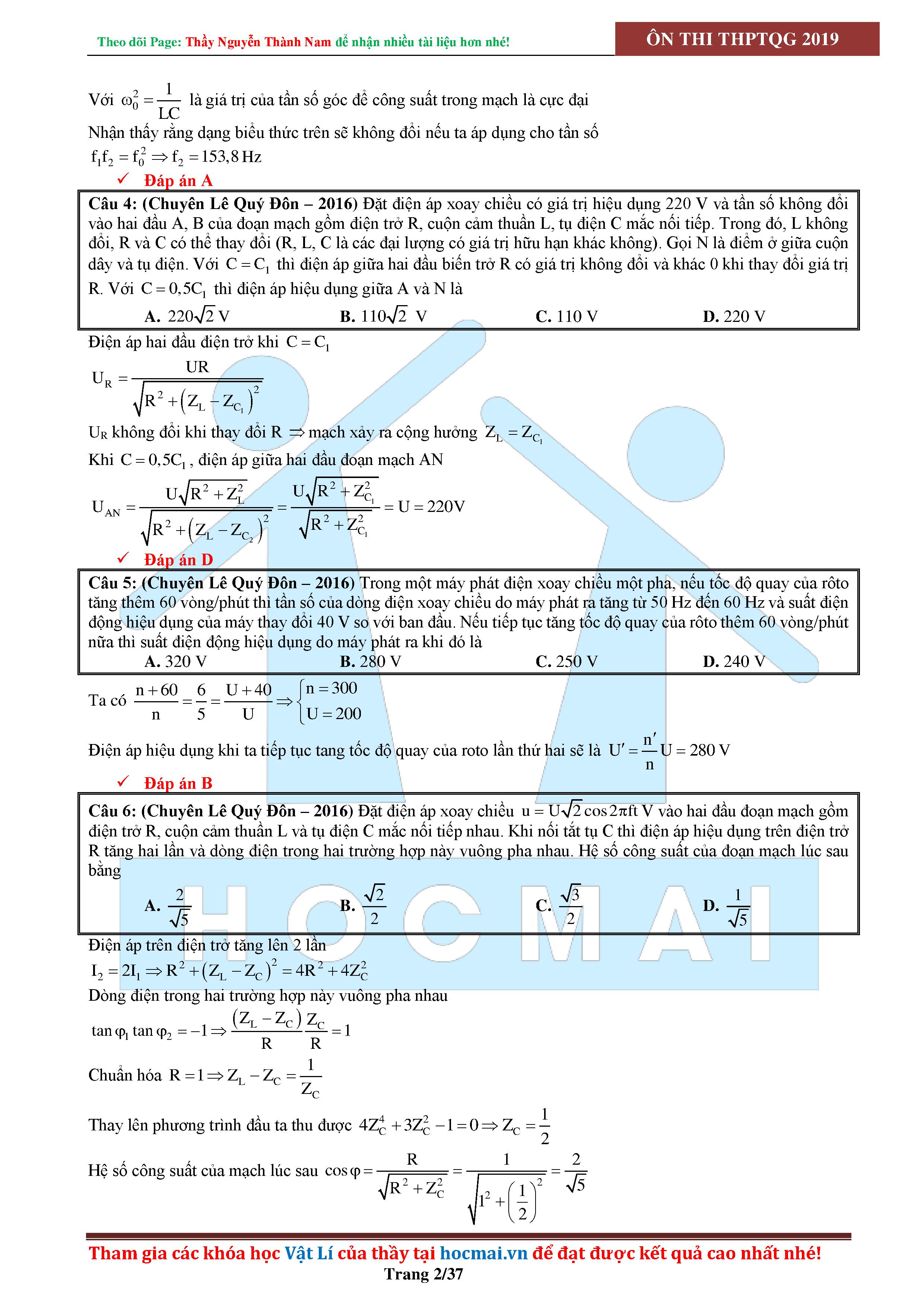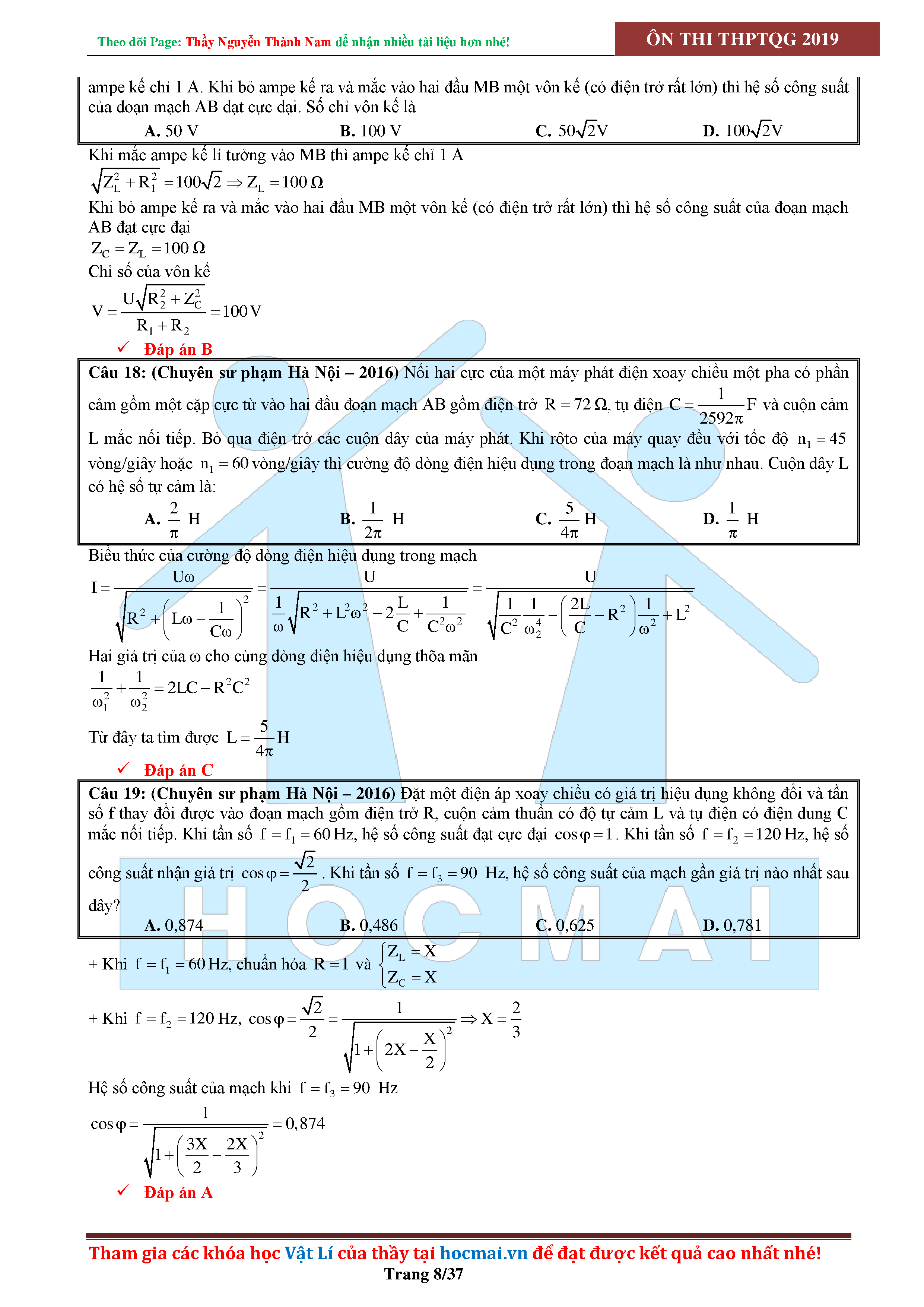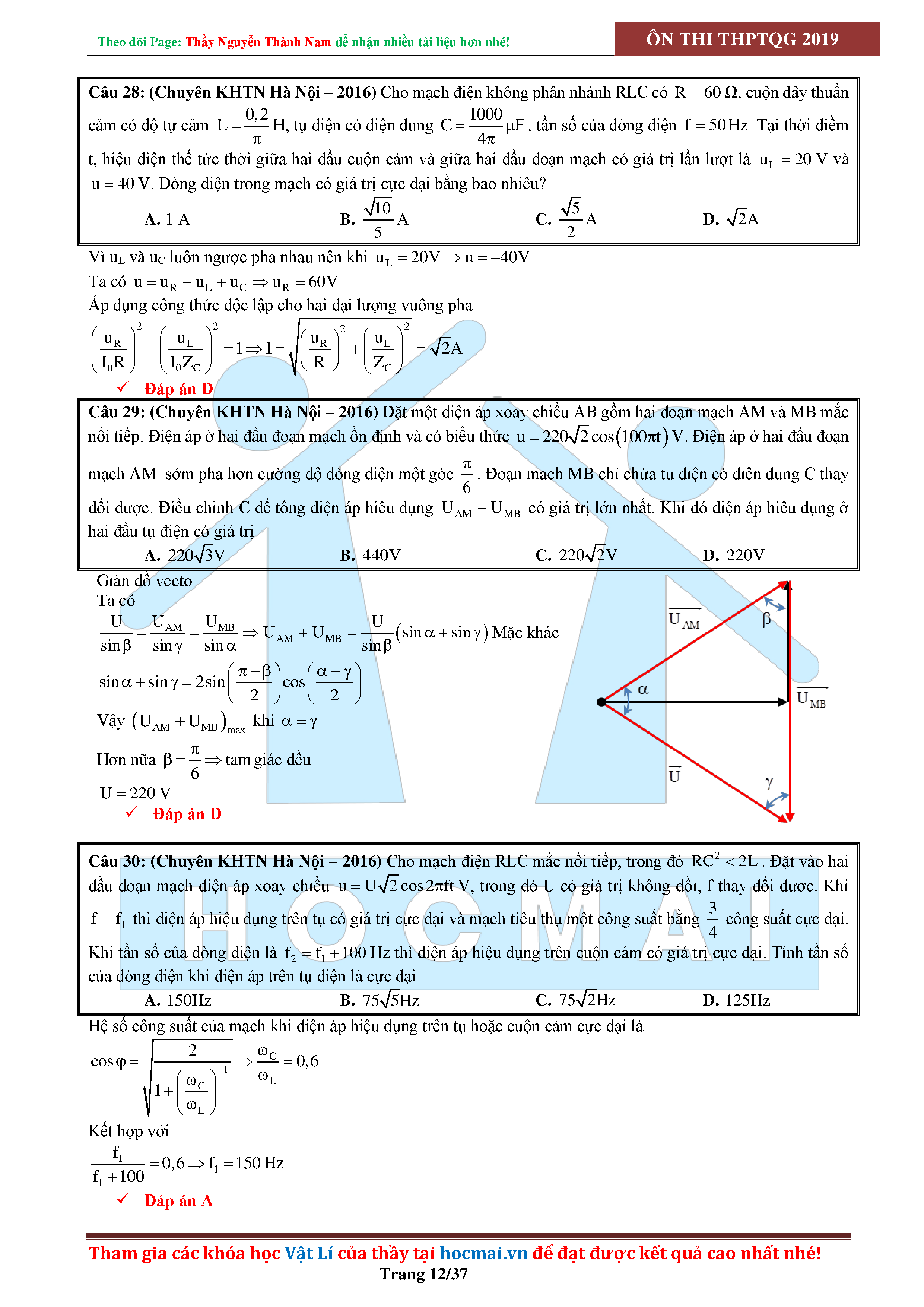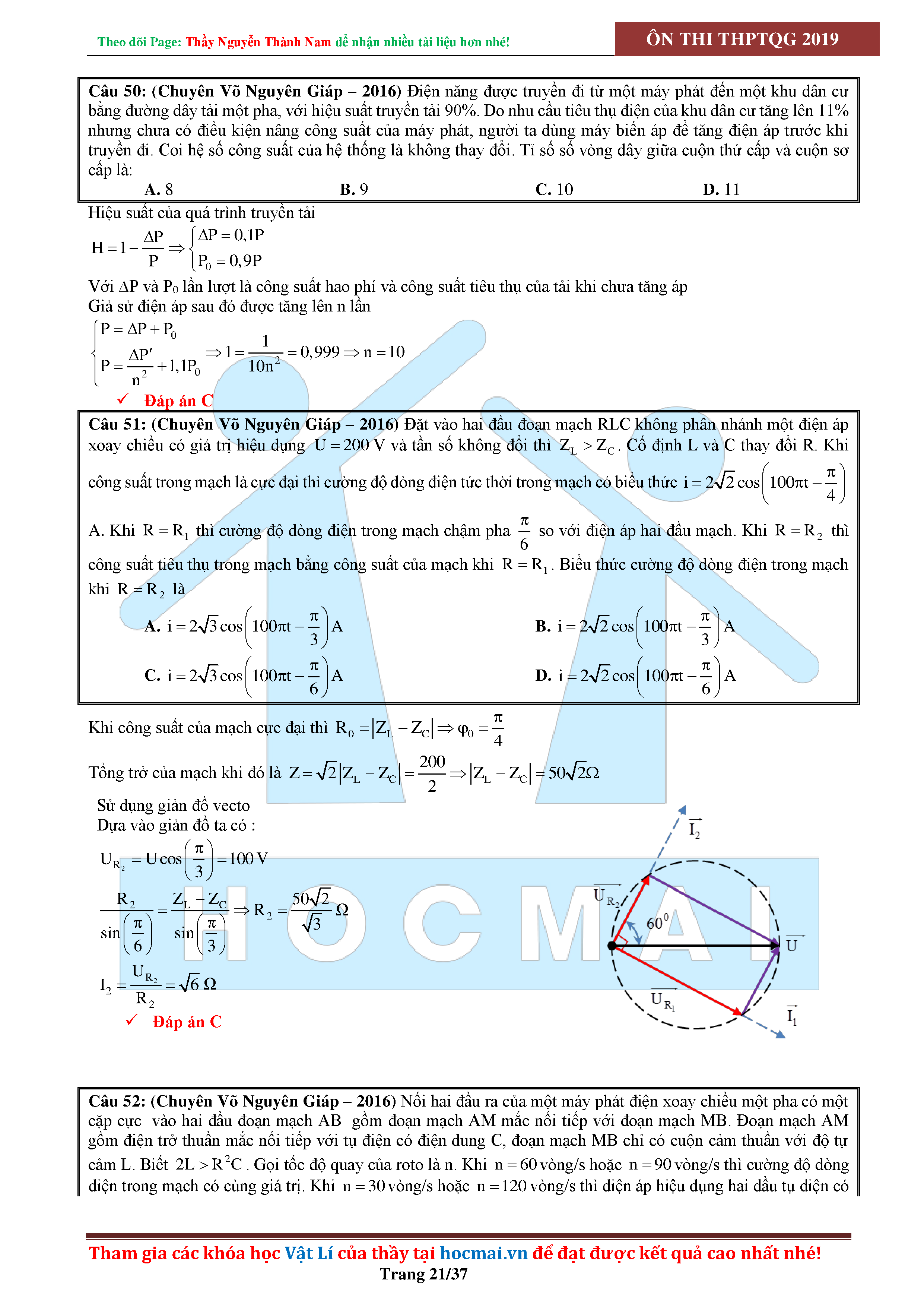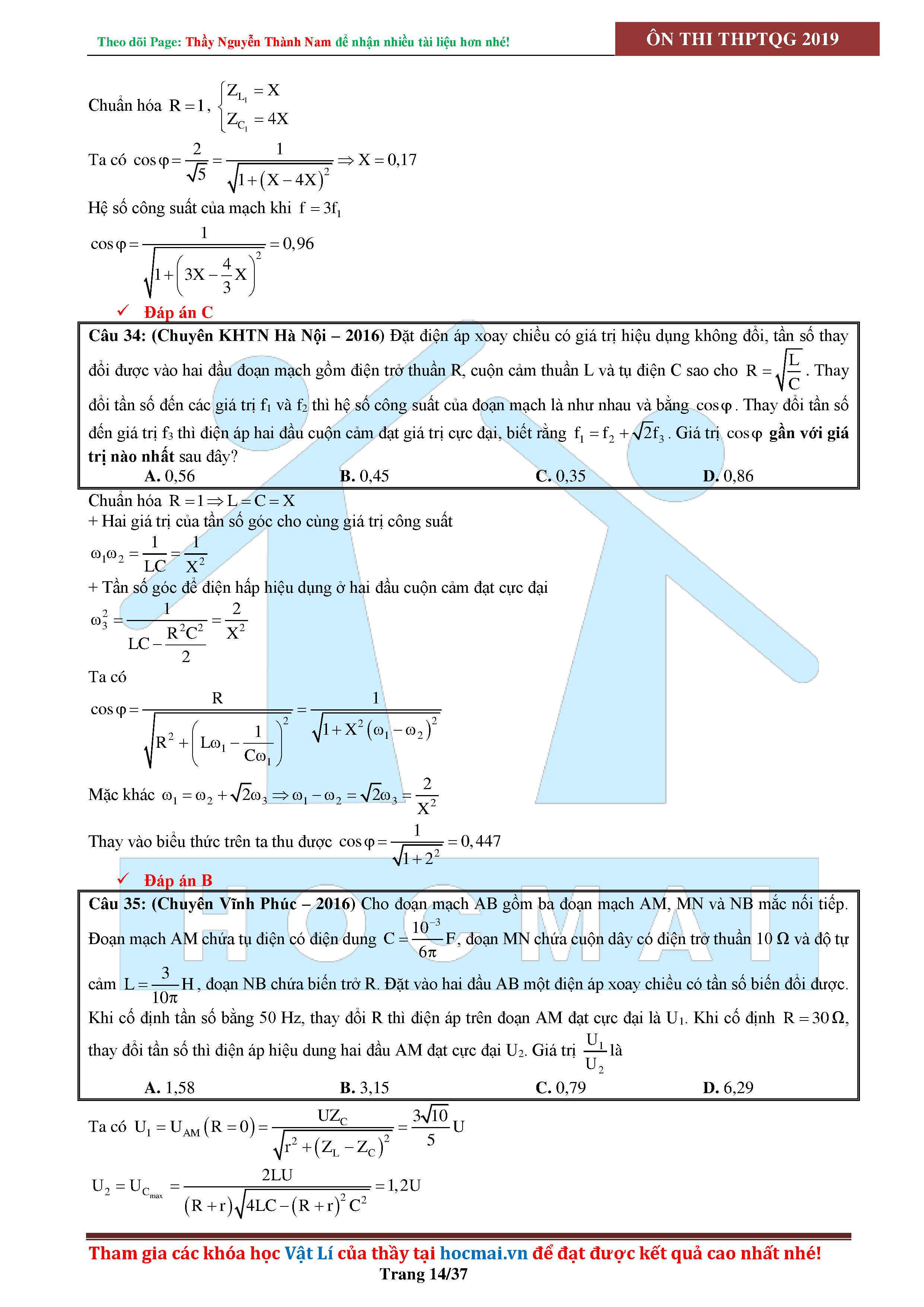 Câu hỏi trắc nghiệm VDC chương điện xoay chiều - có đáp án