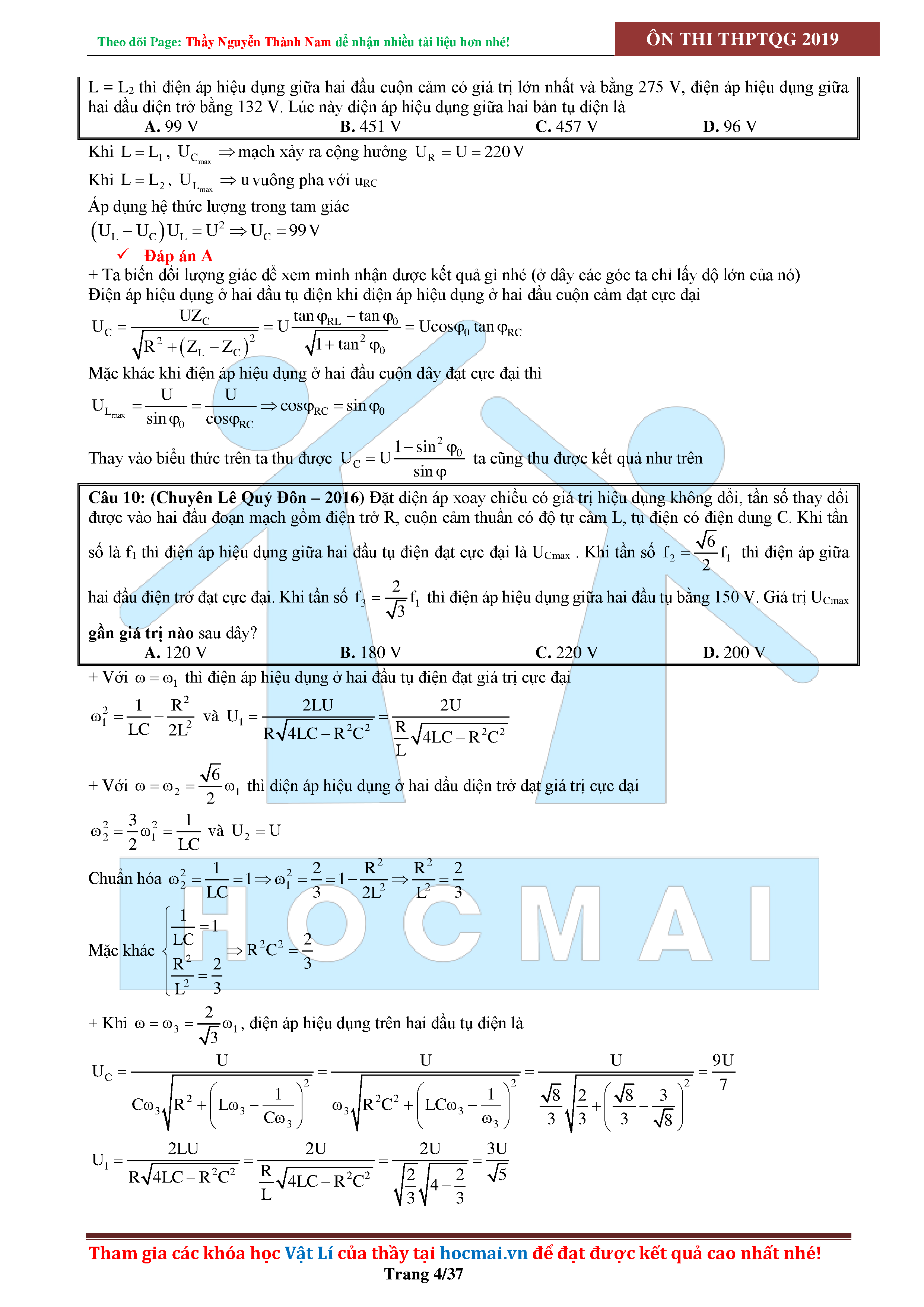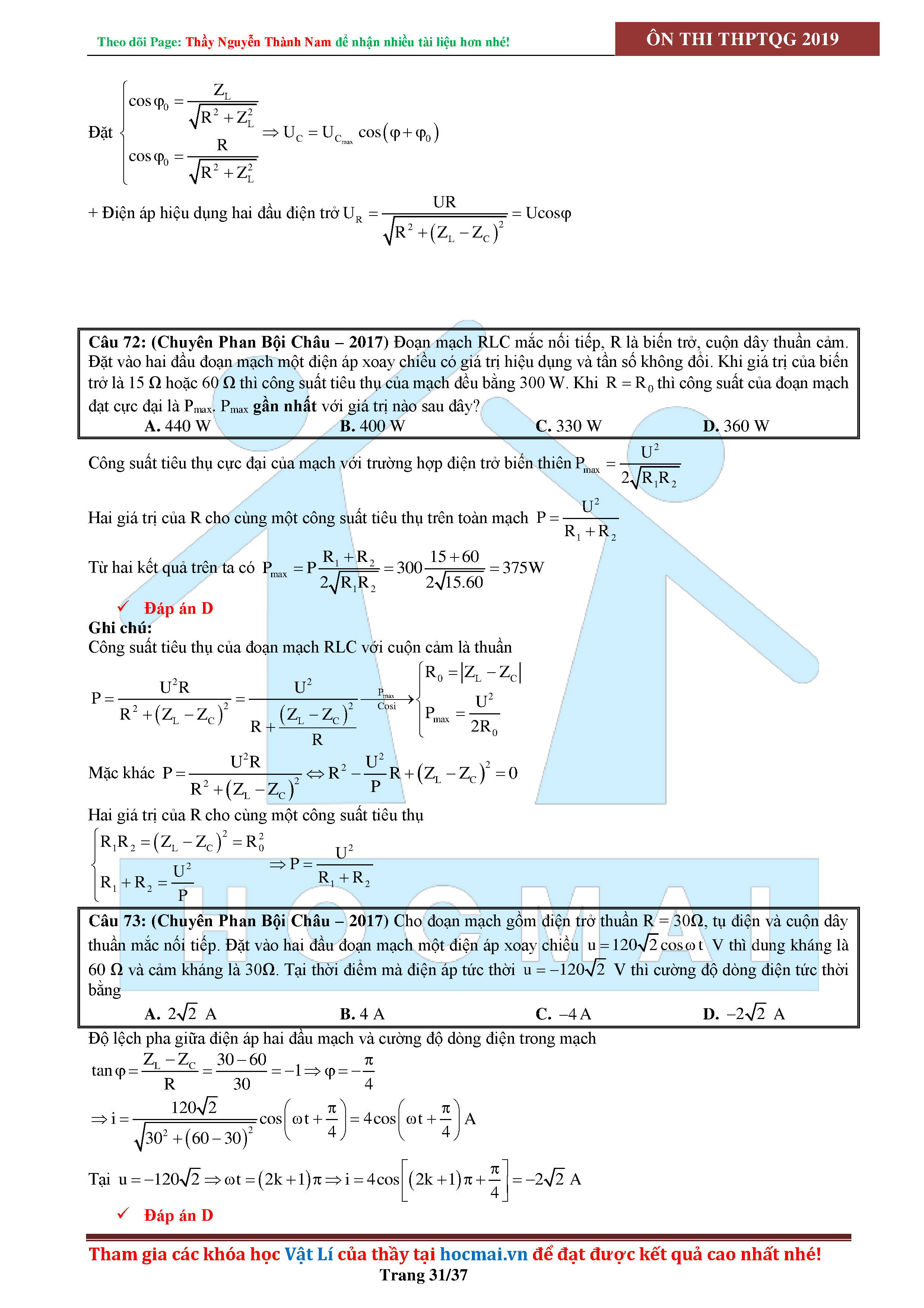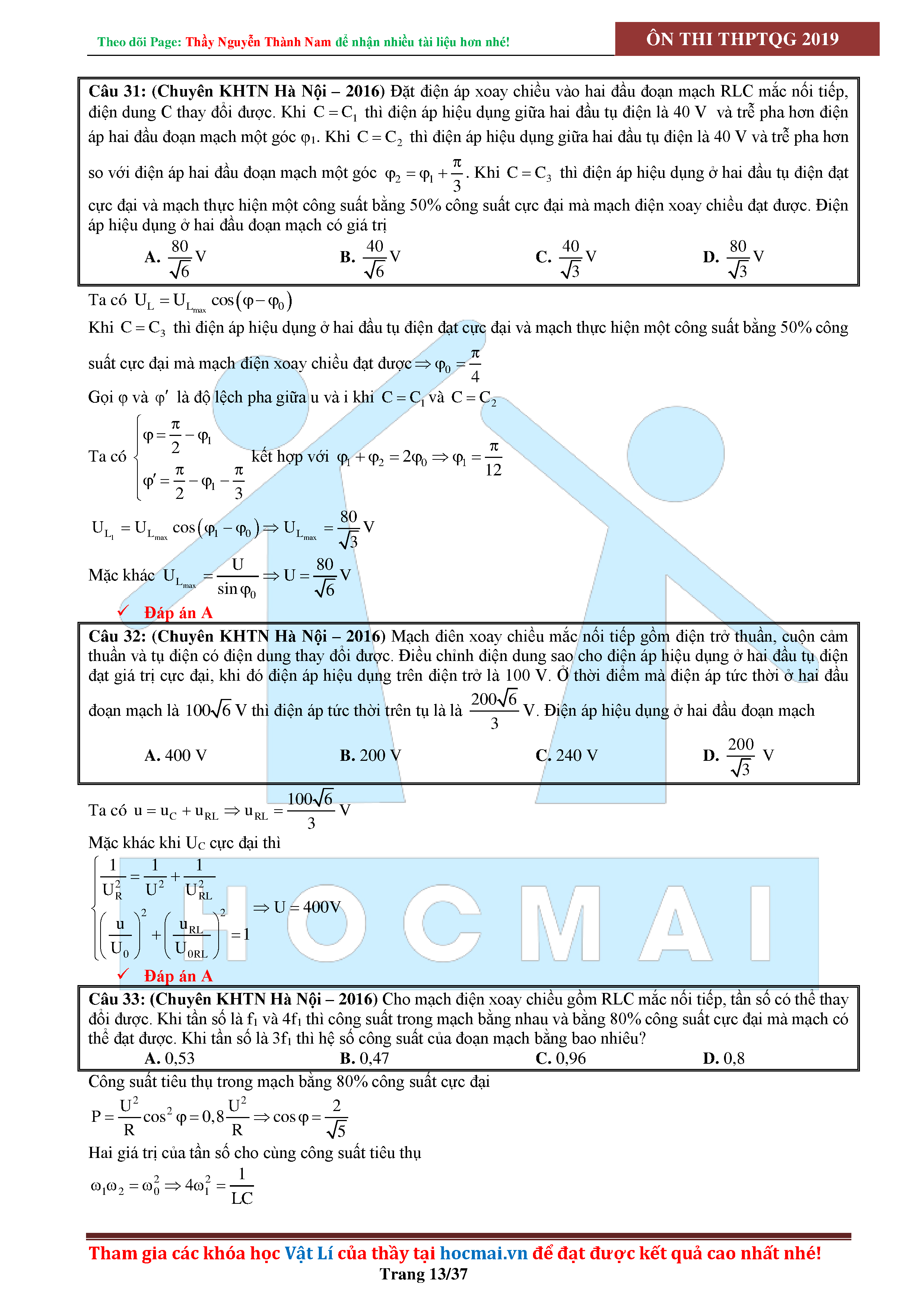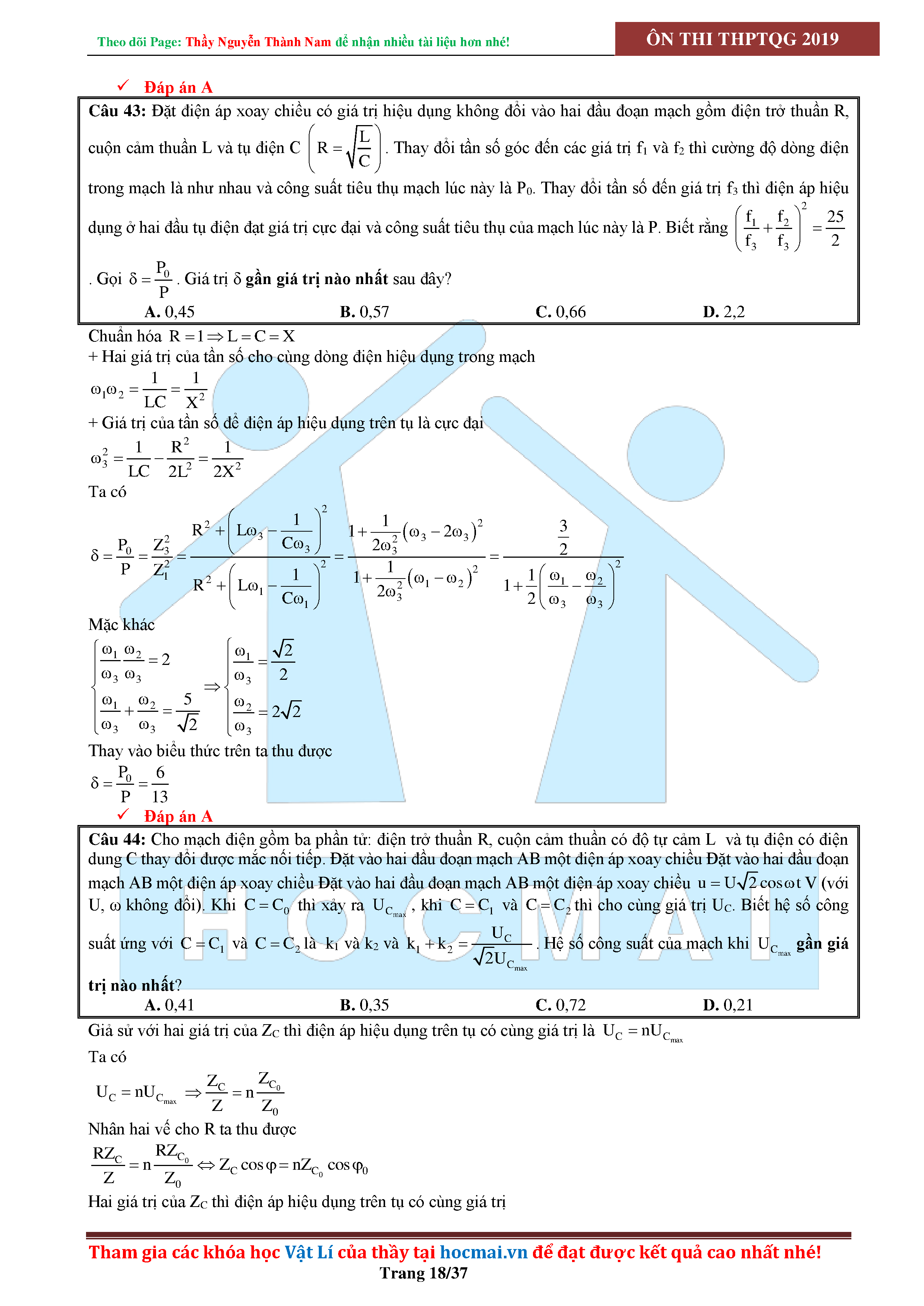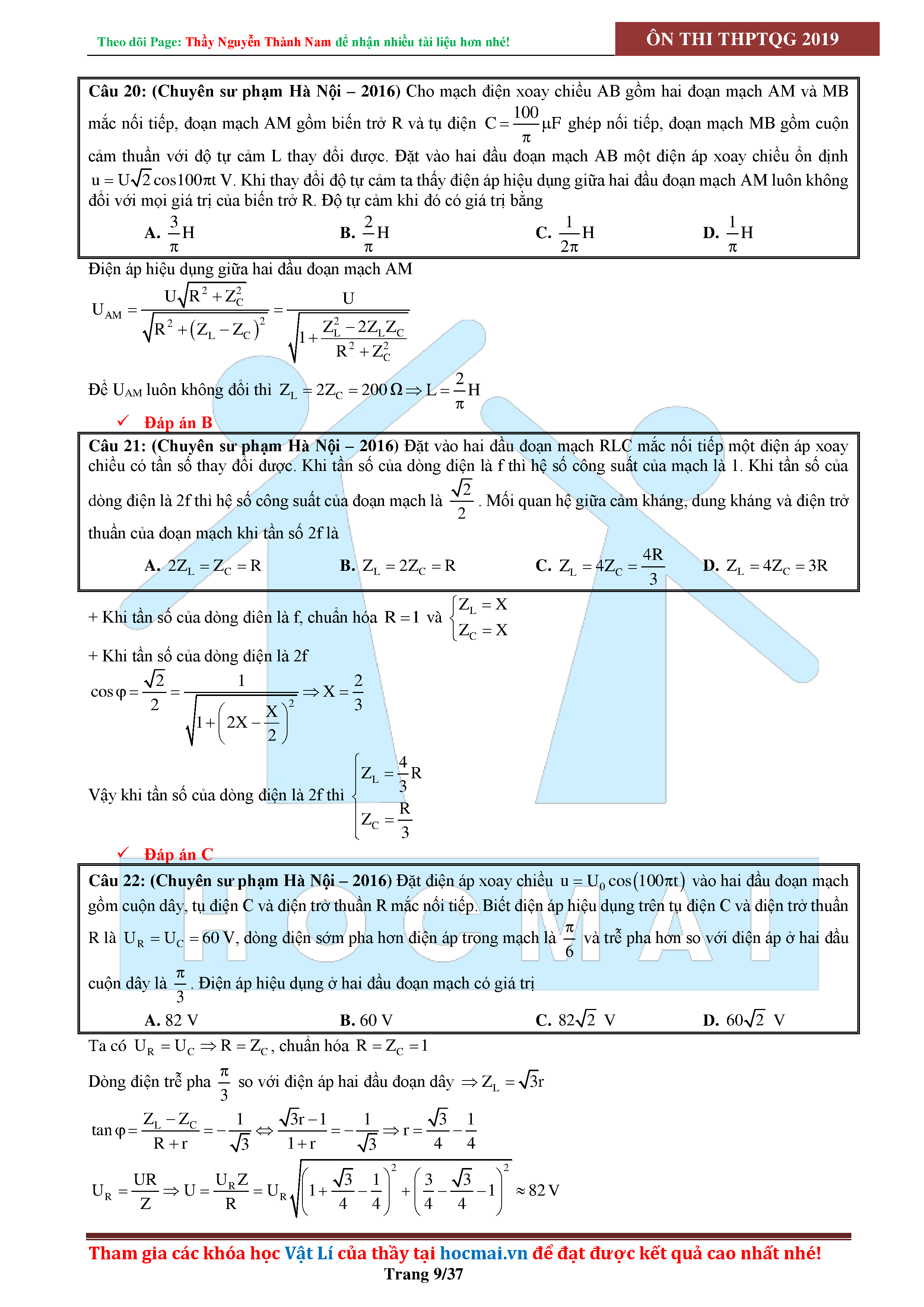 Câu hỏi trắc nghiệm VDC chương điện xoay chiều - có đáp án