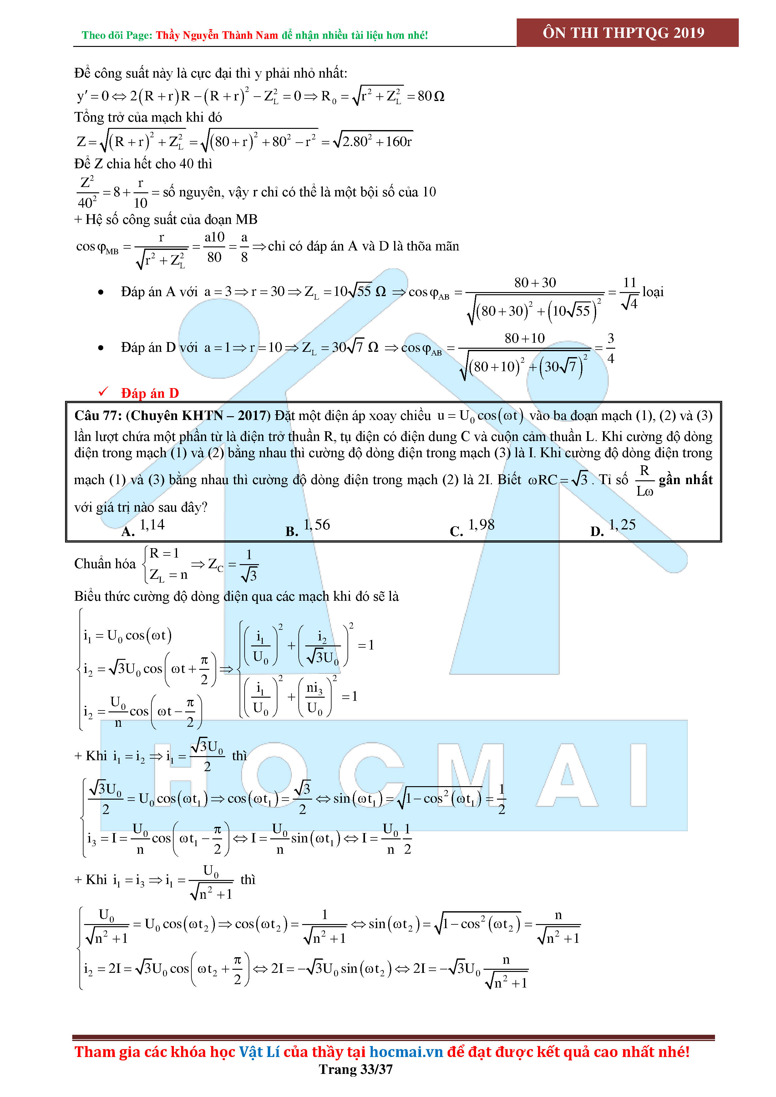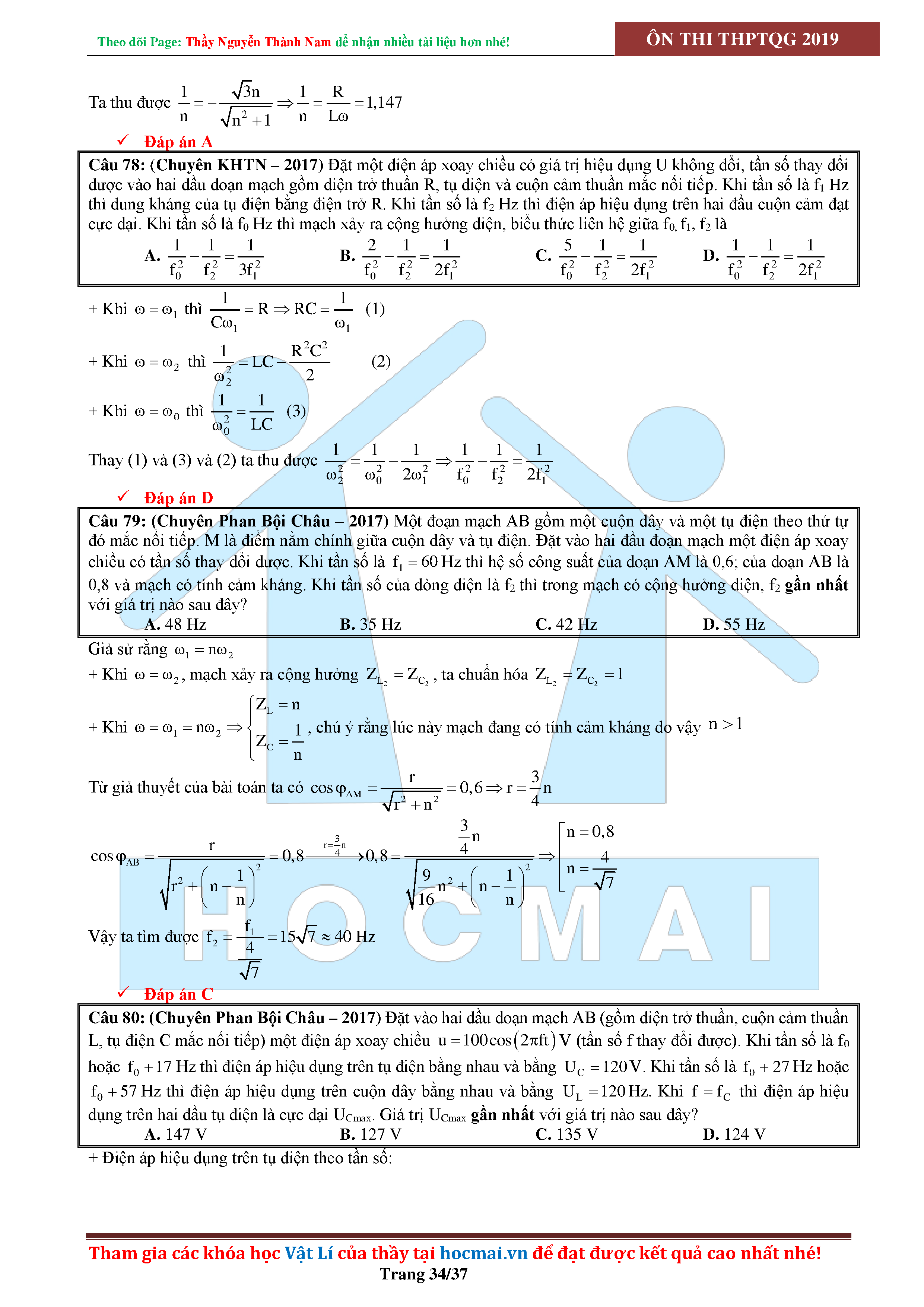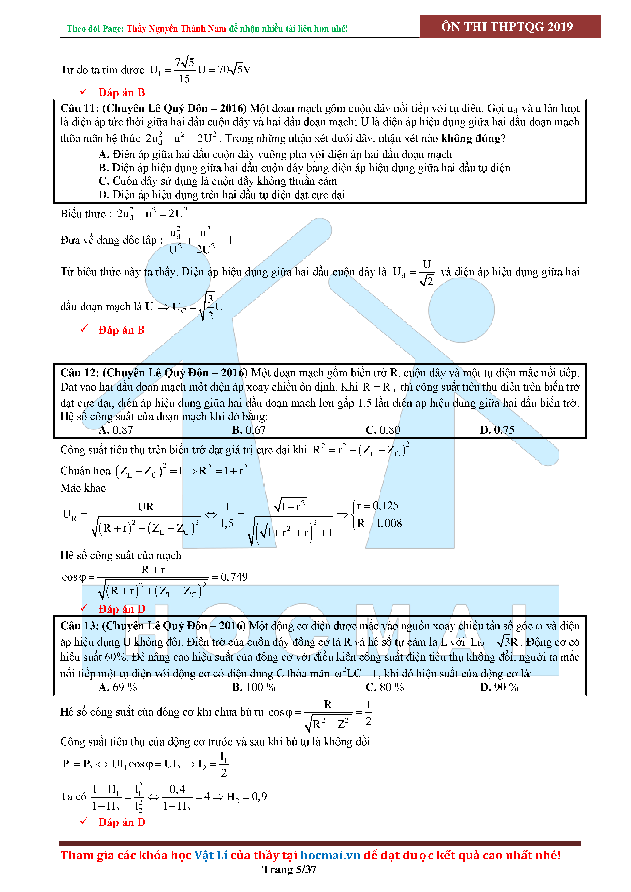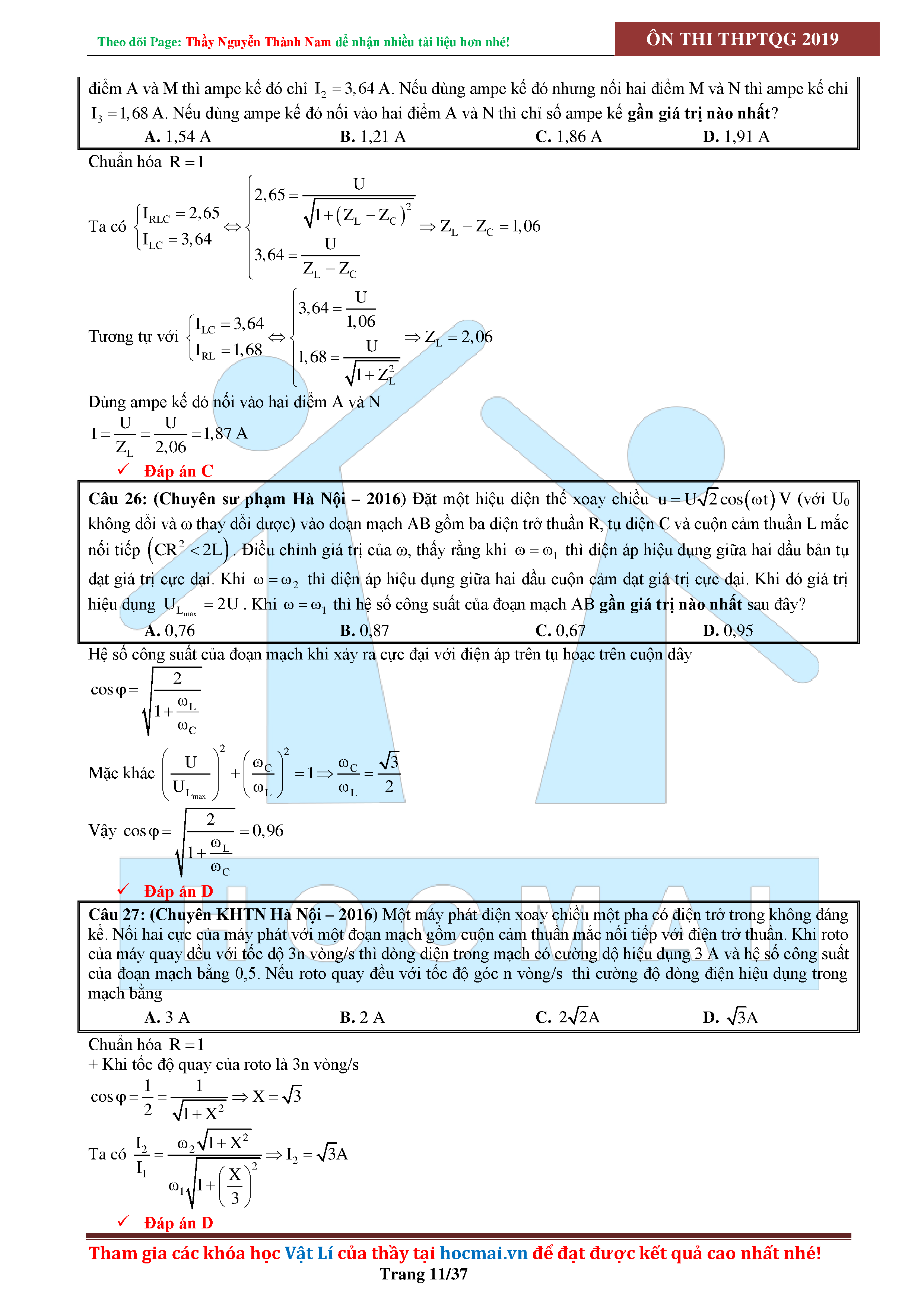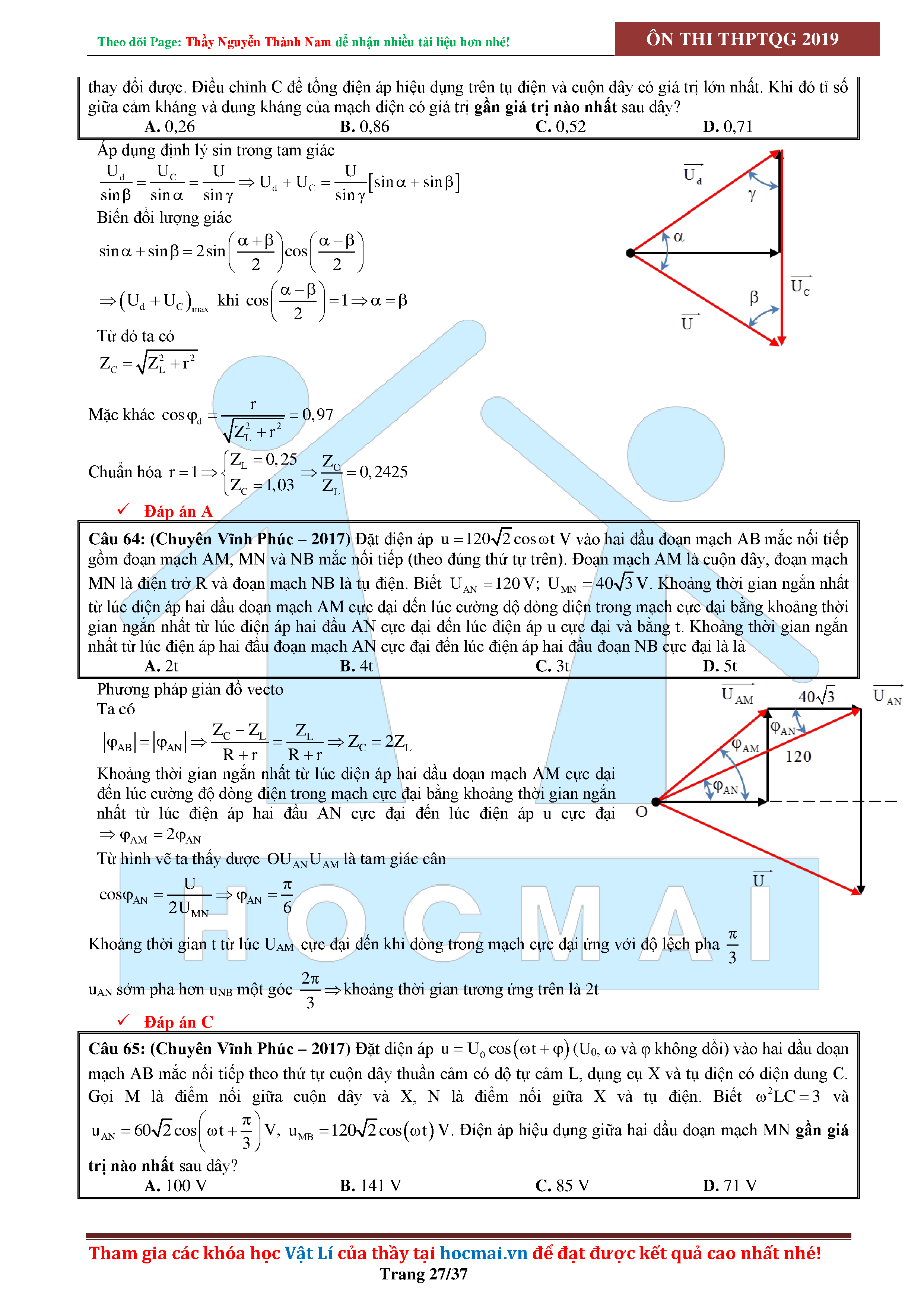Câu hỏi trắc nghiệm VDC chương điện xoay chiều - có đáp án