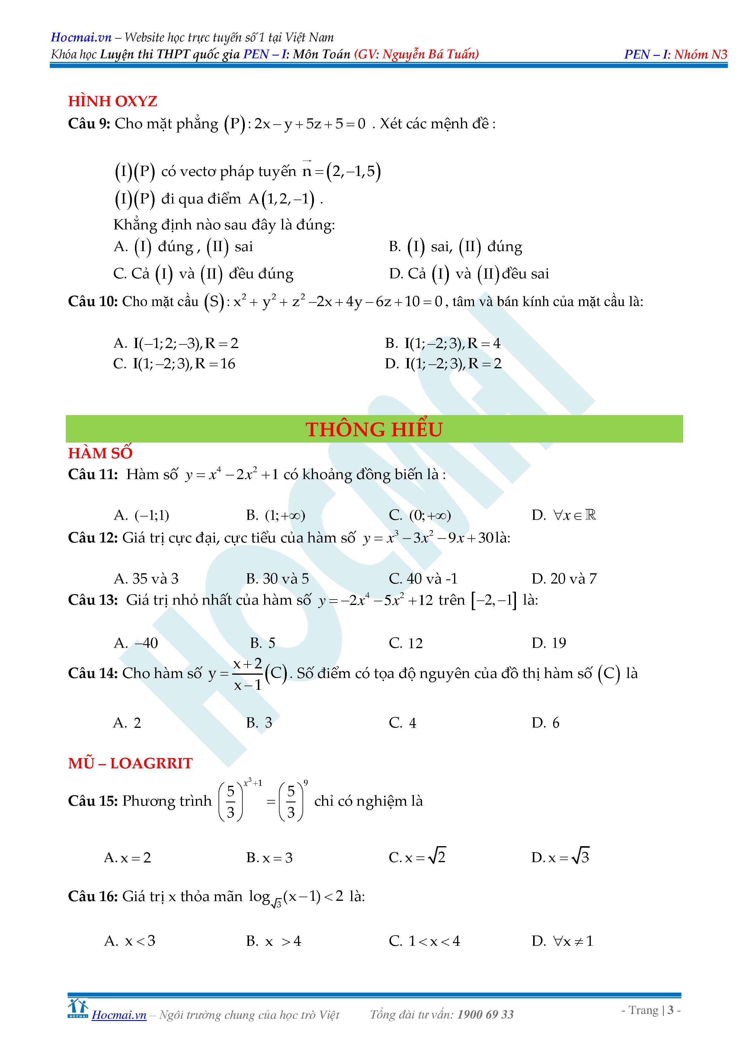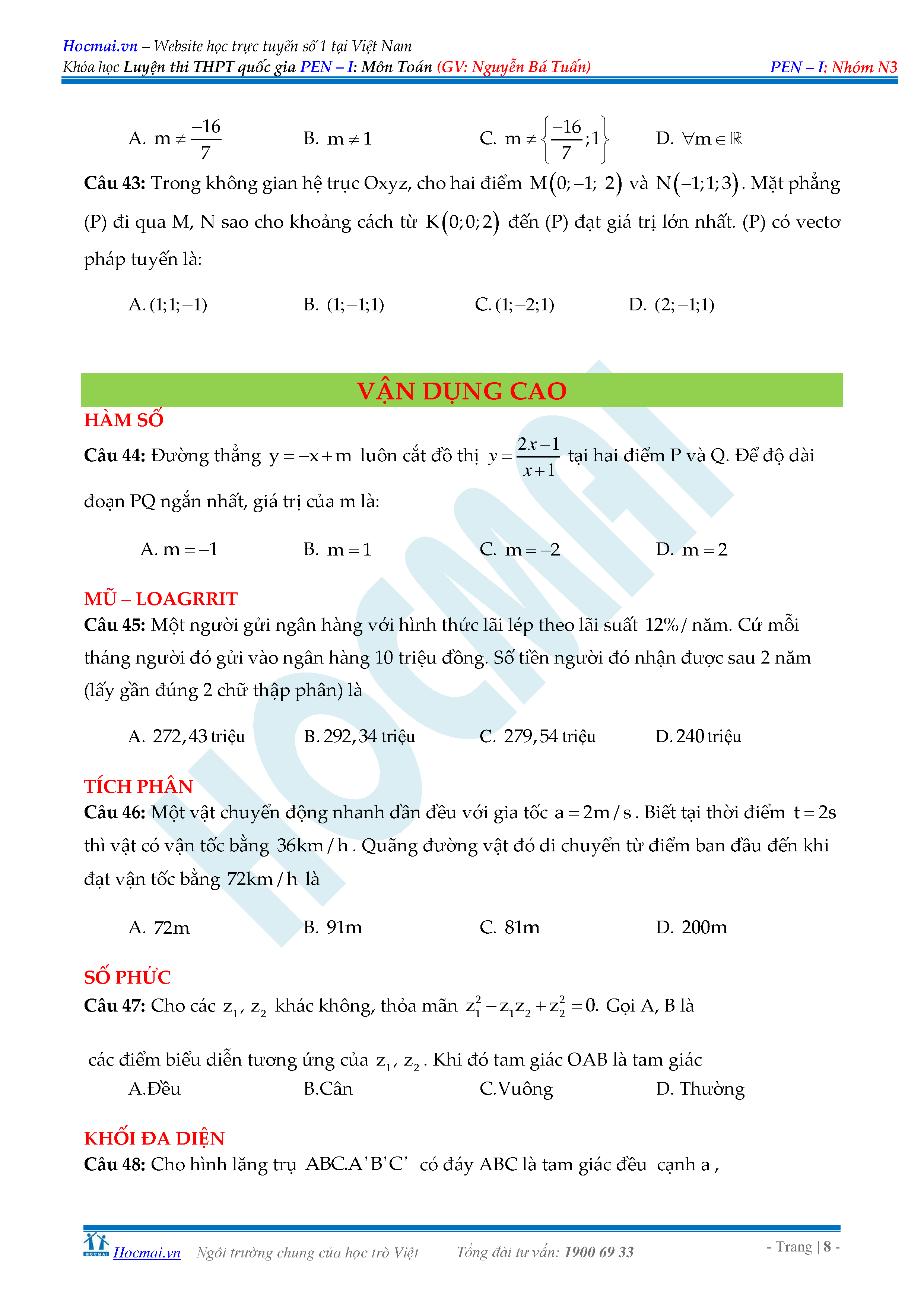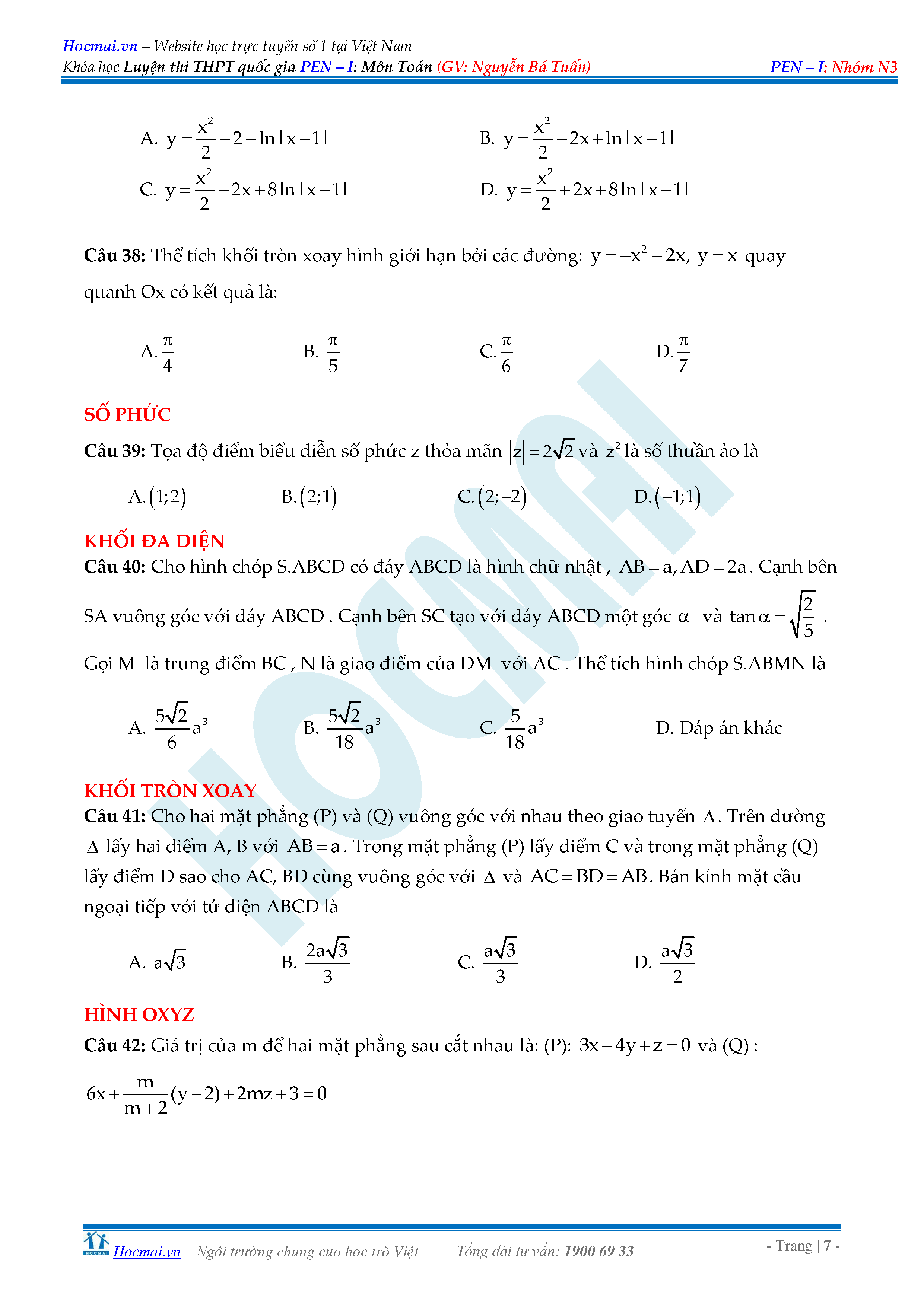 Đề luyện thi THPTQG môn Toán - đề 1 - thầy Nguyễn Bá Tuấn