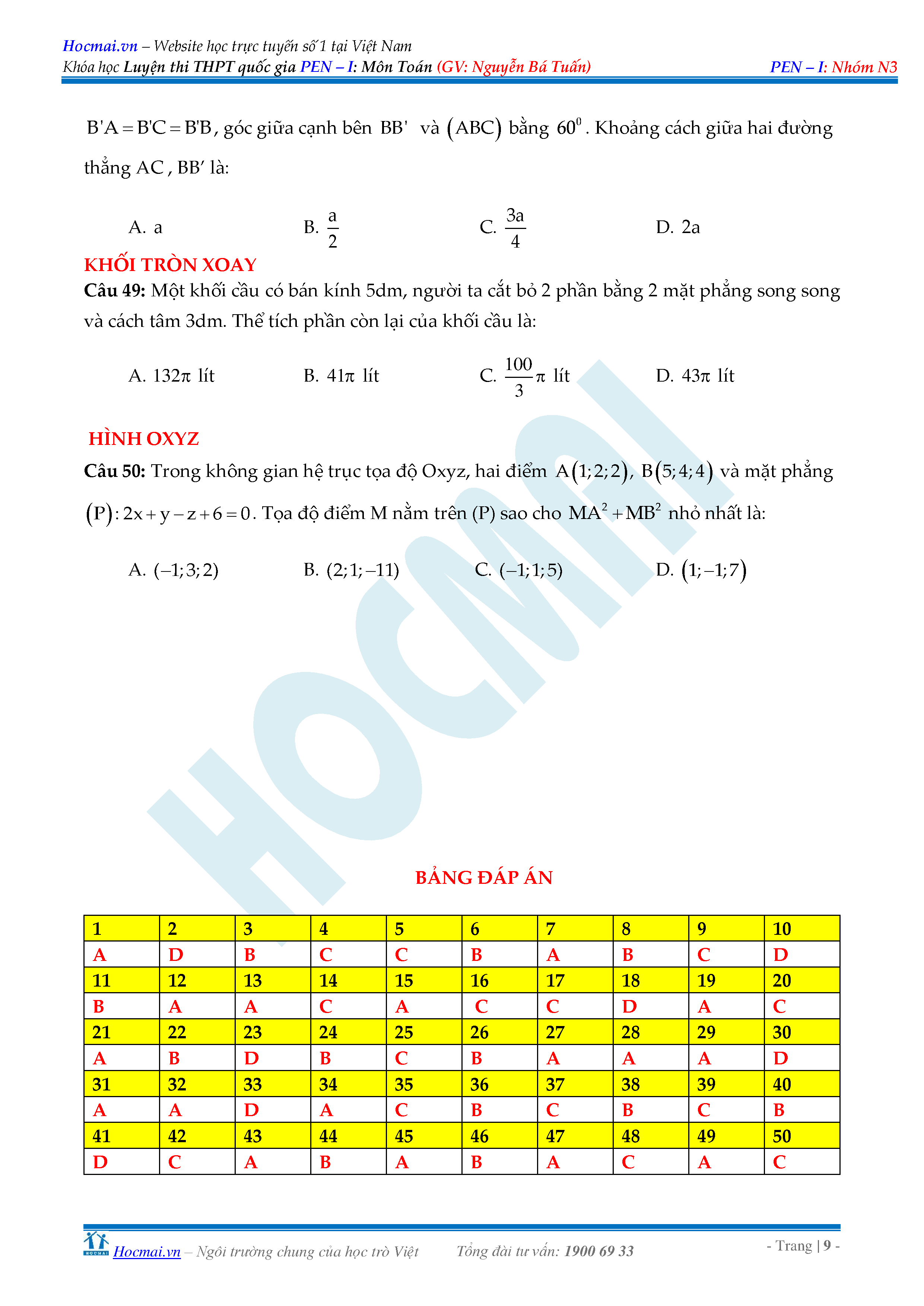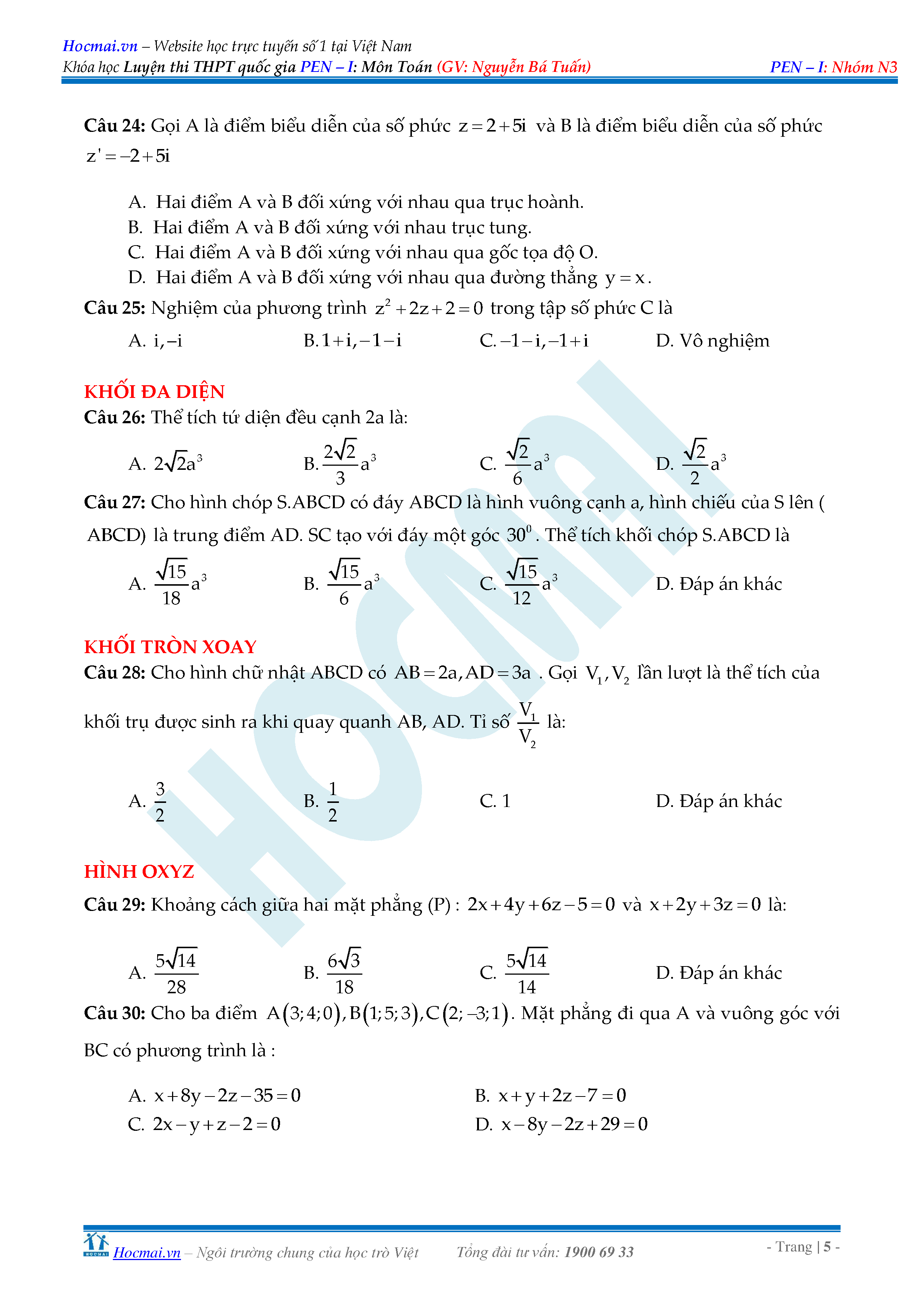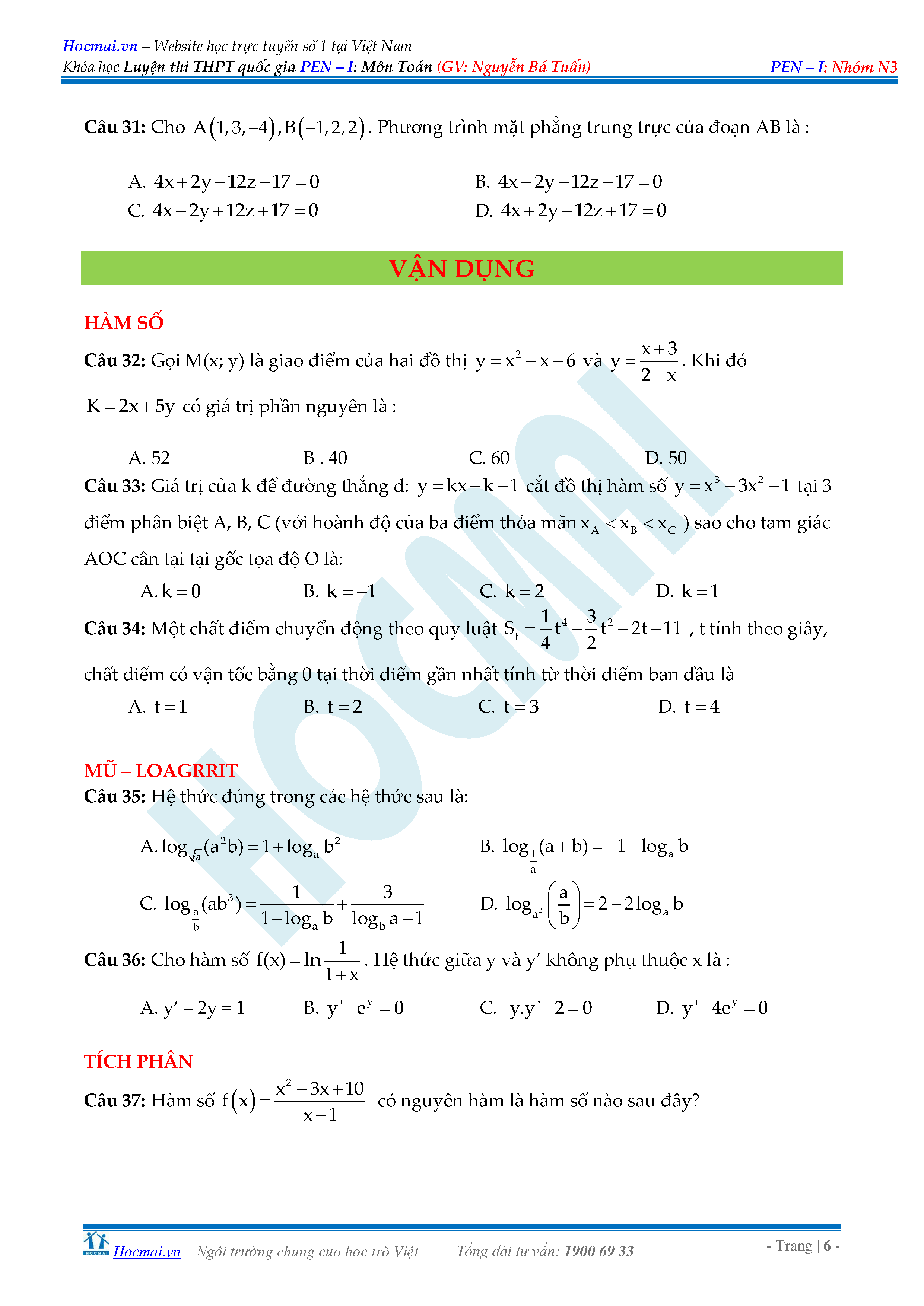 Đề luyện thi THPTQG môn Toán - đề 1 - thầy Nguyễn Bá Tuấn