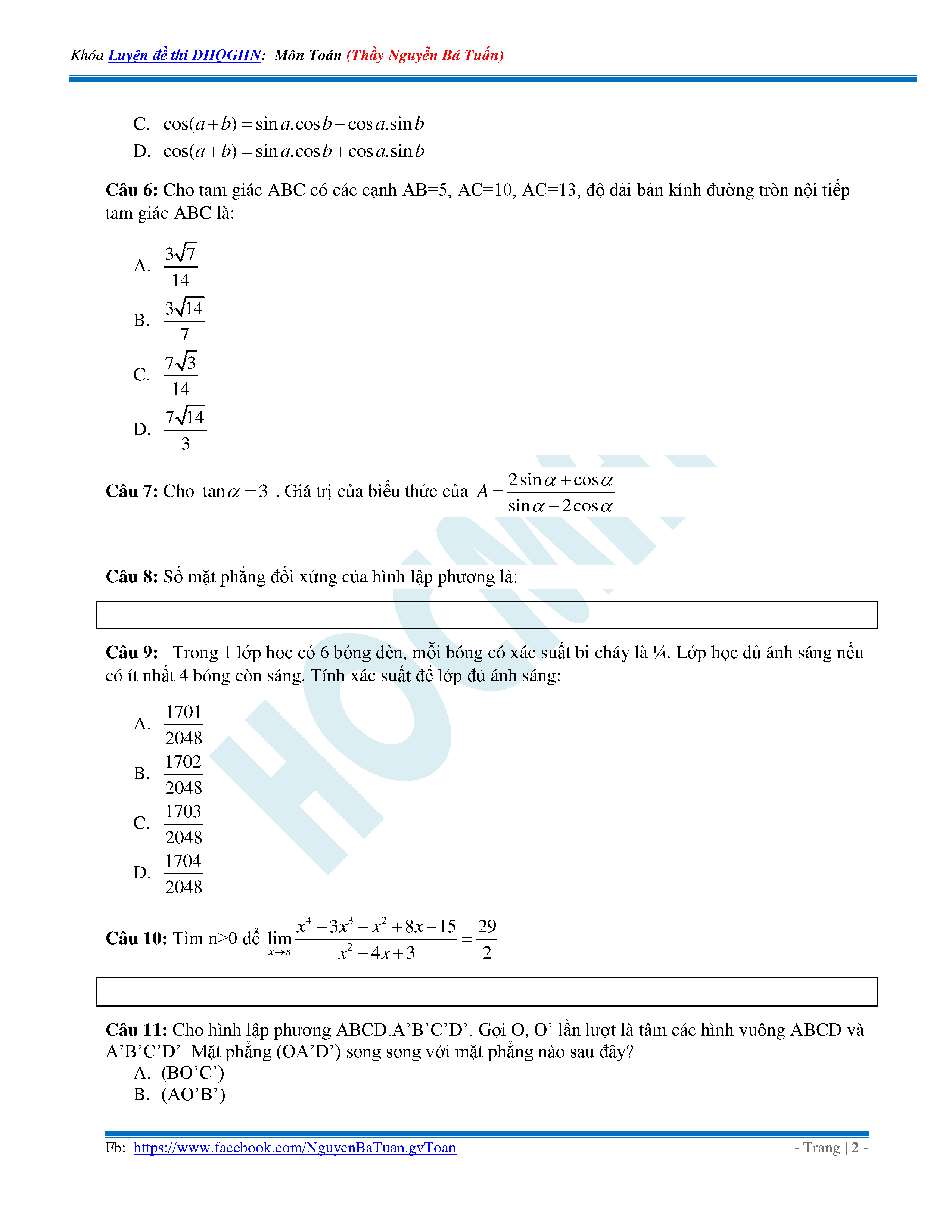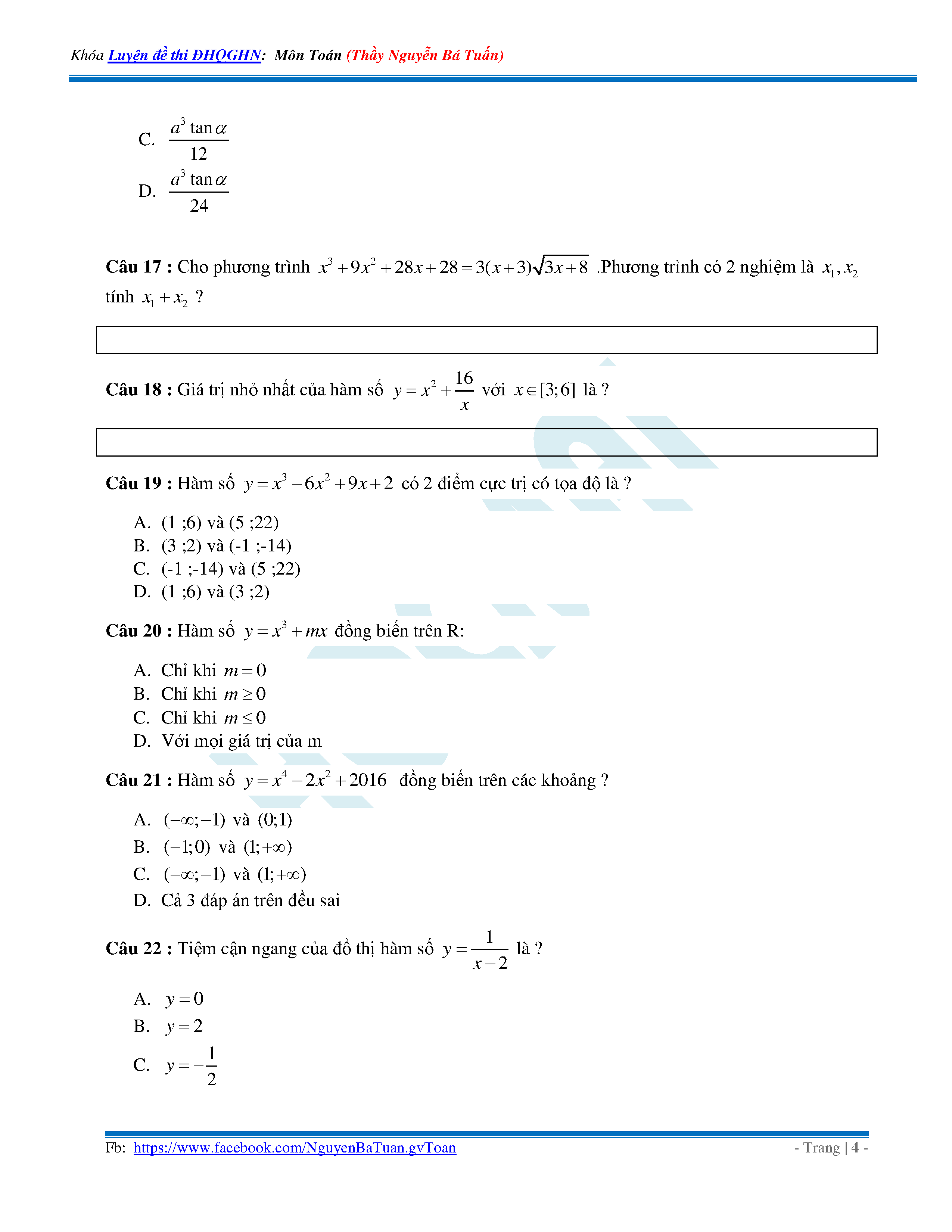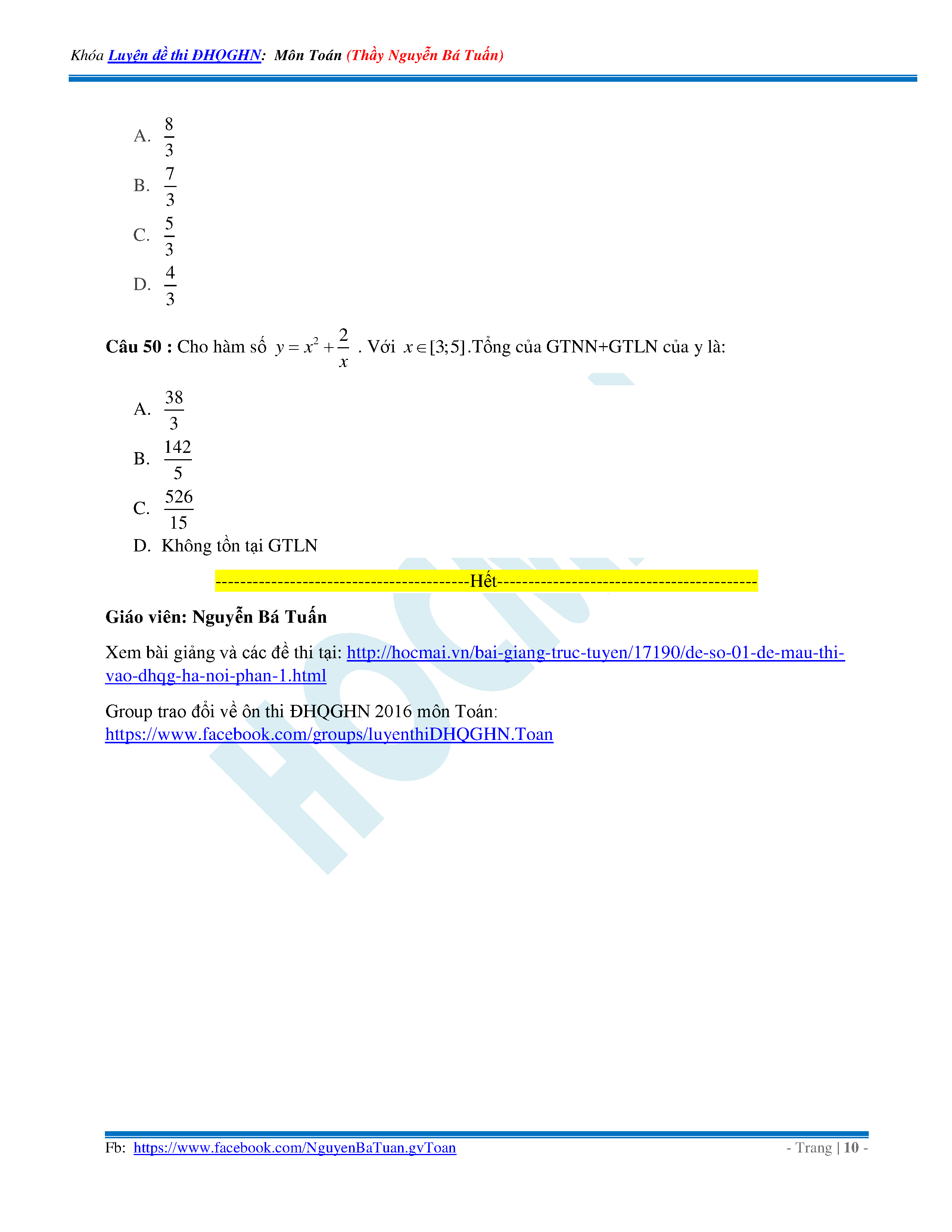 ĐỀ THI ĐÁNH GIÁ NĂNG LỰC - TƯ DUY ĐỊNH LƯỢNG 2016