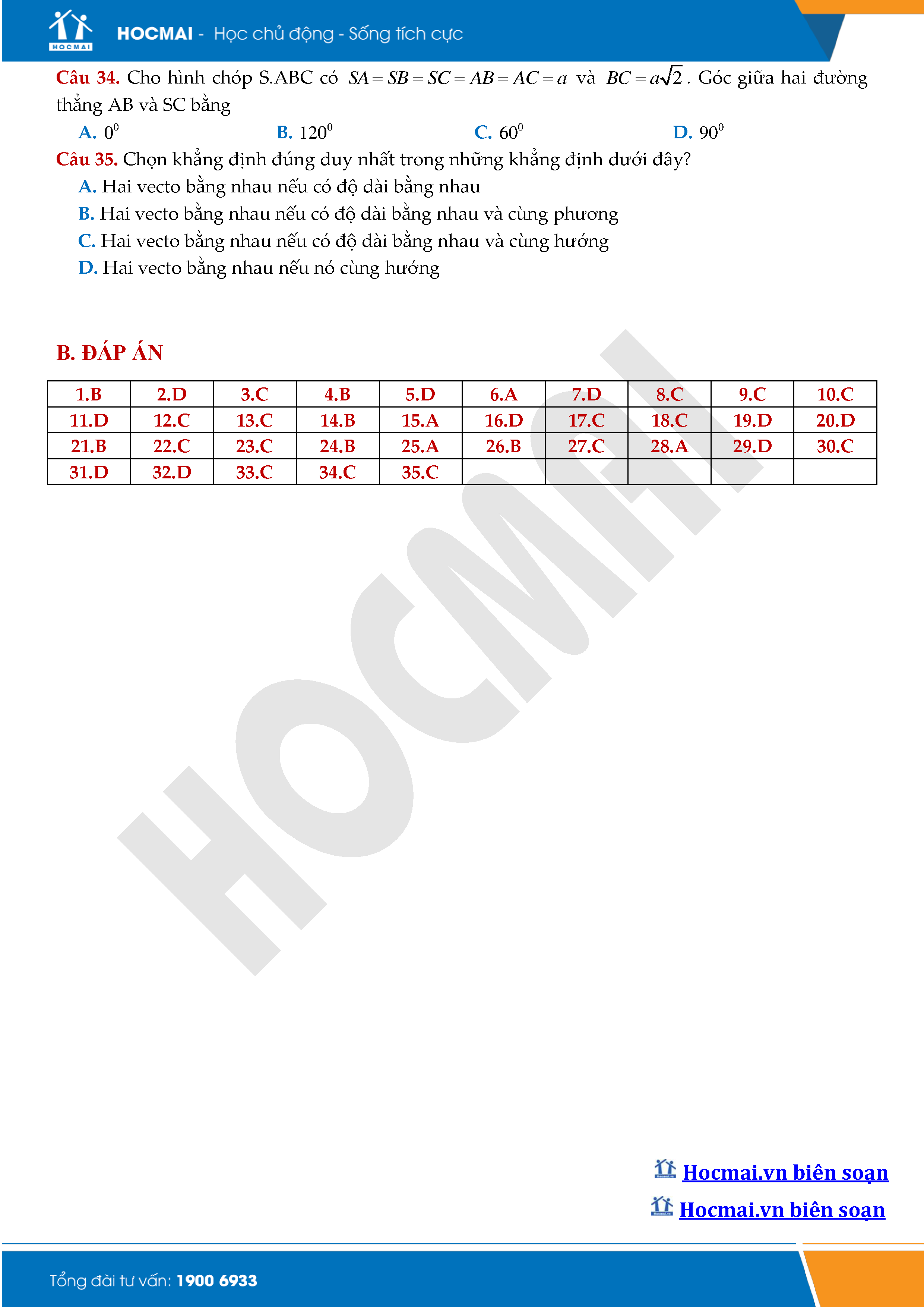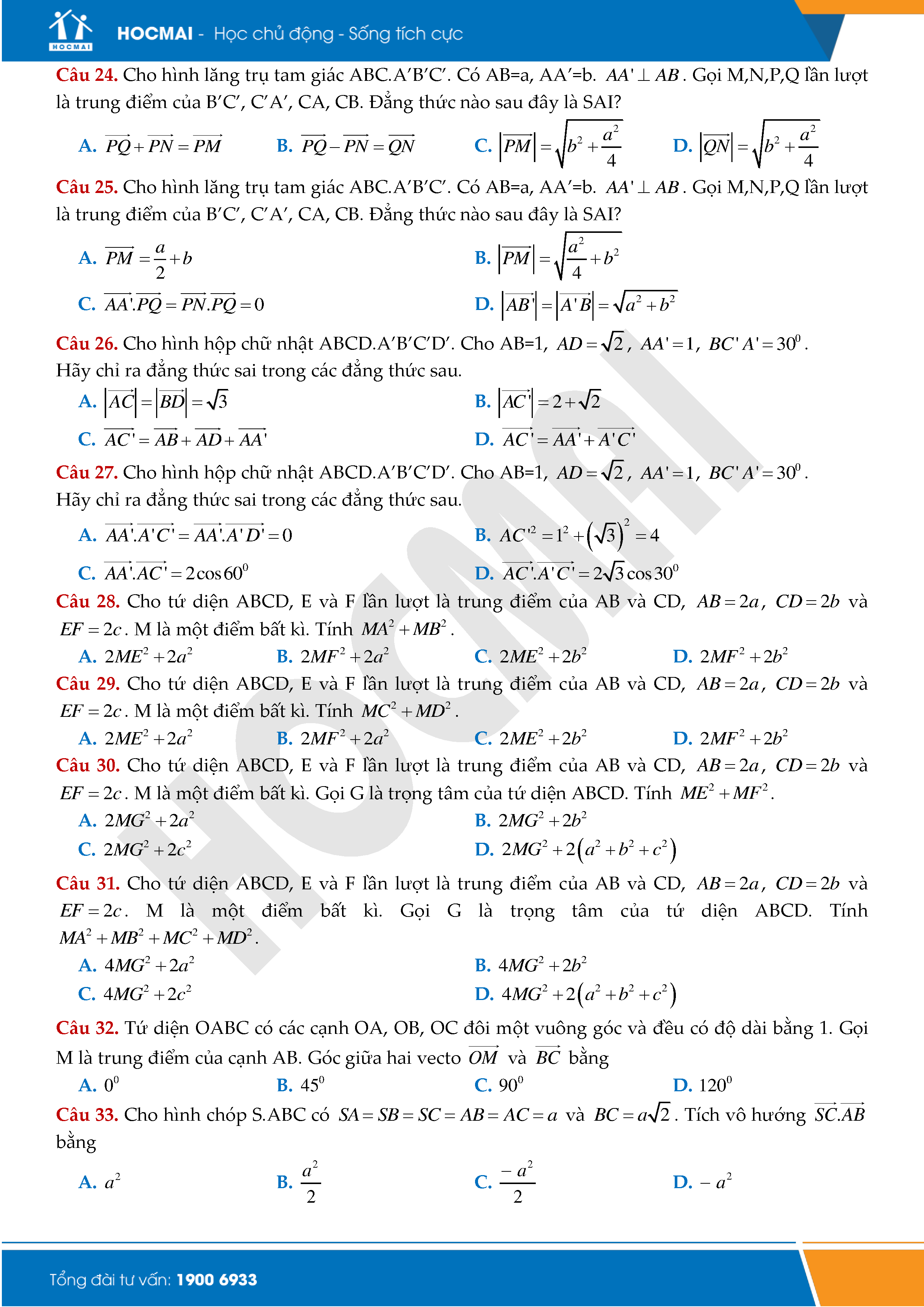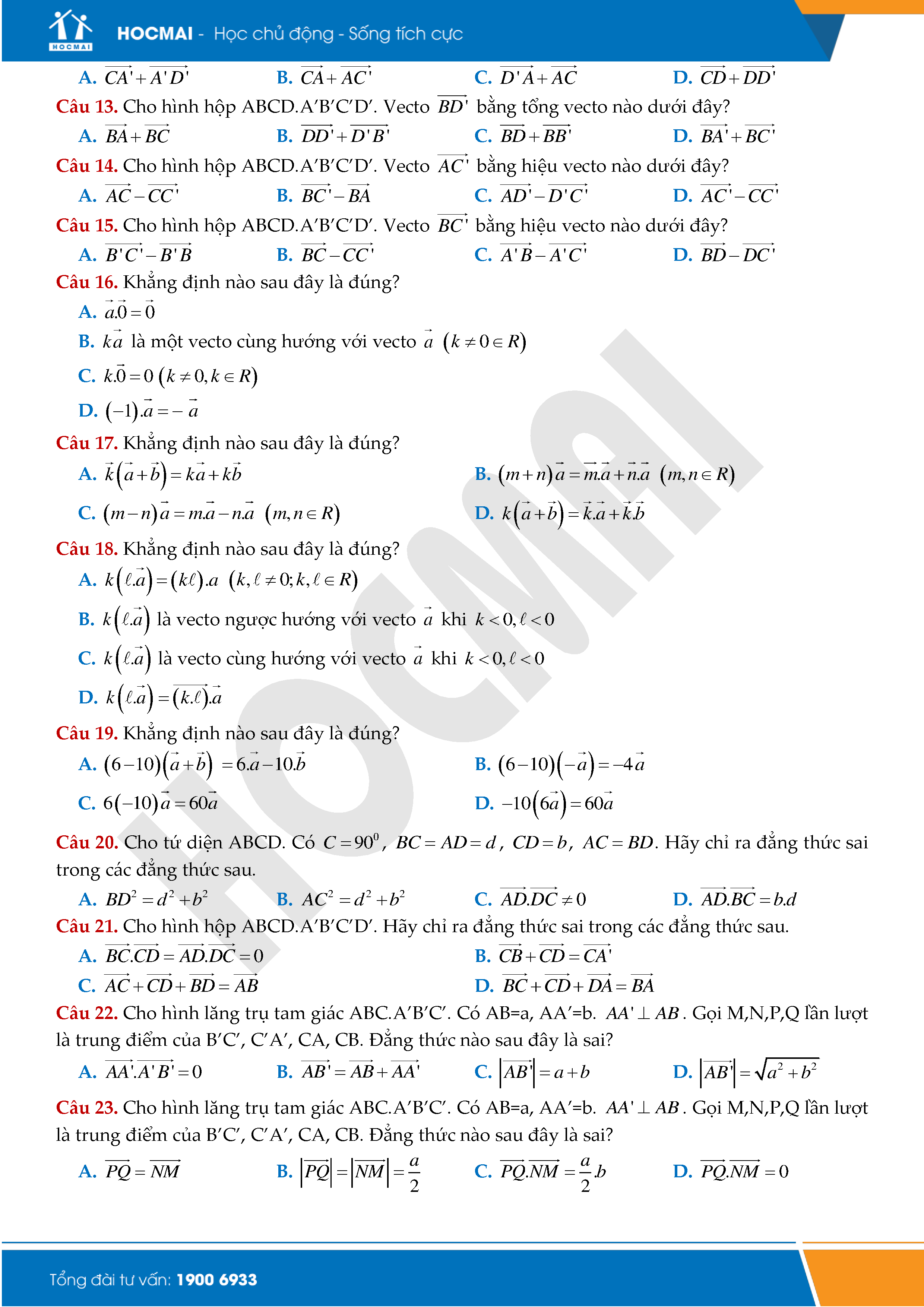 VECTO TRONG KHÔNG GIAN TOÁN LỚP 11