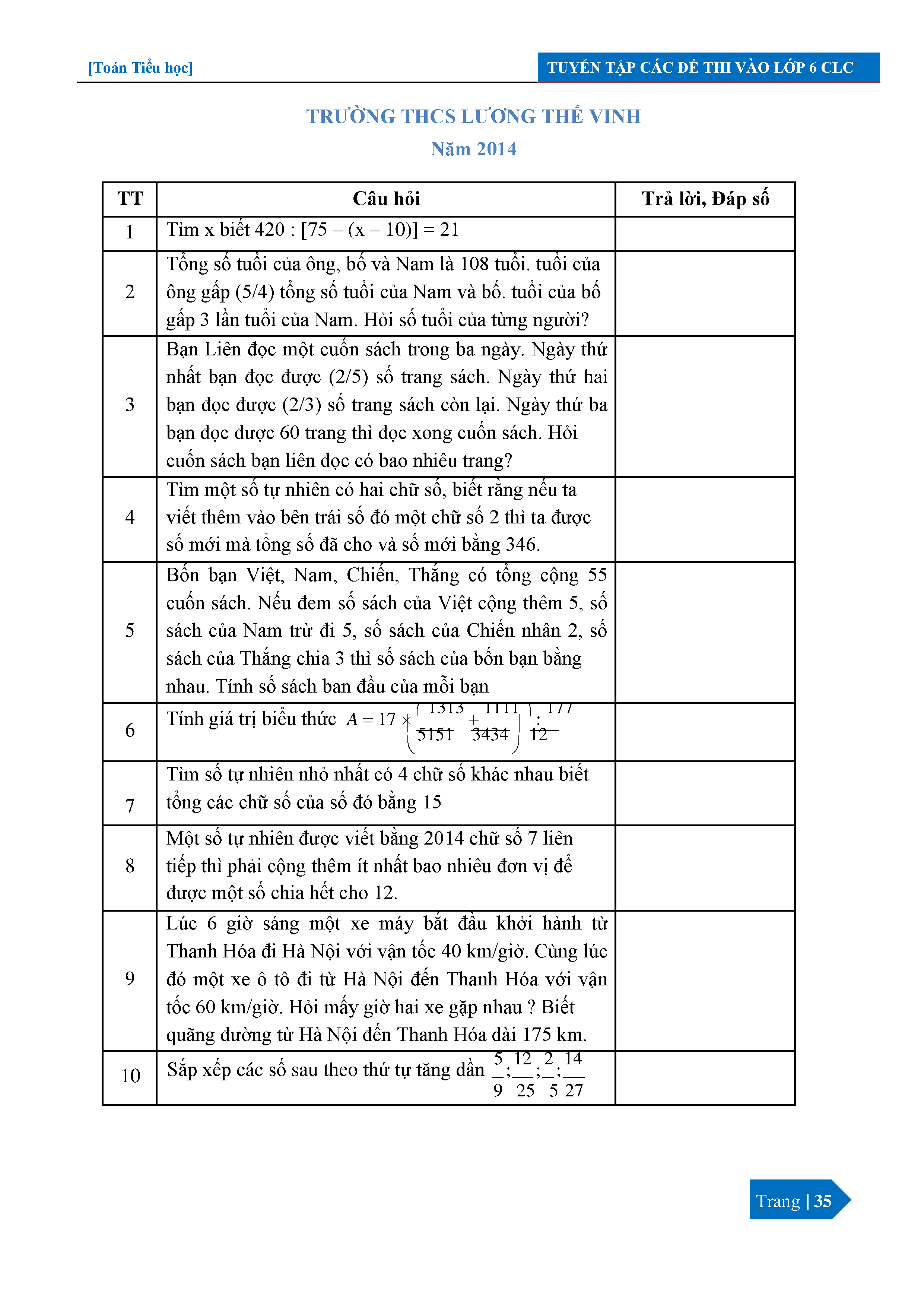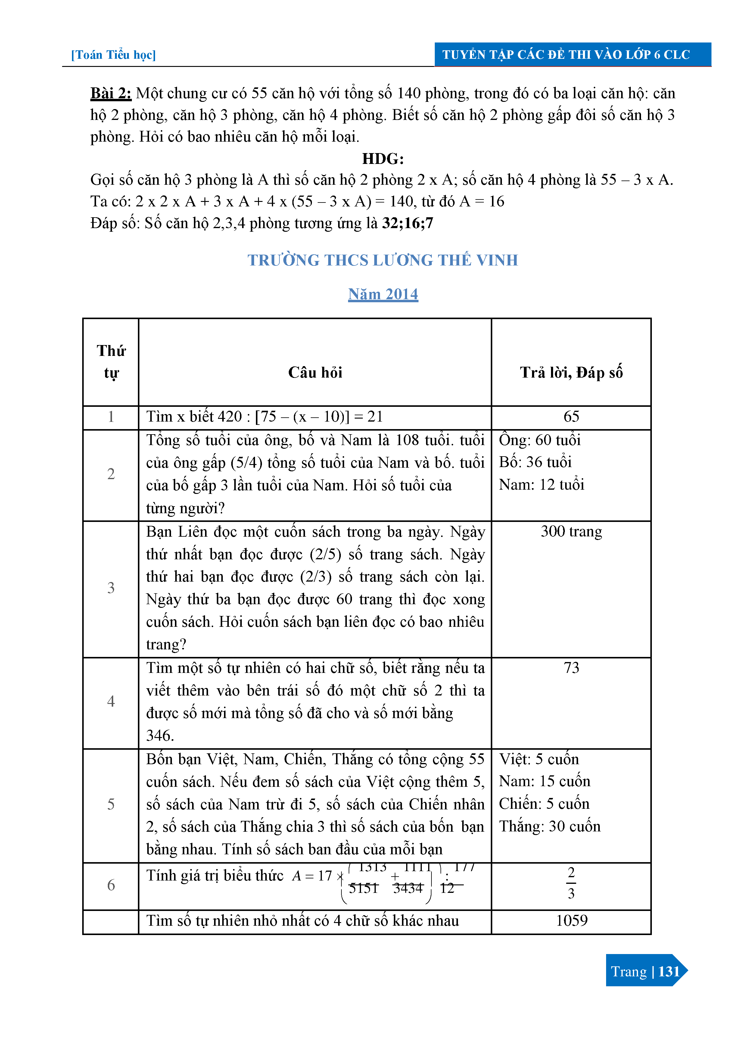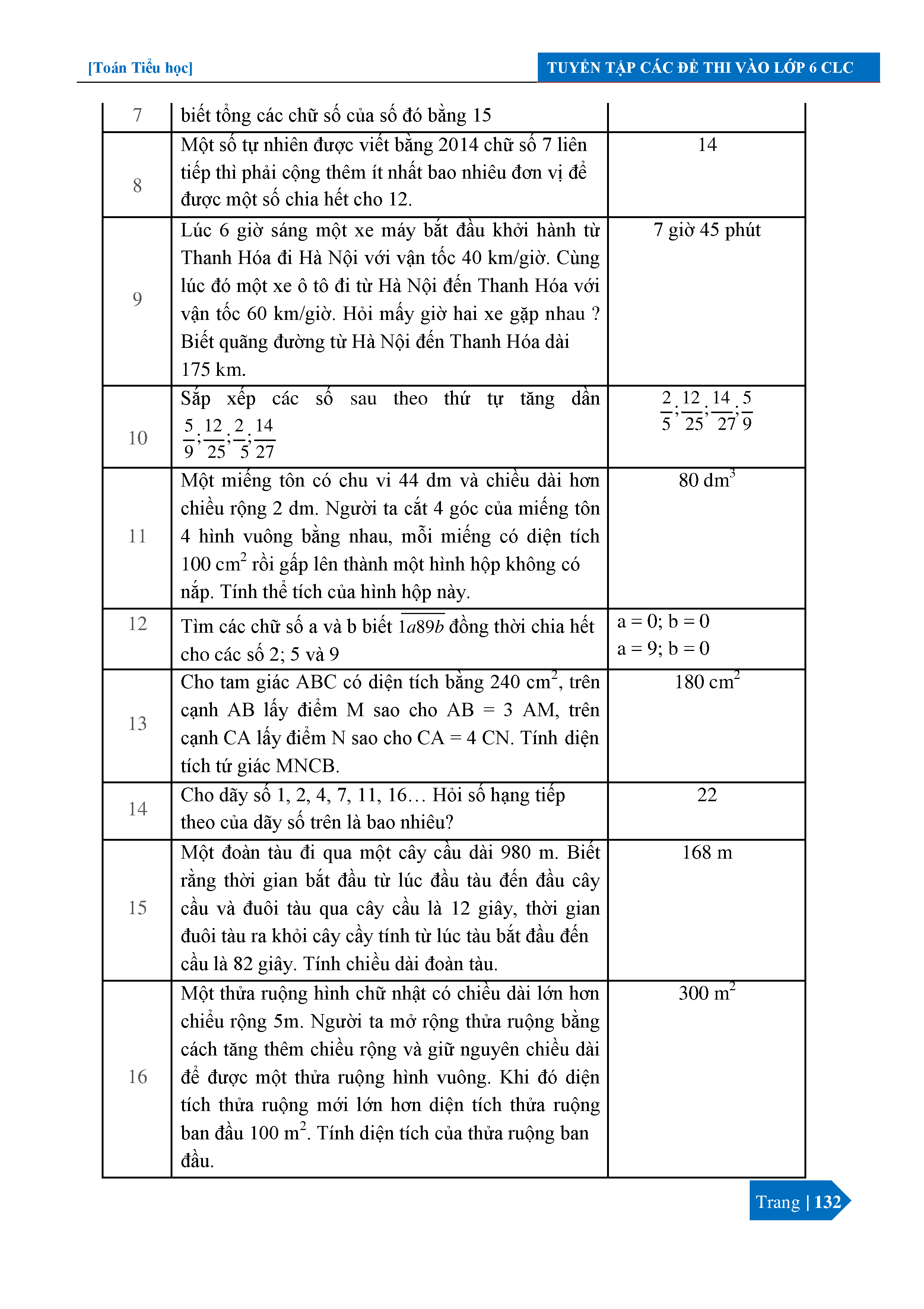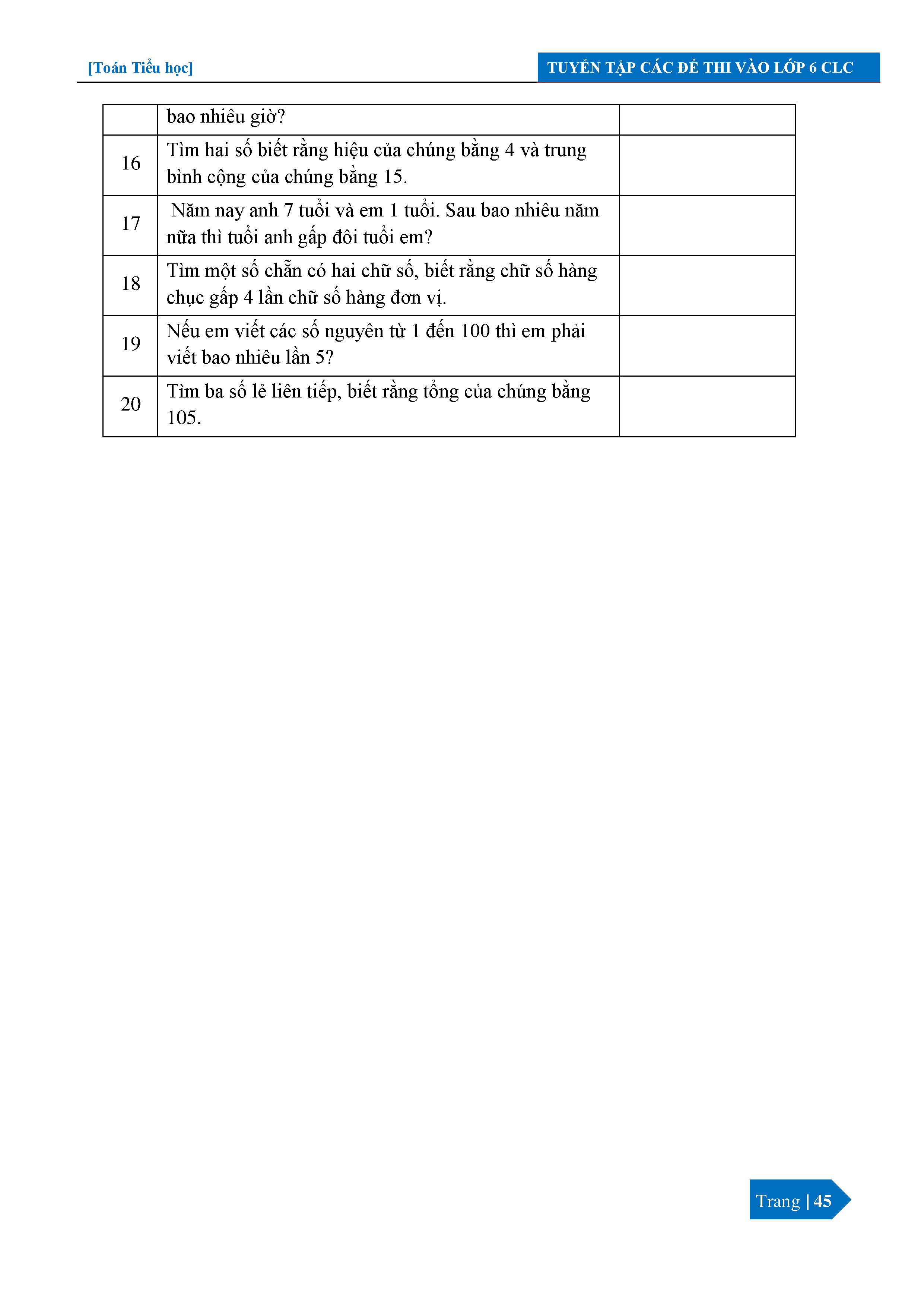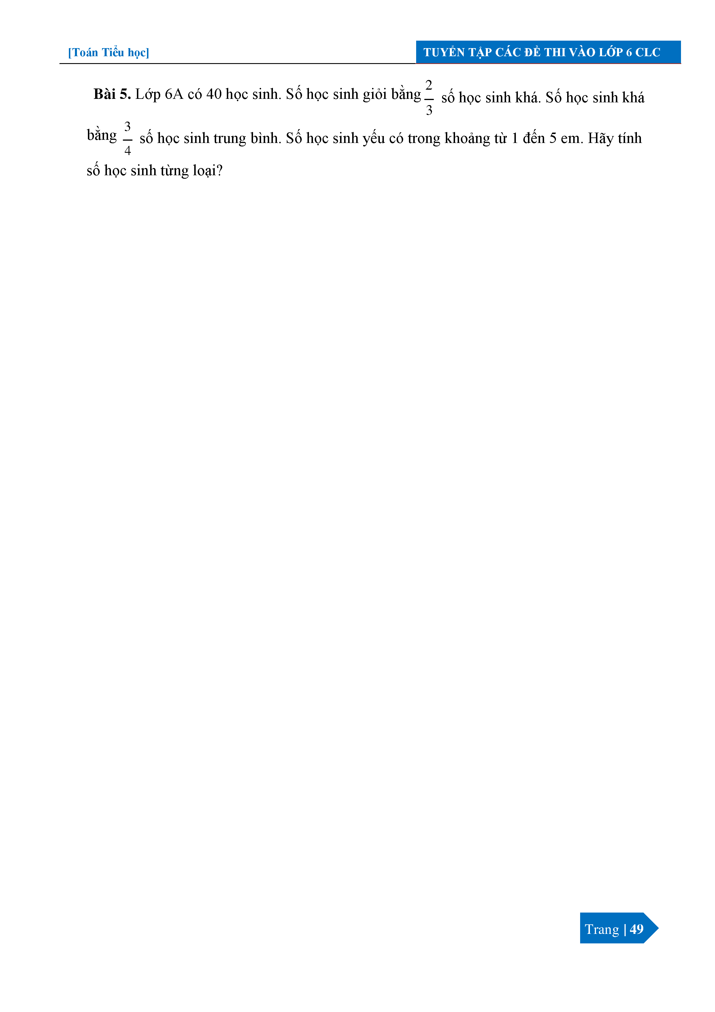 Tuyển chọn các đề thi vào lớp 6 TP Hà Nội