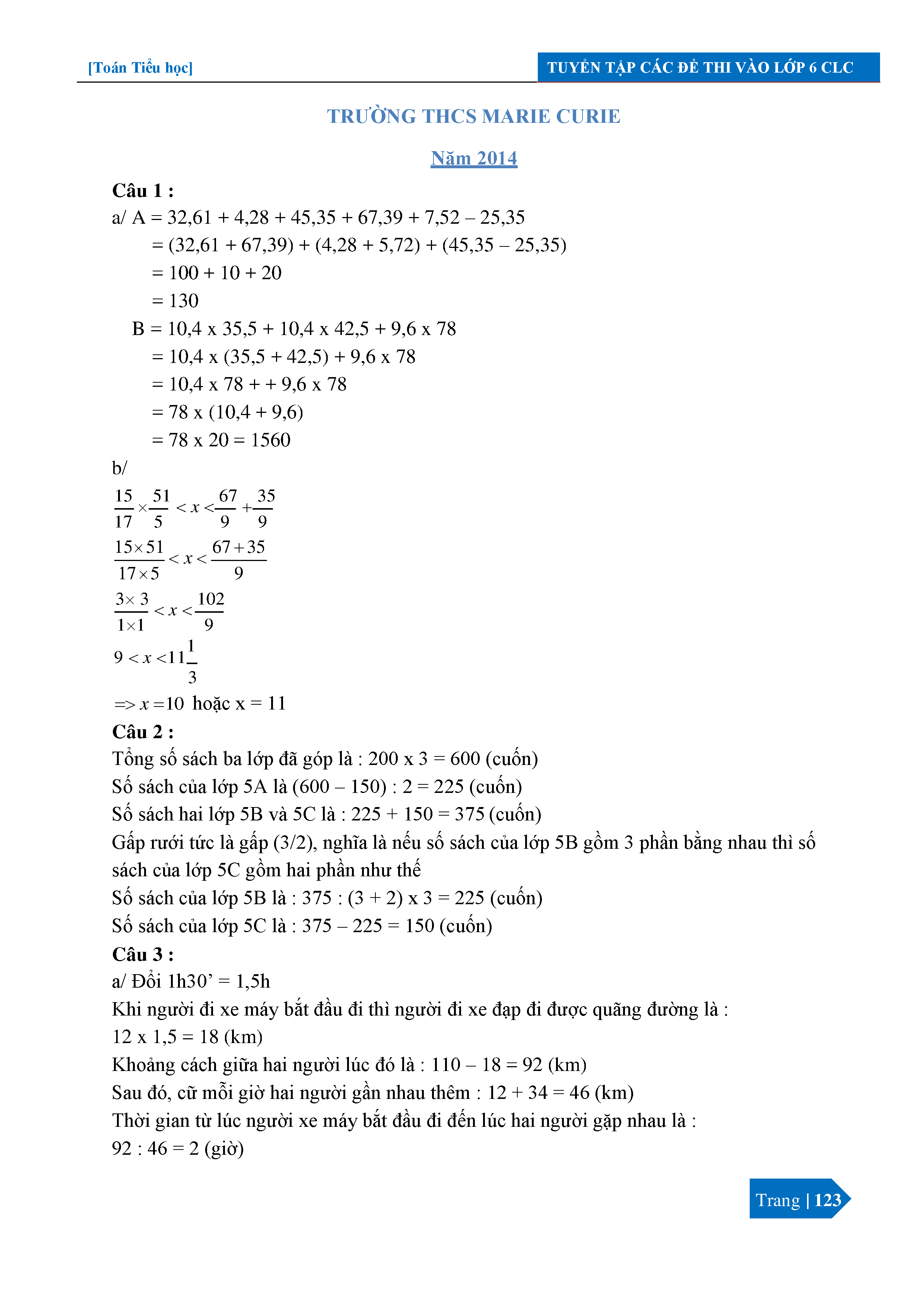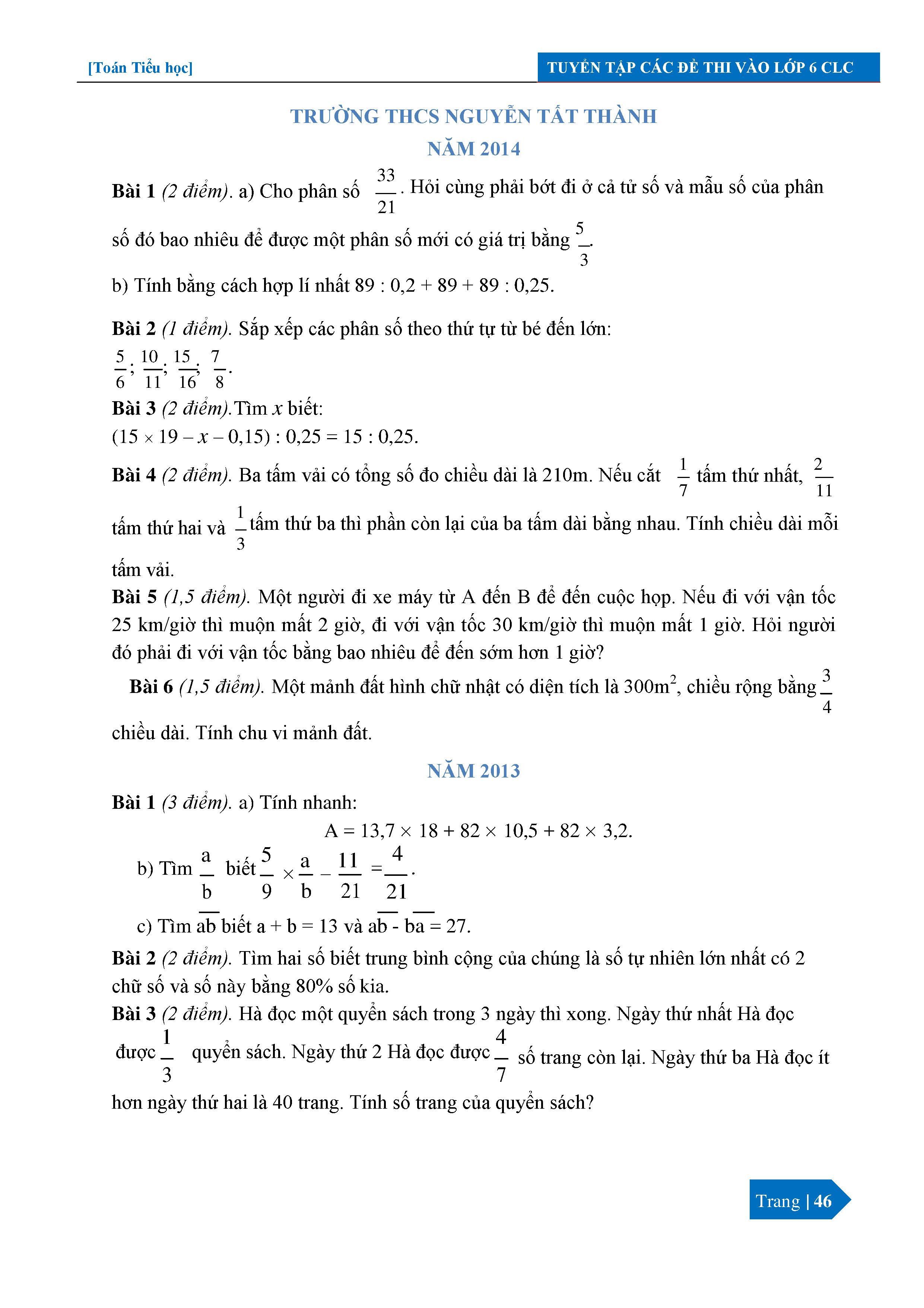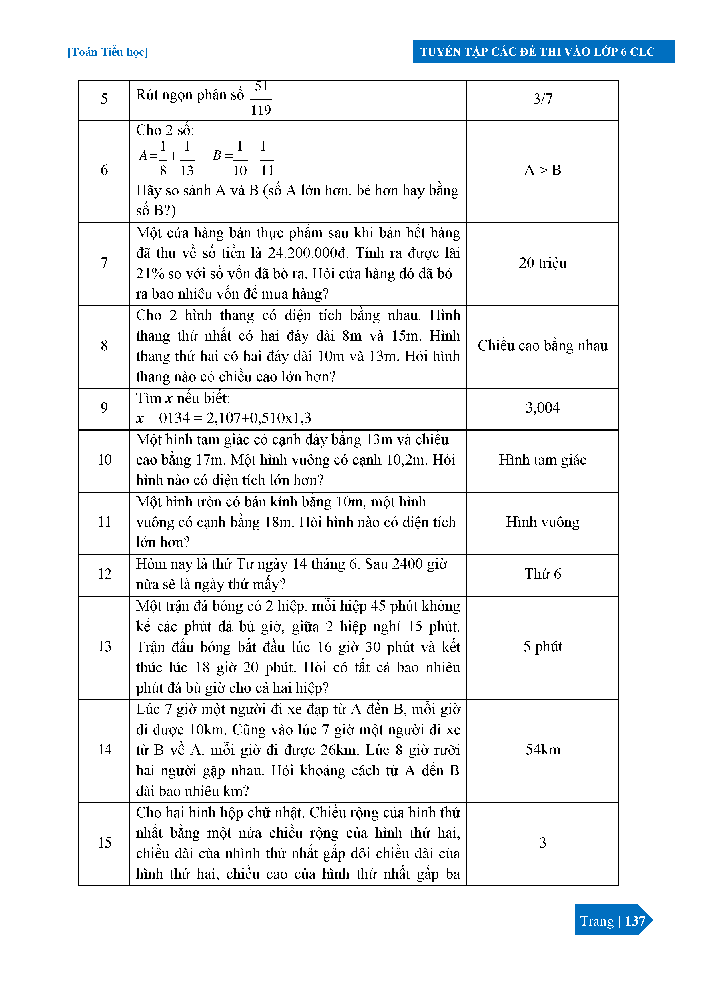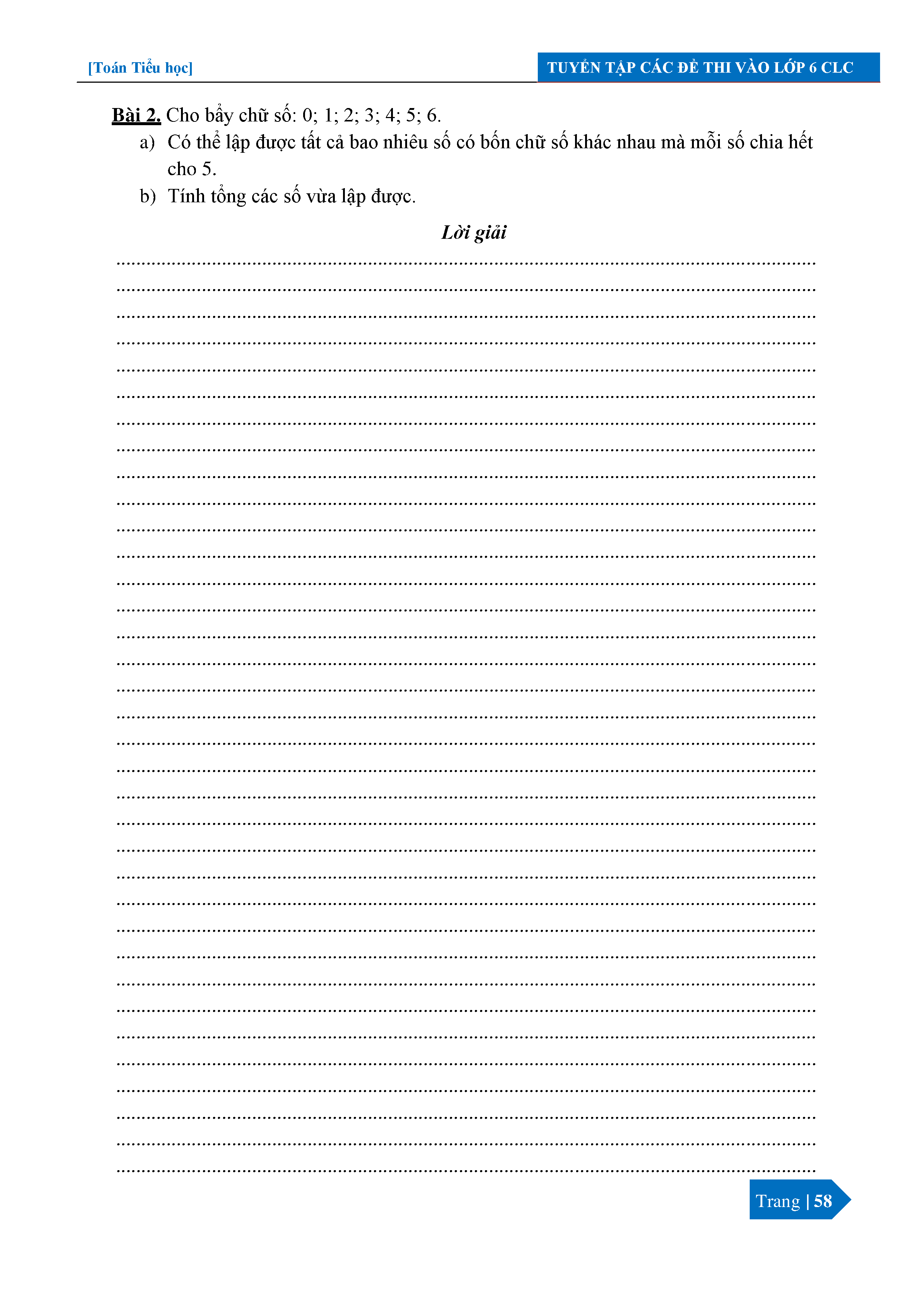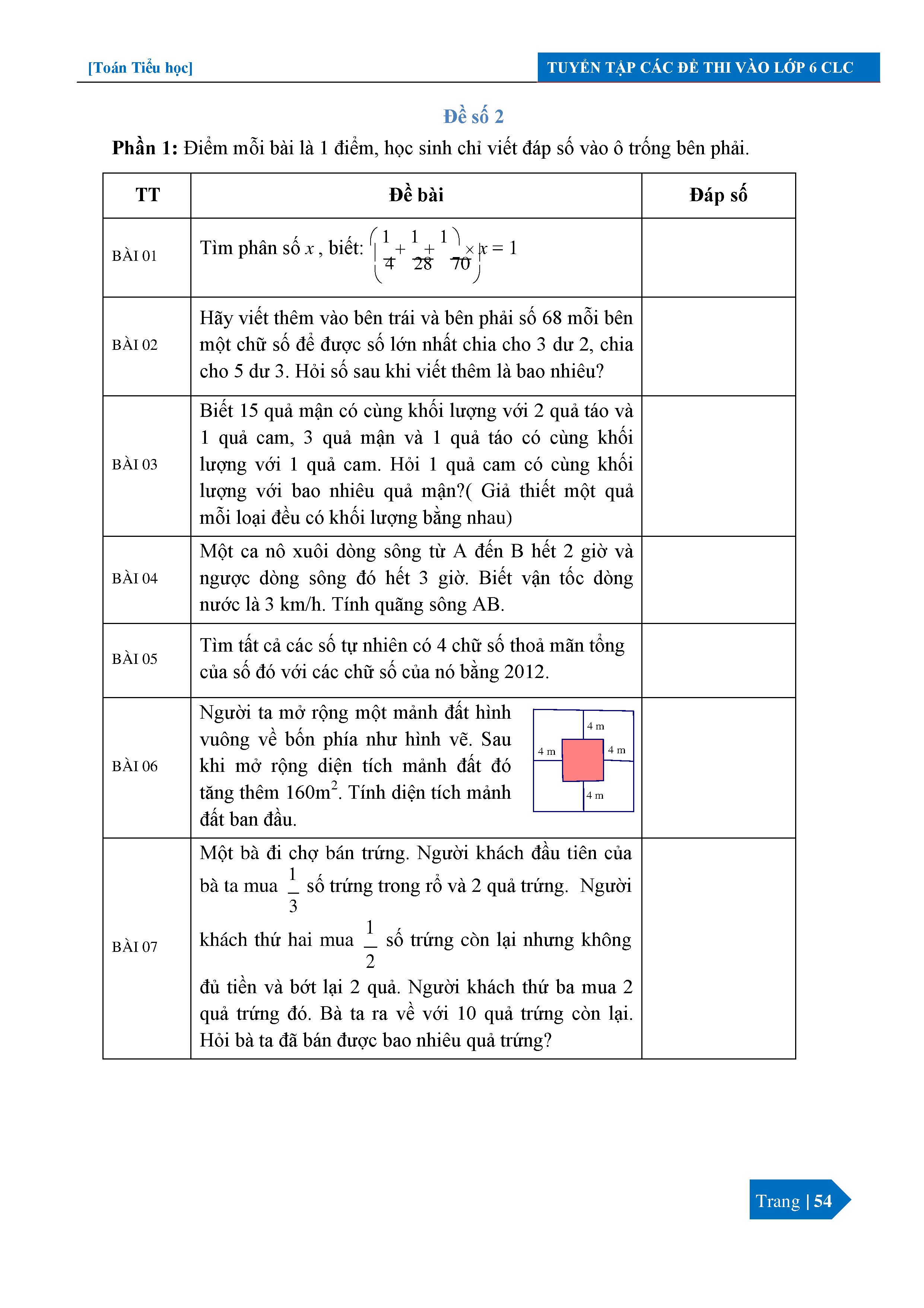 Tuyển chọn các đề thi vào lớp 6 TP Hà Nội