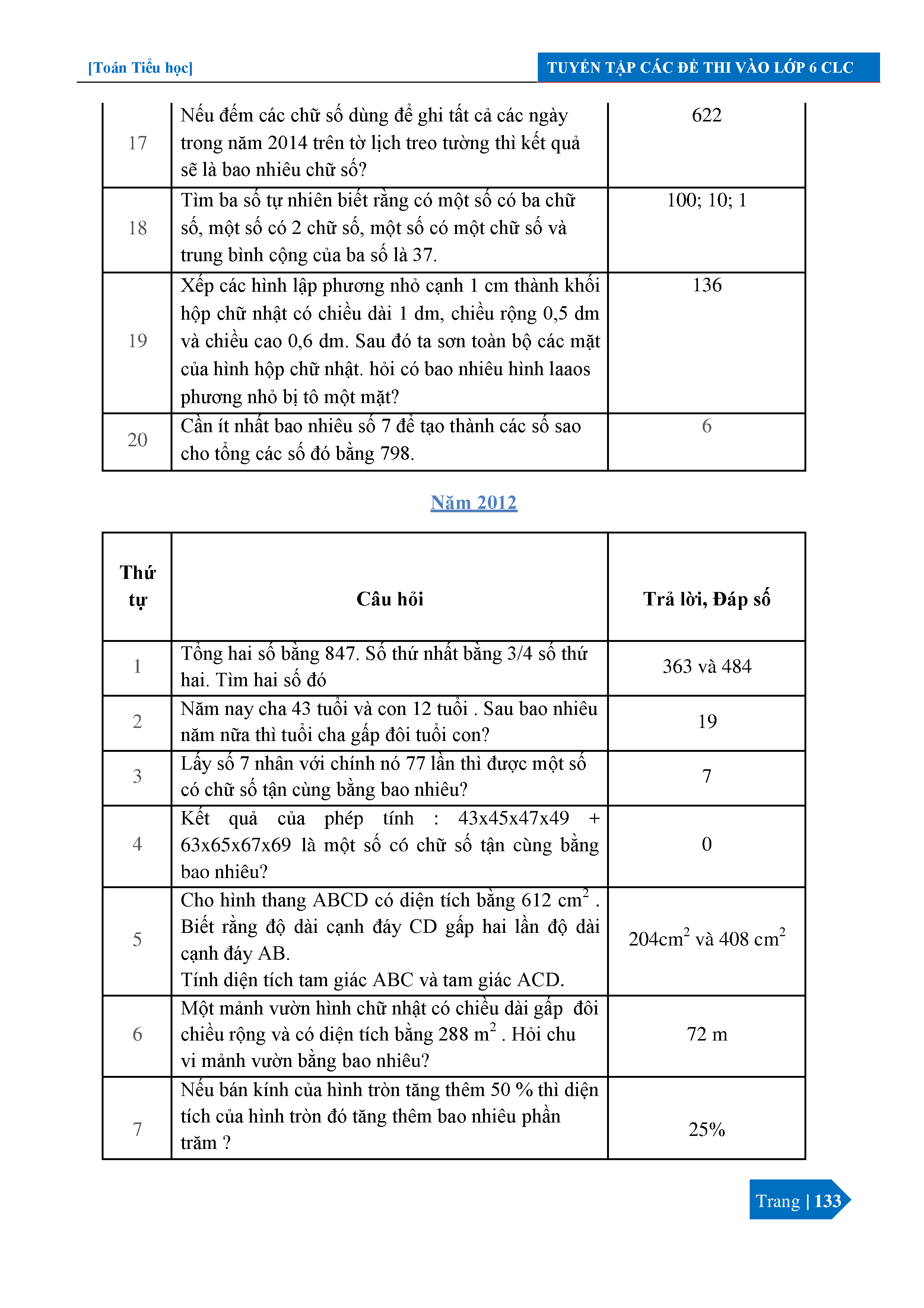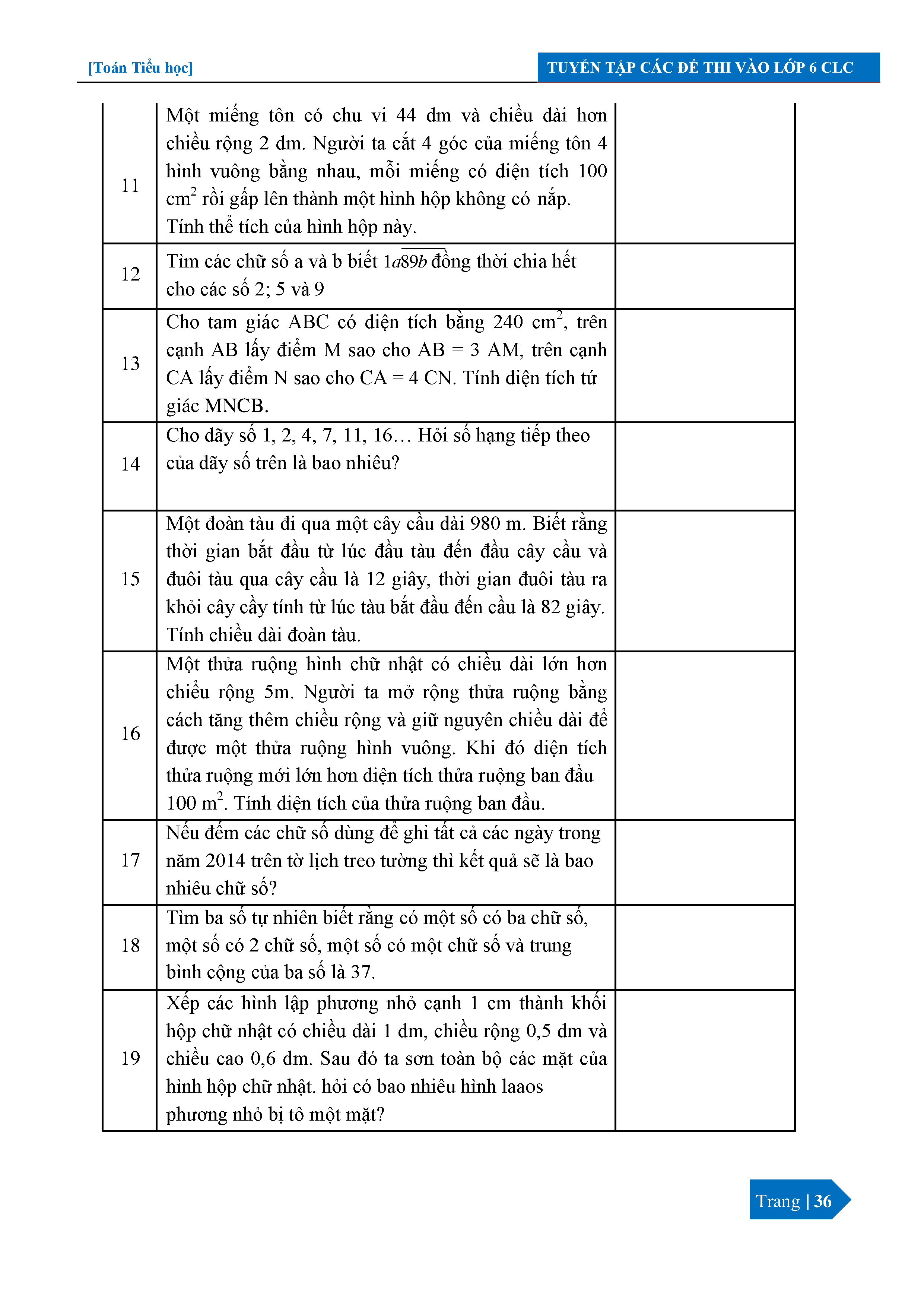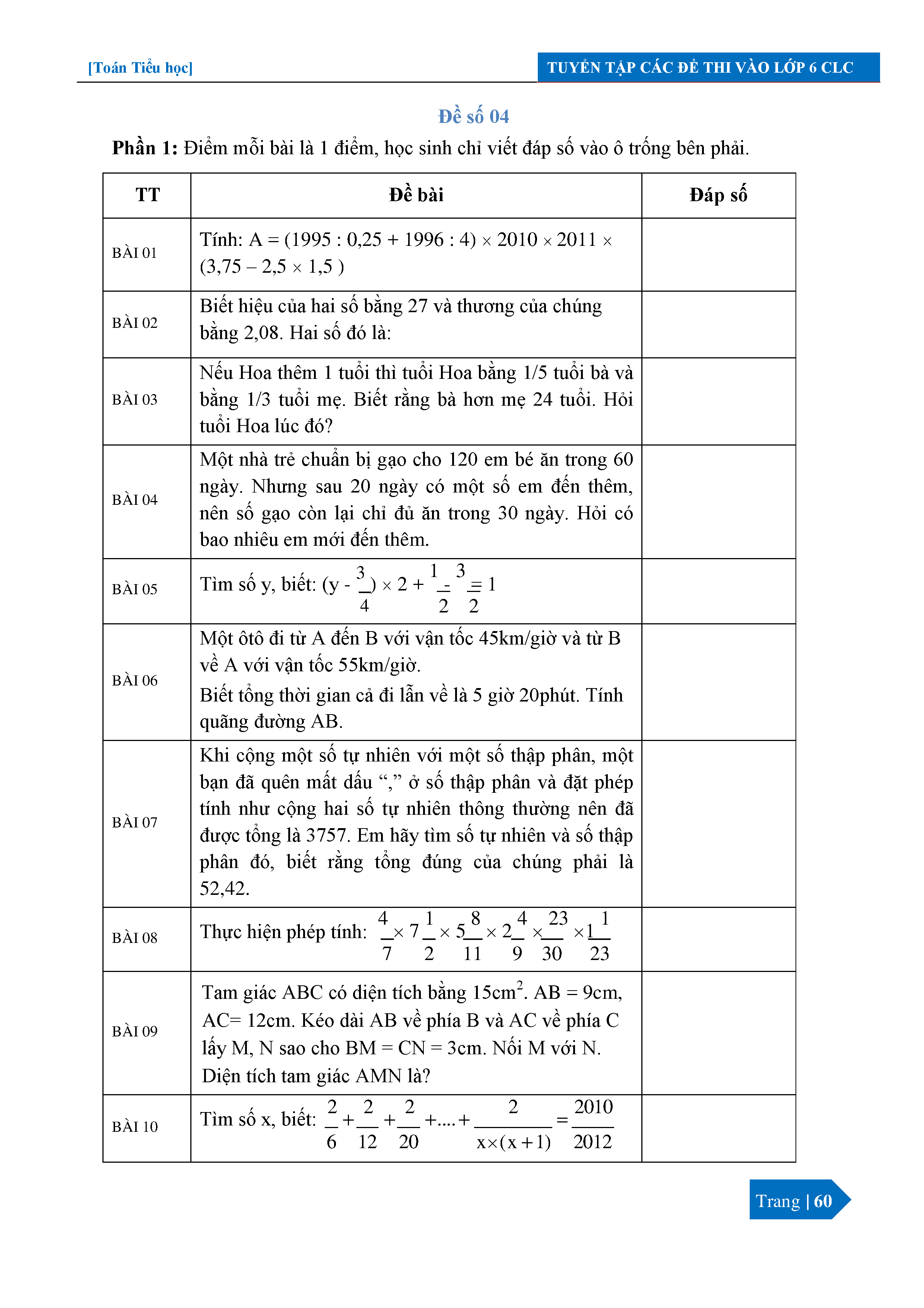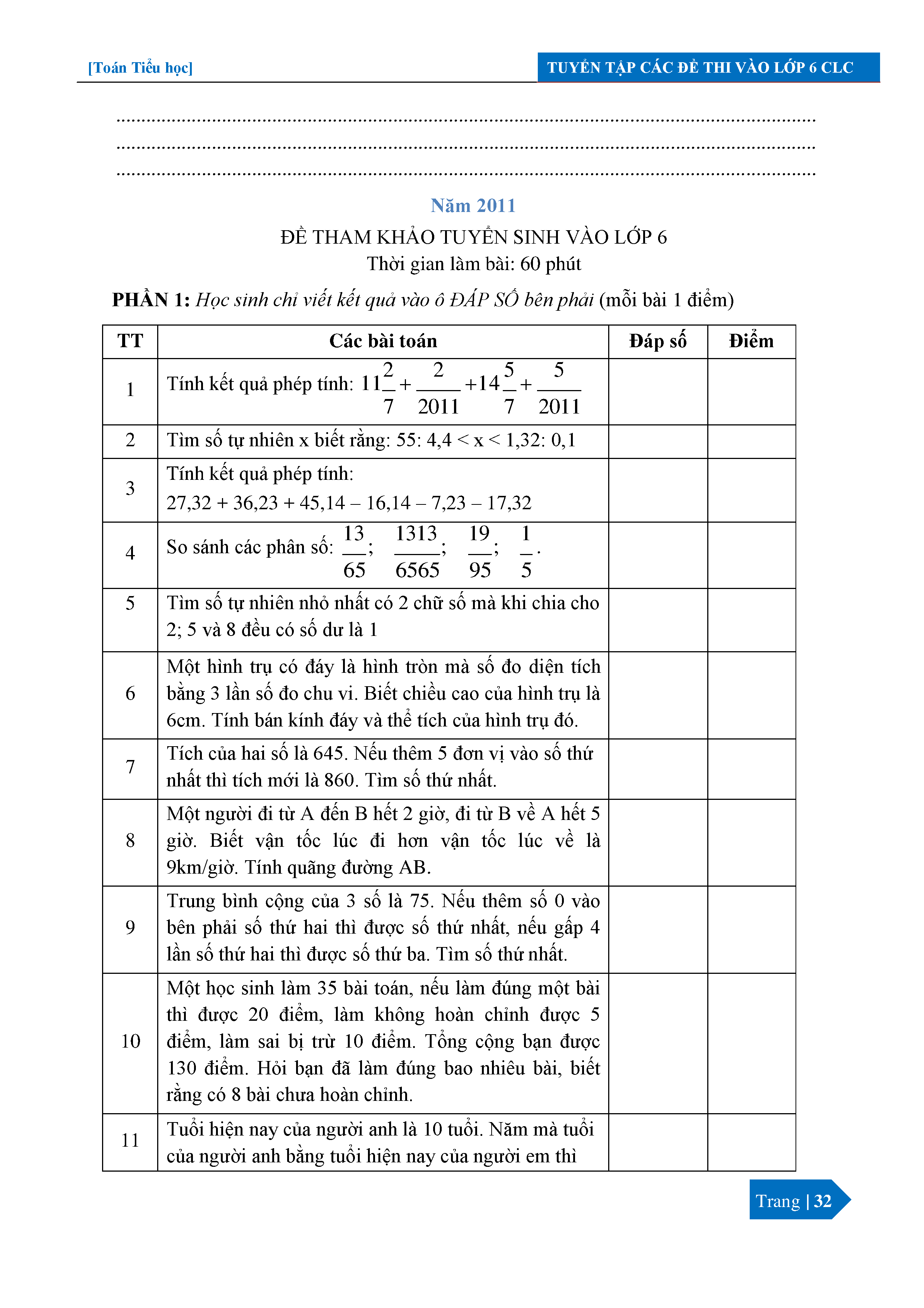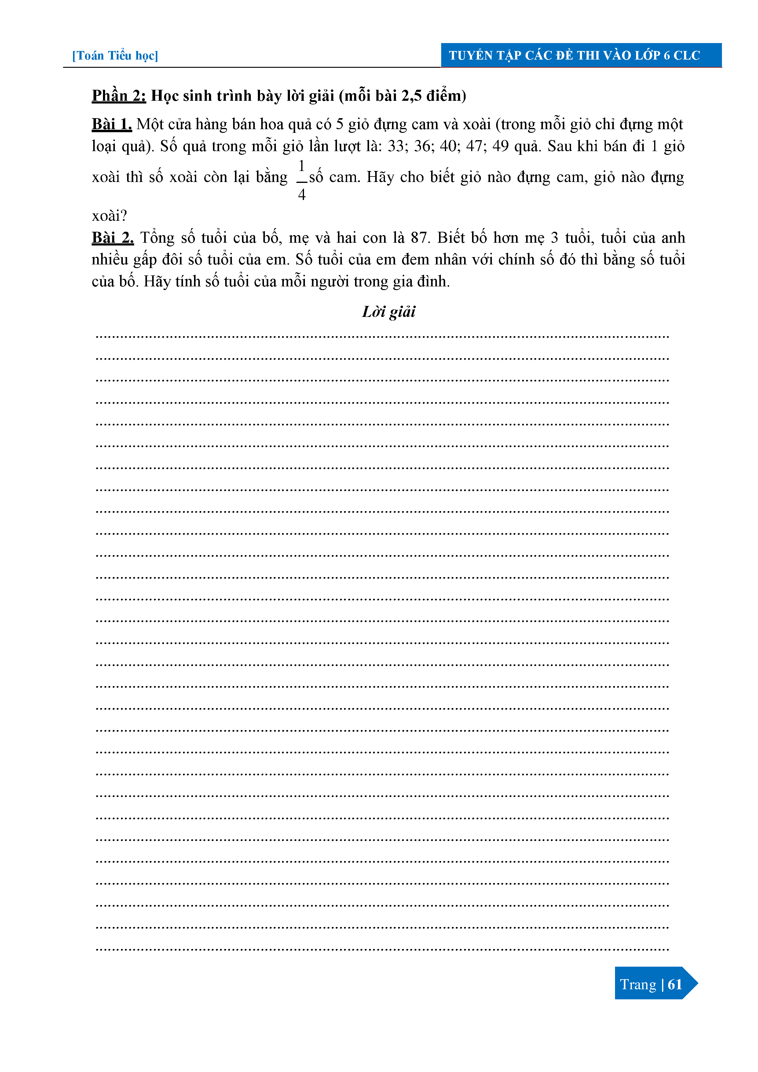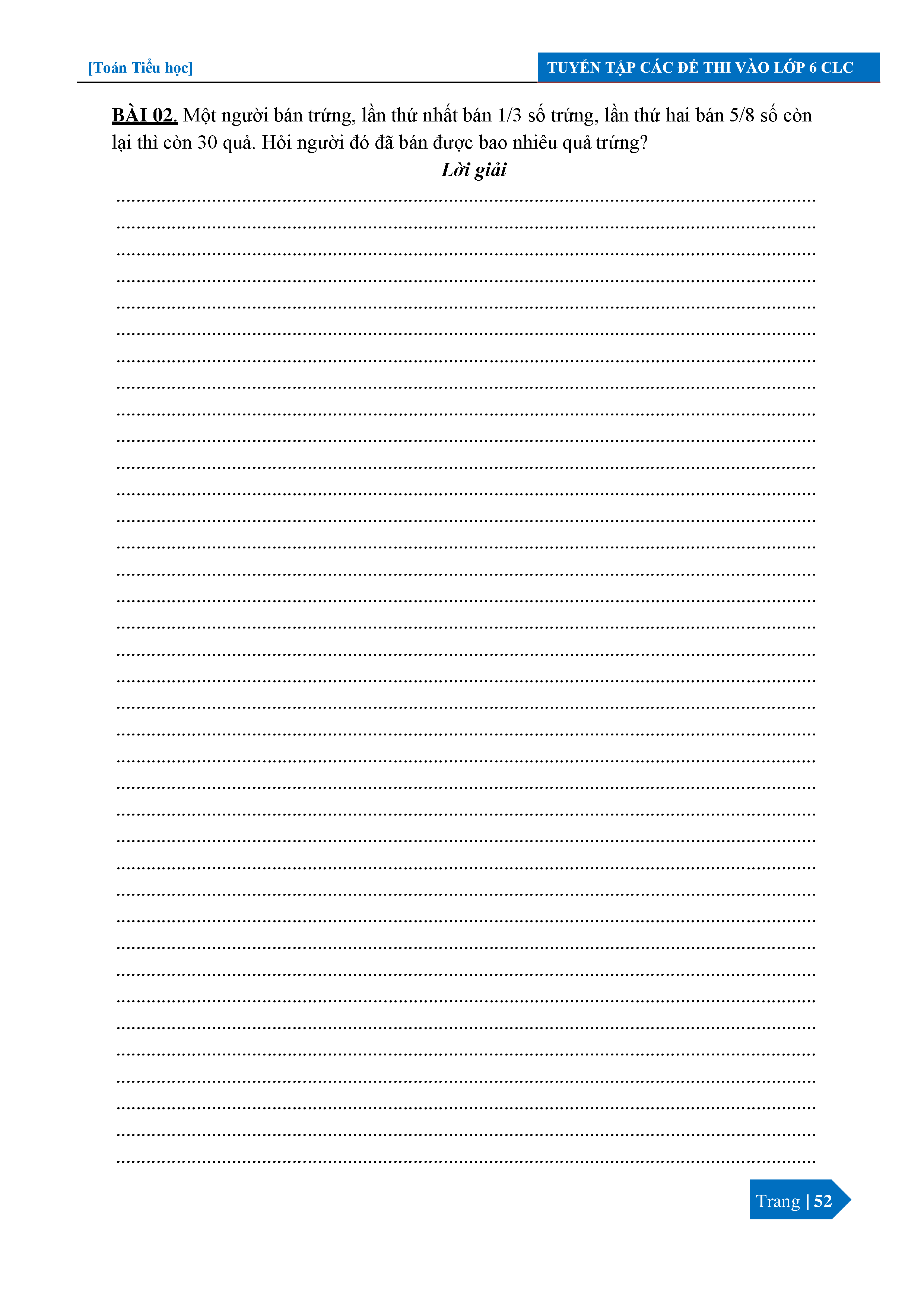 Tuyển chọn các đề thi vào lớp 6 TP Hà Nội