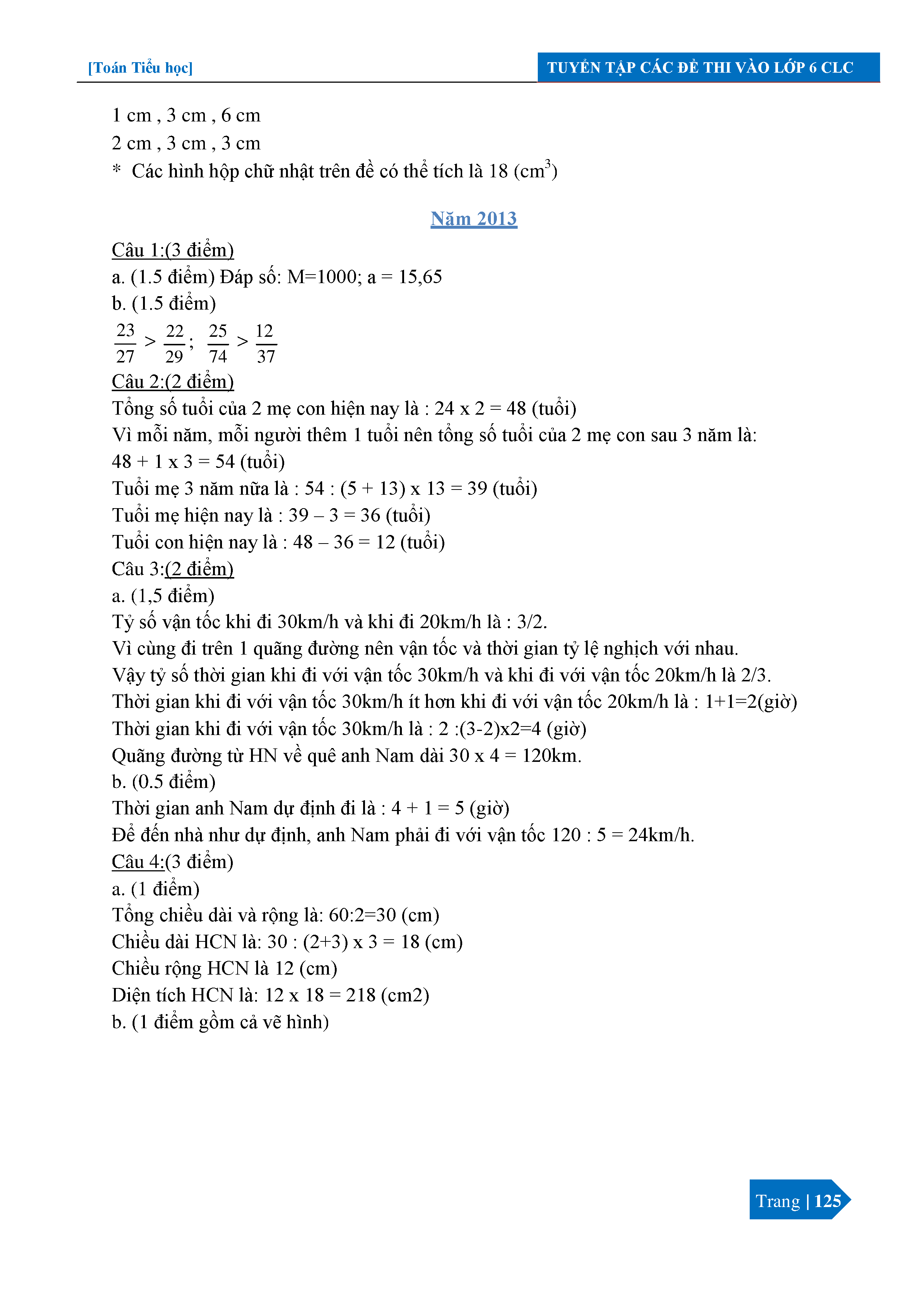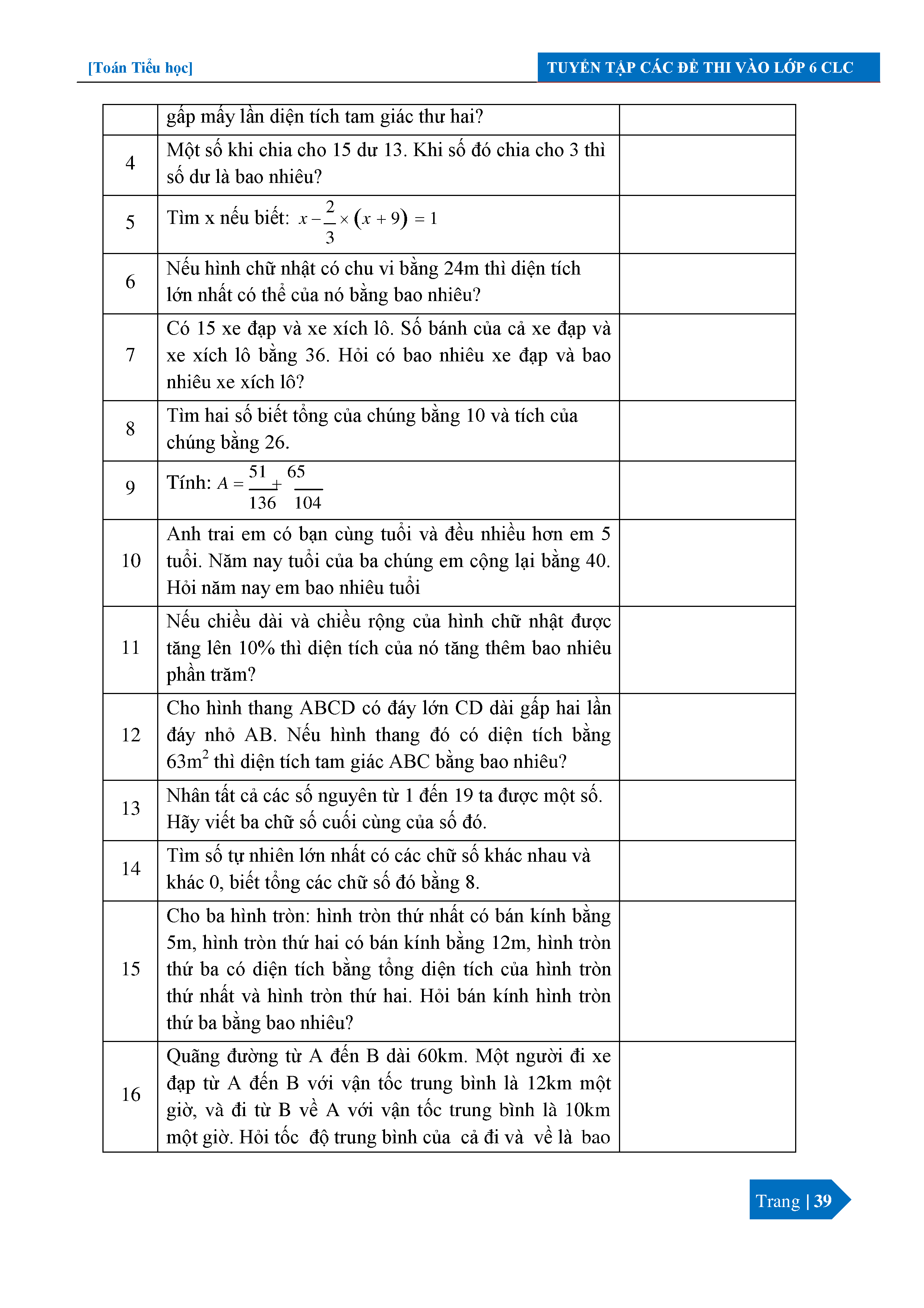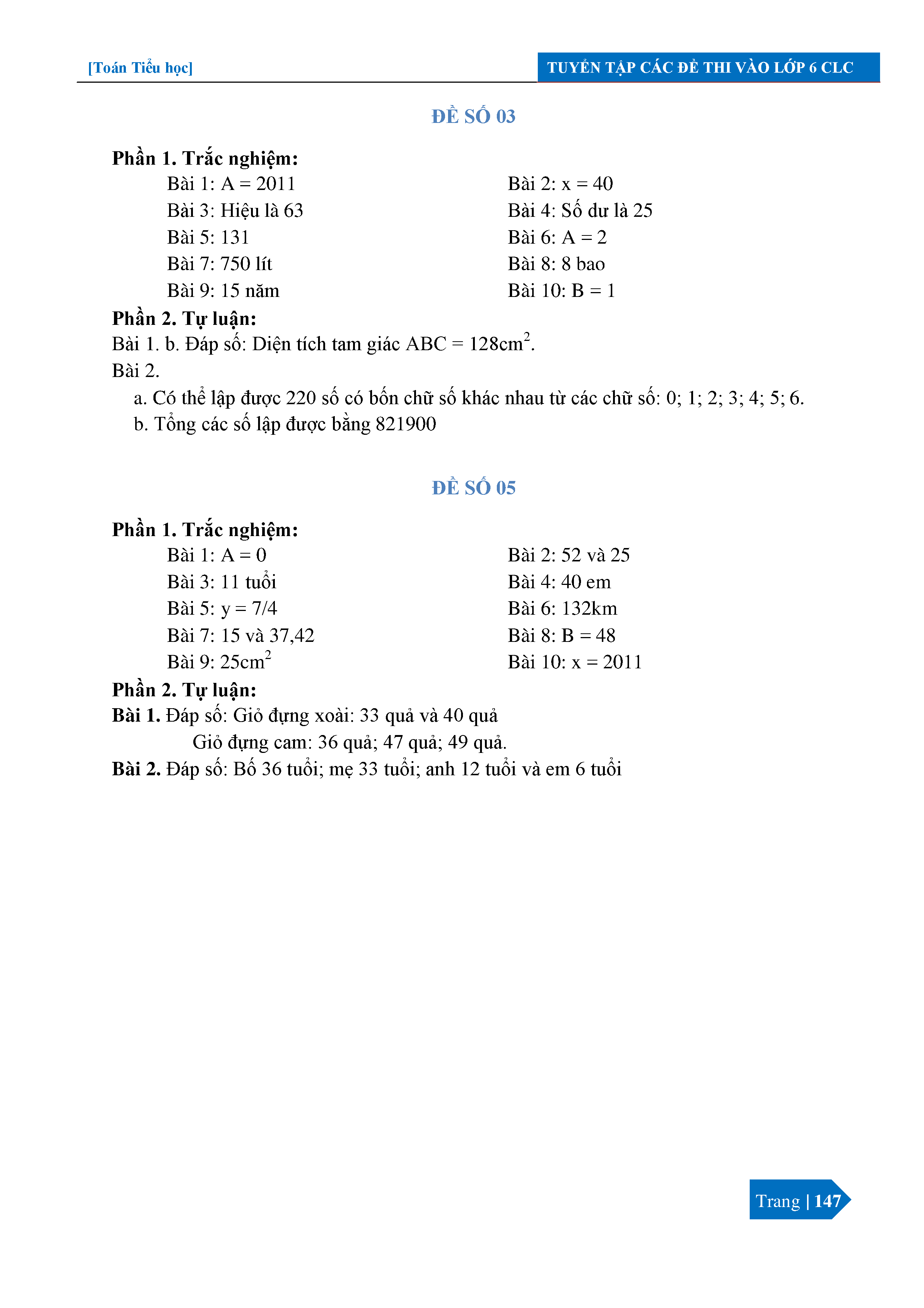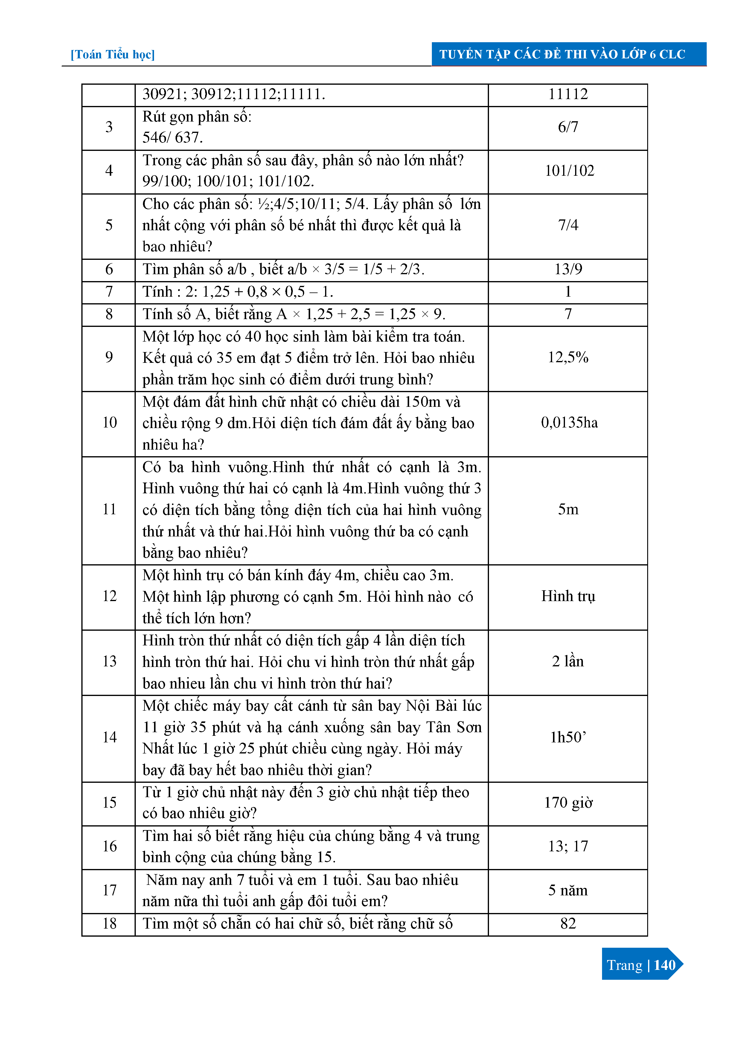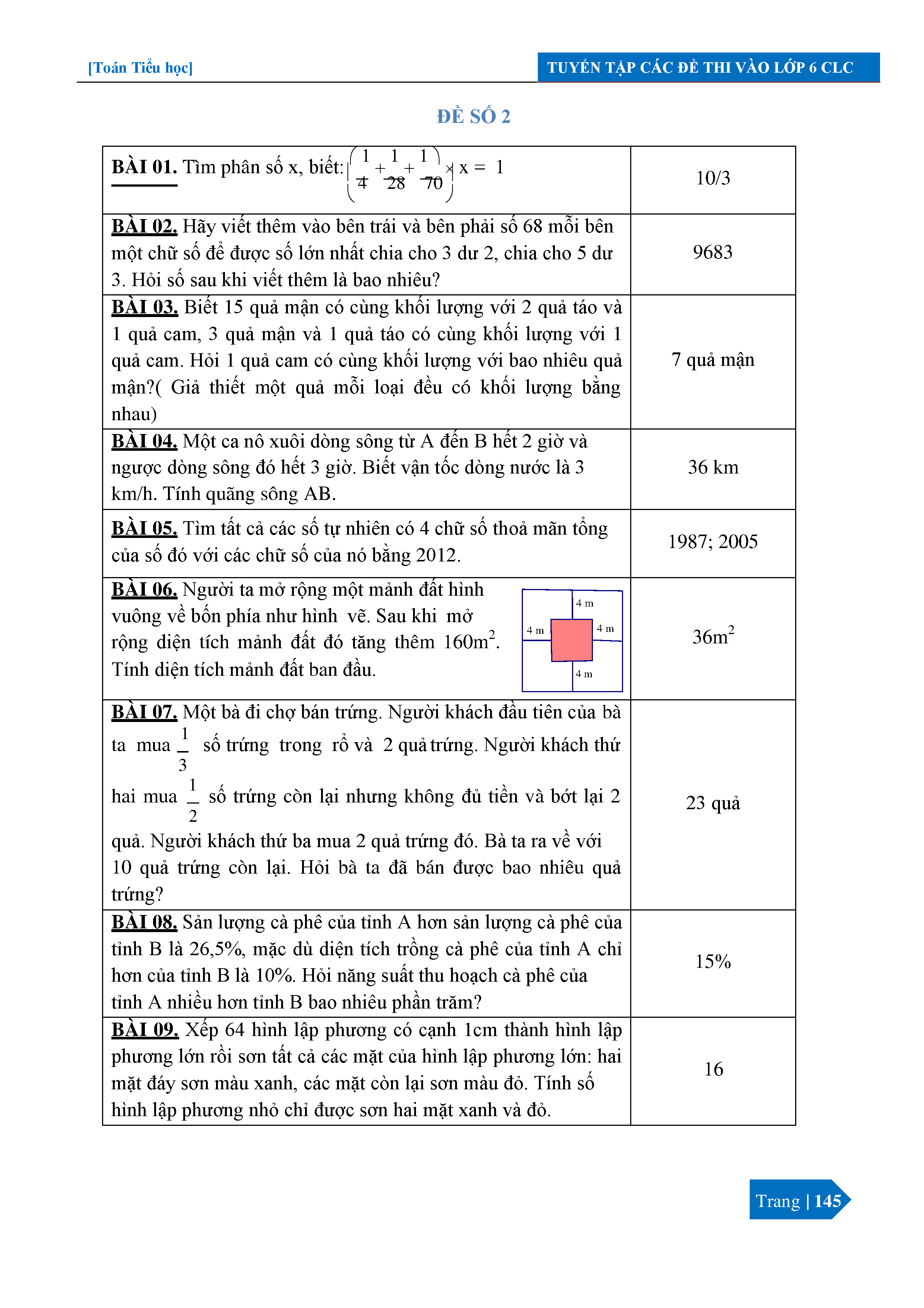 Tuyển chọn các đề thi vào lớp 6 TP Hà Nội