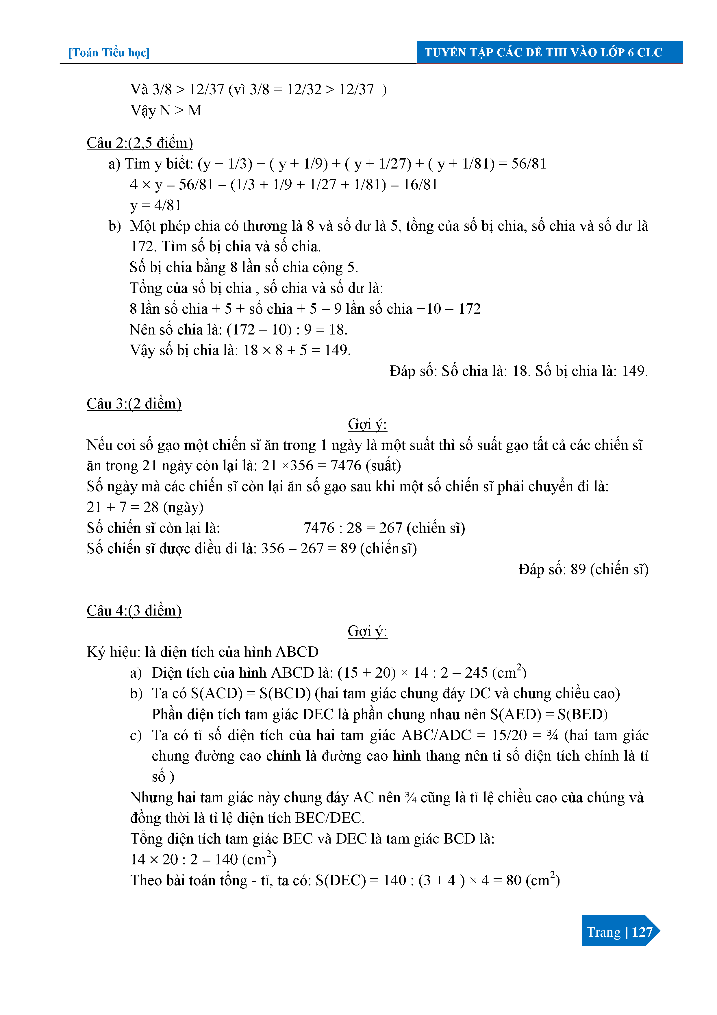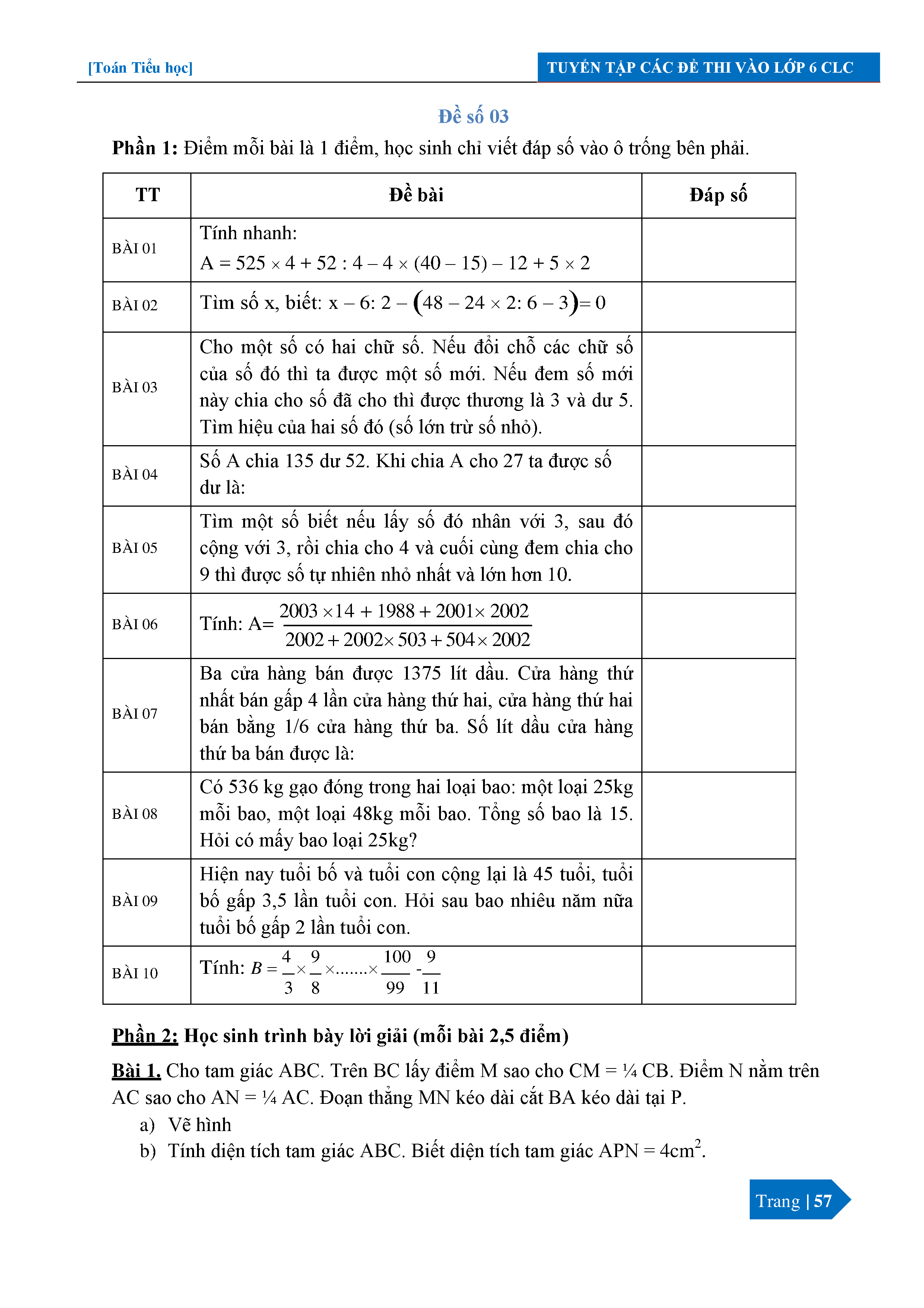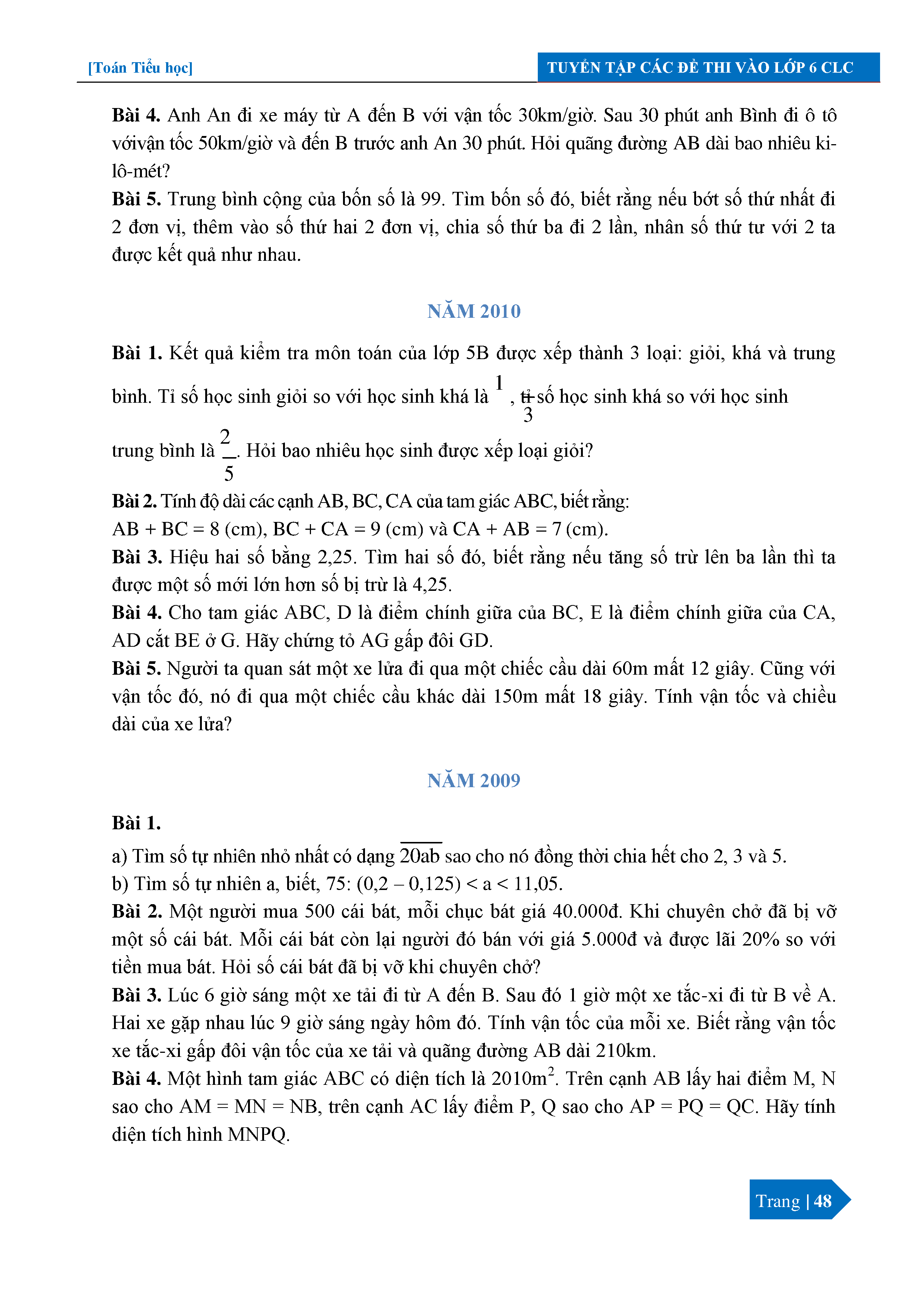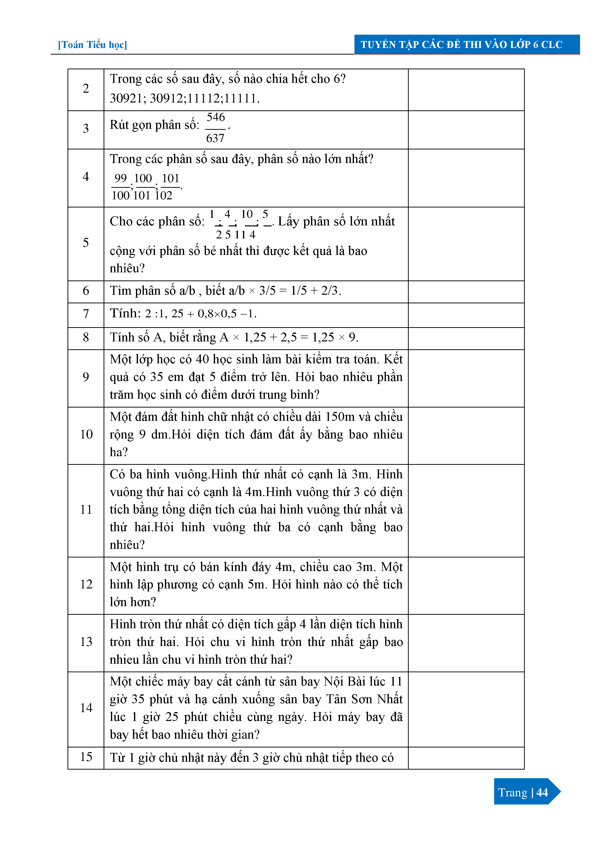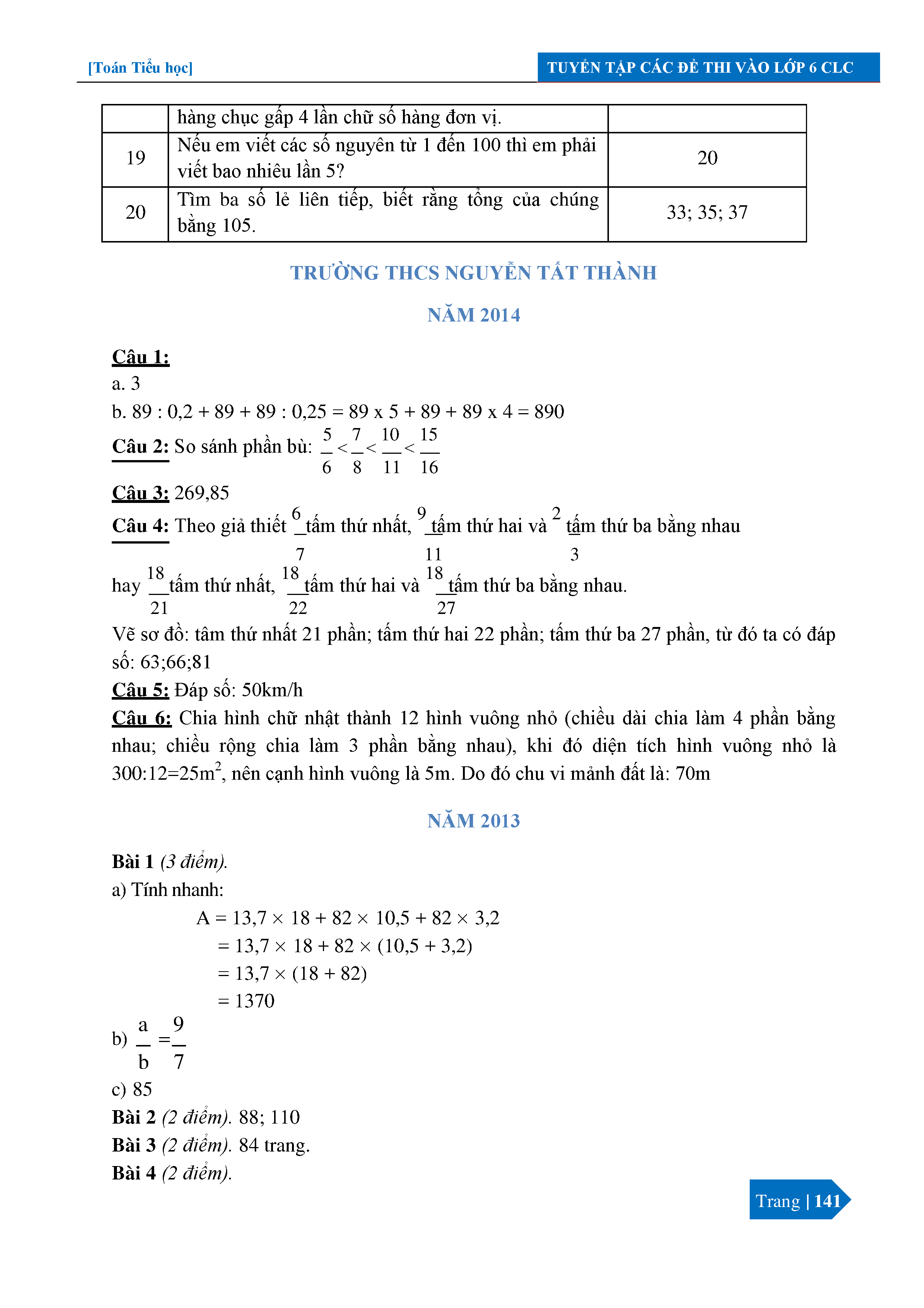 Tuyển chọn các đề thi vào lớp 6 TP Hà Nội