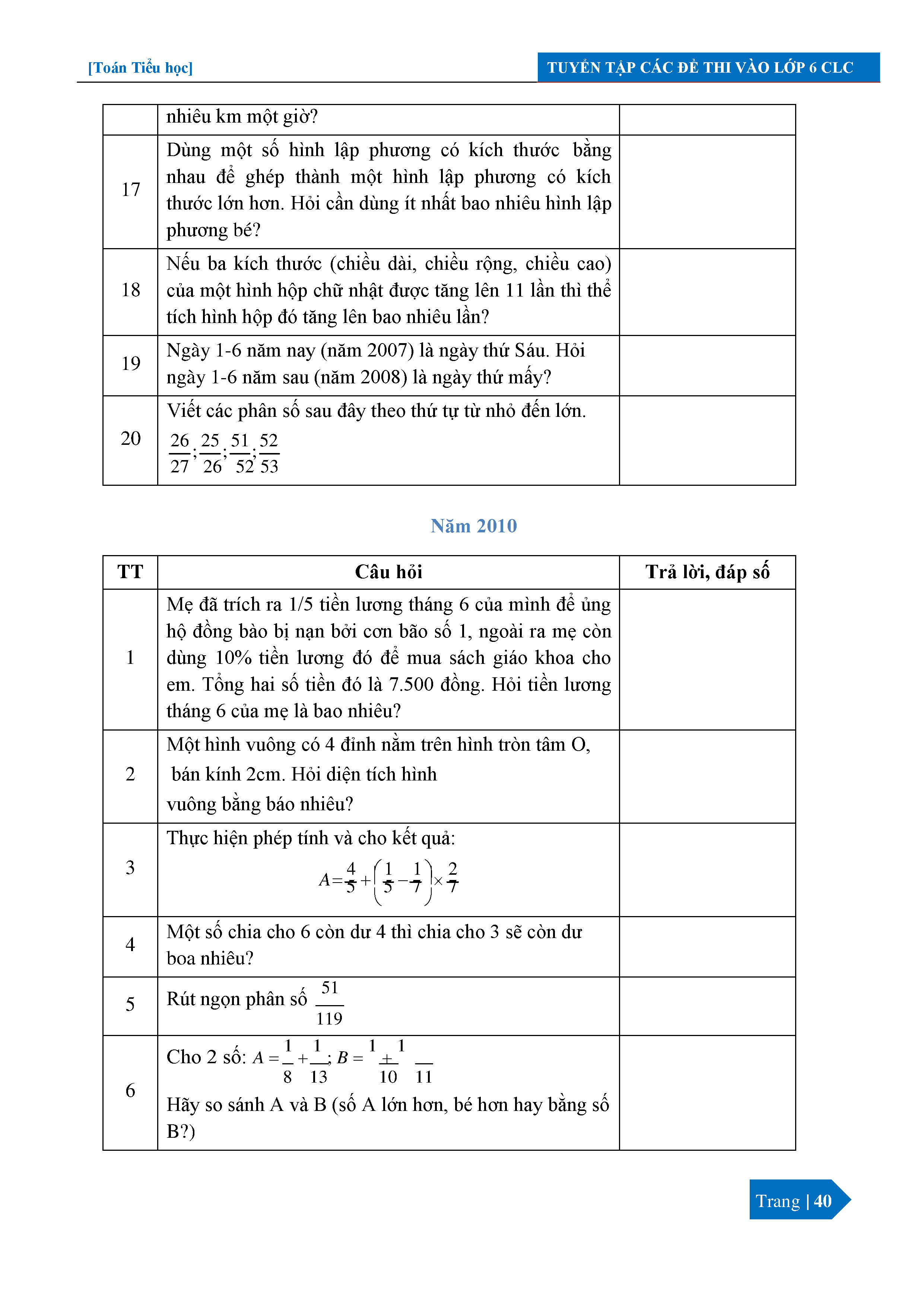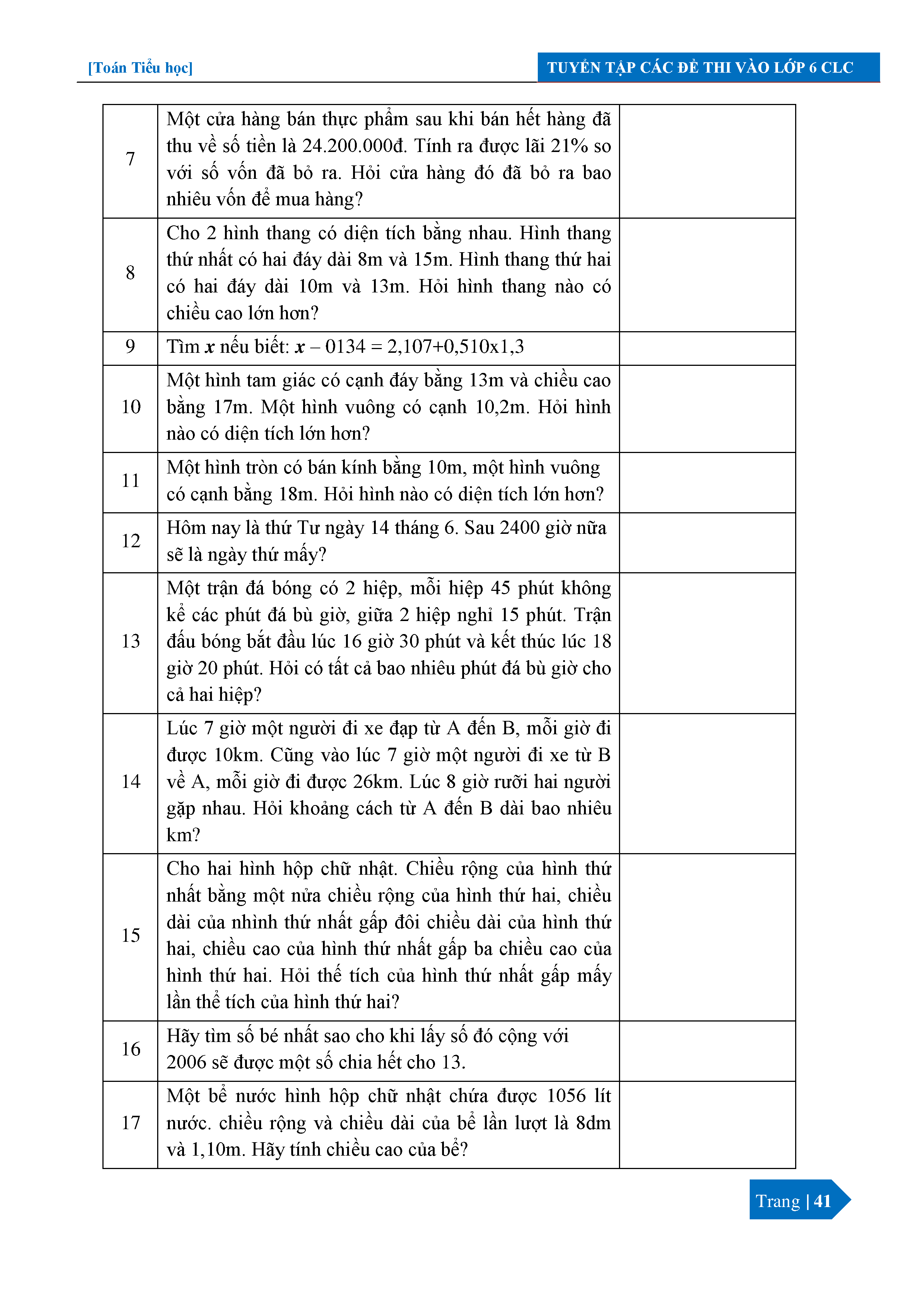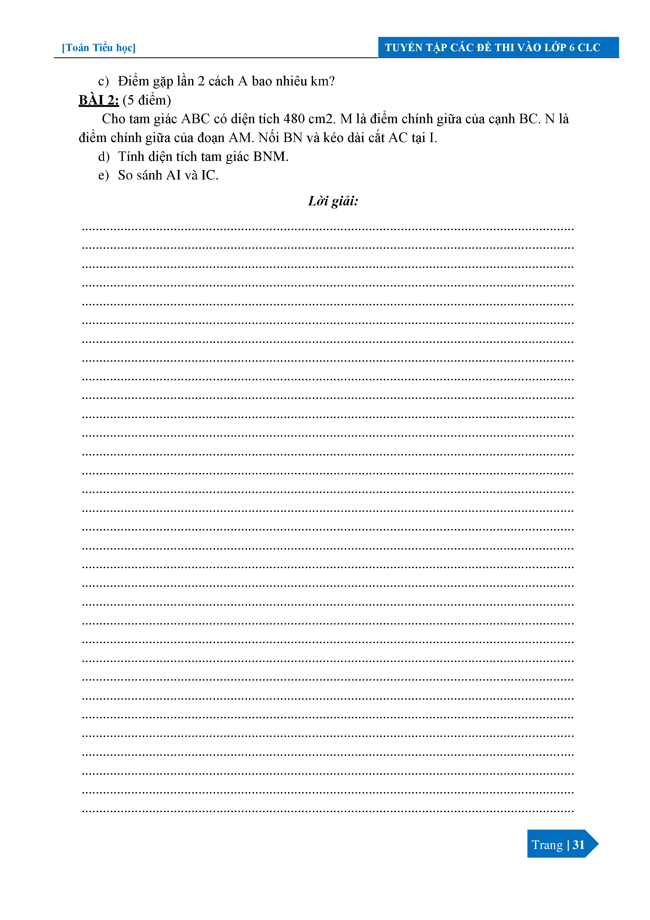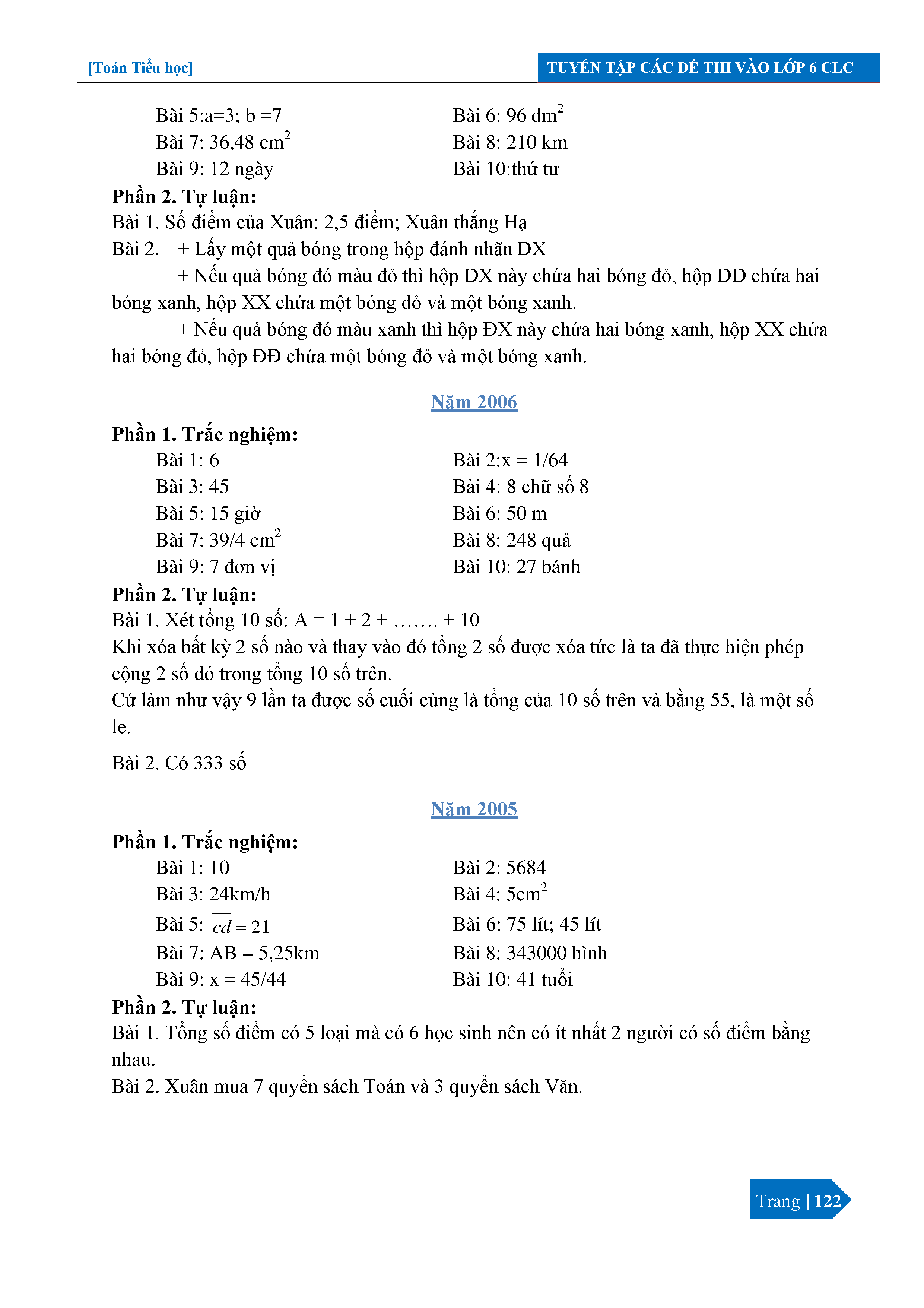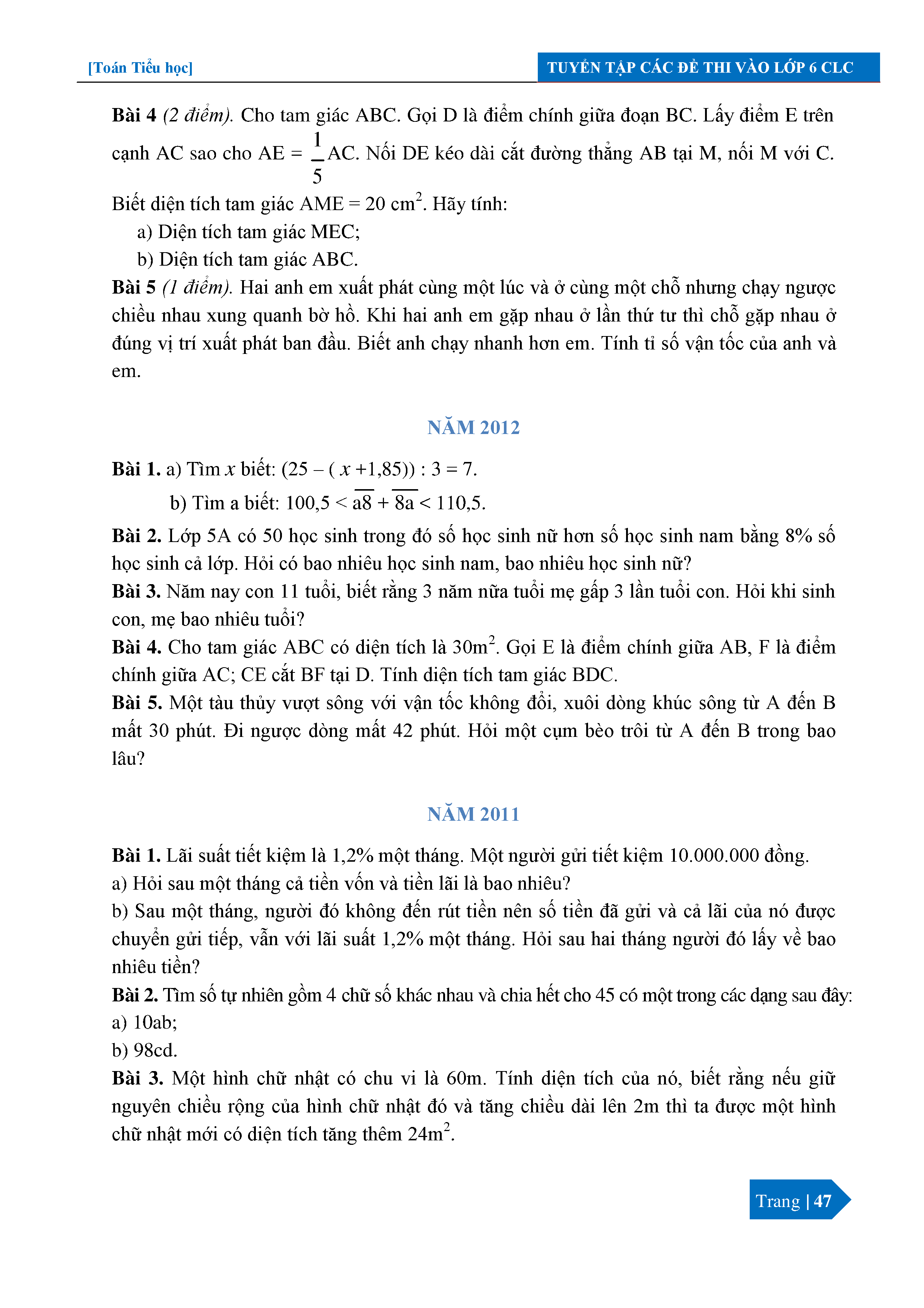 Tuyển chọn các đề thi vào lớp 6 TP Hà Nội
