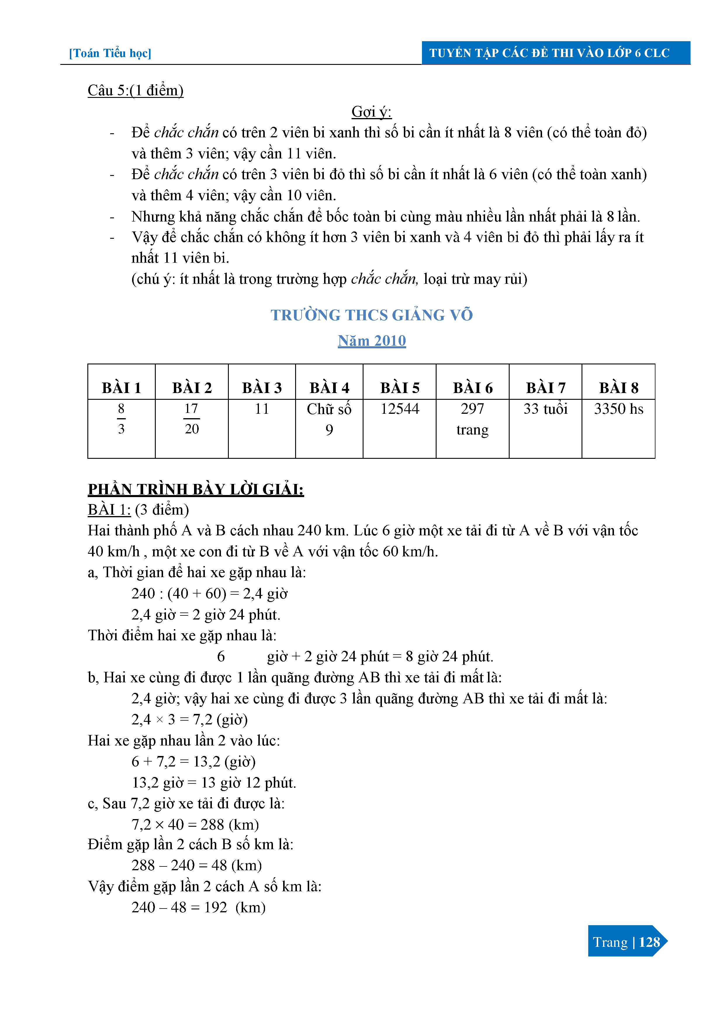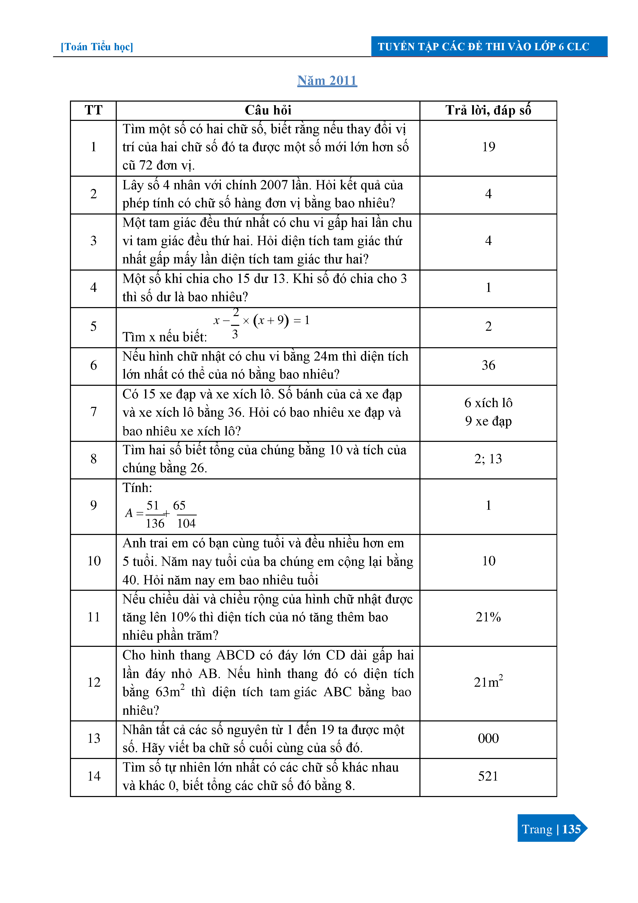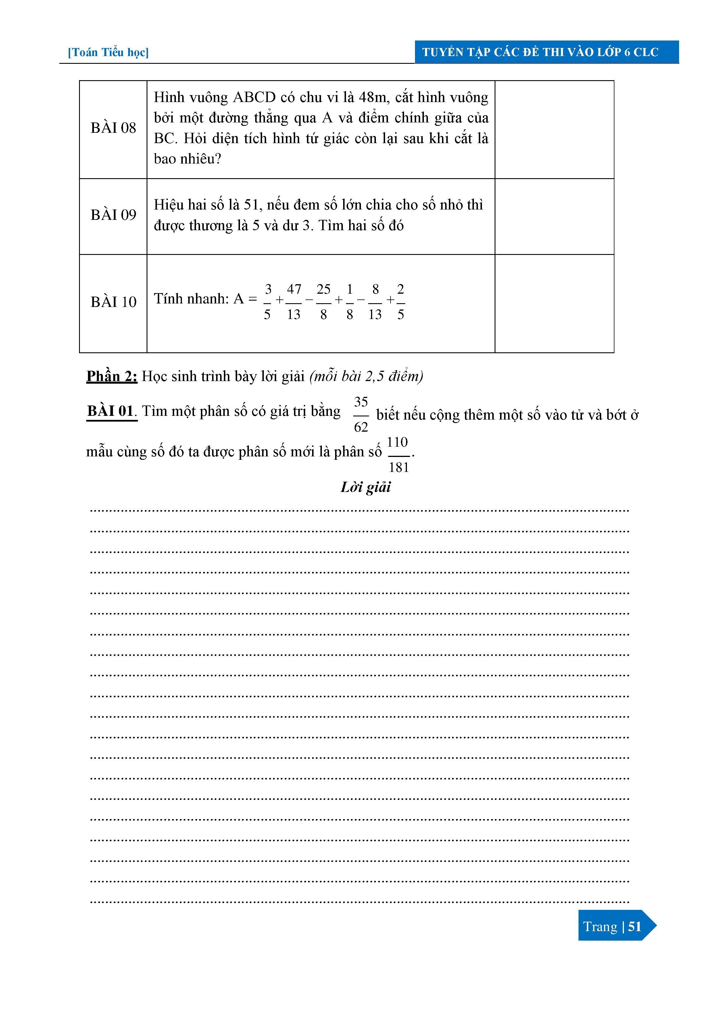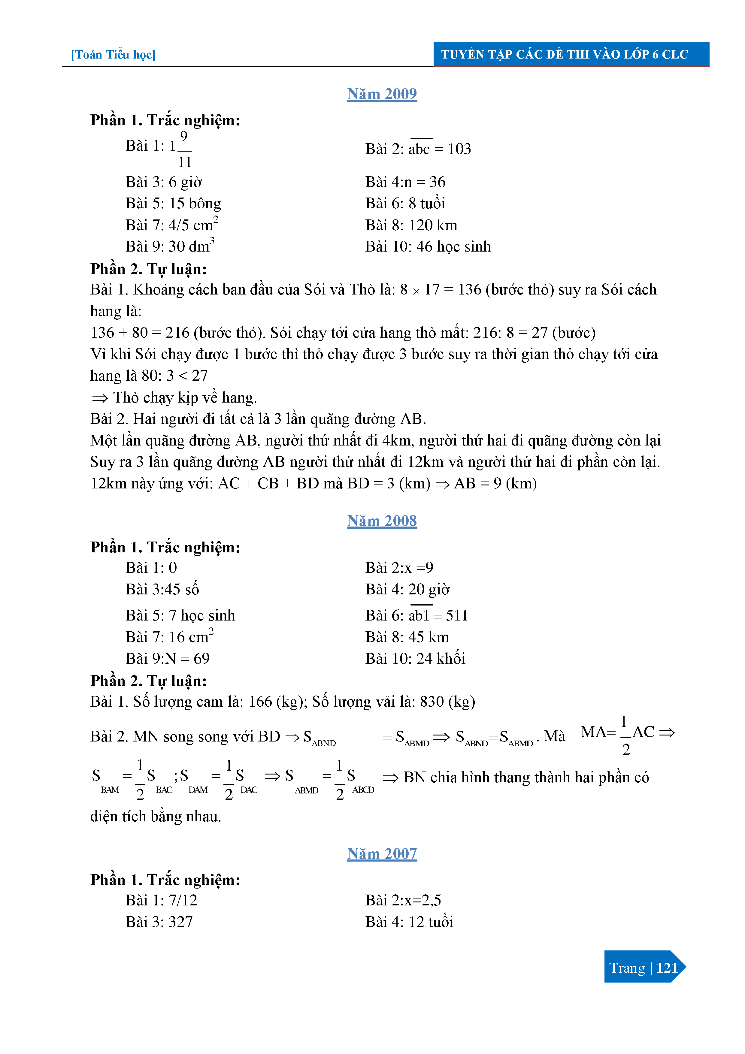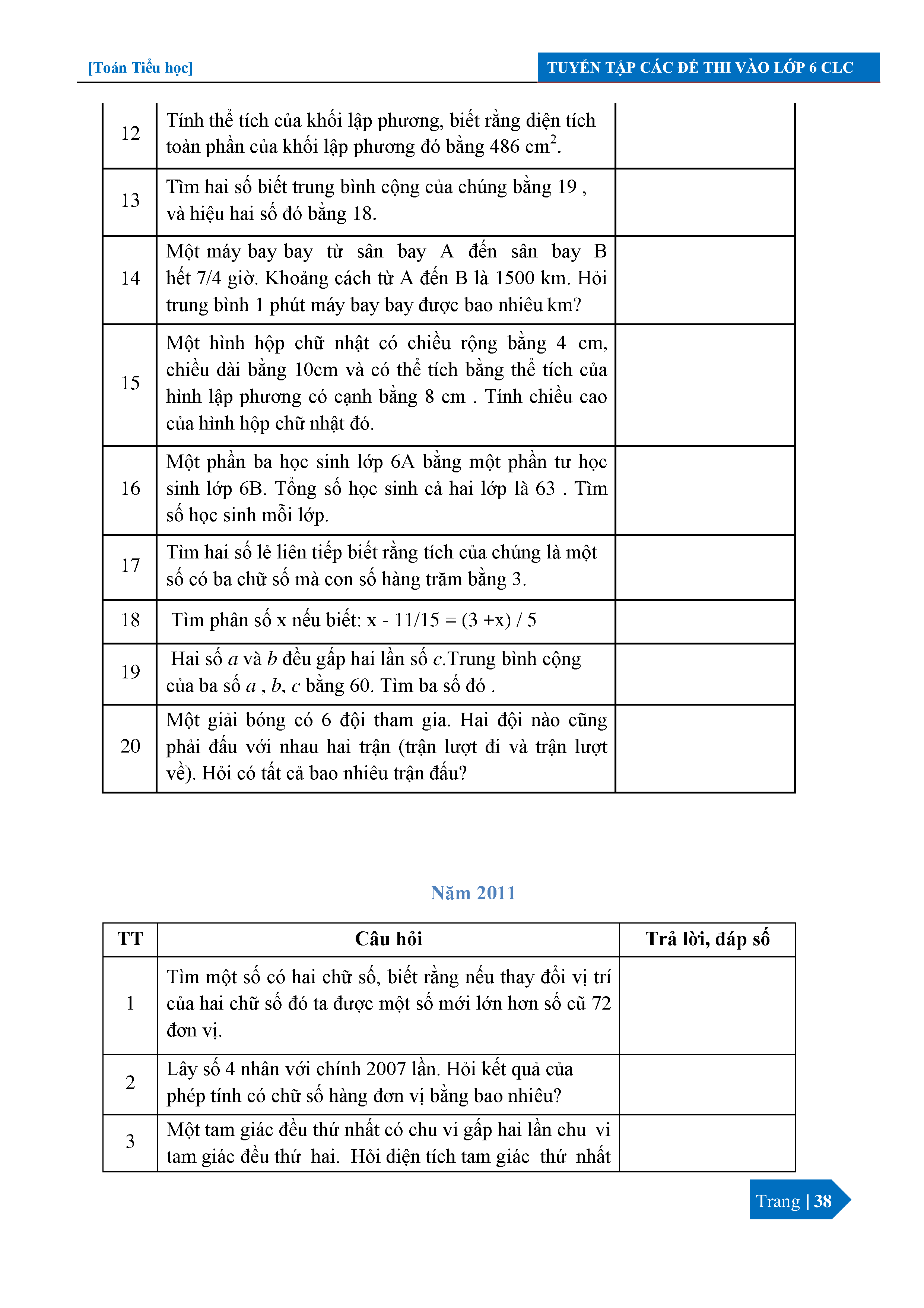 Tuyển chọn các đề thi vào lớp 6 TP Hà Nội