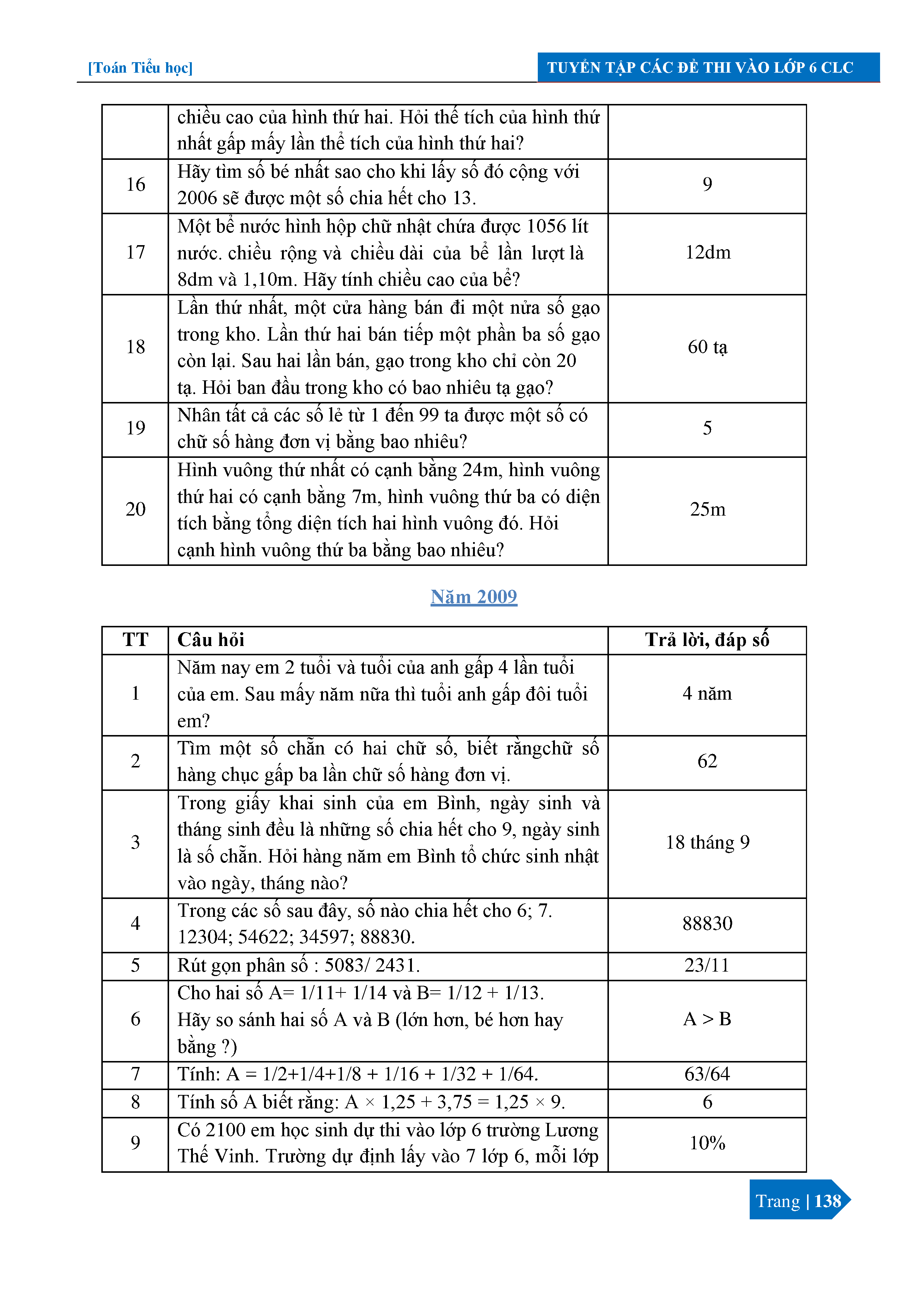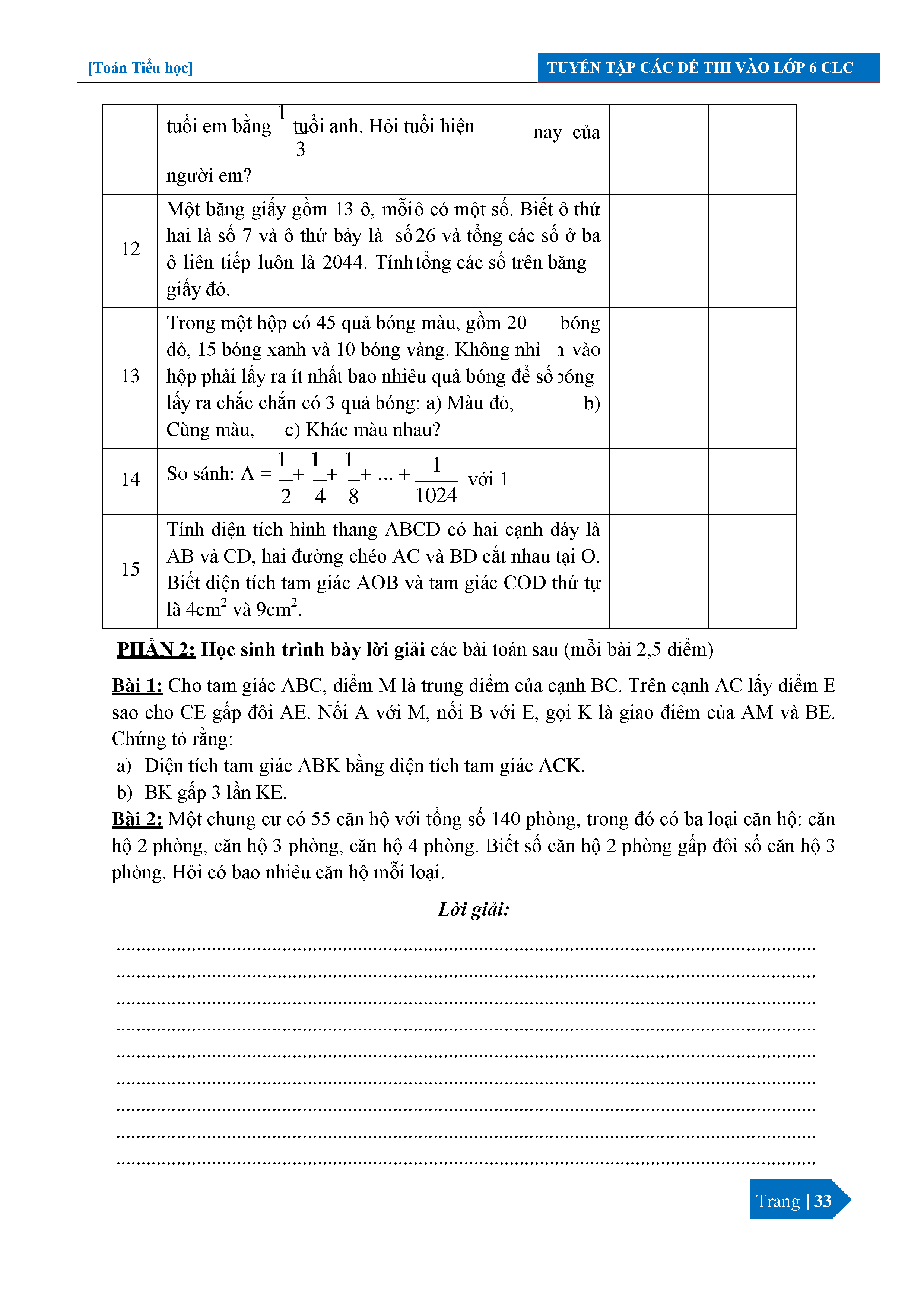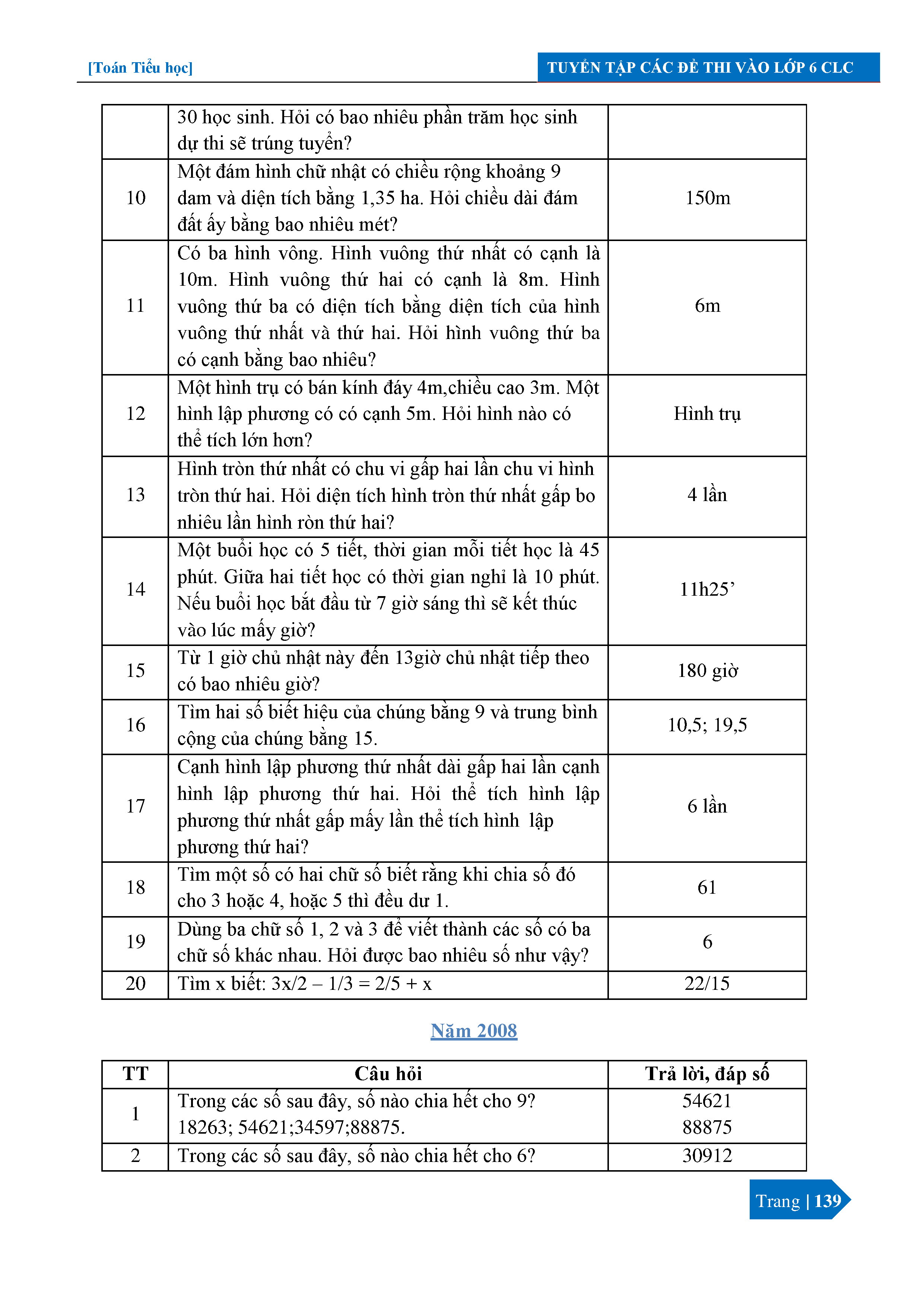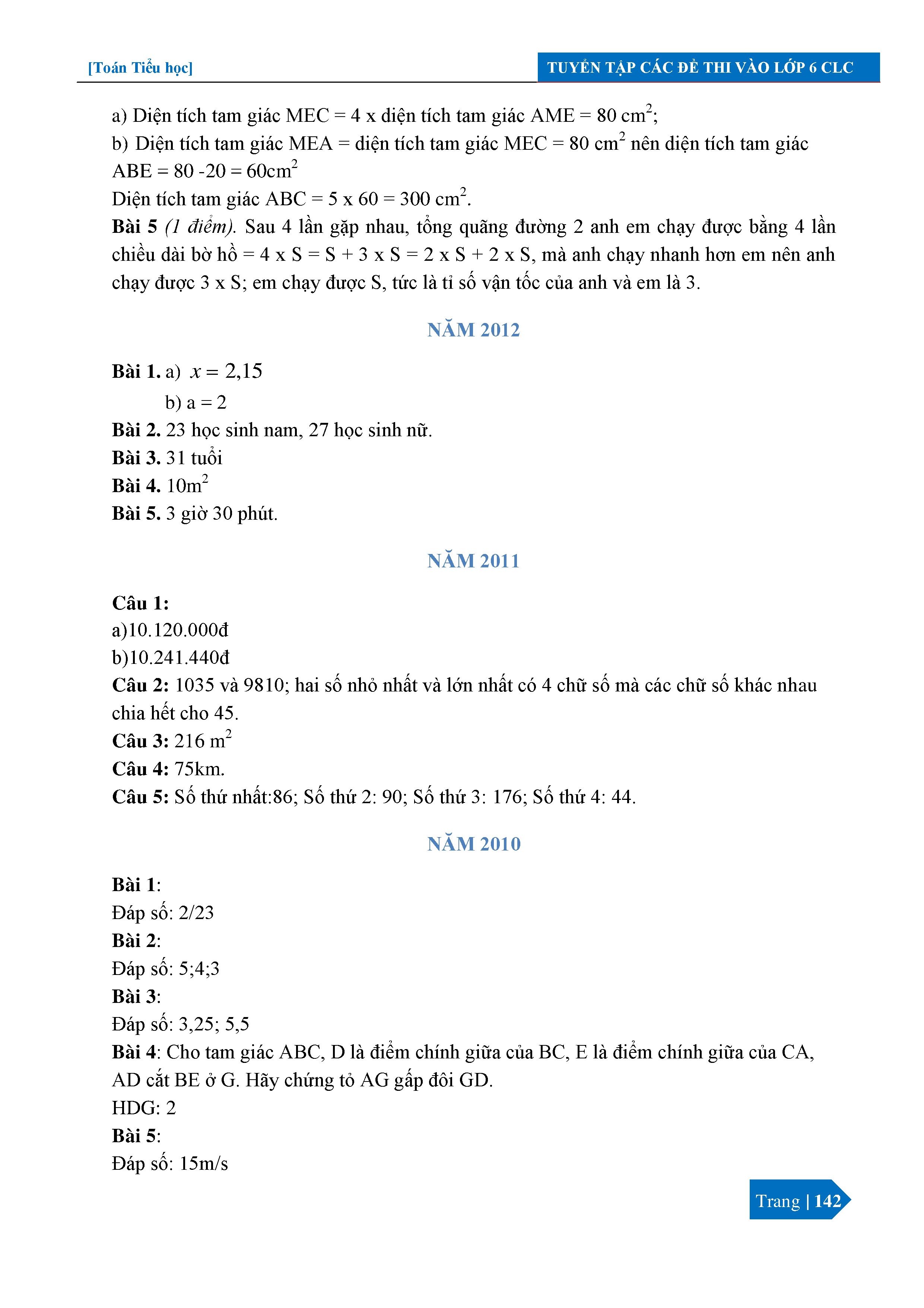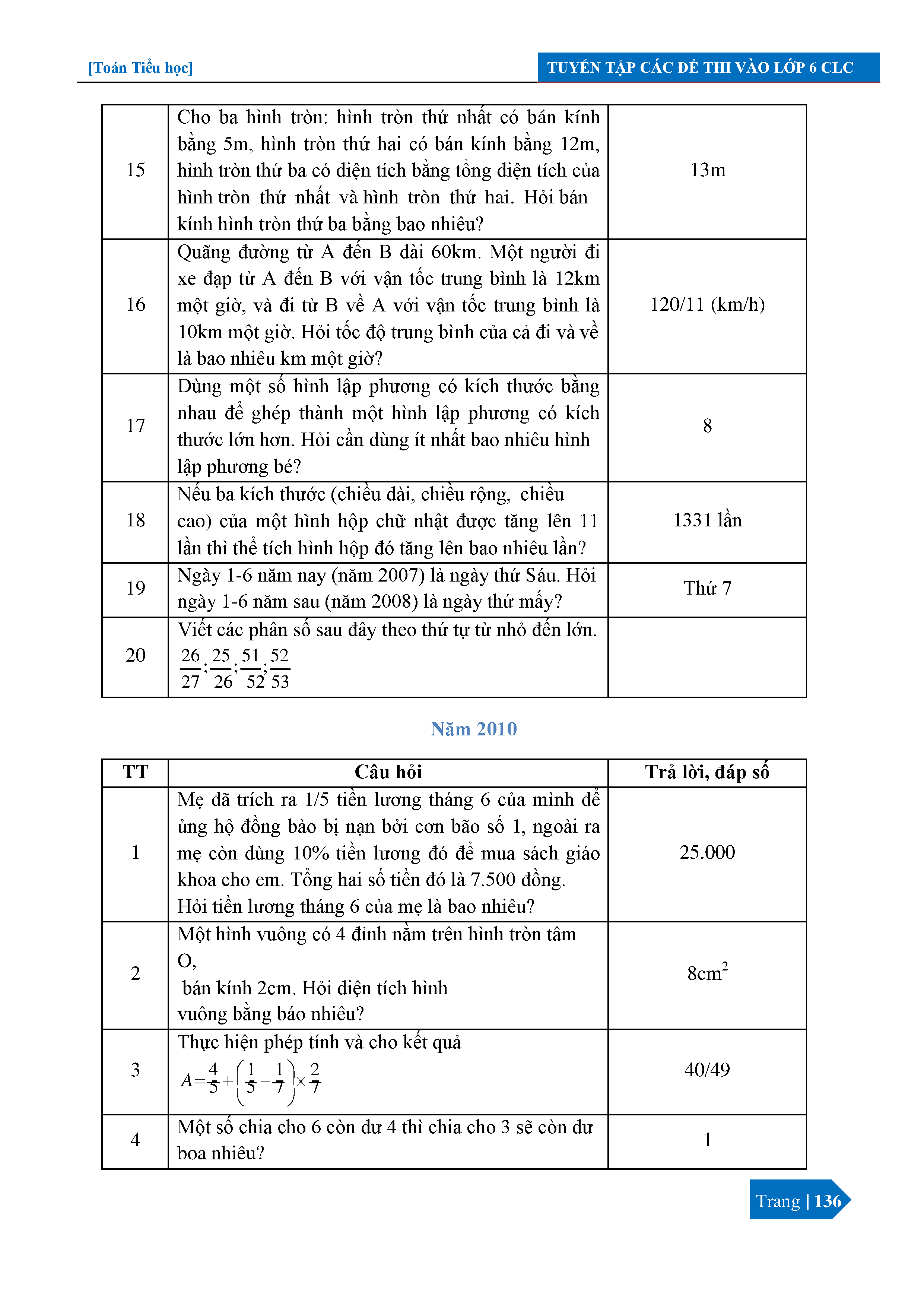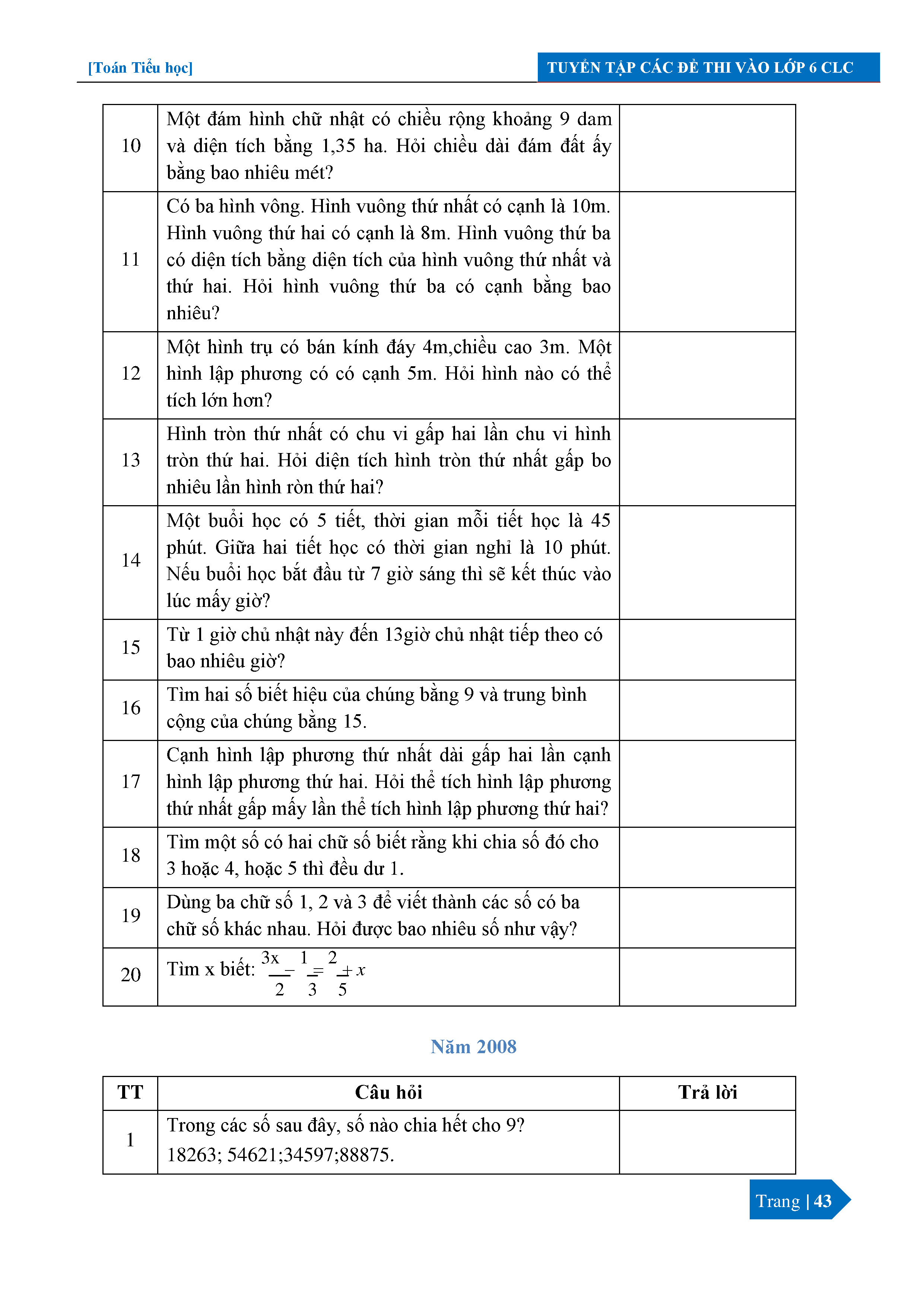 Tuyển chọn các đề thi vào lớp 6 TP Hà Nội
