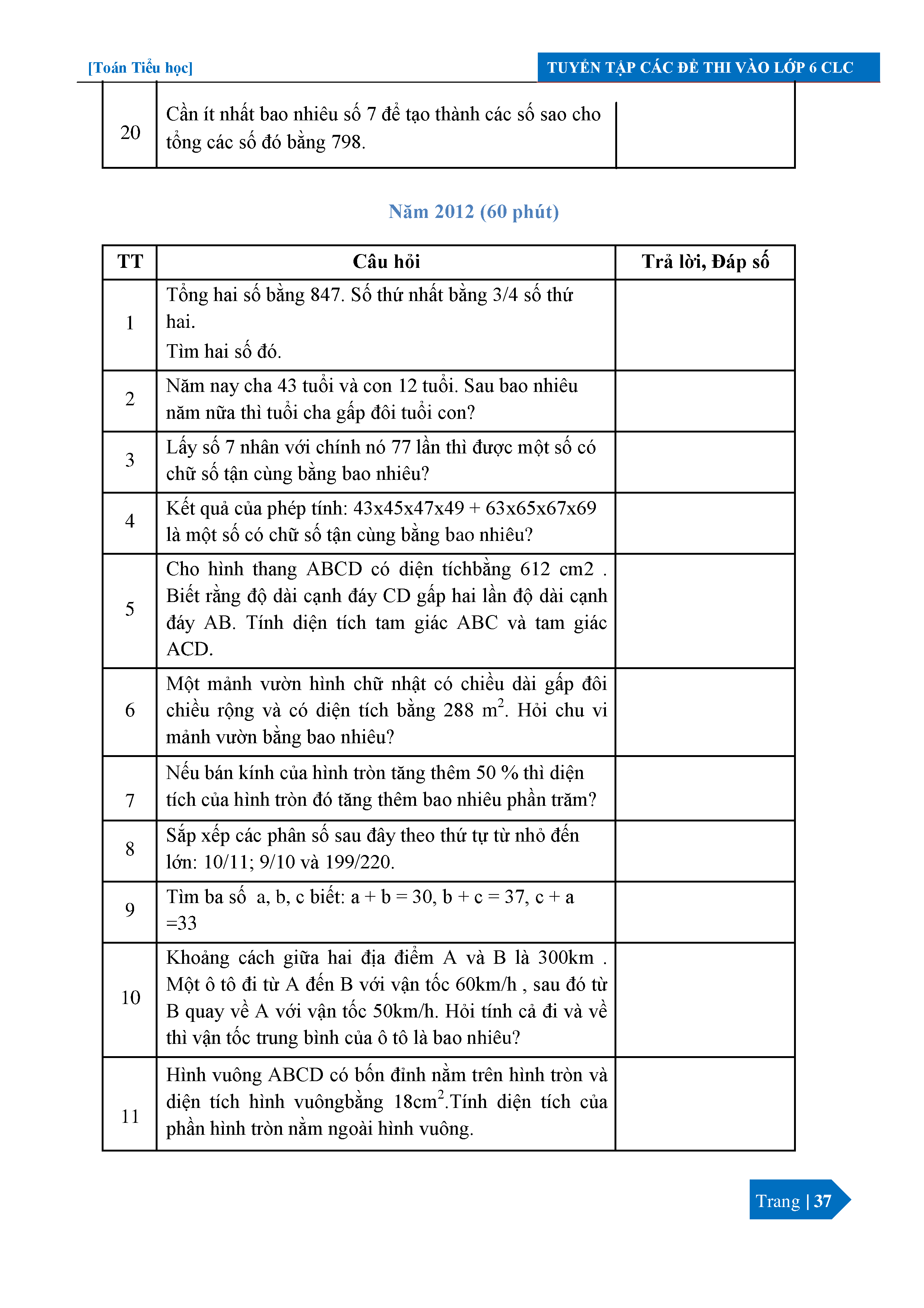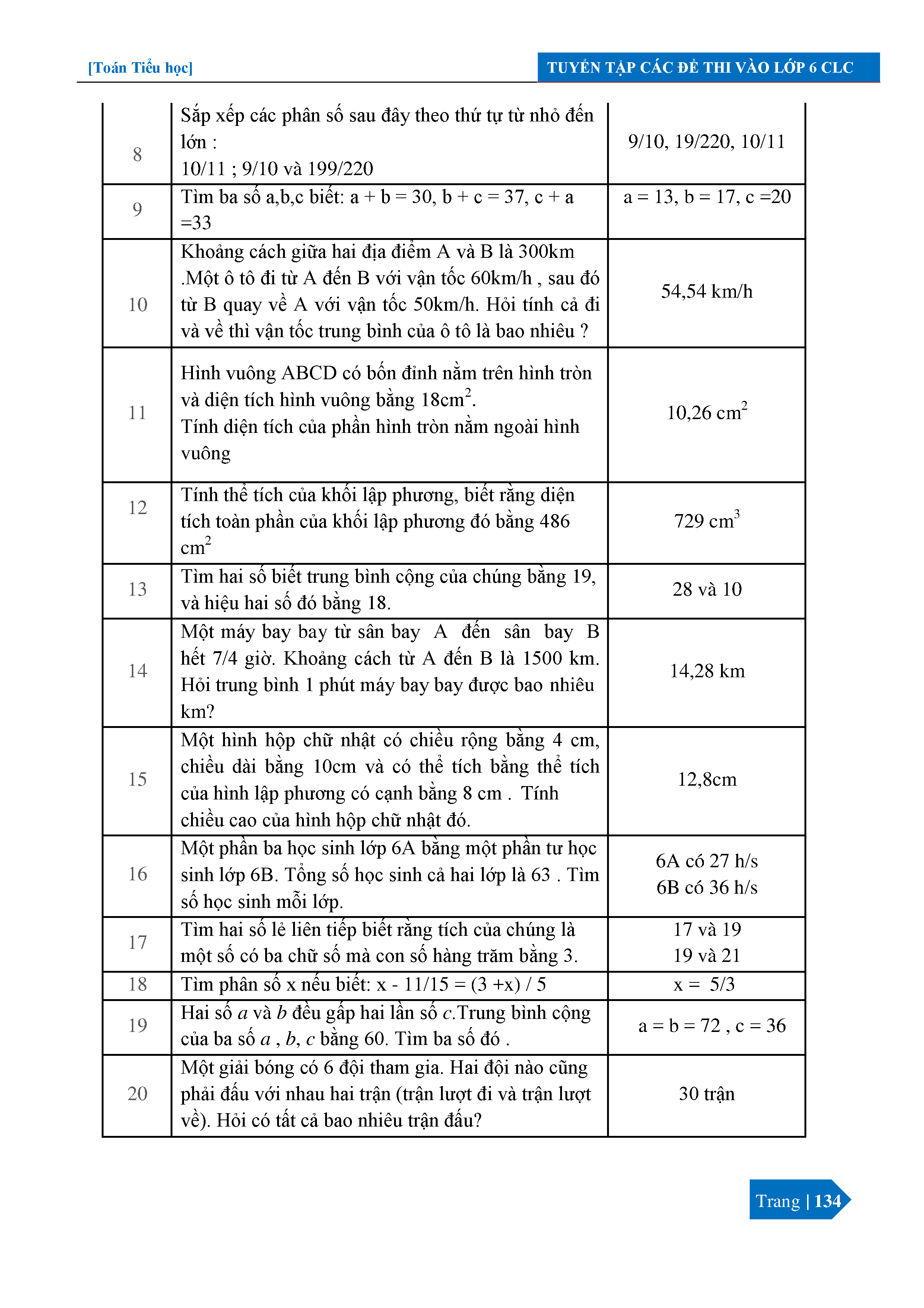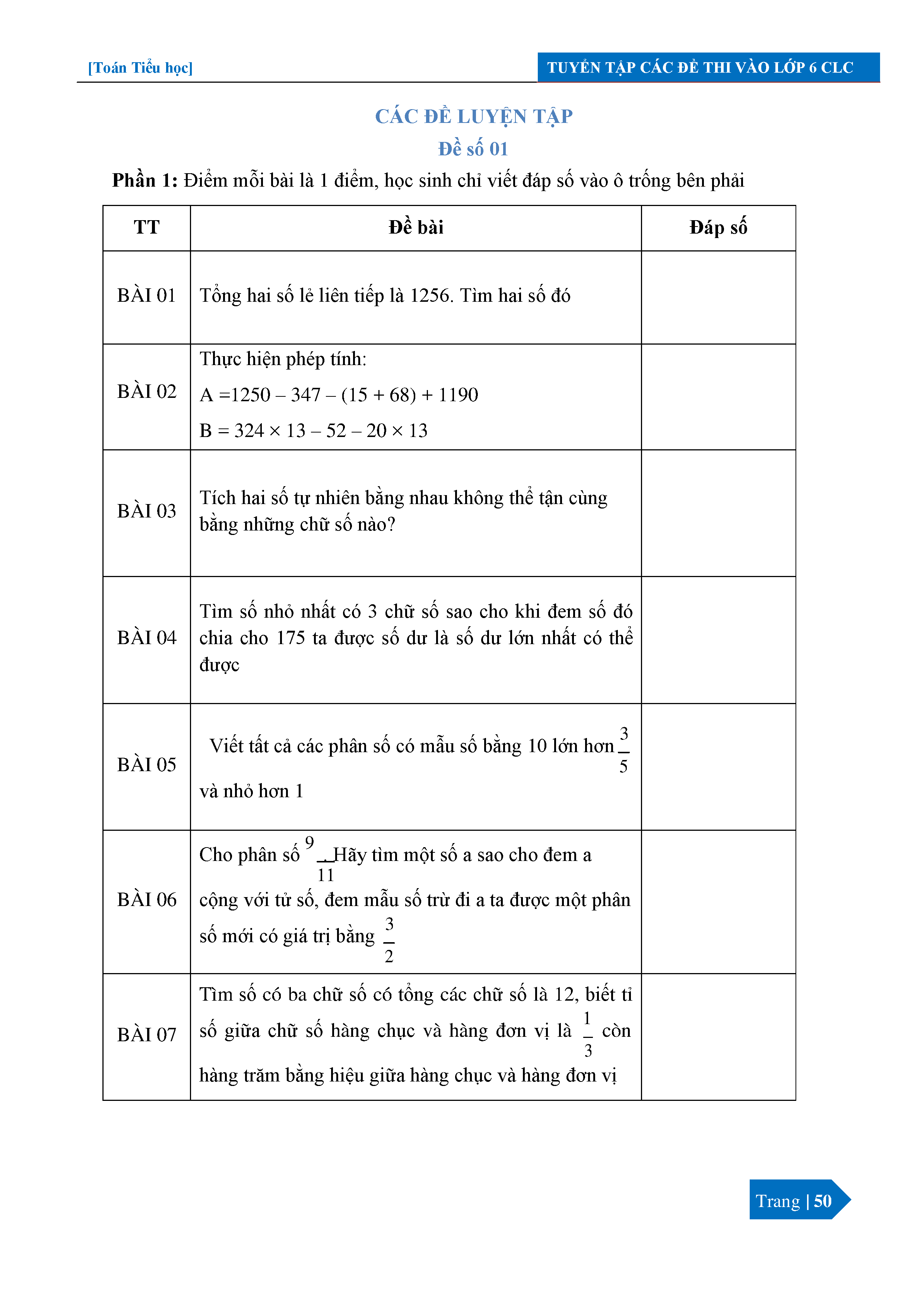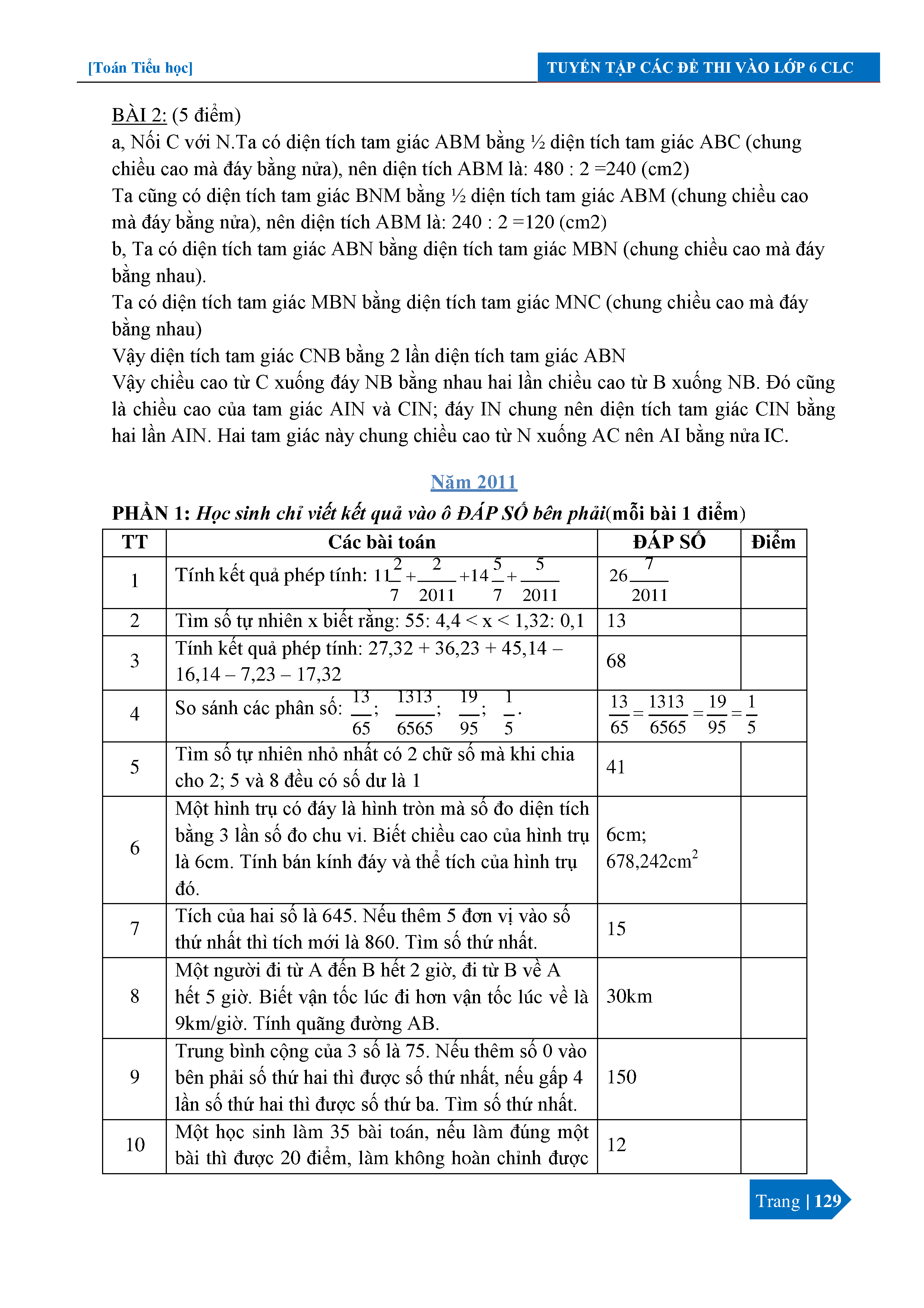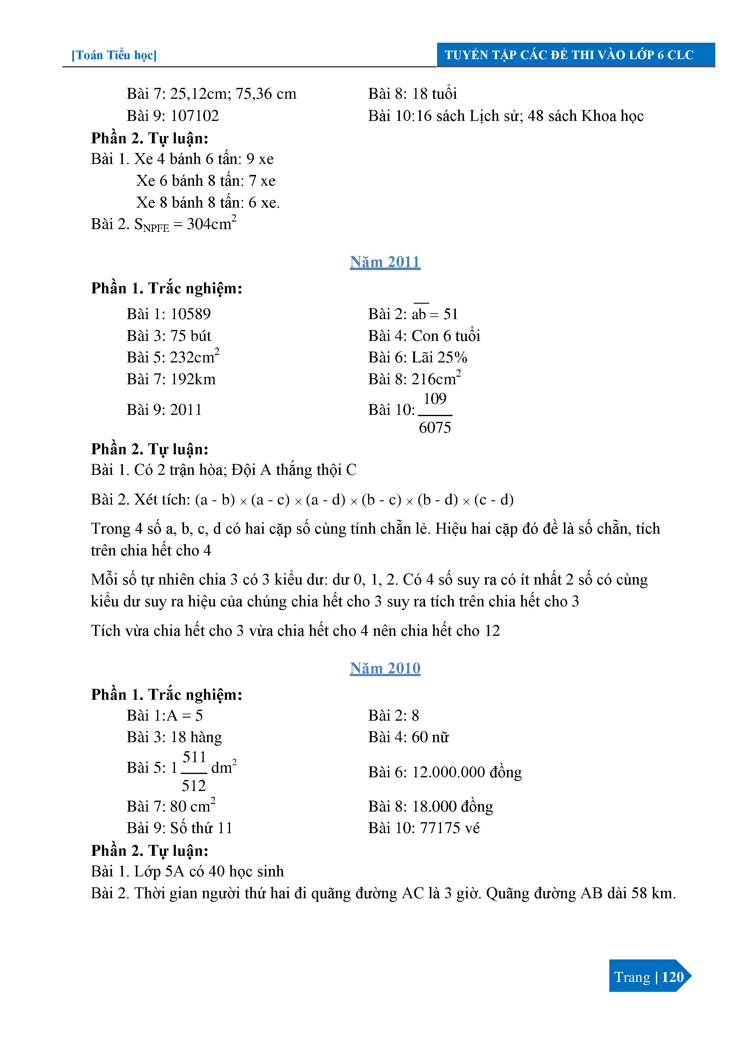 Tuyển chọn các đề thi vào lớp 6 TP Hà Nội