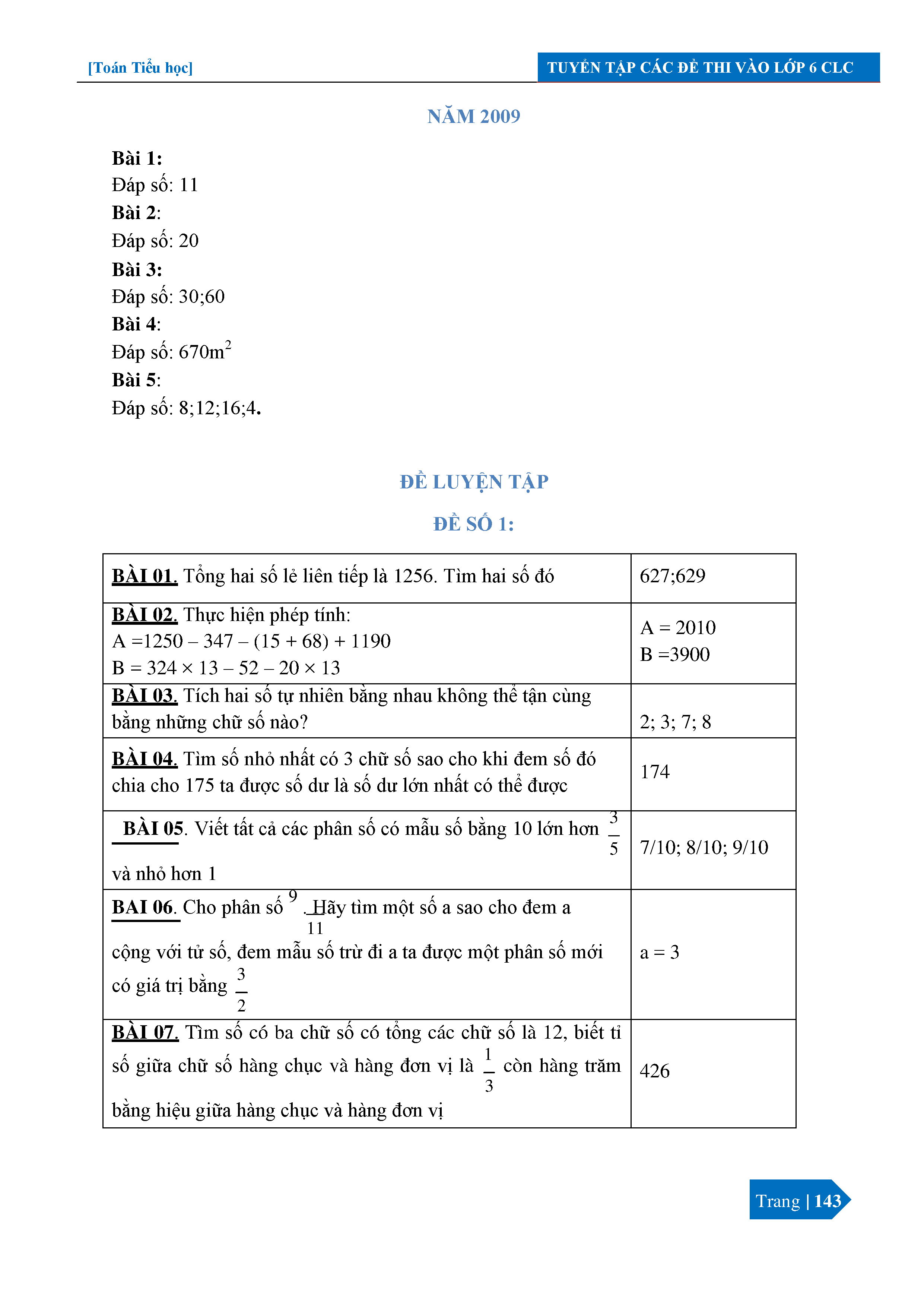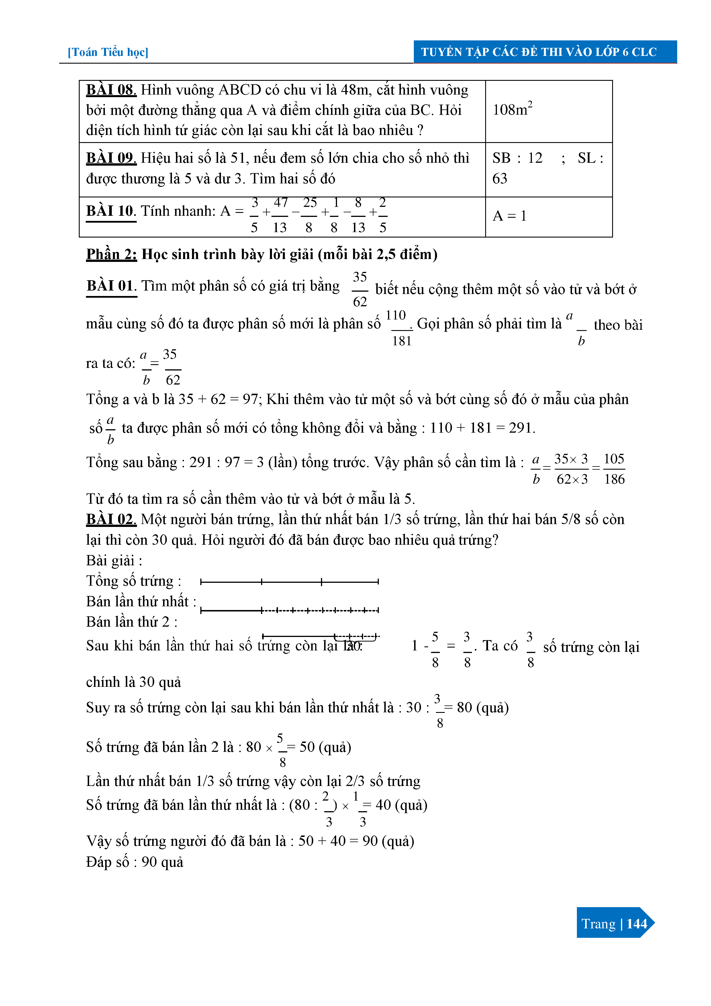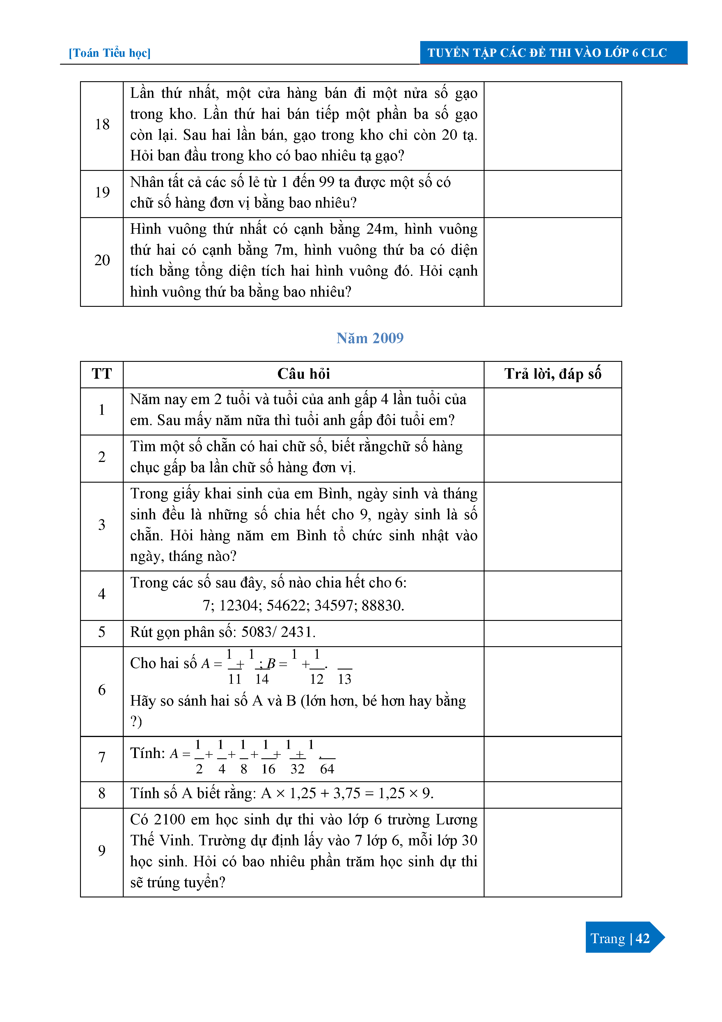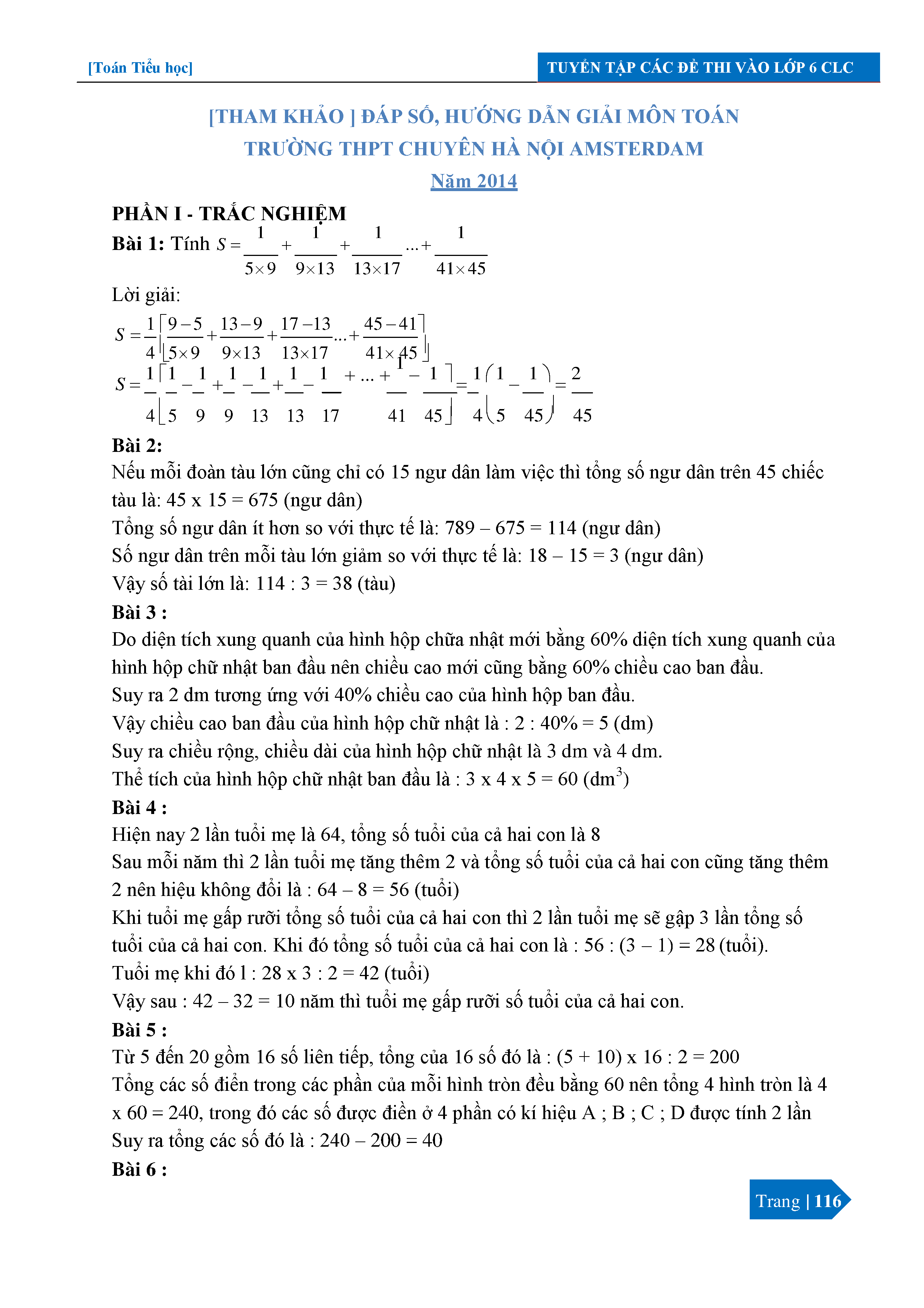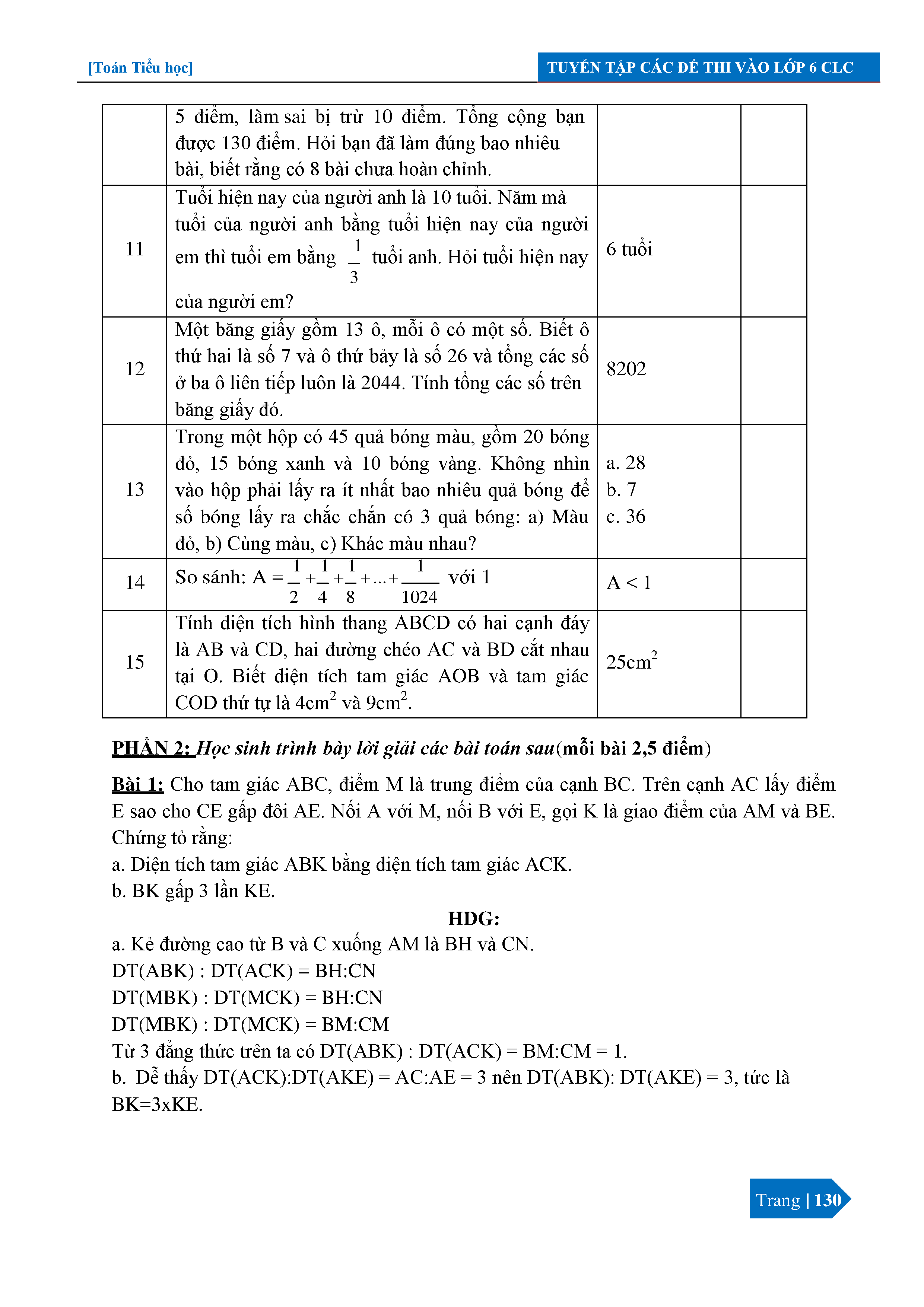 Tuyển chọn các đề thi vào lớp 6 TP Hà Nội