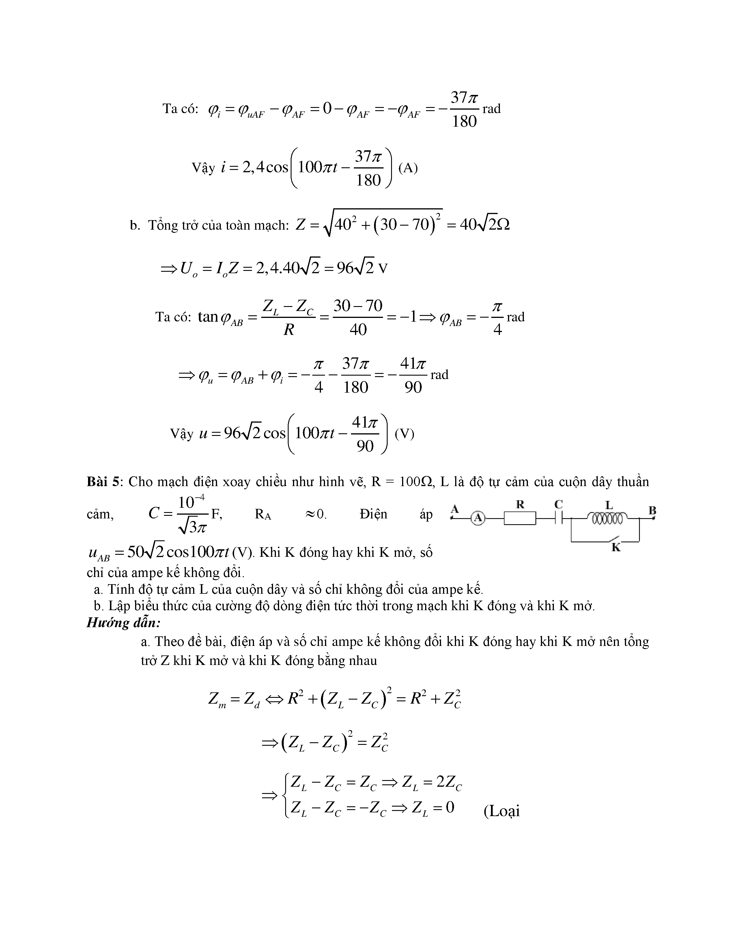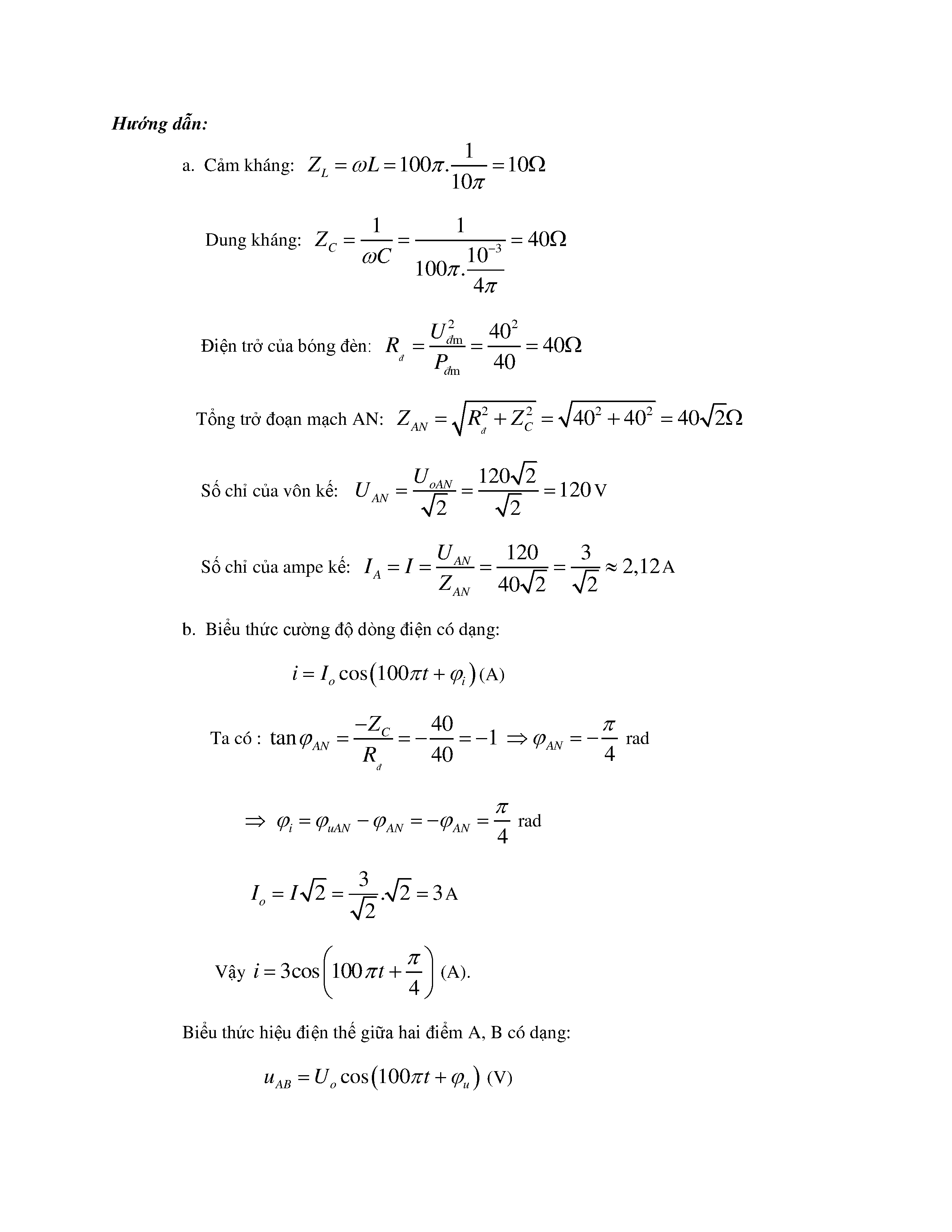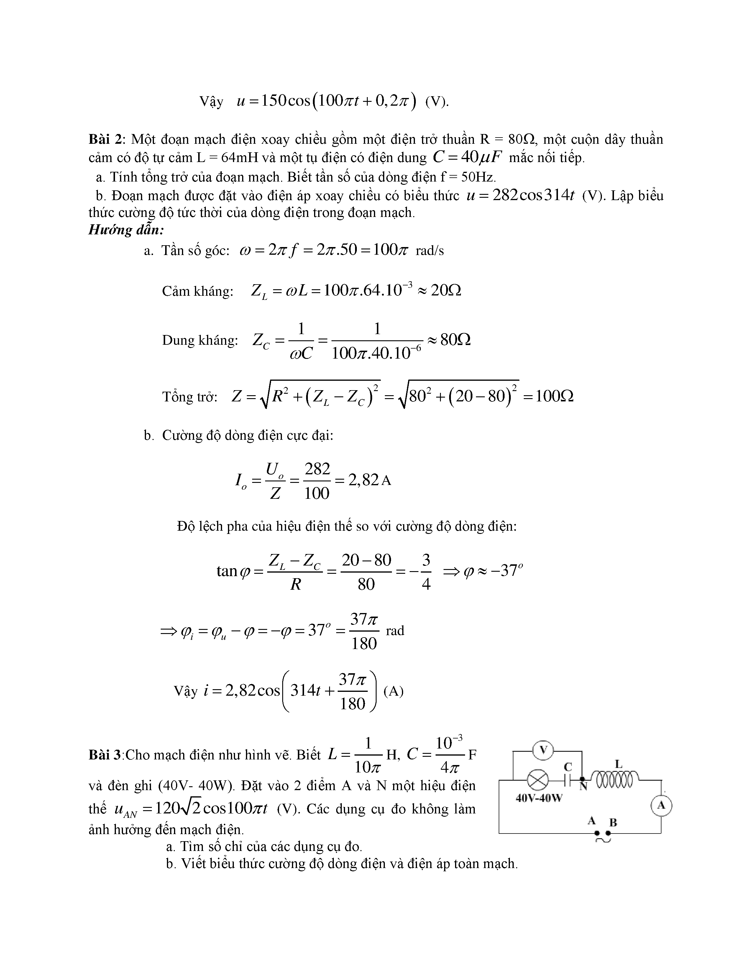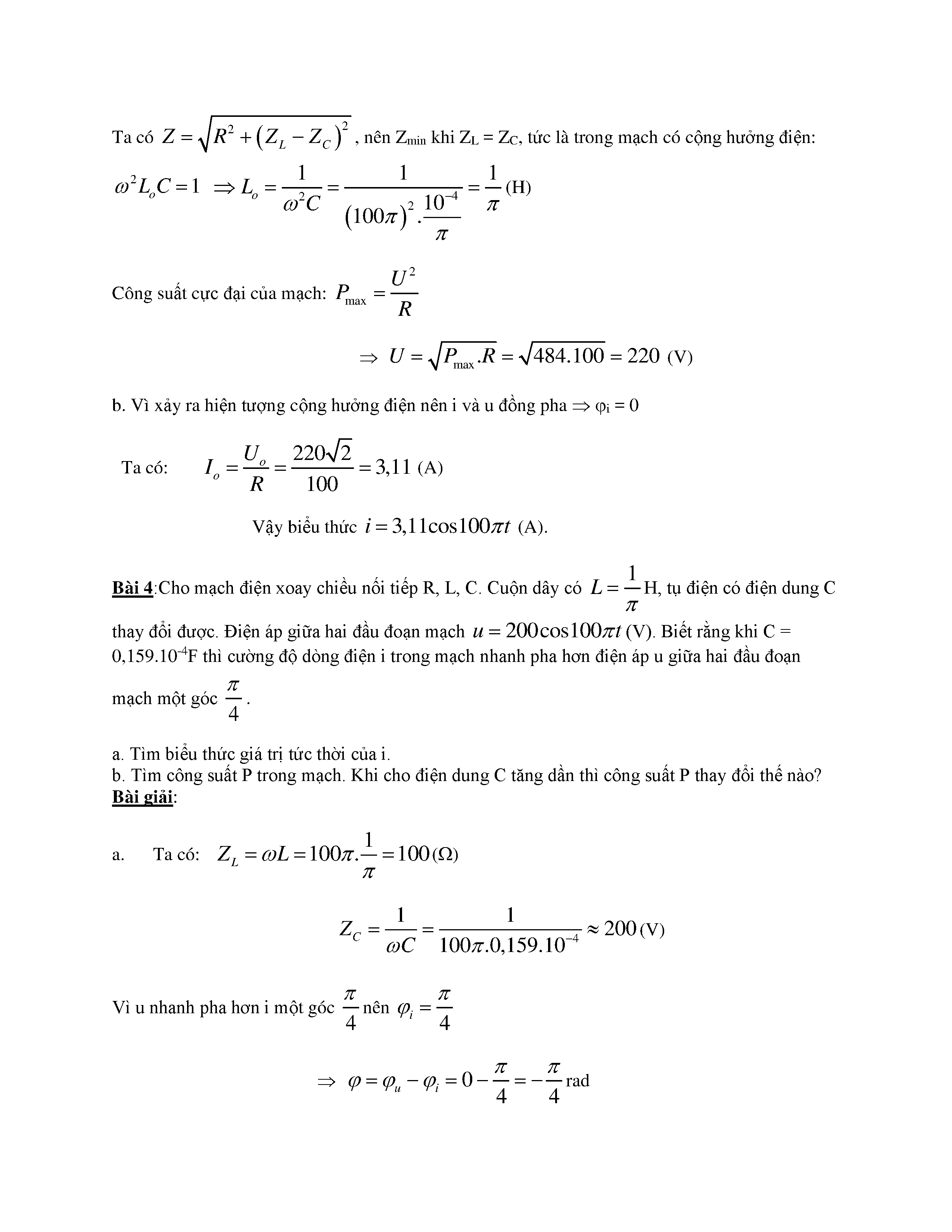 Bài tập dòng điện xoay chiều hay có lời giải chi tiết