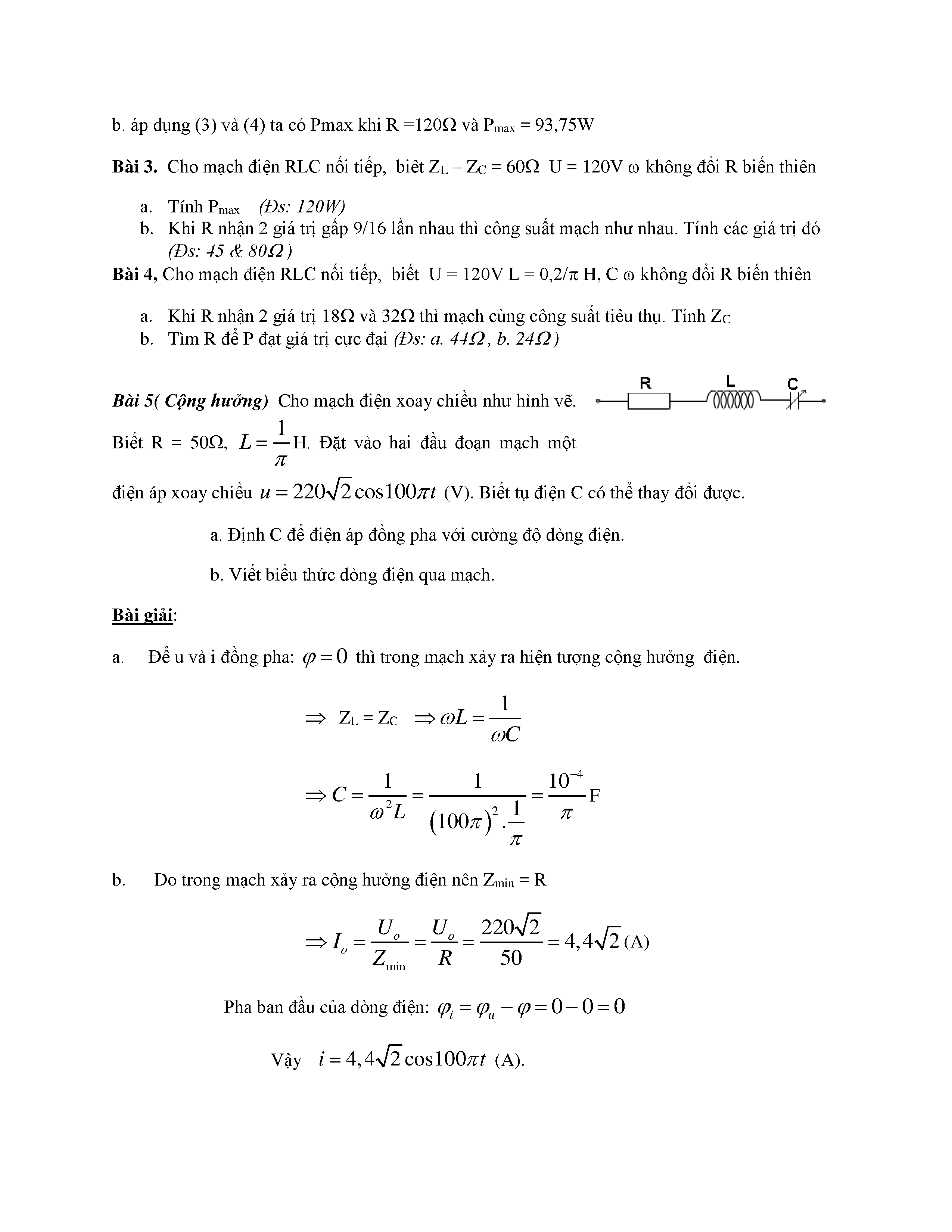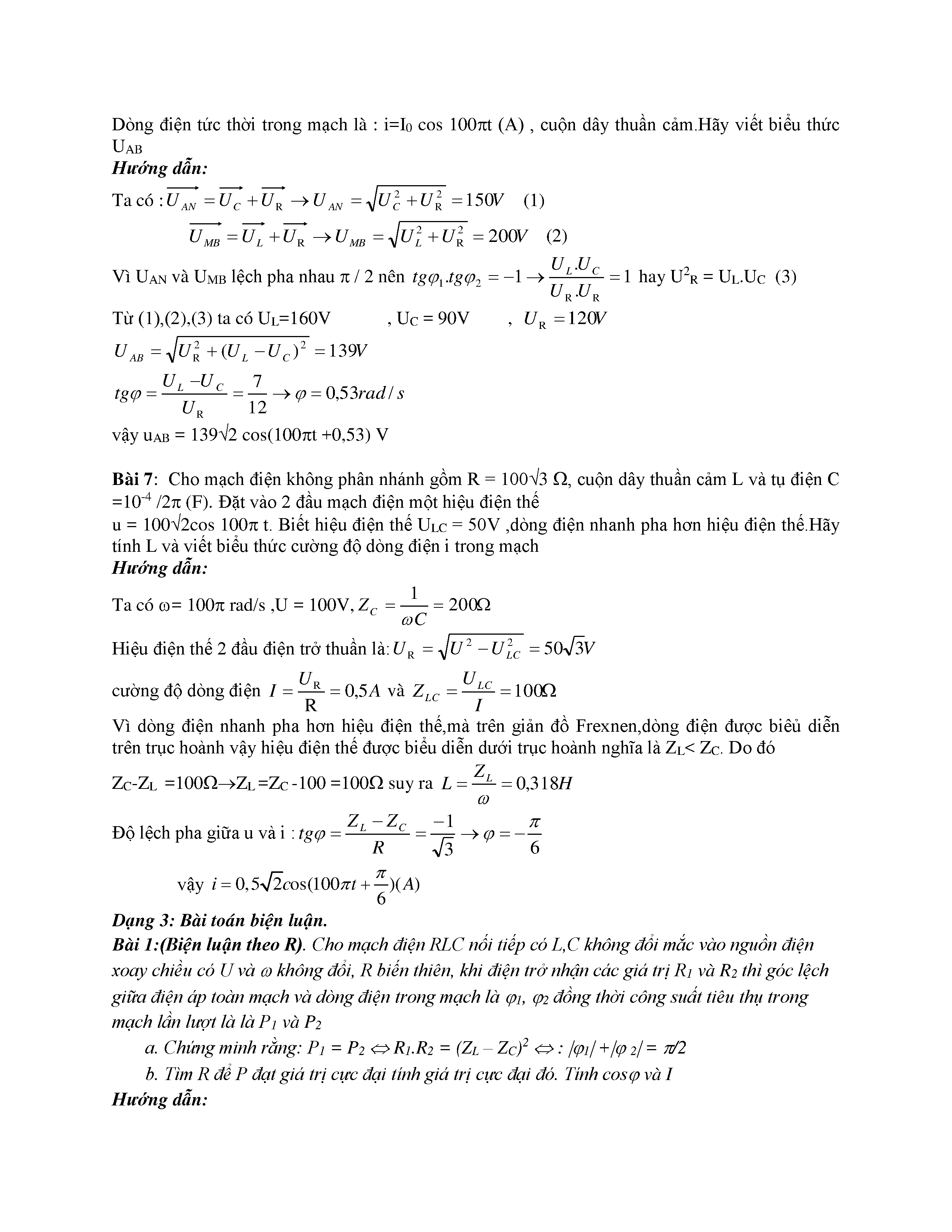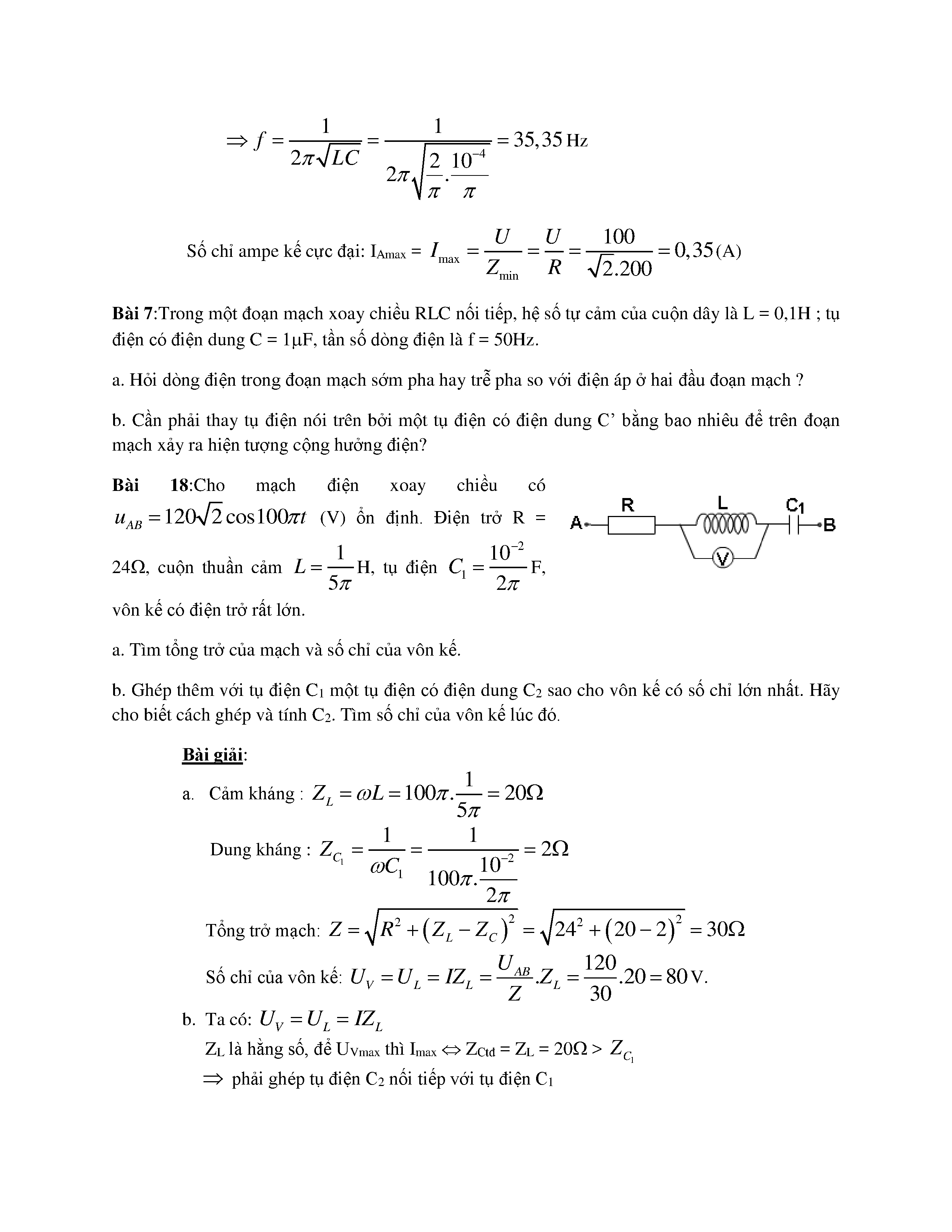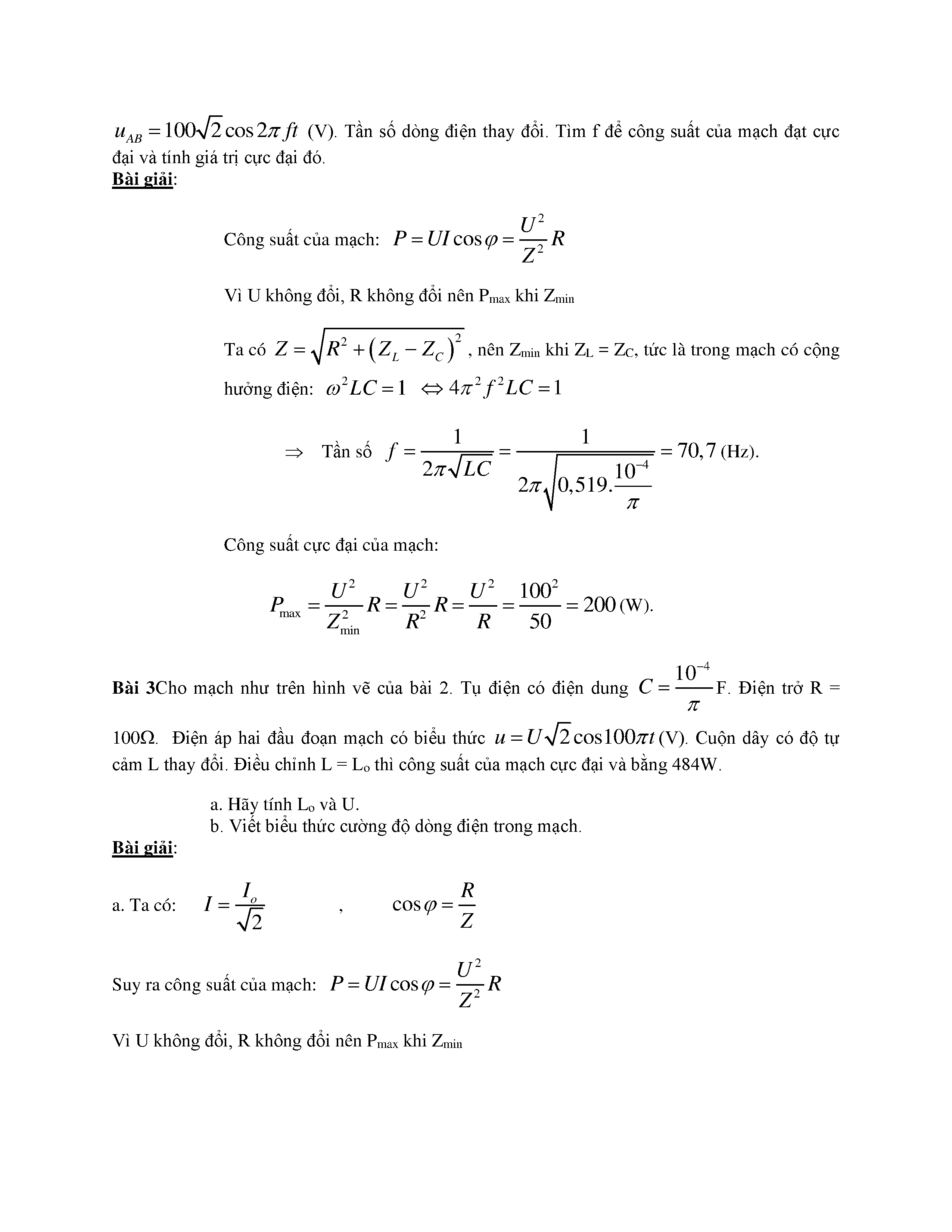 Bài tập dòng điện xoay chiều hay có lời giải chi tiết