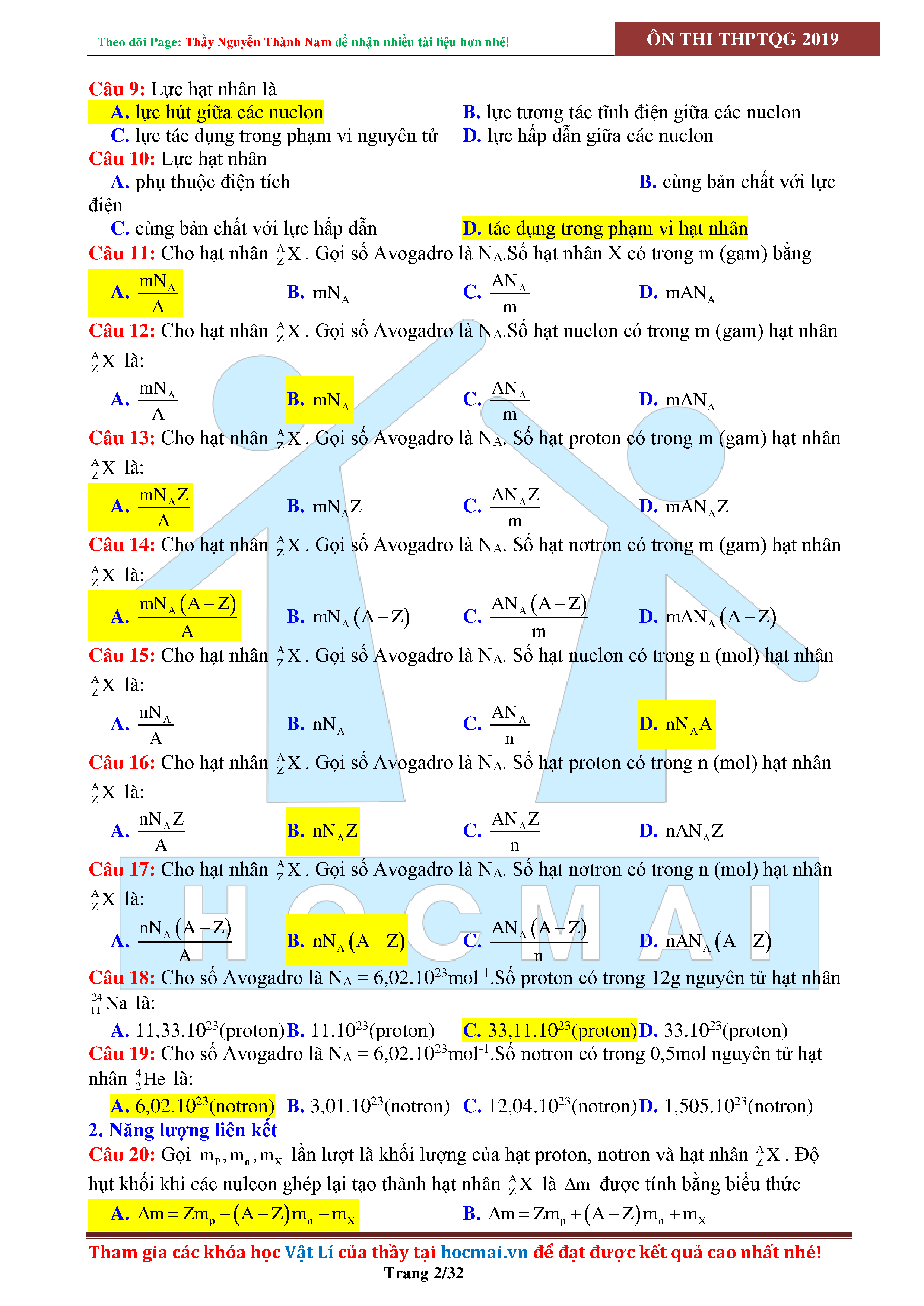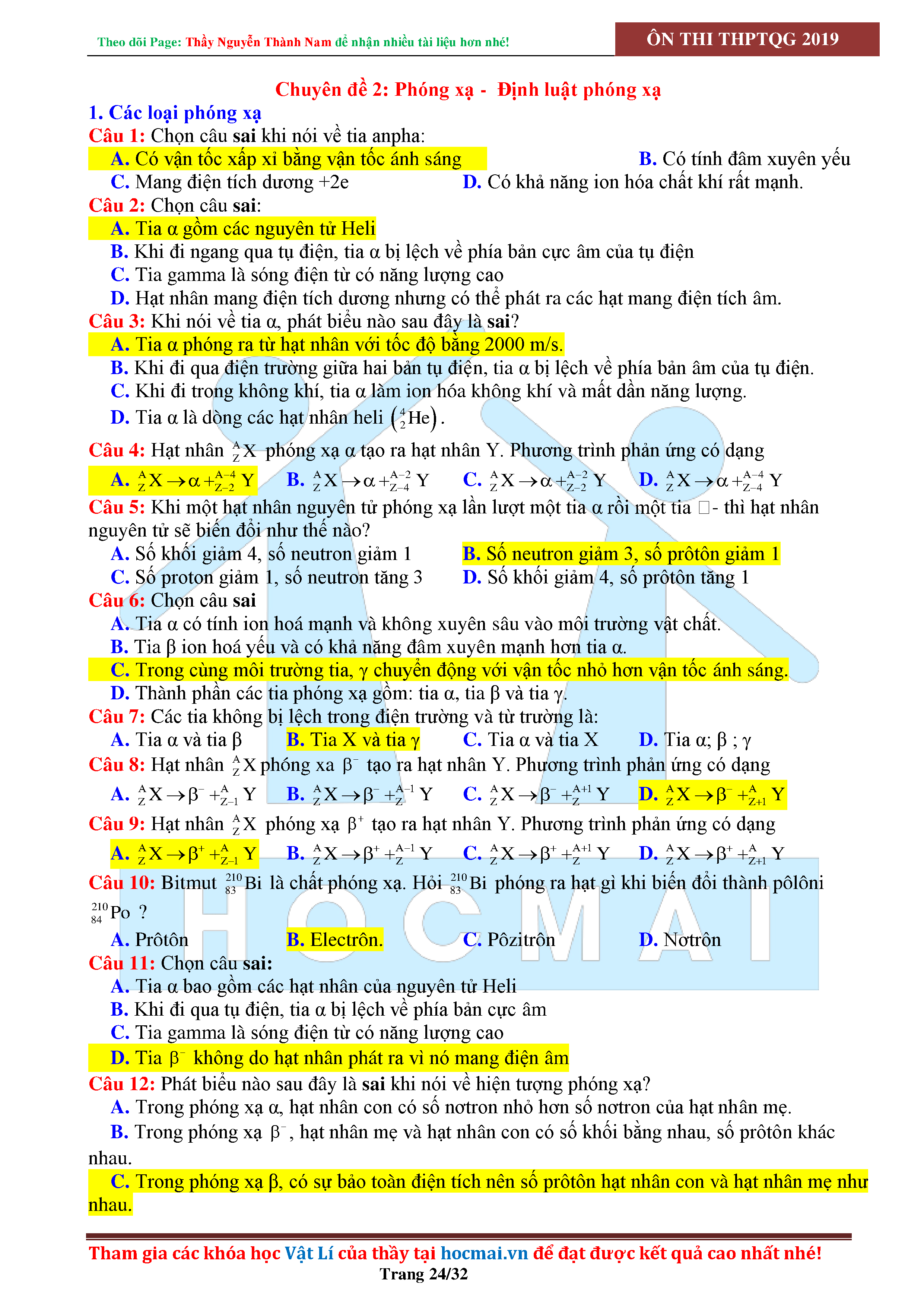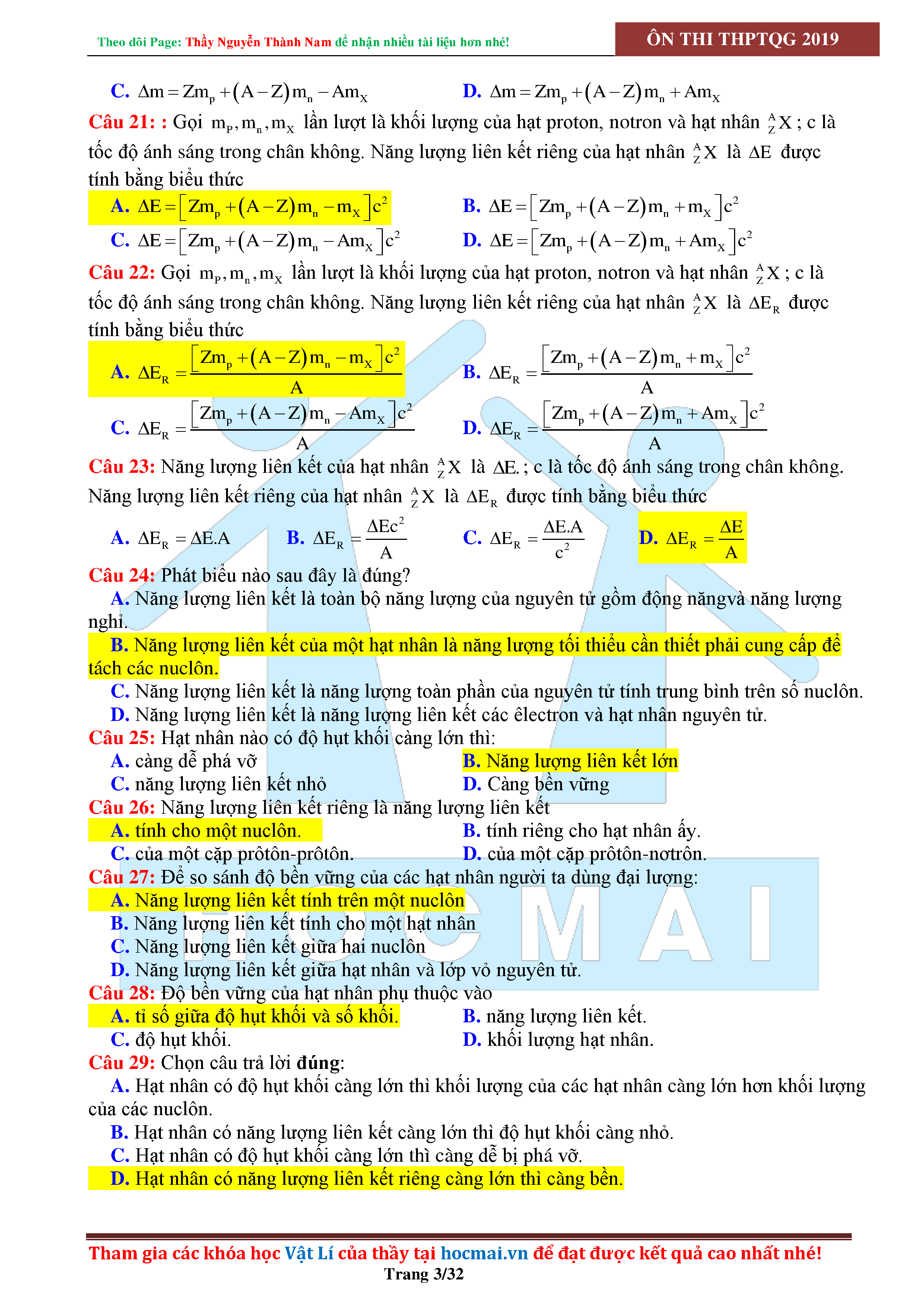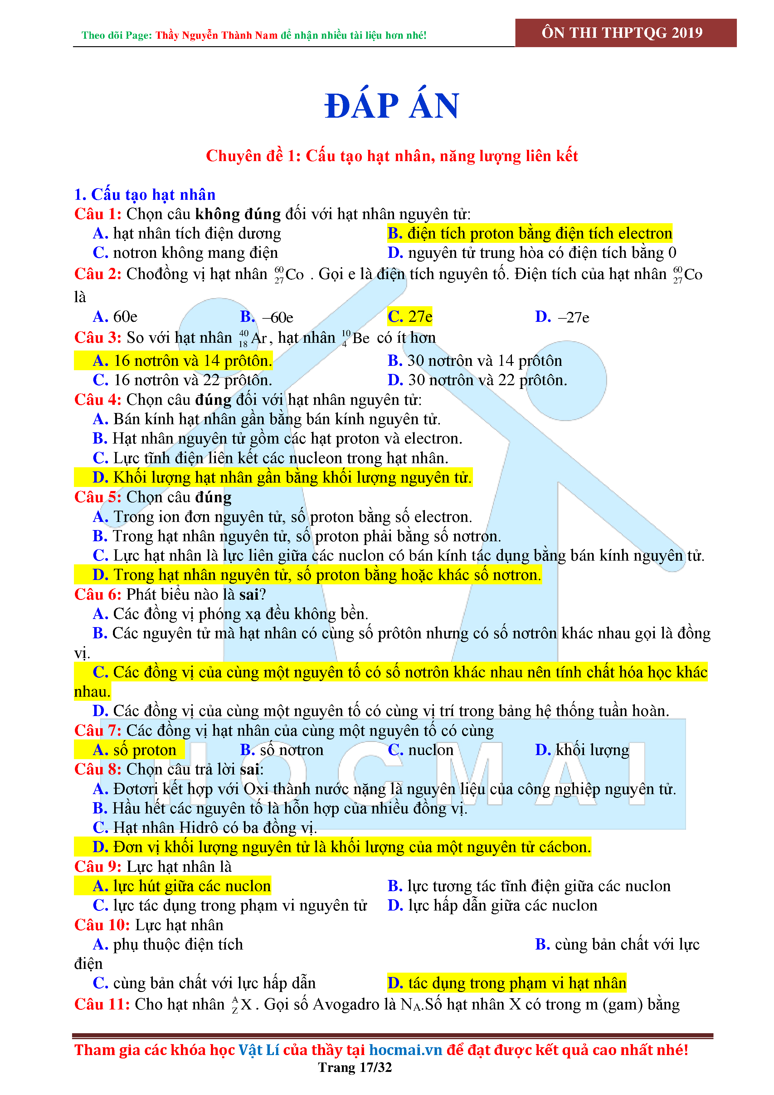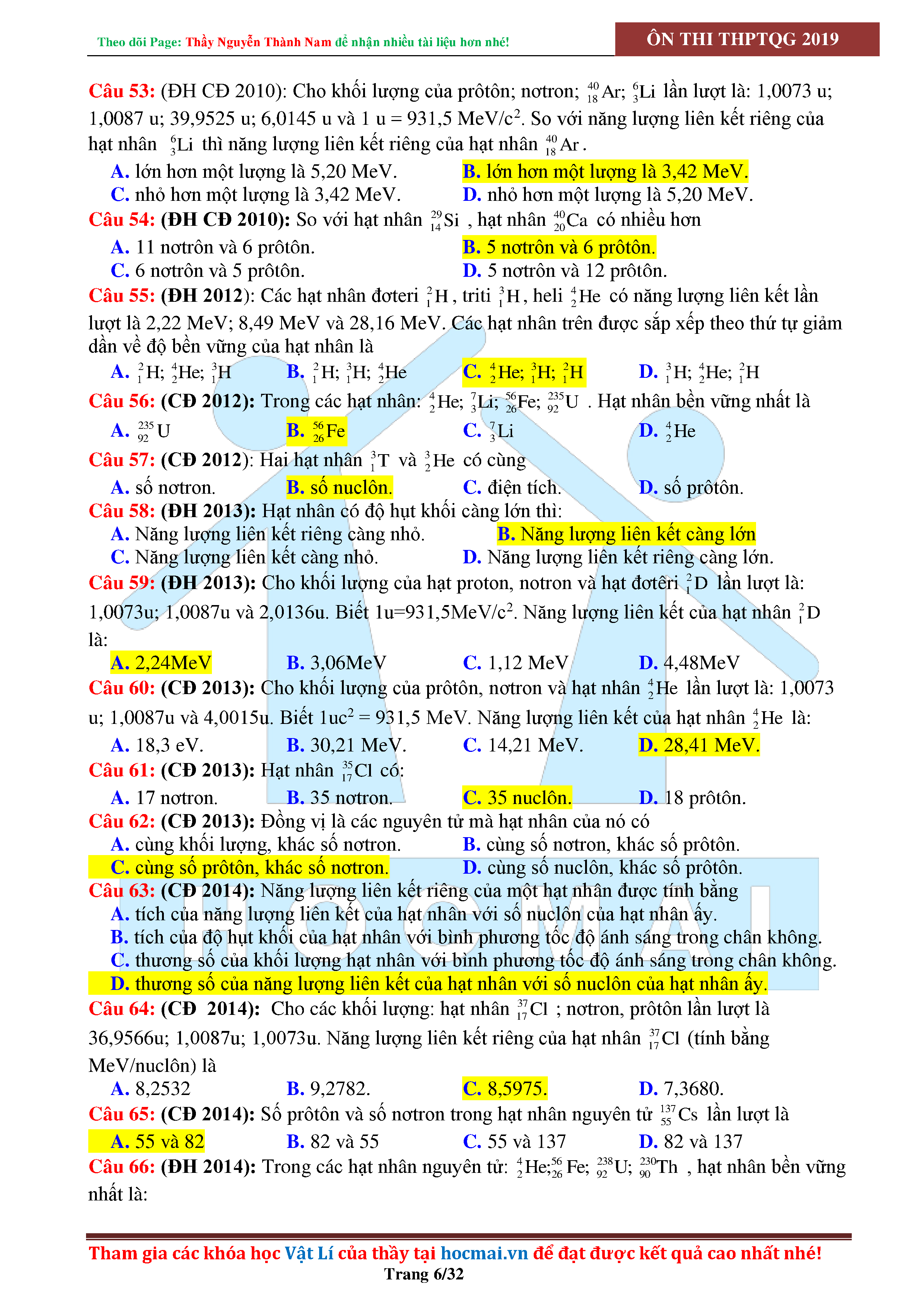 Tài liệu được Học Mãi tổng hợp được trải dài ở nhiều cấp độ từ cơ bản cho tới vận dụng cao và cần phải kết hợp nhiều kiến thức khác nhau, điều này giúp các em học sinh khi làm bài tập có thể ôn tập được toàn bộ kiến thức và công thức chương hạt nhân nguyên tử 12. Bên cạnh đó, bộ tài liệu Bài tập hạt nhân nguyên từ 12 còn có rất nhiều câu hỏi trong các đề thi Đại học, Cao đẳng, tốt nghiệp THPT các năm để các em học sinh có thể sớm cọ xát với cách ra đề, từ đó luyện tập được phản xạ, tư duy là bài và có phương án ôn thi một cách nhanh chóng và hiệu quả nhất.