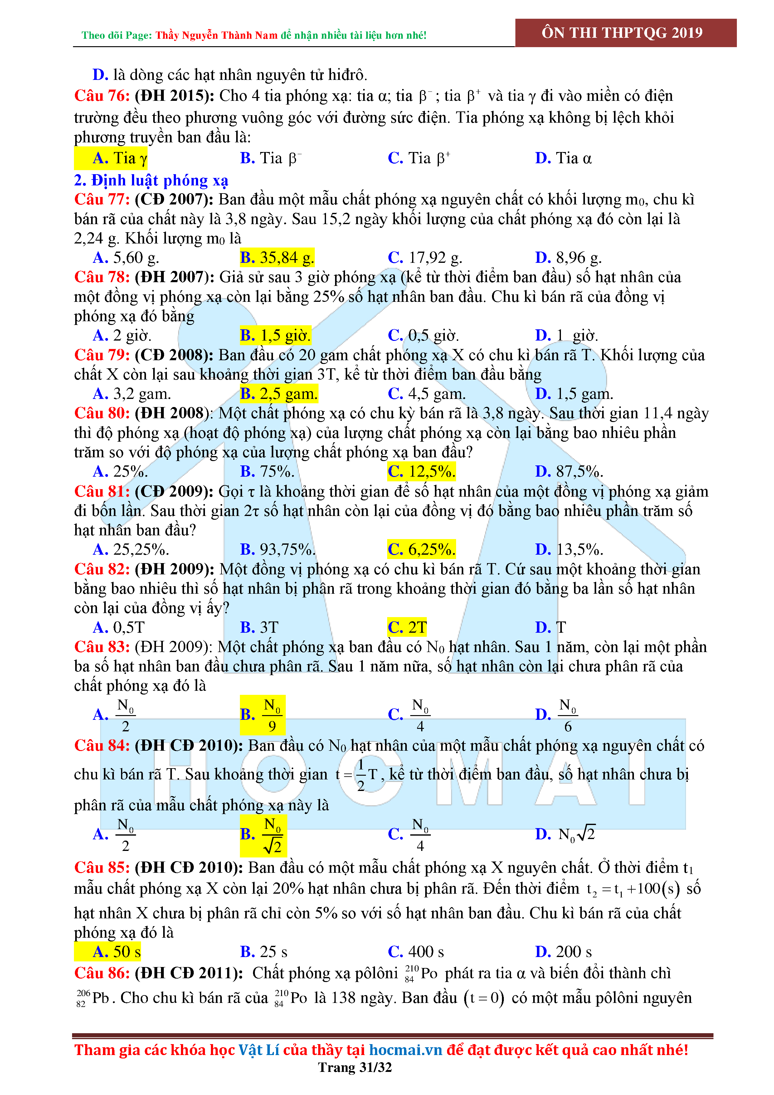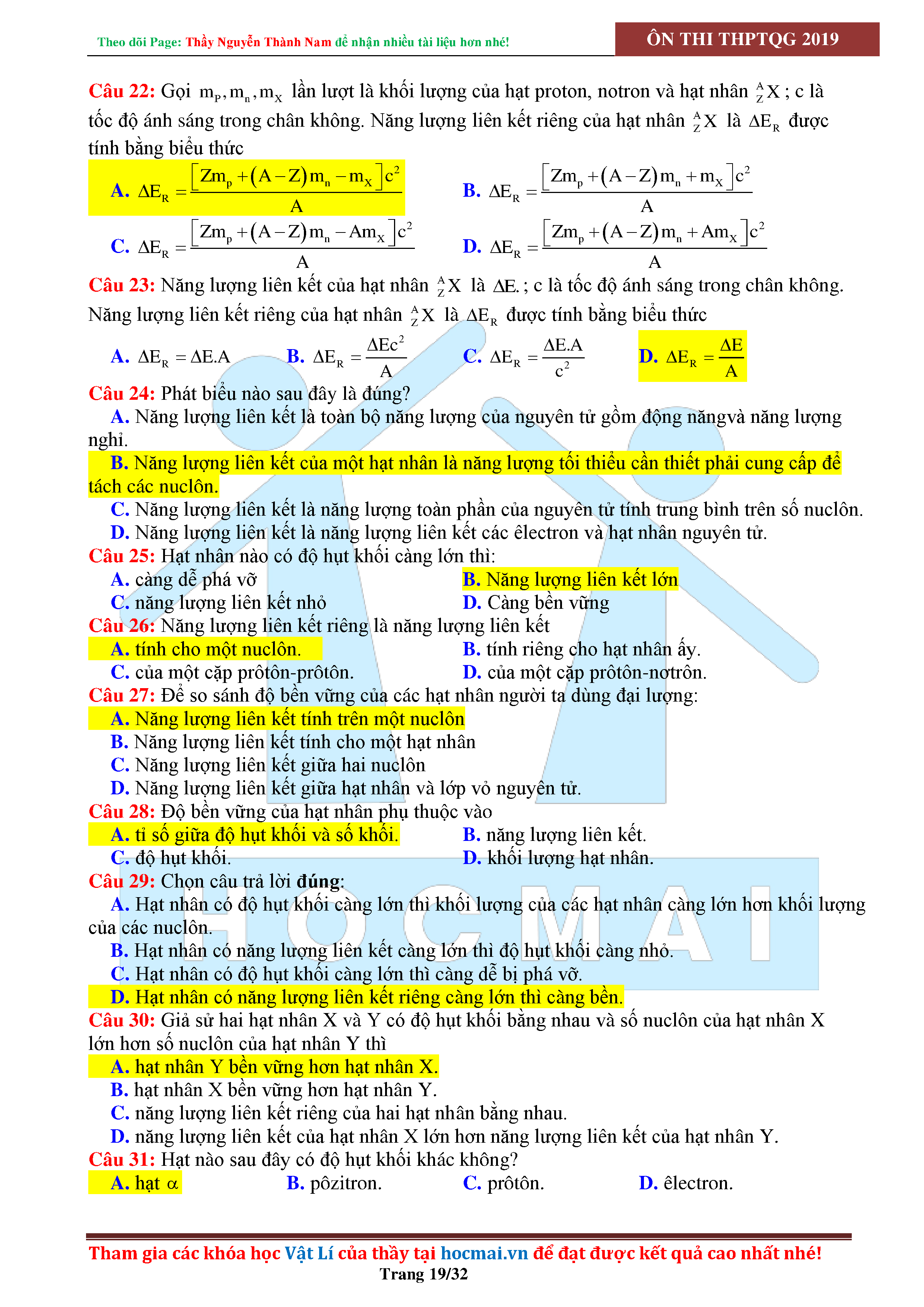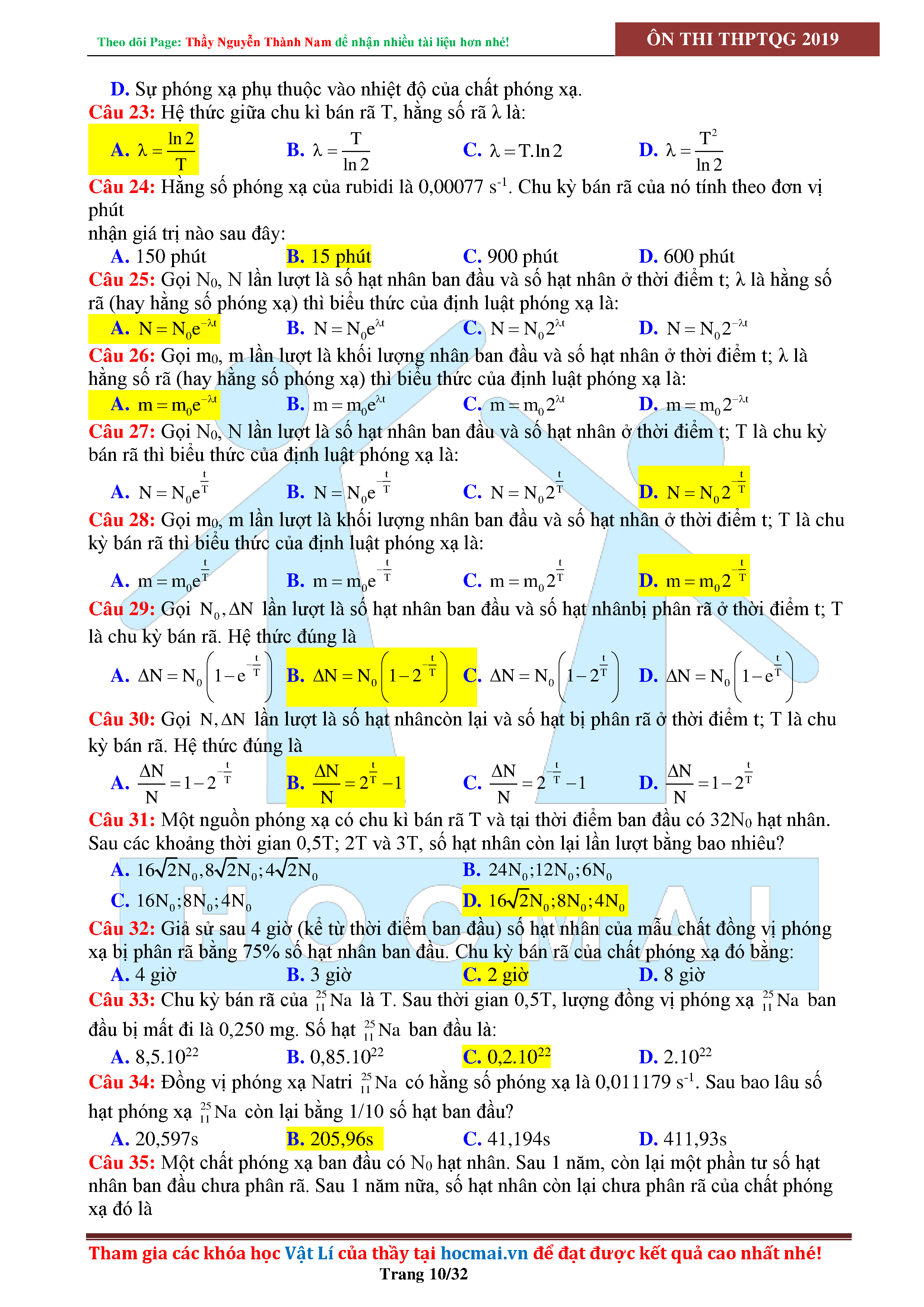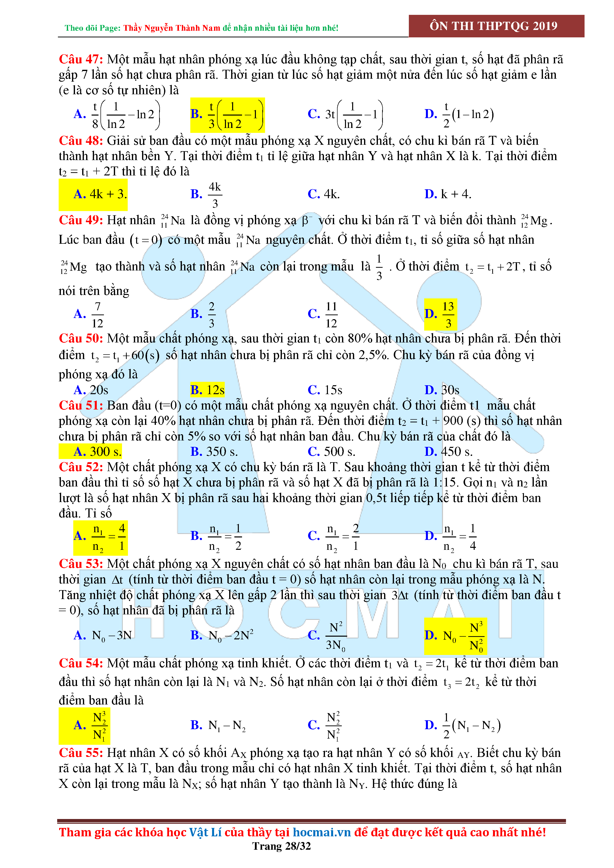 Tài liệu được Học Mãi tổng hợp được trải dài ở nhiều cấp độ từ cơ bản cho tới vận dụng cao và cần phải kết hợp nhiều kiến thức khác nhau, điều này giúp các em học sinh khi làm bài tập có thể ôn tập được toàn bộ kiến thức và công thức chương hạt nhân nguyên tử 12. Bên cạnh đó, bộ tài liệu Bài tập hạt nhân nguyên từ 12 còn có rất nhiều câu hỏi trong các đề thi Đại học, Cao đẳng, tốt nghiệp THPT các năm để các em học sinh có thể sớm cọ xát với cách ra đề, từ đó luyện tập được phản xạ, tư duy là bài và có phương án ôn thi một cách nhanh chóng và hiệu quả nhất.