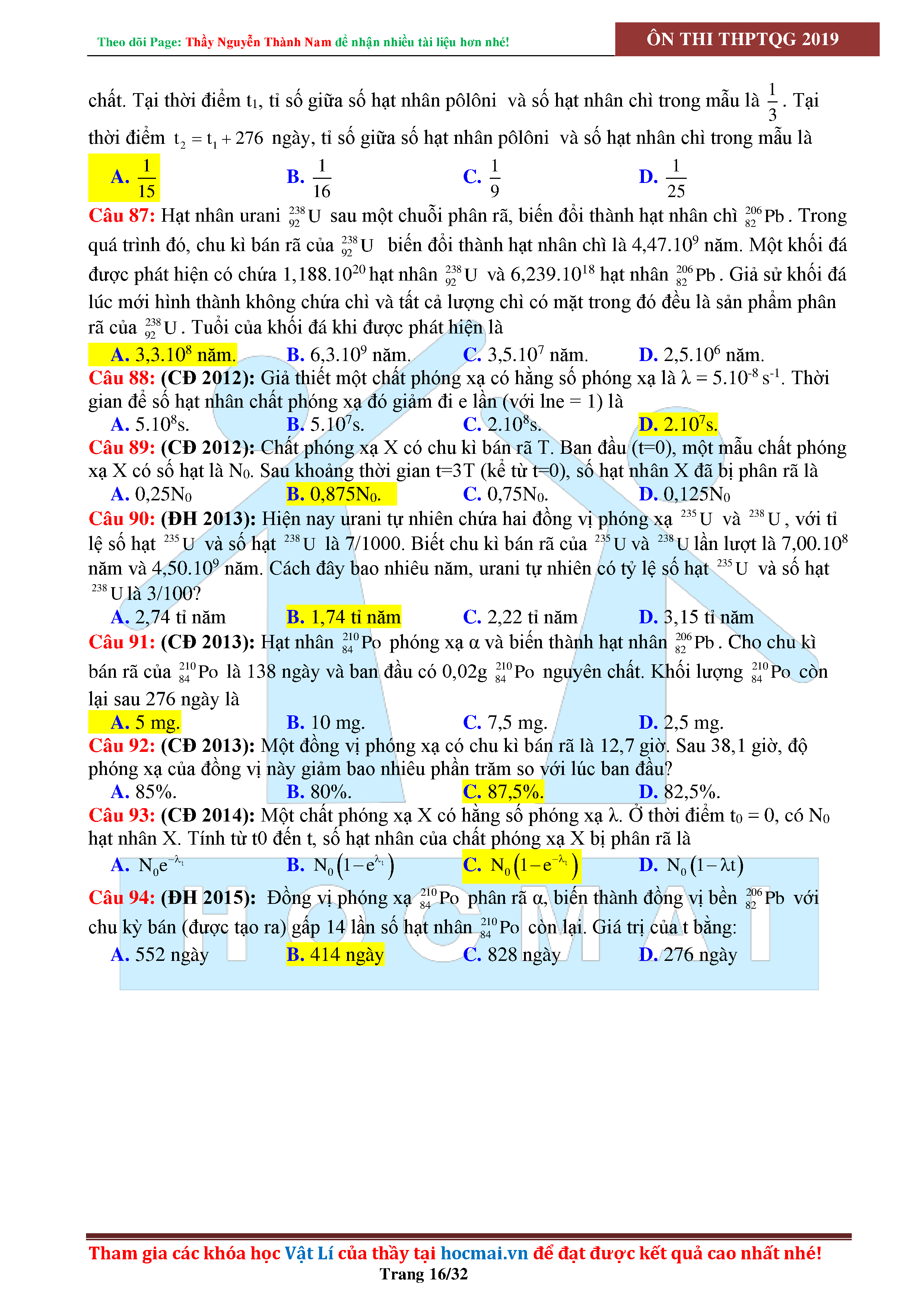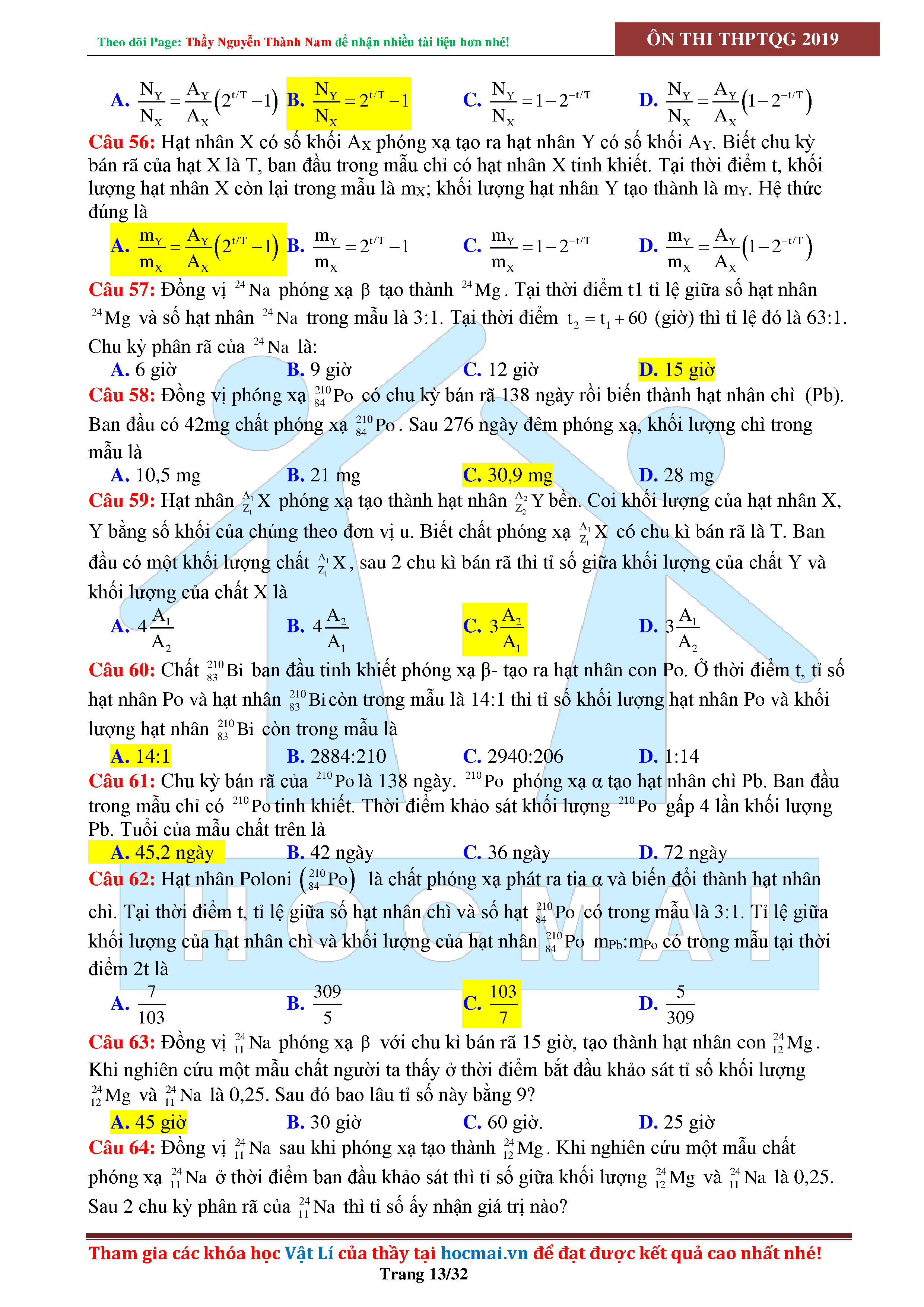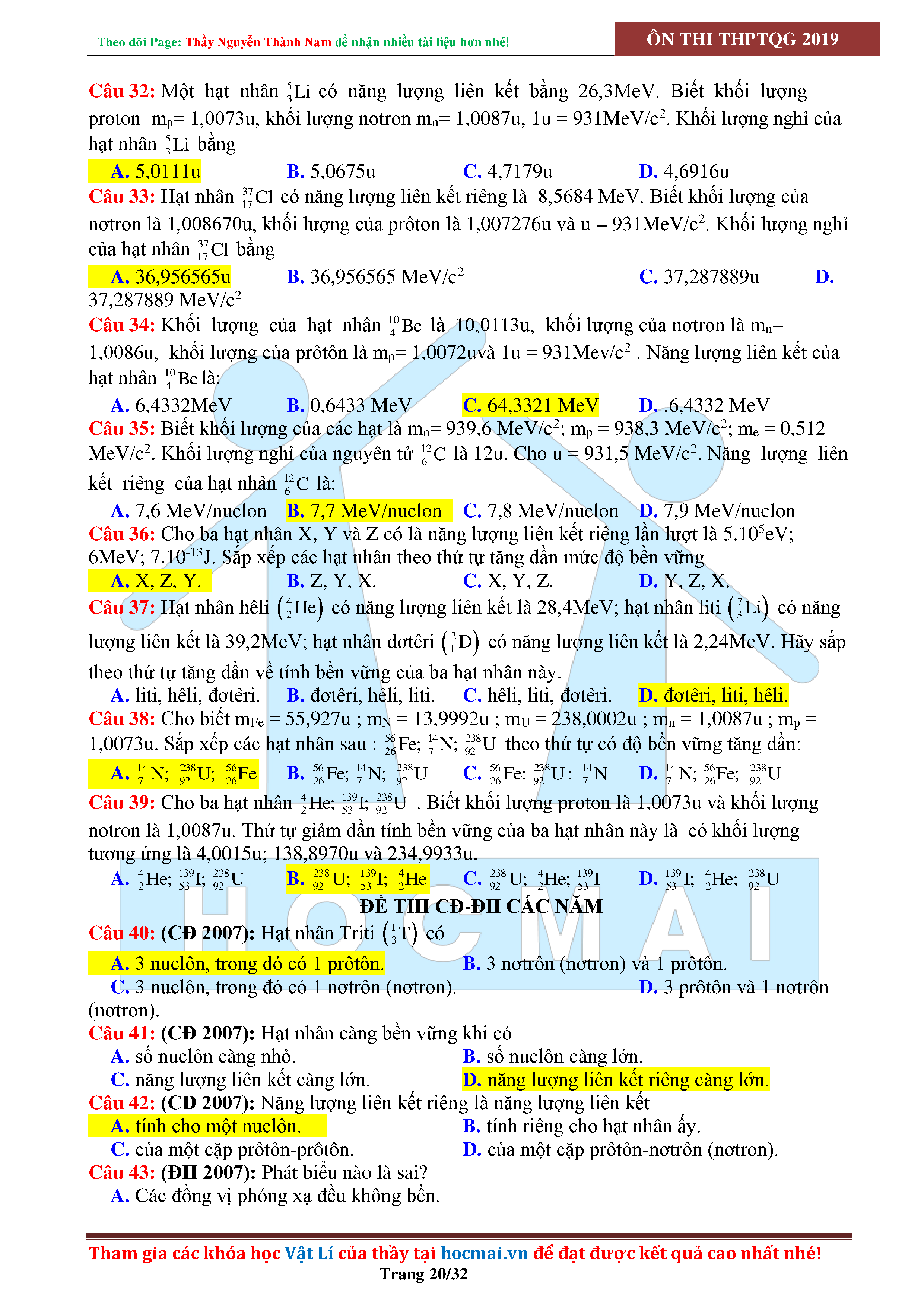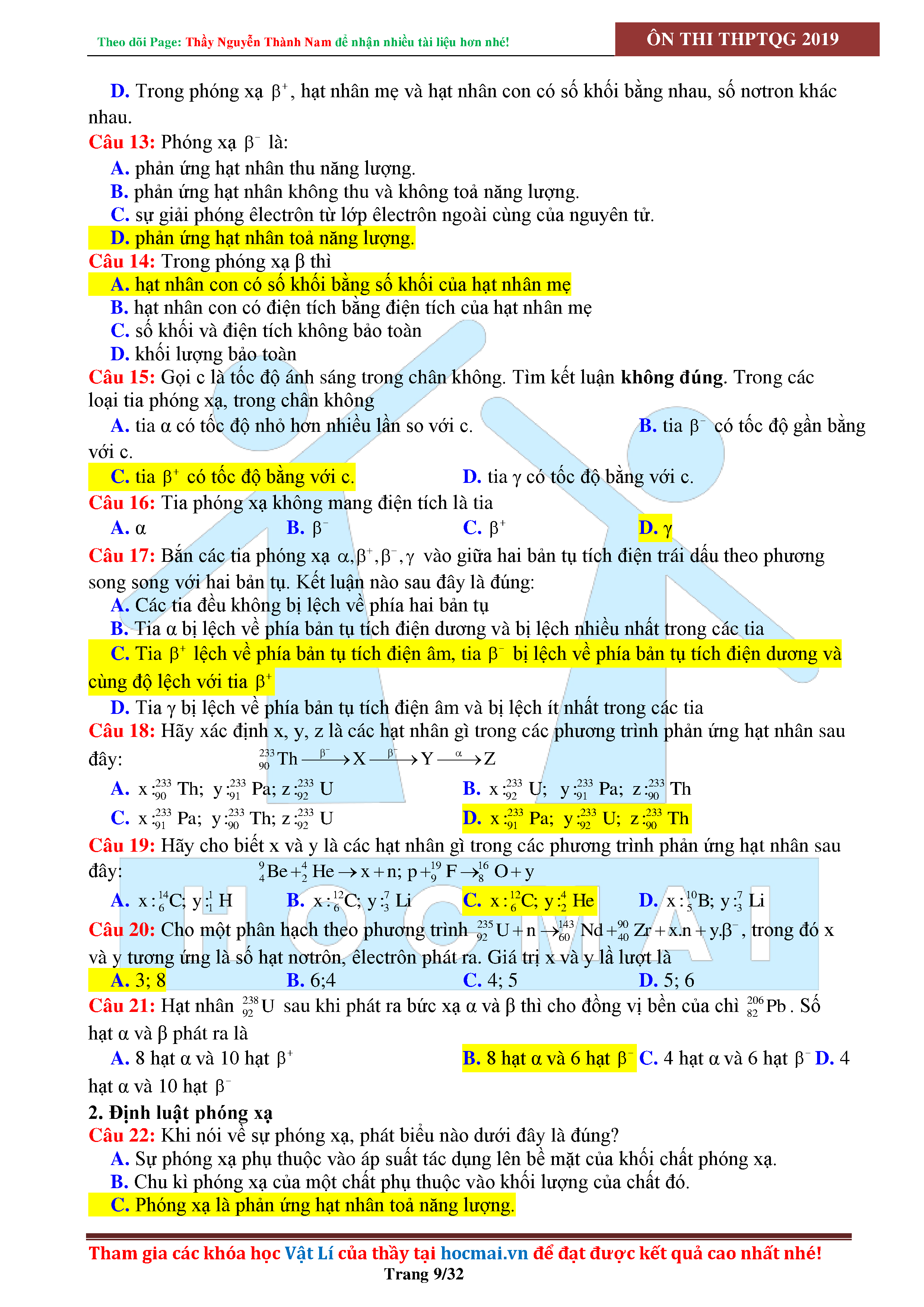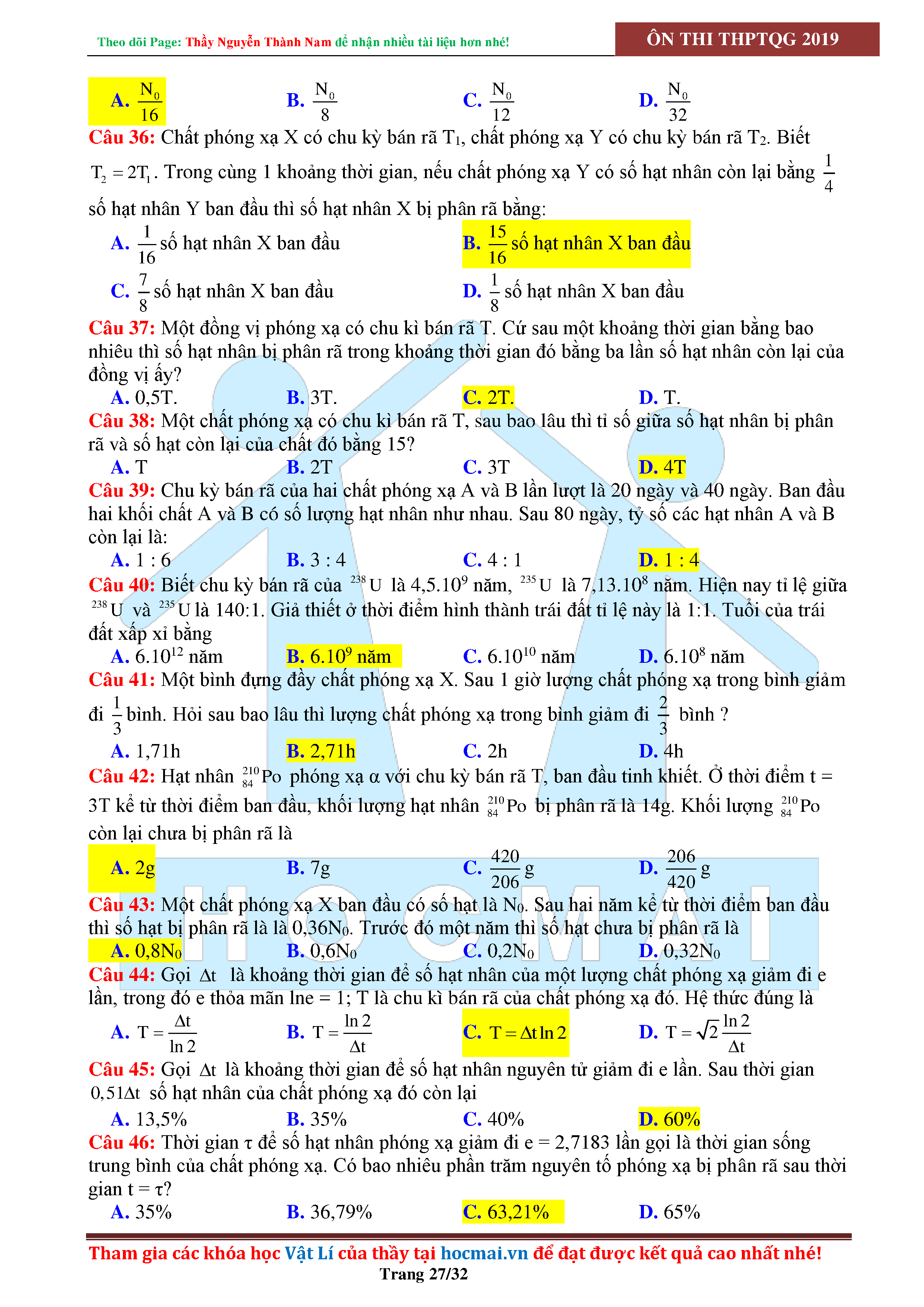 Tài liệu được Học Mãi tổng hợp được trải dài ở nhiều cấp độ từ cơ bản cho tới vận dụng cao và cần phải kết hợp nhiều kiến thức khác nhau, điều này giúp các em học sinh khi làm bài tập có thể ôn tập được toàn bộ kiến thức và công thức chương hạt nhân nguyên tử 12. Bên cạnh đó, bộ tài liệu Bài tập hạt nhân nguyên từ 12 còn có rất nhiều câu hỏi trong các đề thi Đại học, Cao đẳng, tốt nghiệp THPT các năm để các em học sinh có thể sớm cọ xát với cách ra đề, từ đó luyện tập được phản xạ, tư duy là bài và có phương án ôn thi một cách nhanh chóng và hiệu quả nhất.