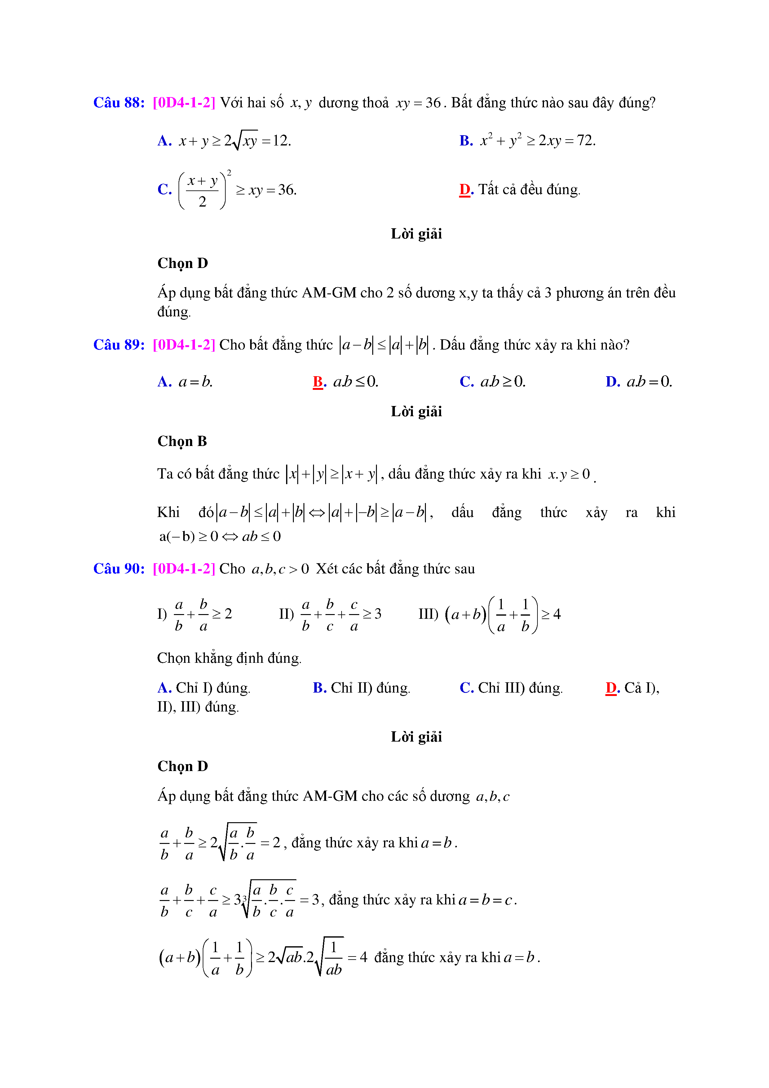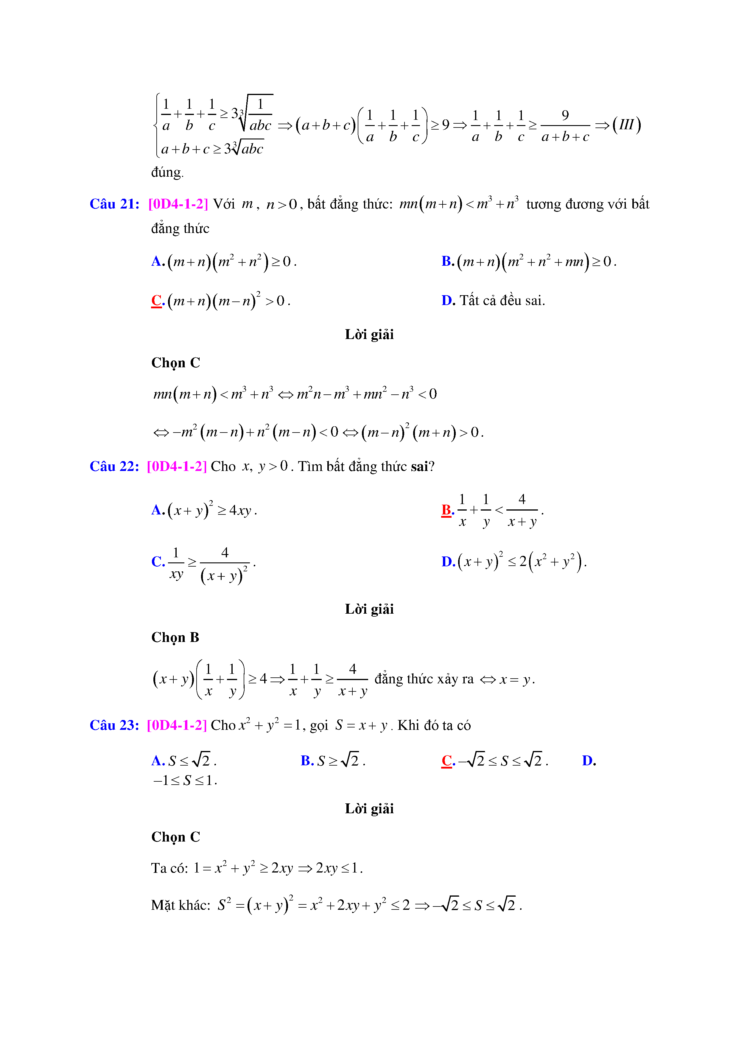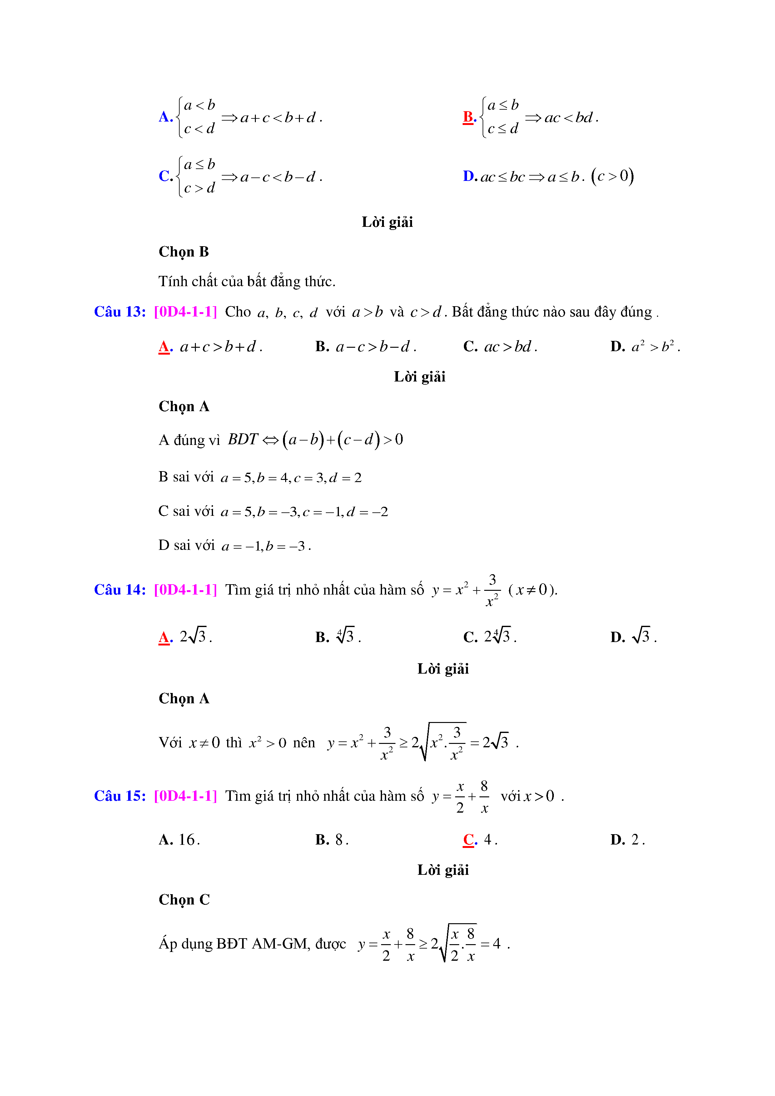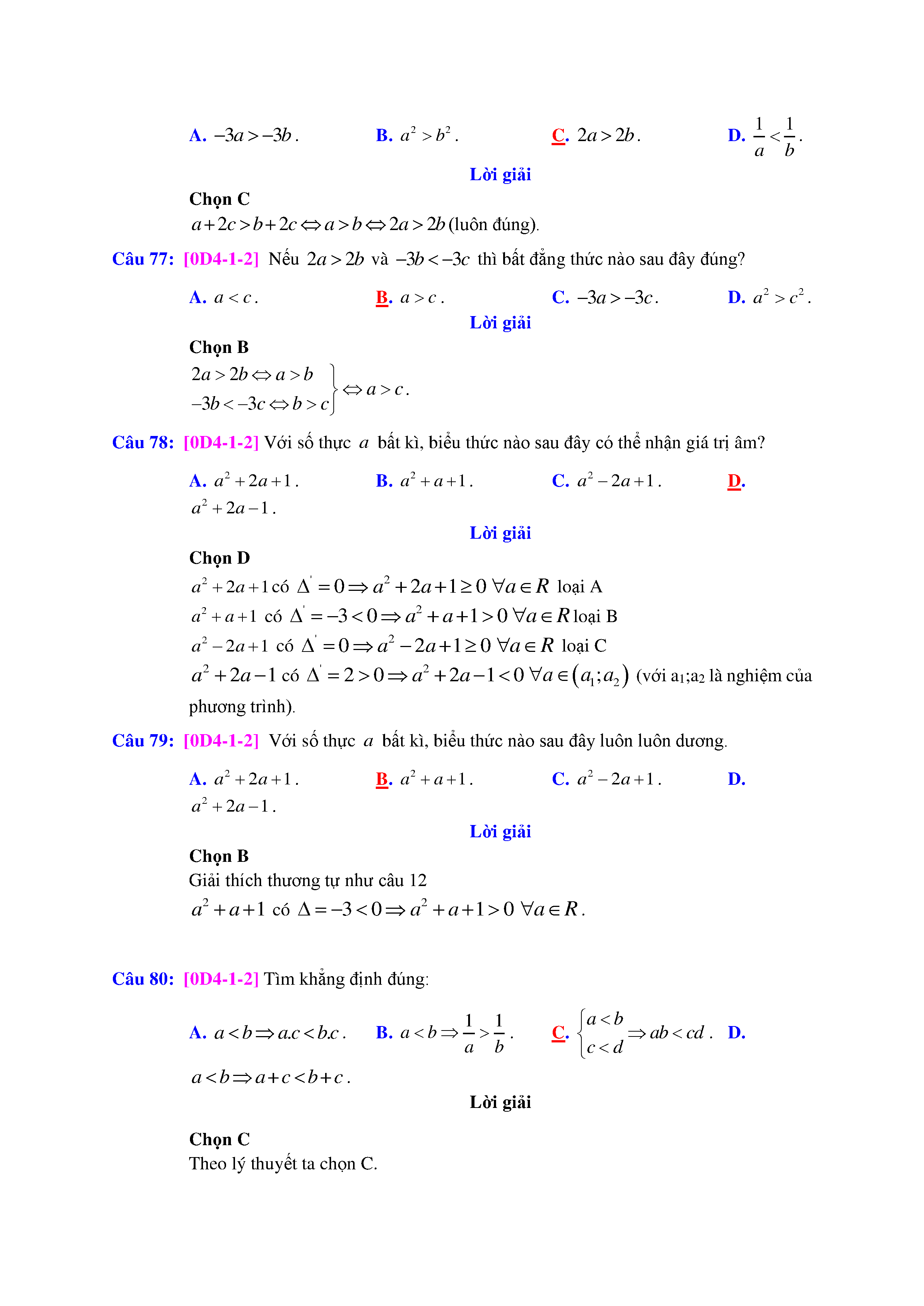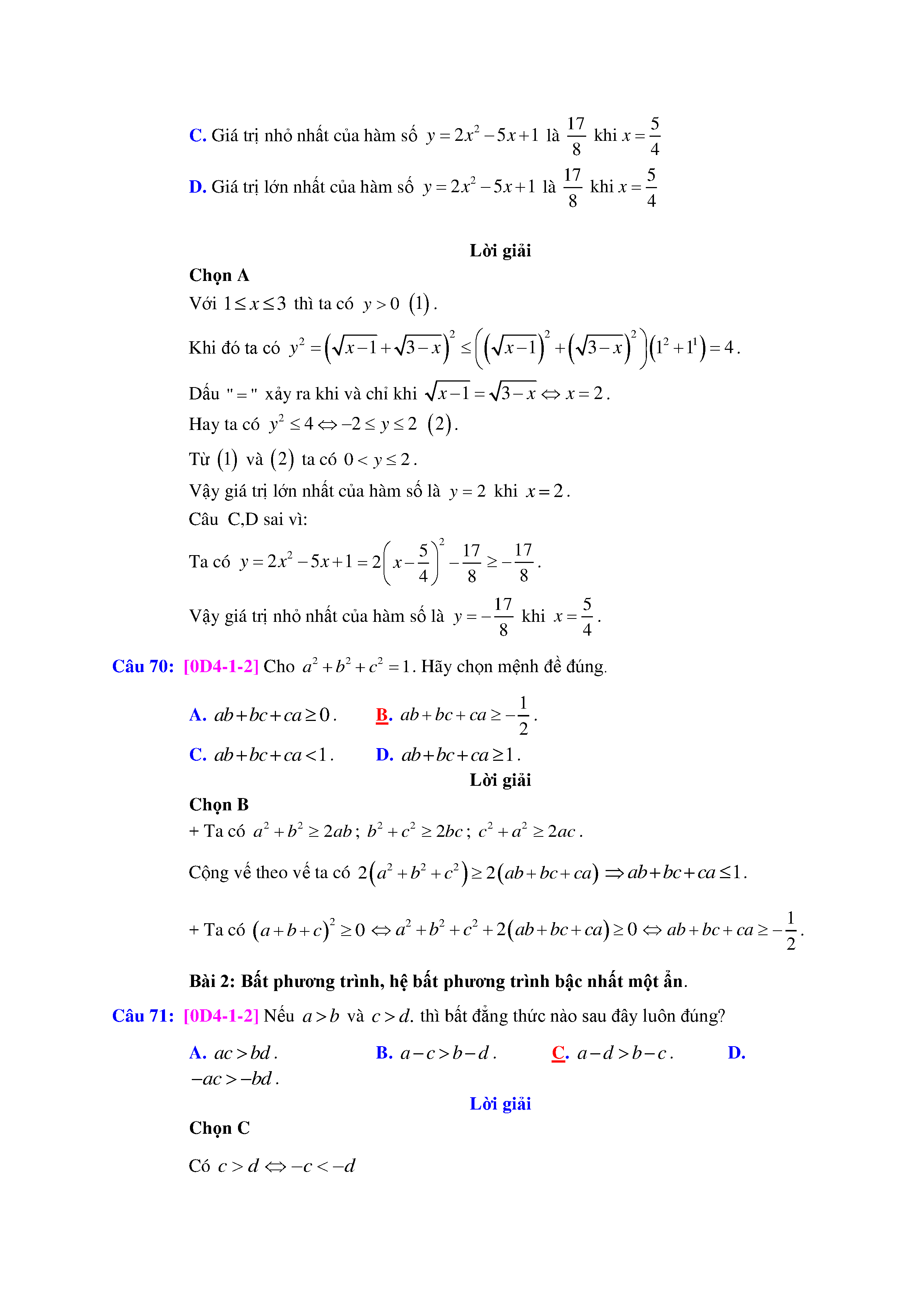 Bài tập BĐT - BPT ôn tập Học kì 2