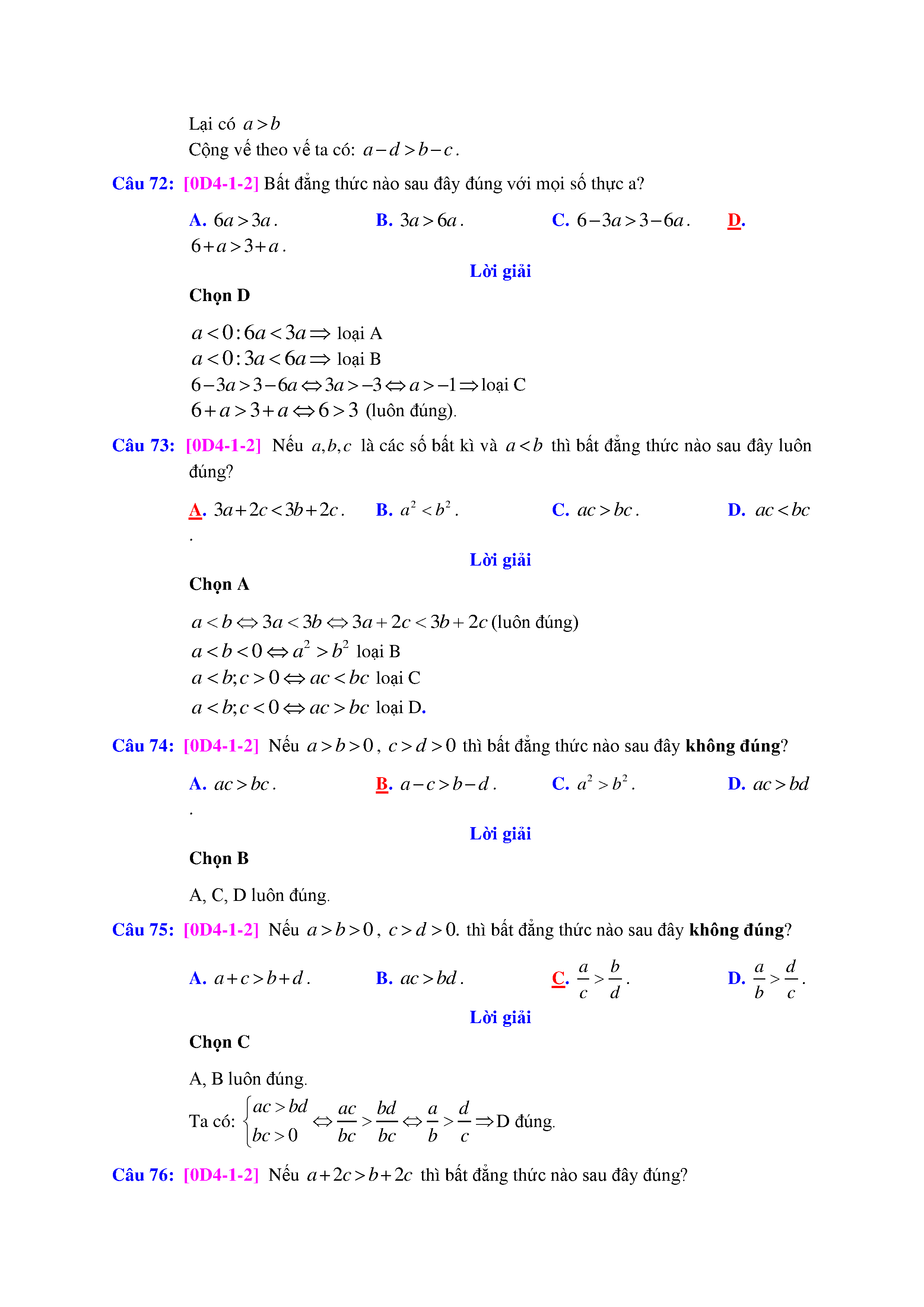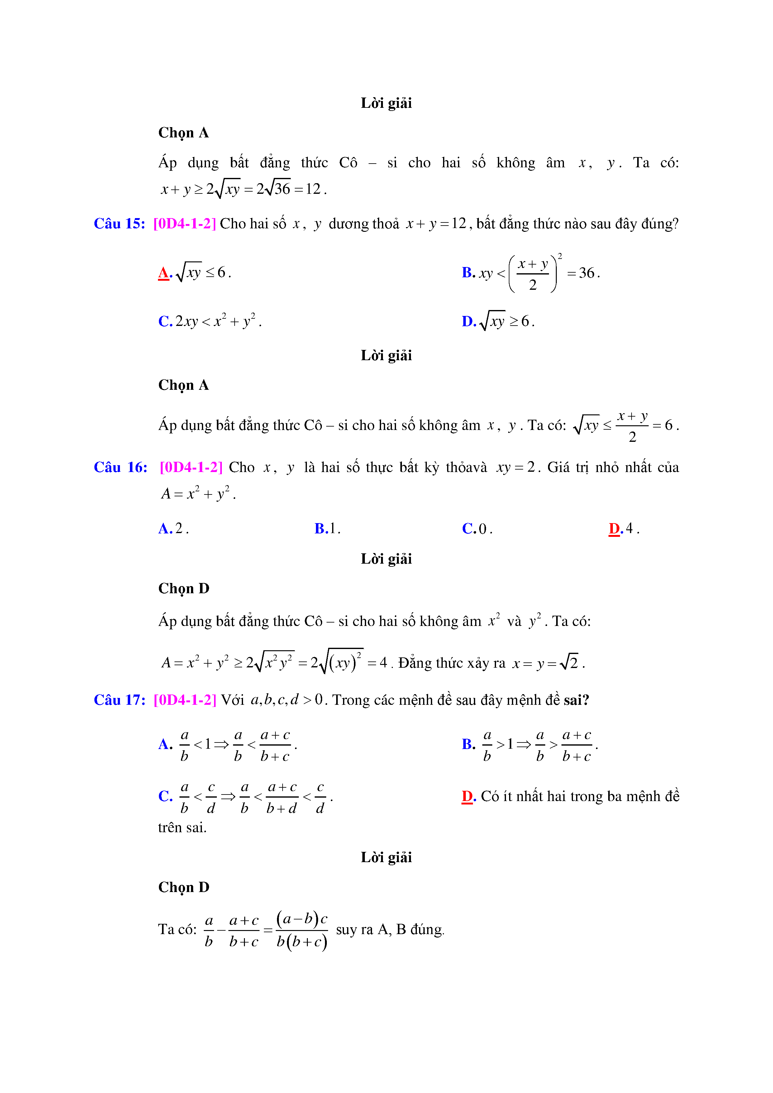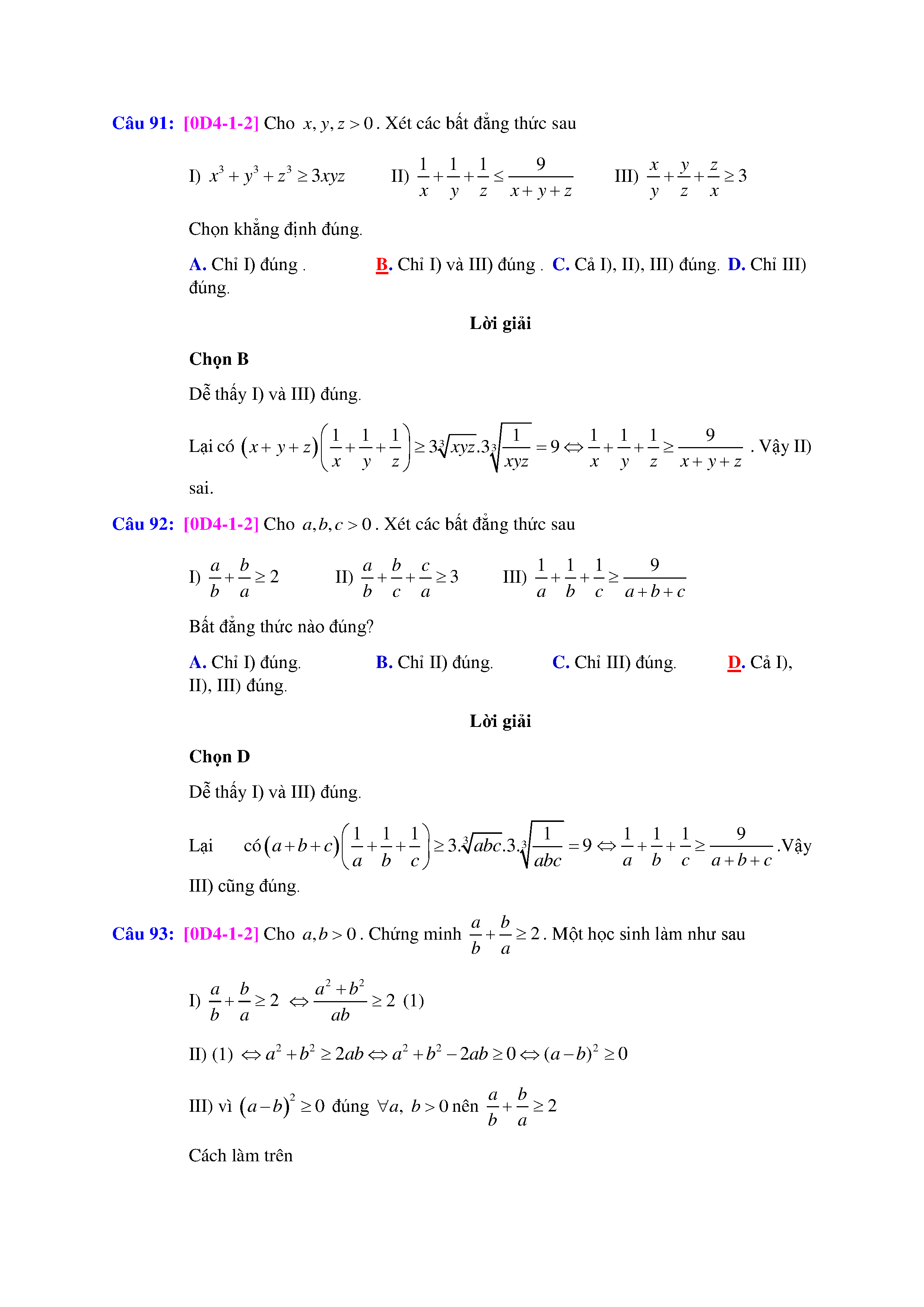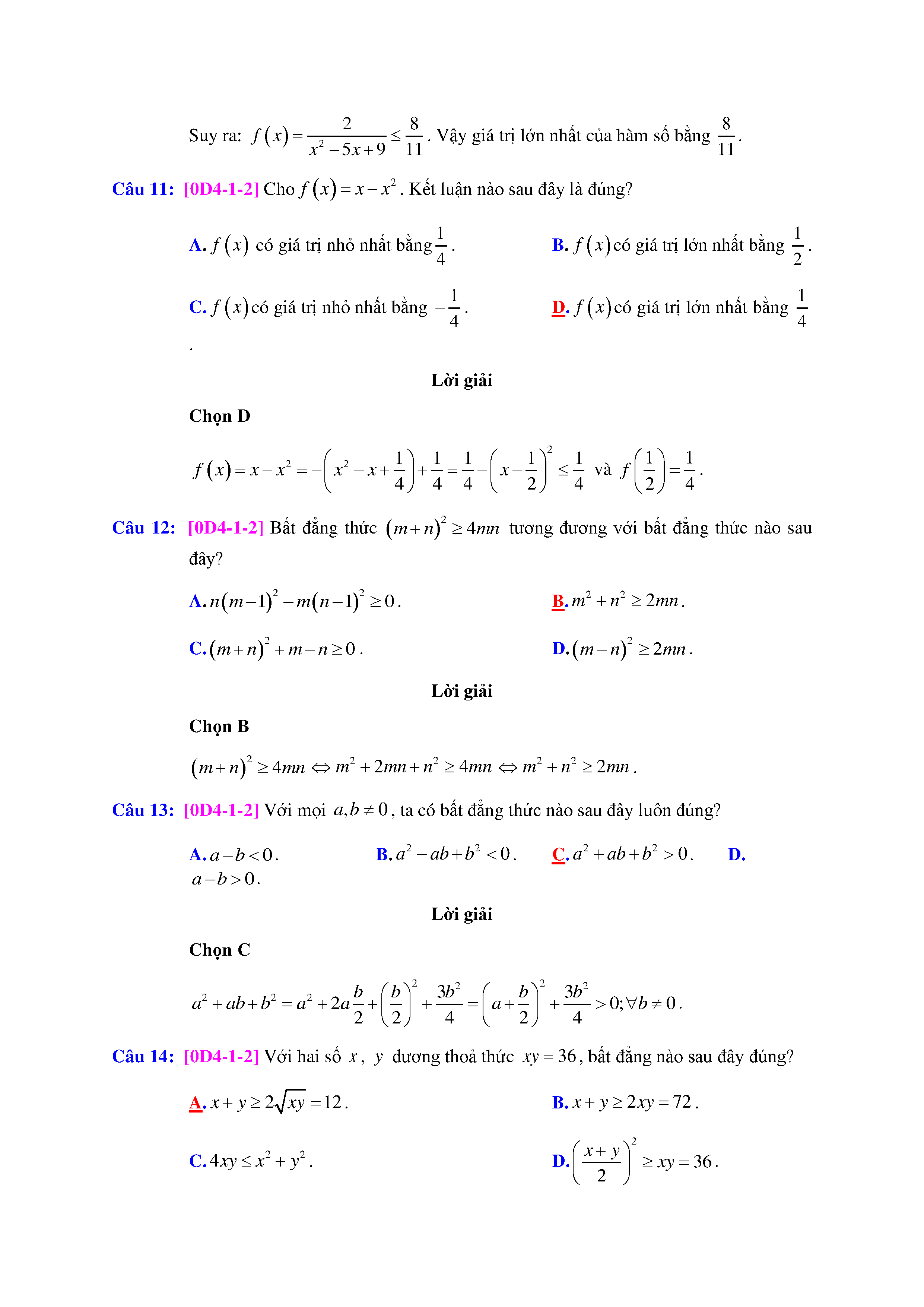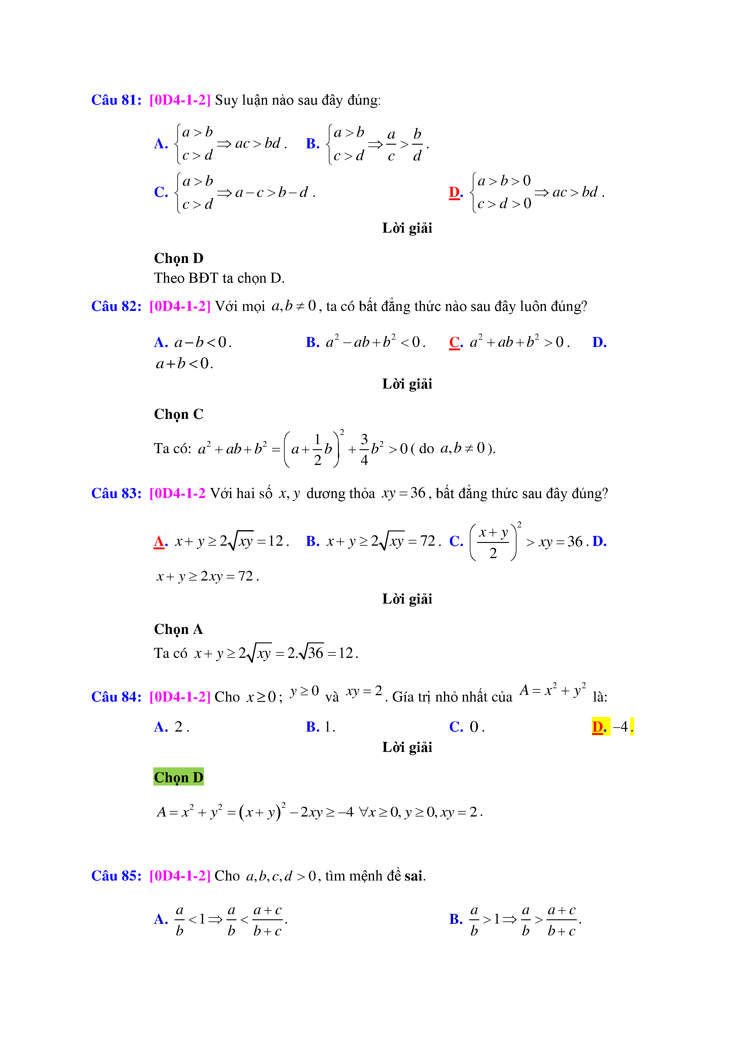 Bài tập BĐT - BPT ôn tập Học kì 2