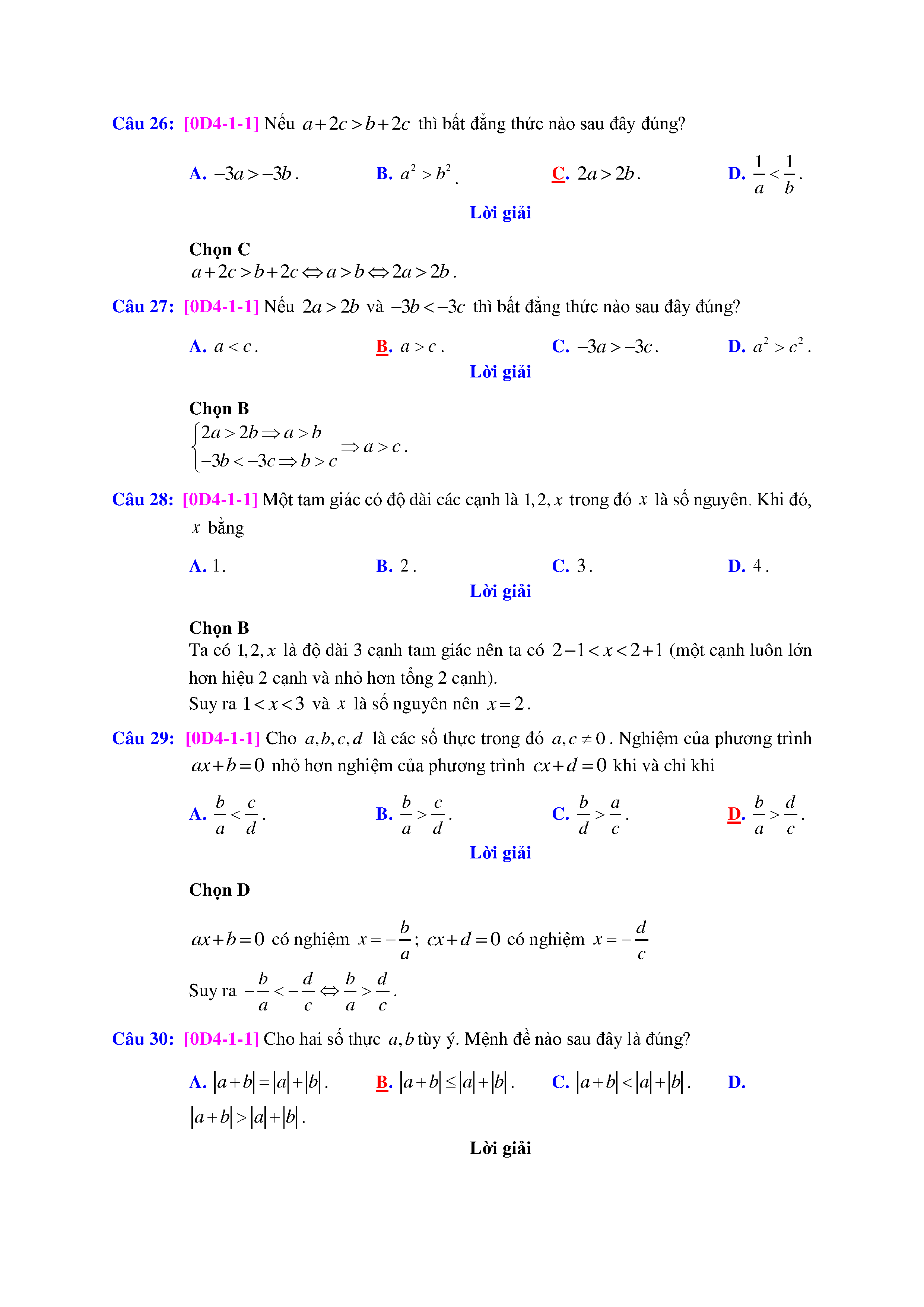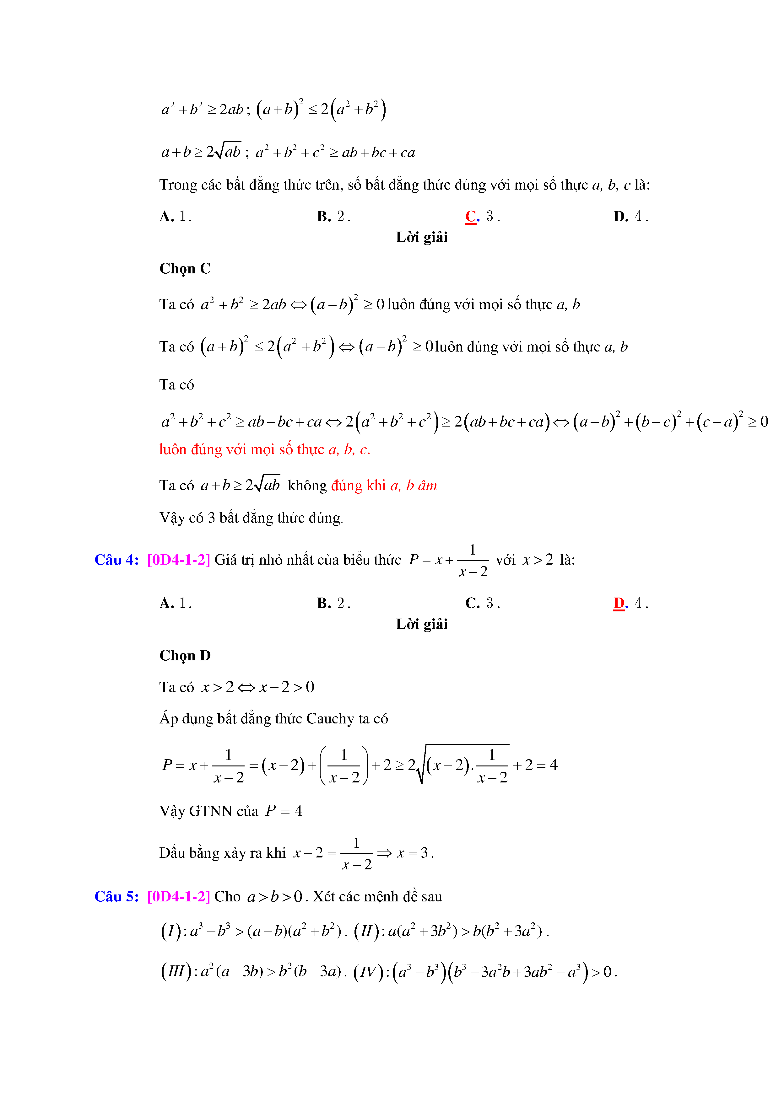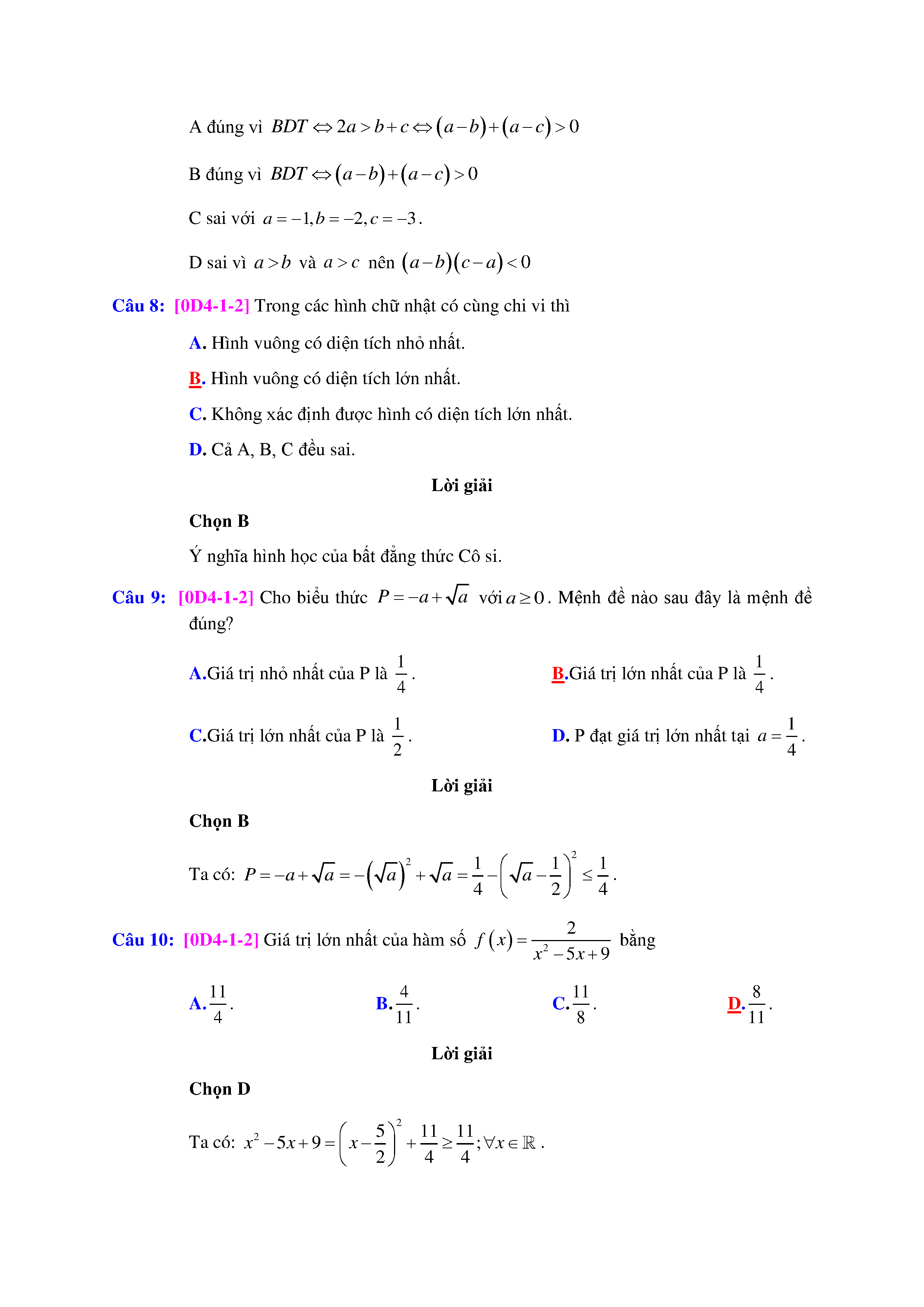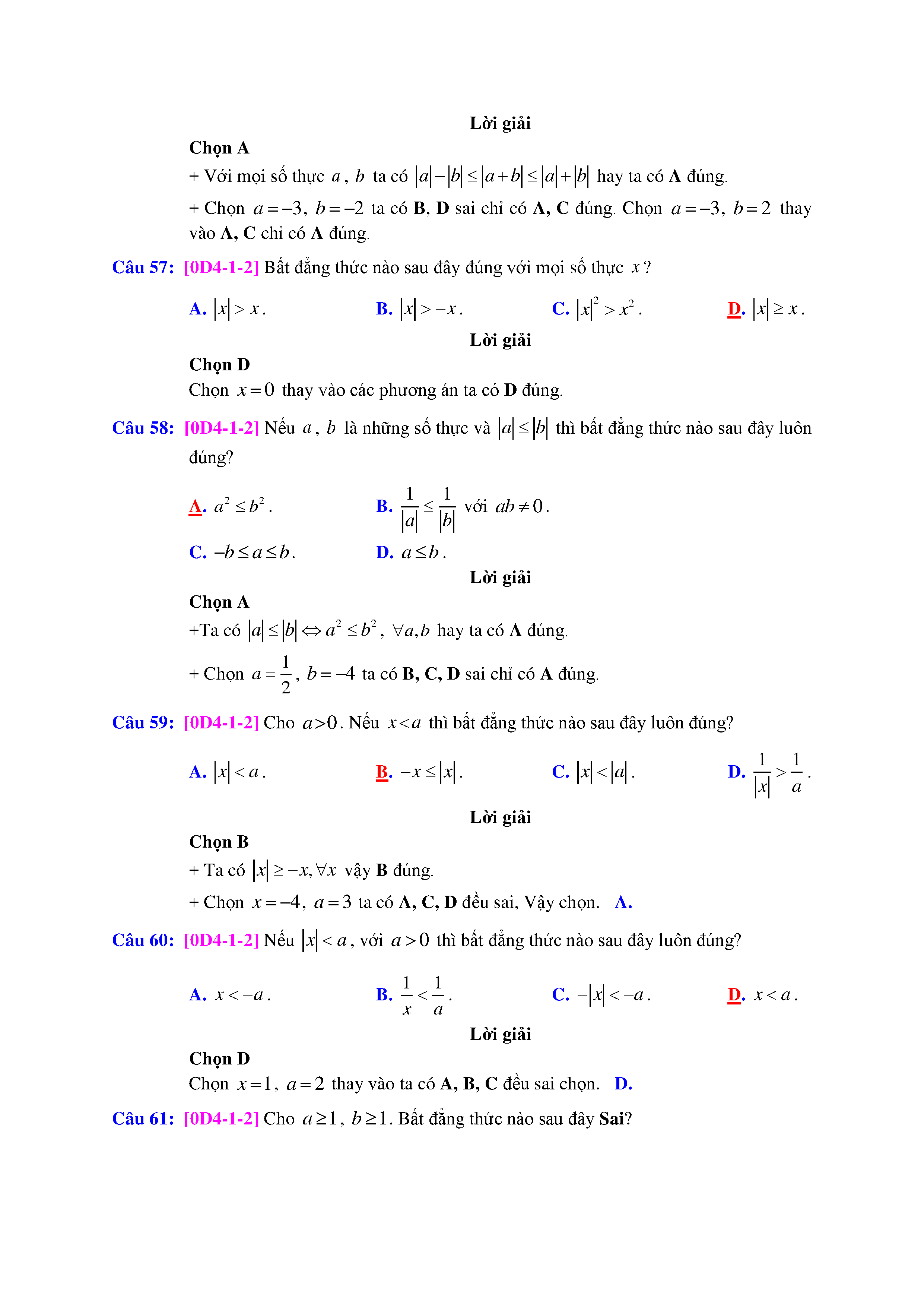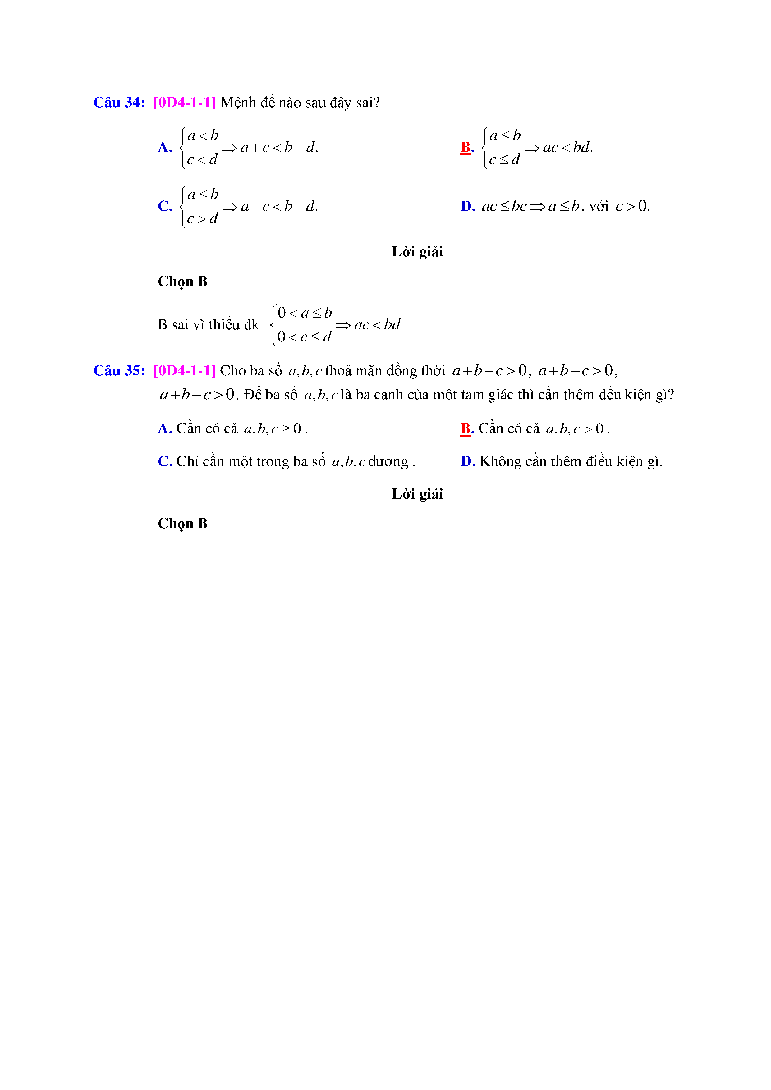 Bài tập BĐT - BPT ôn tập Học kì 2