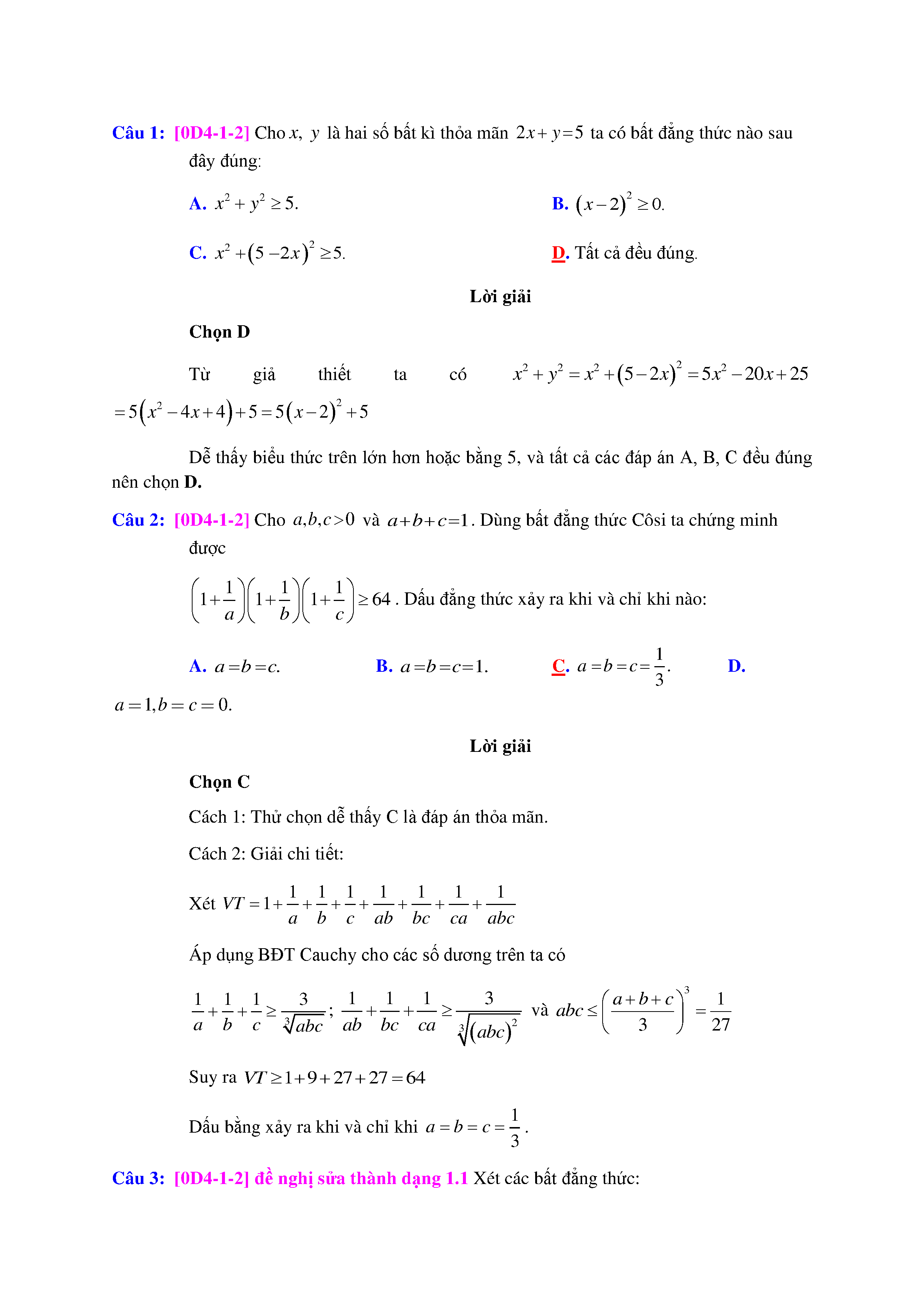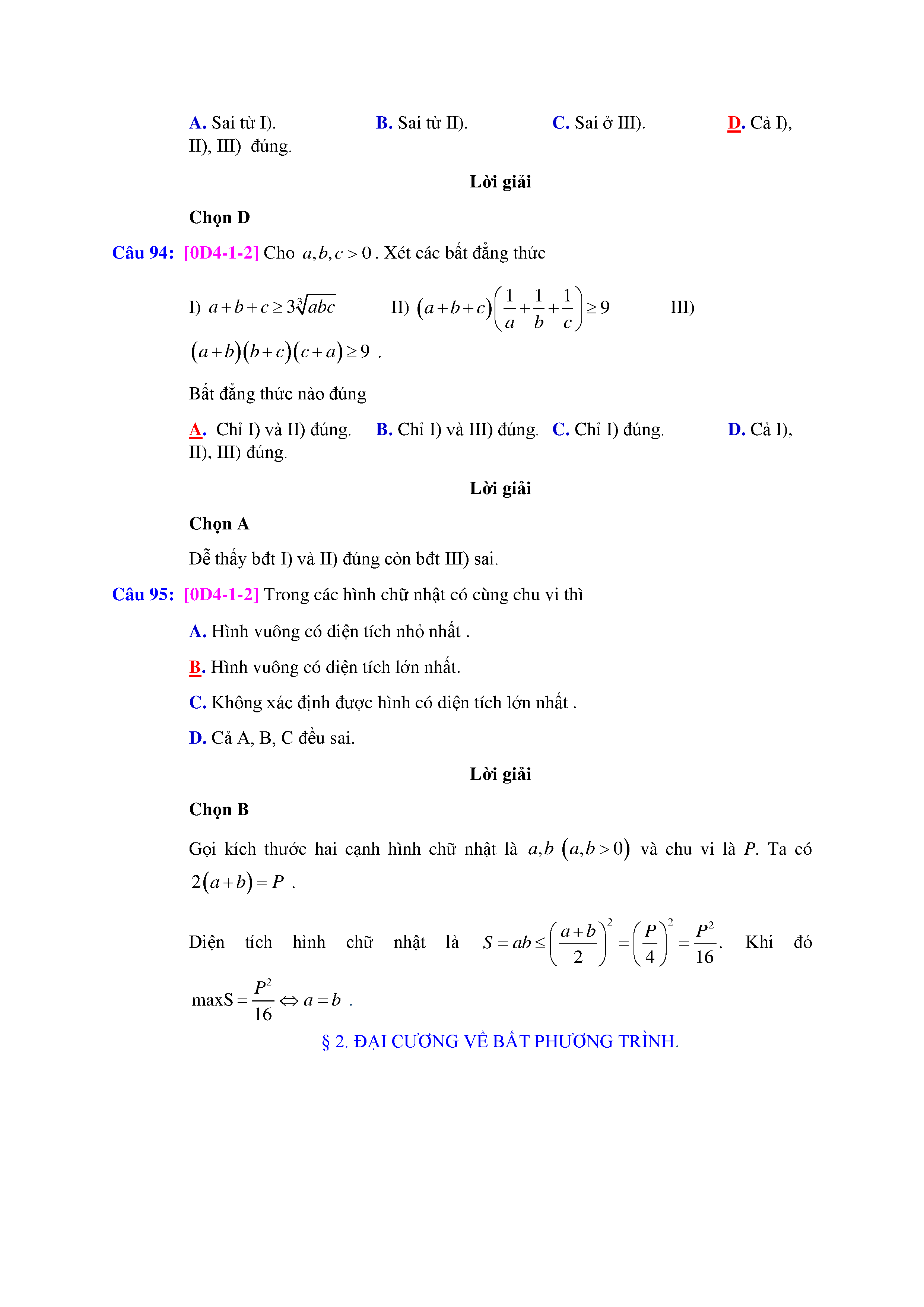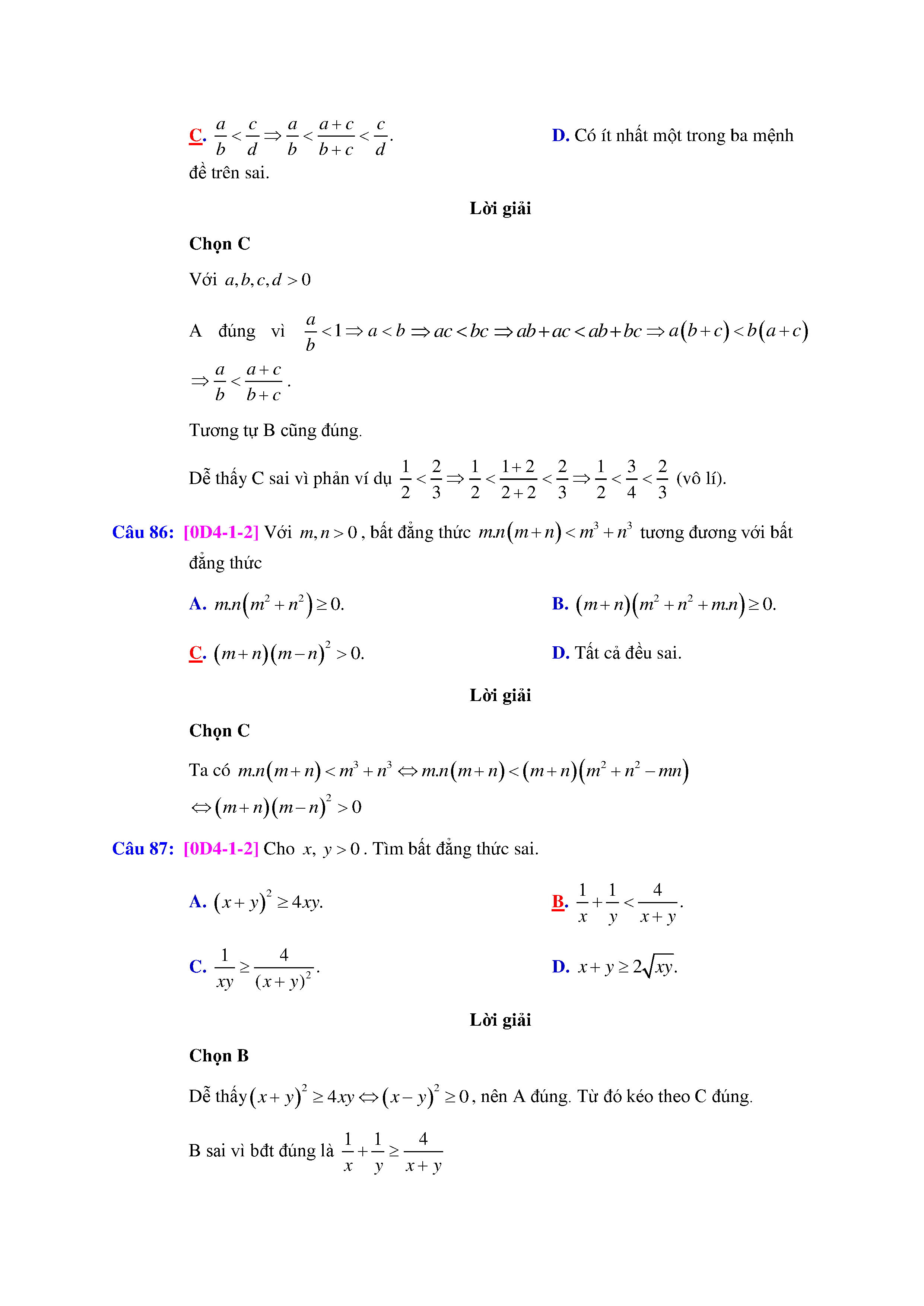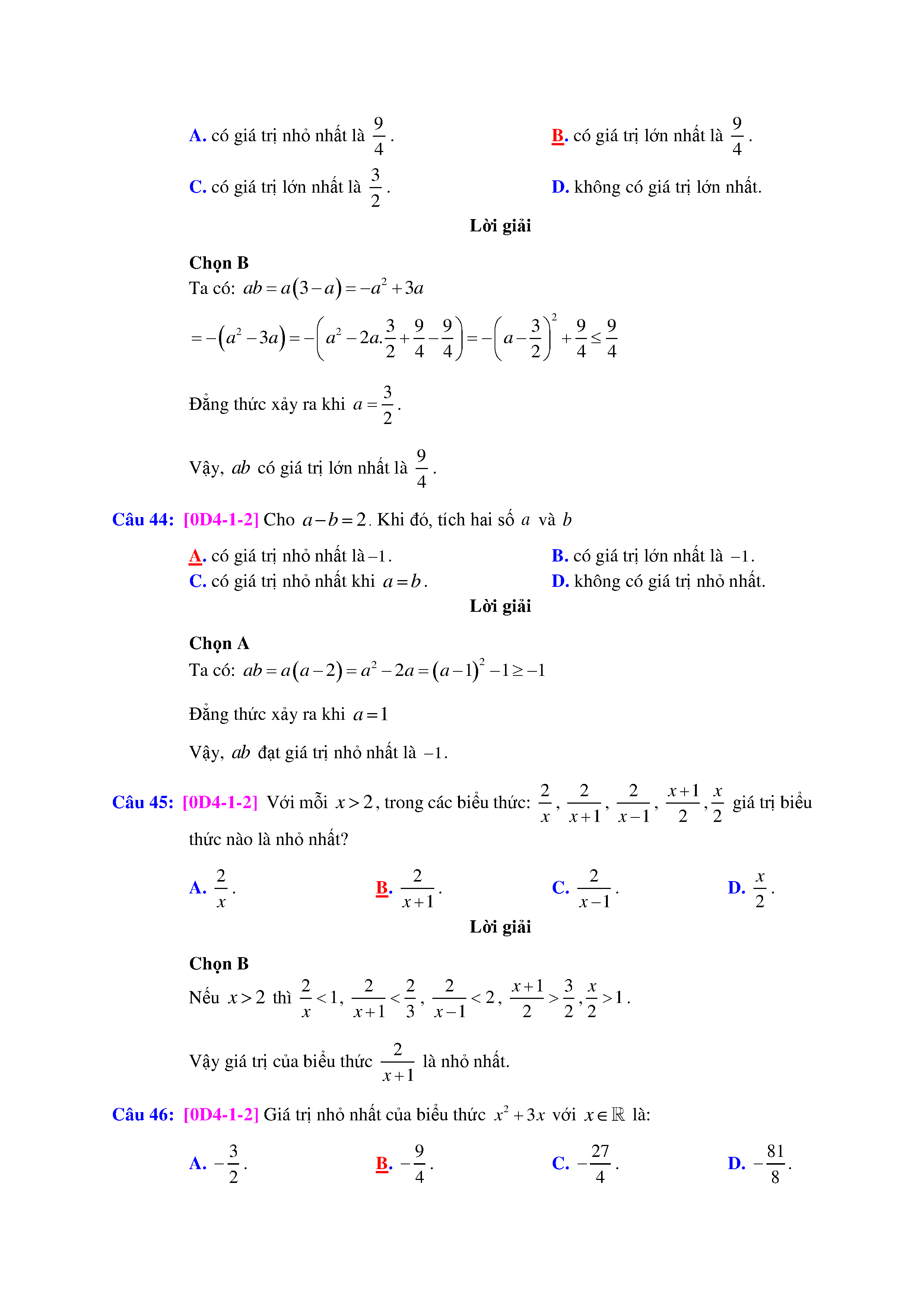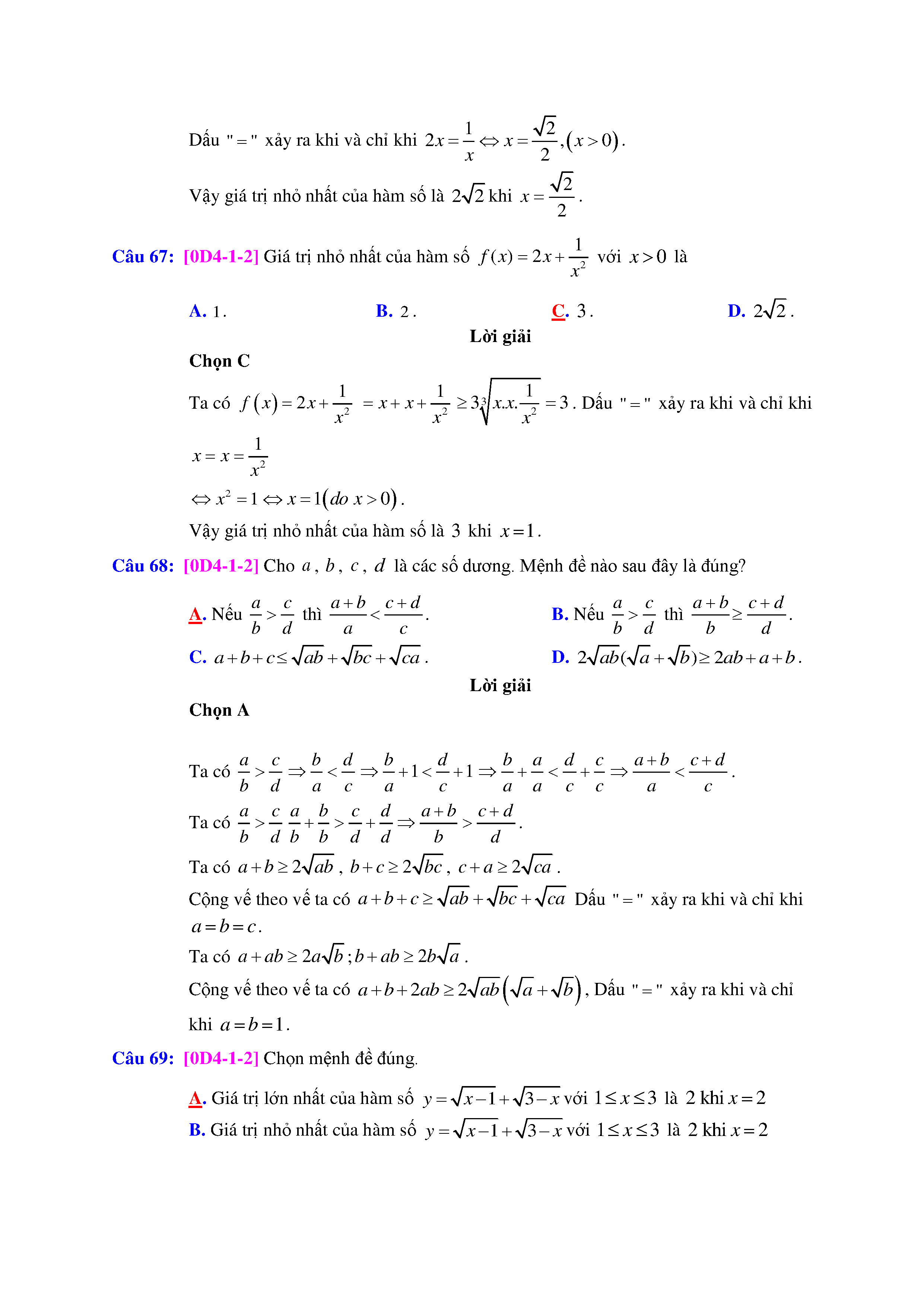 Bài tập BĐT - BPT ôn tập Học kì 2