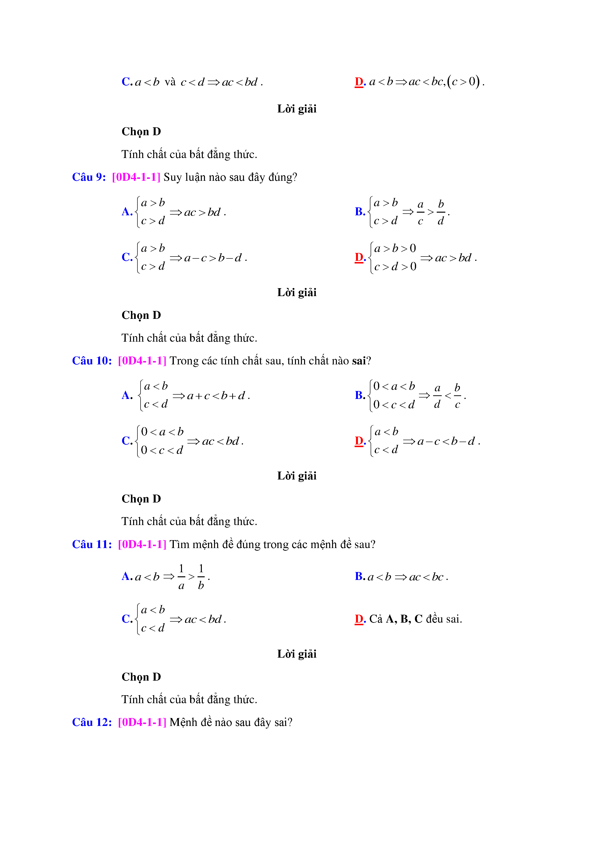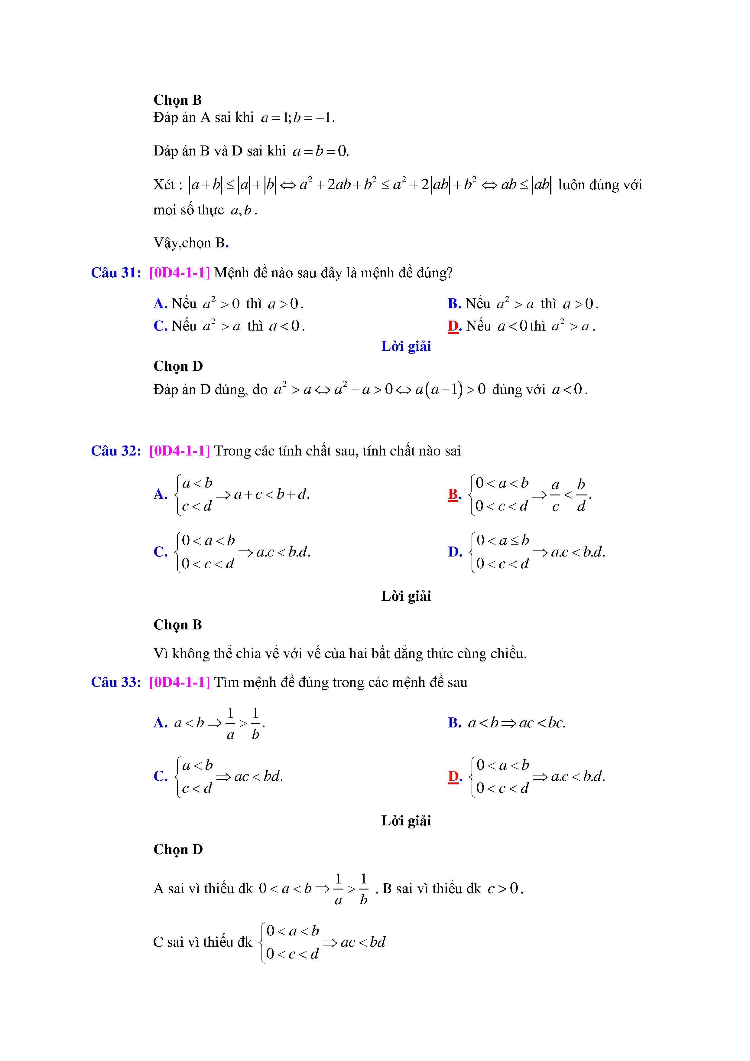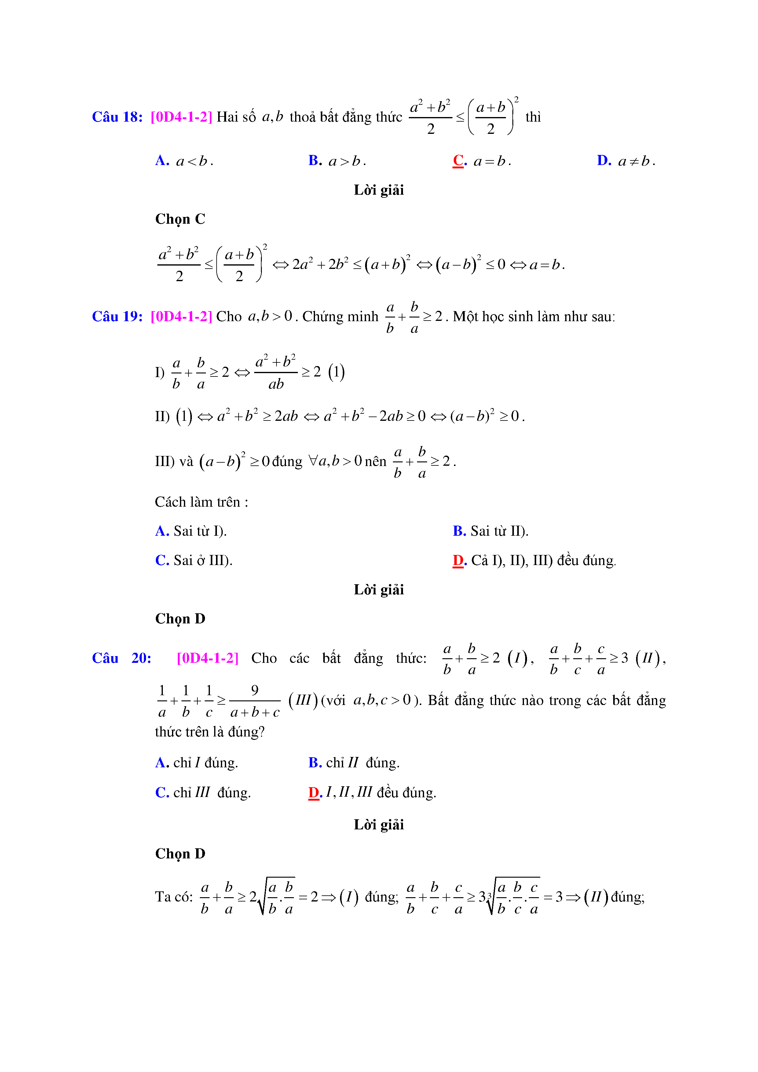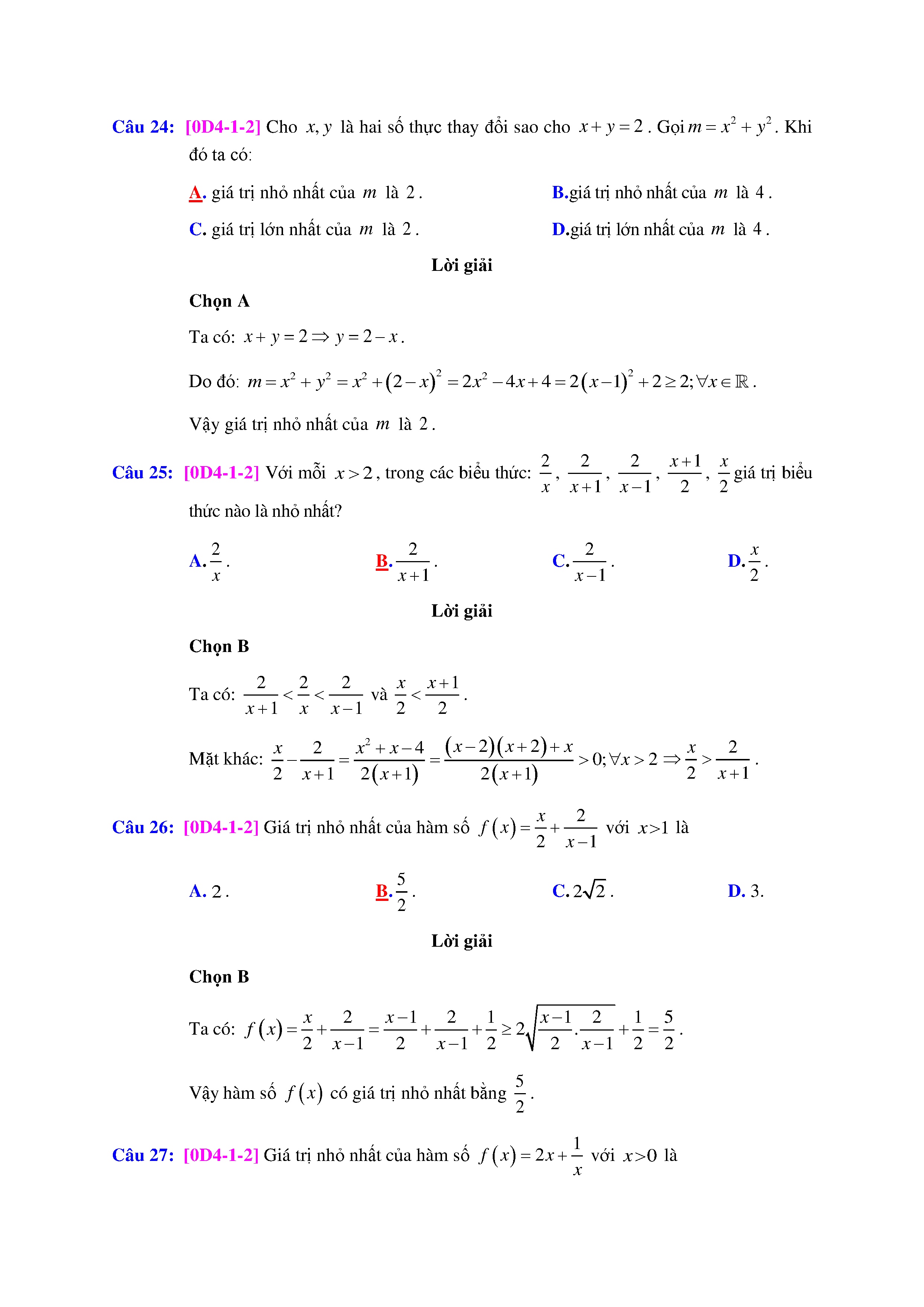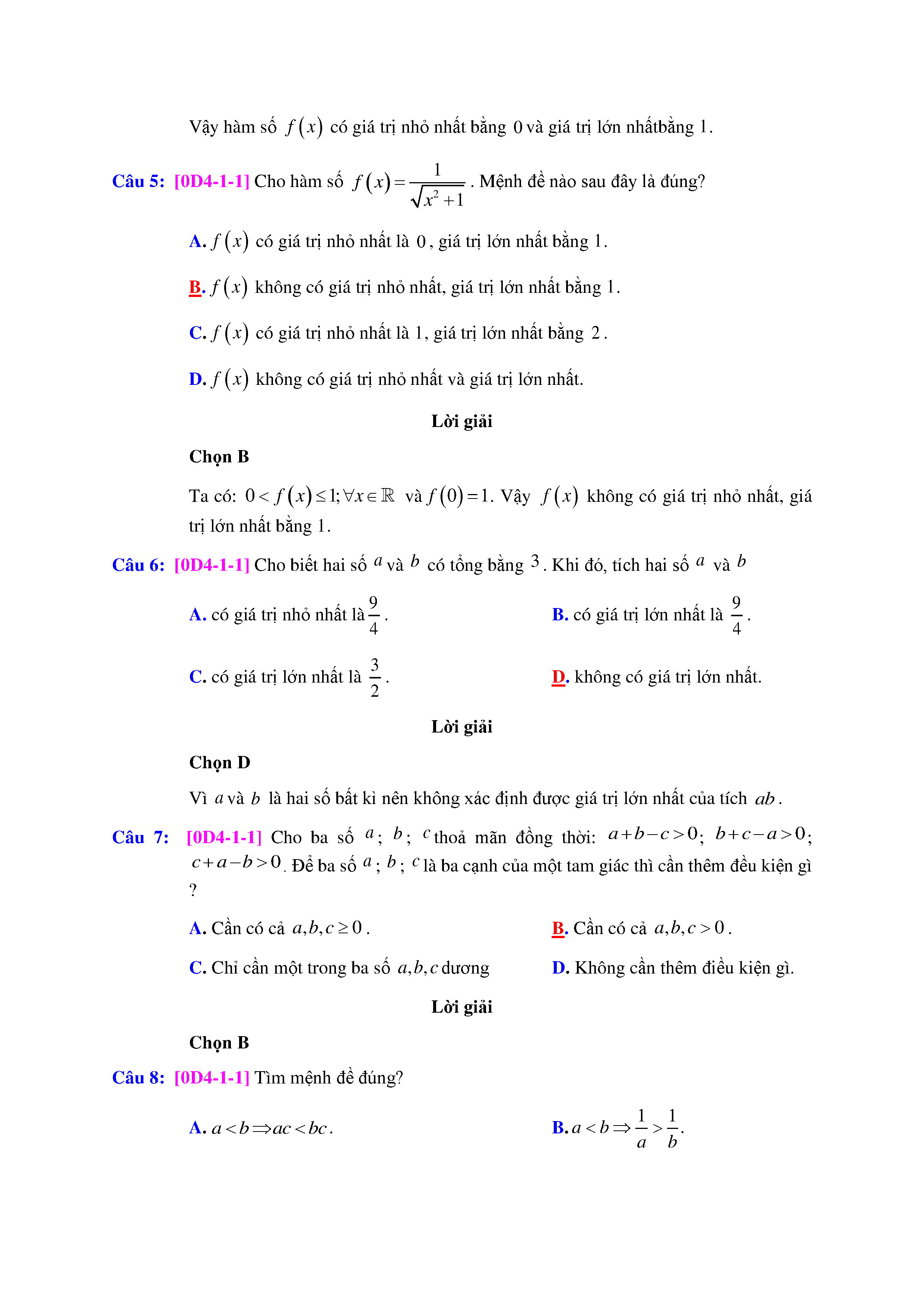 Bài tập BĐT - BPT ôn tập Học kì 2