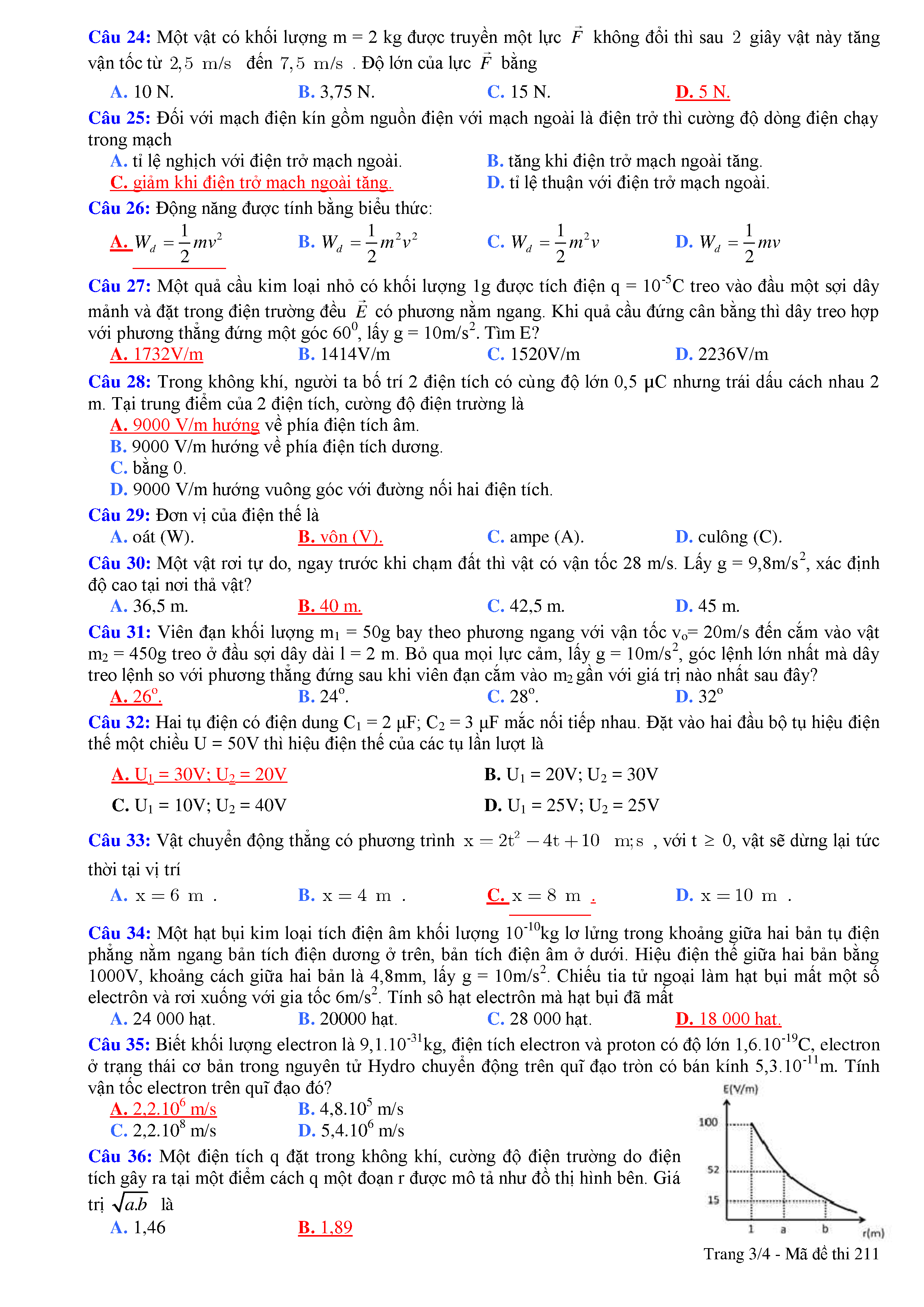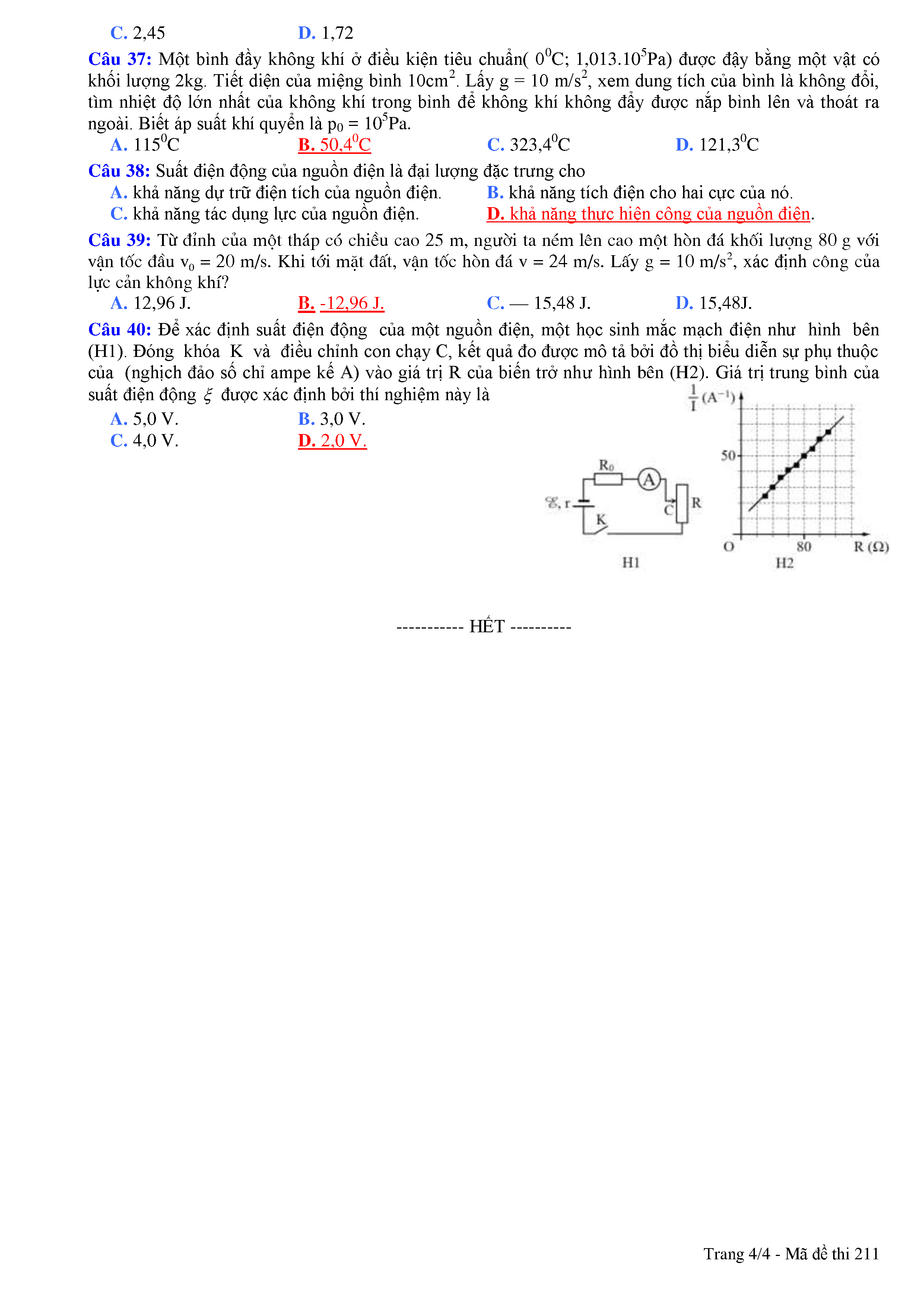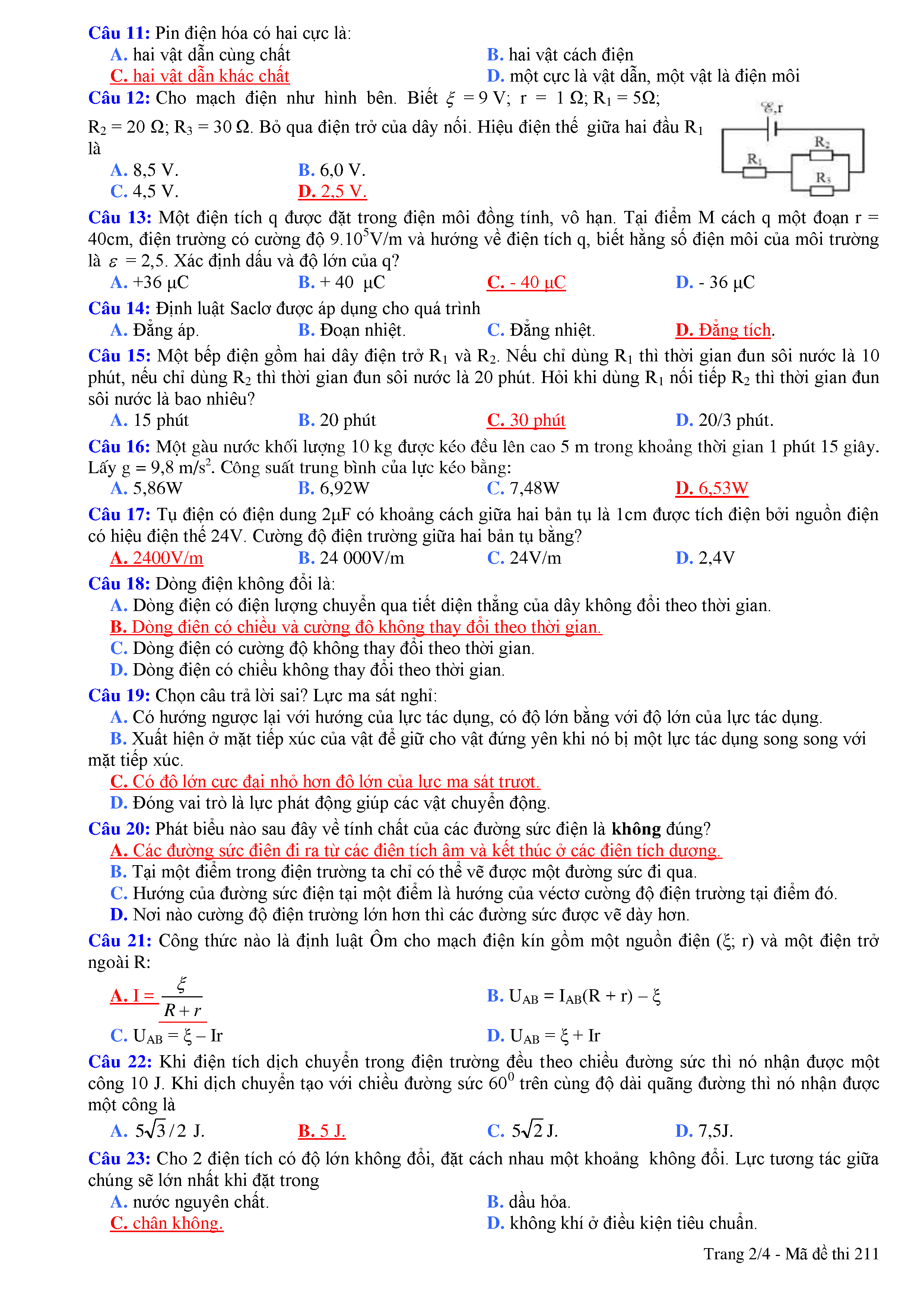 ĐỀ THI HỌC KÌ I MÔN VẬT LÍ 11 NĂM HỌC 2018 - 2019 TRƯỜNG THPT NÔNG CỐNG 2 TỈNH THANH HÓA
