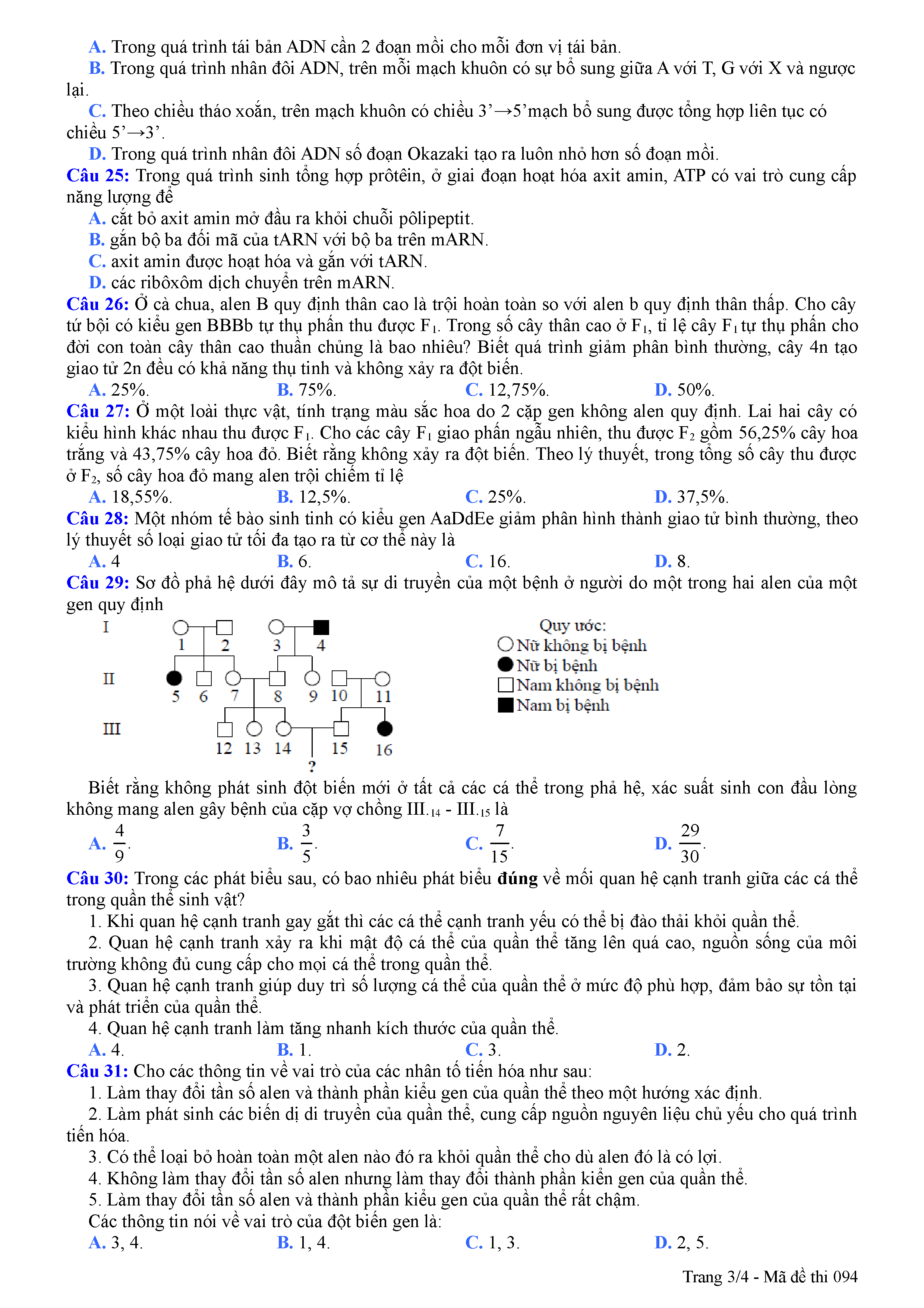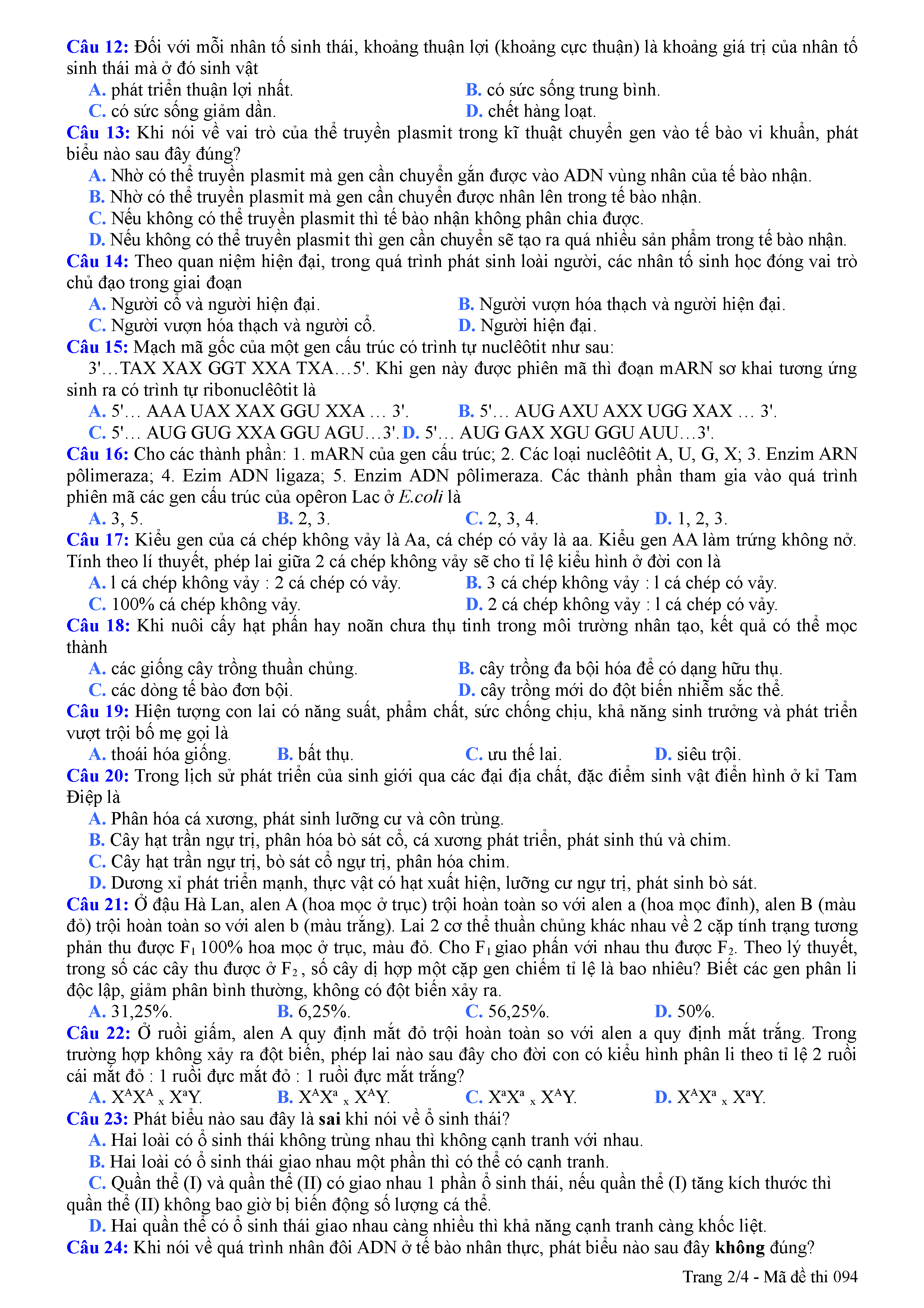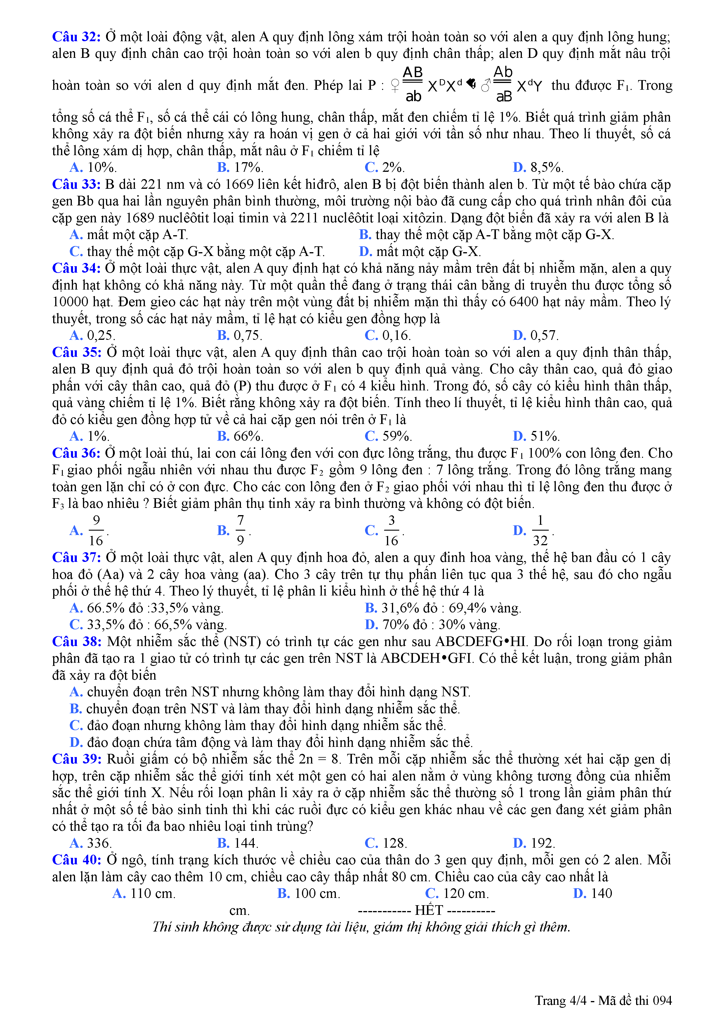 ĐỀ KHẢO SÁT CHẤT LƯỢNG THPT QUỐC GIA NĂM HỌC 2016 - 2017 - MÔN SINH HỌC 12 - SỞ GD&ĐT Vĩnh Phúc