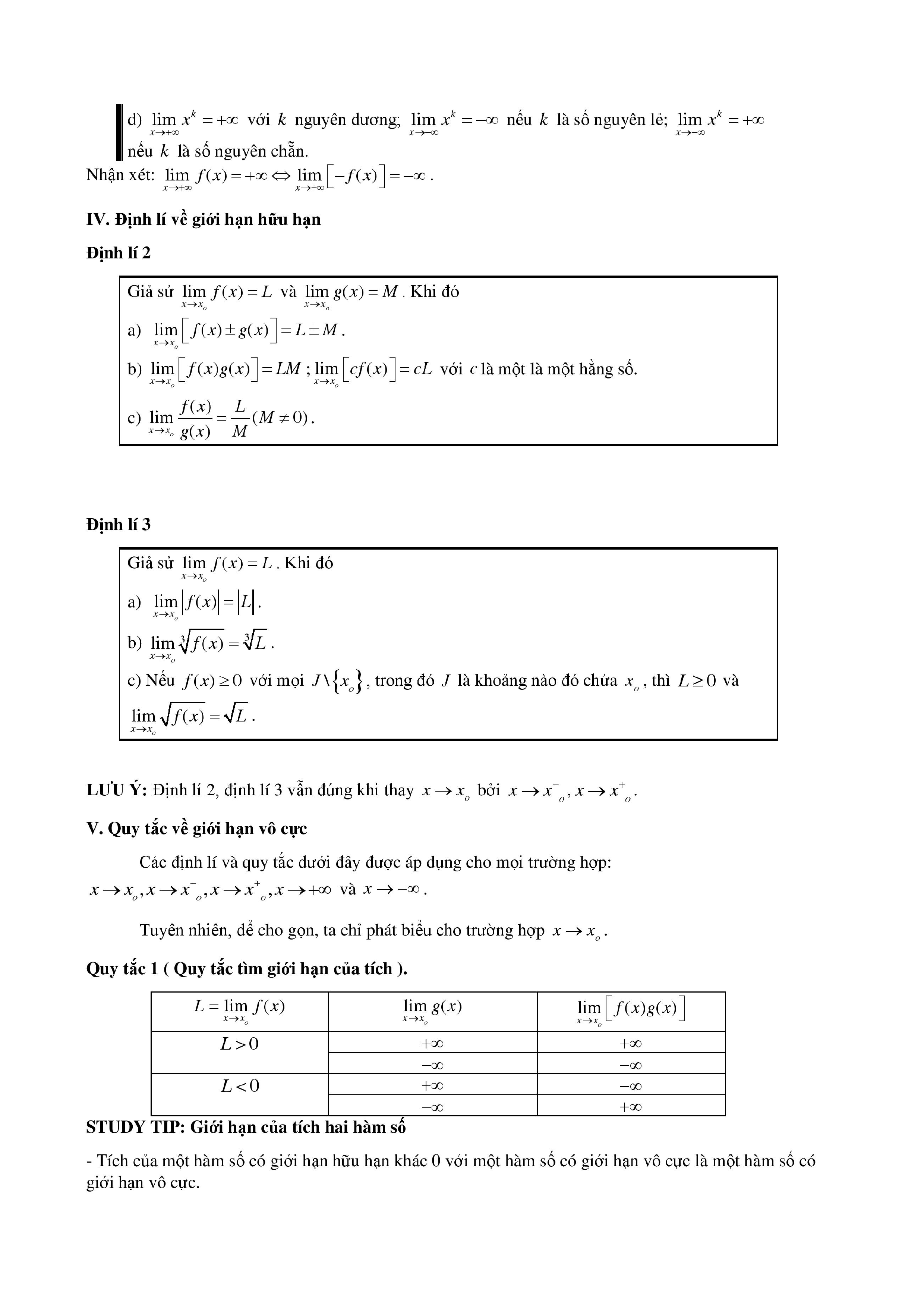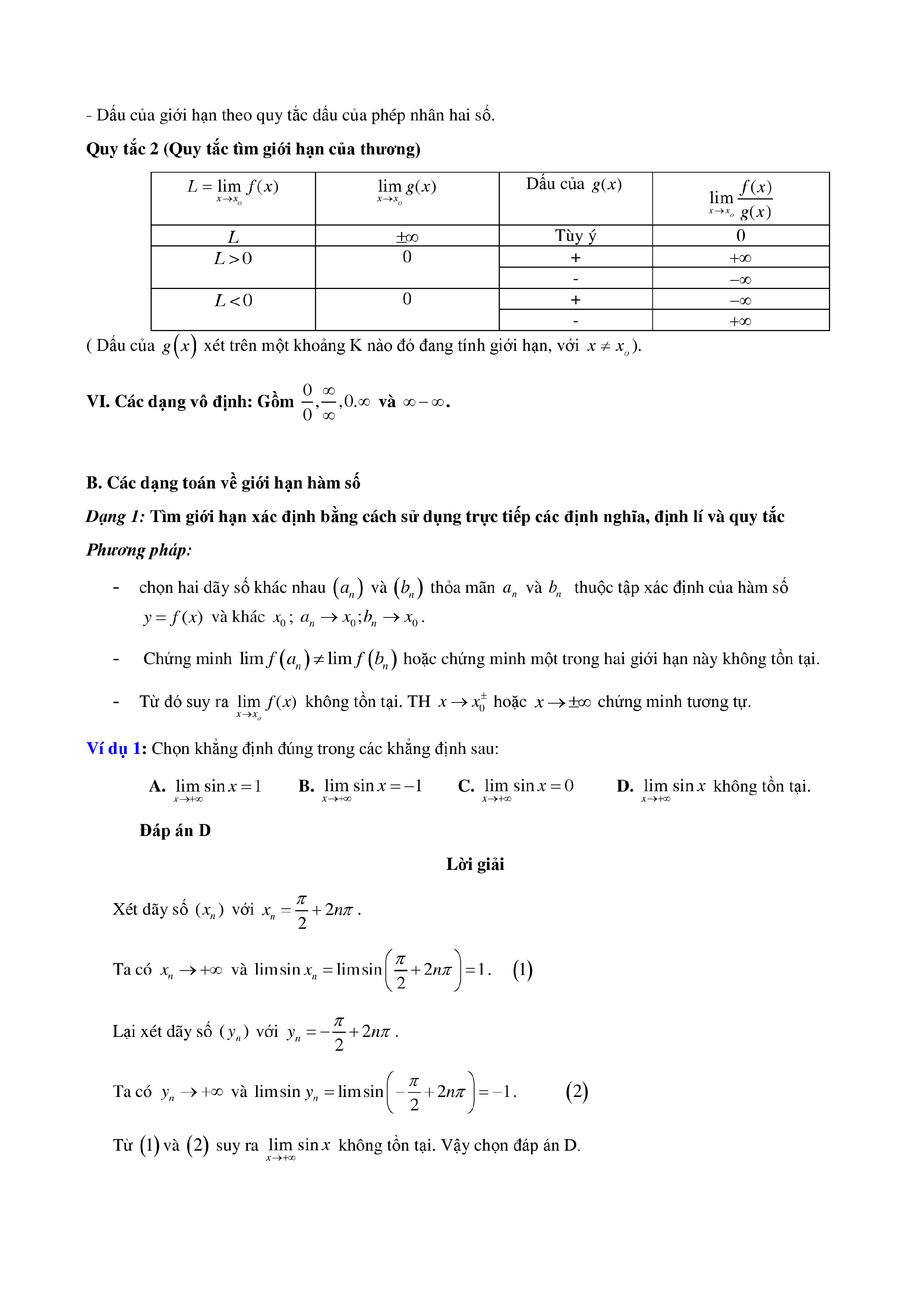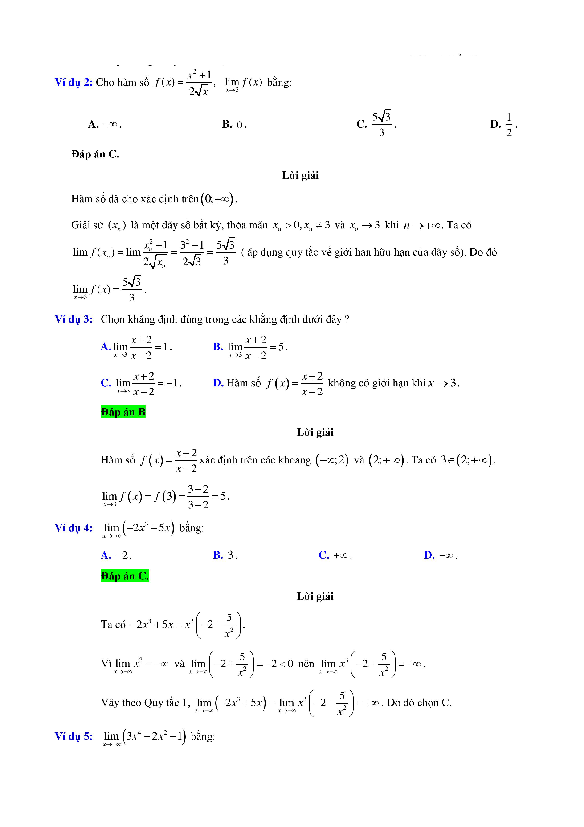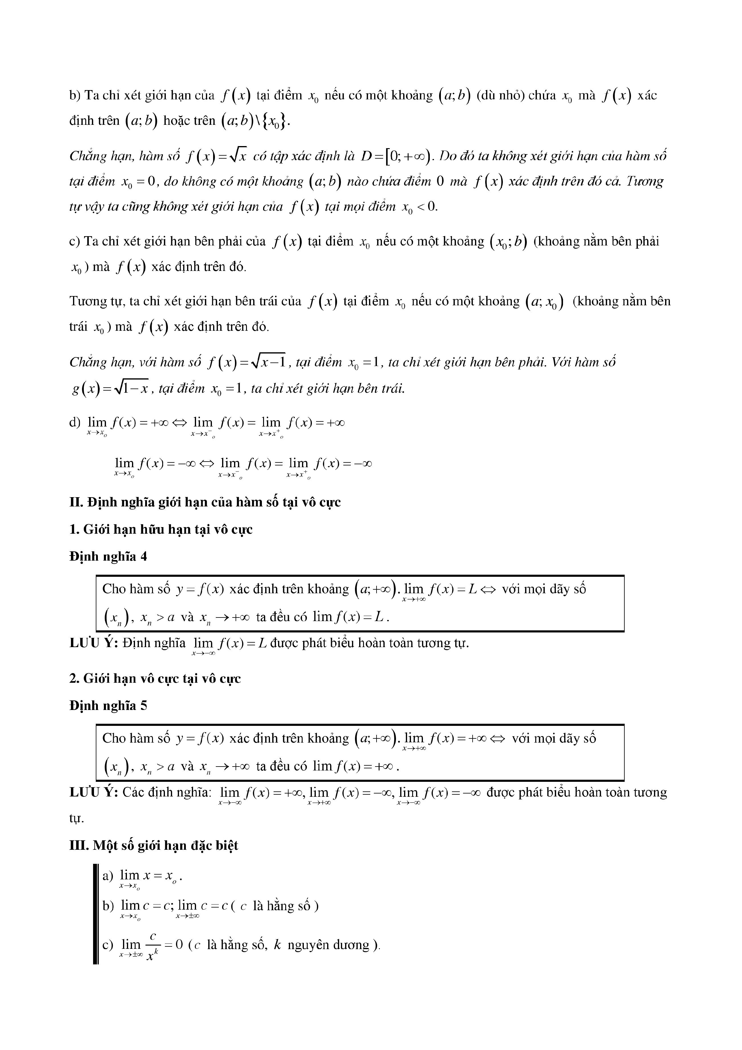 ÔN TẬP KIỂM TRA GIỚI HẠN HÀM SỐ