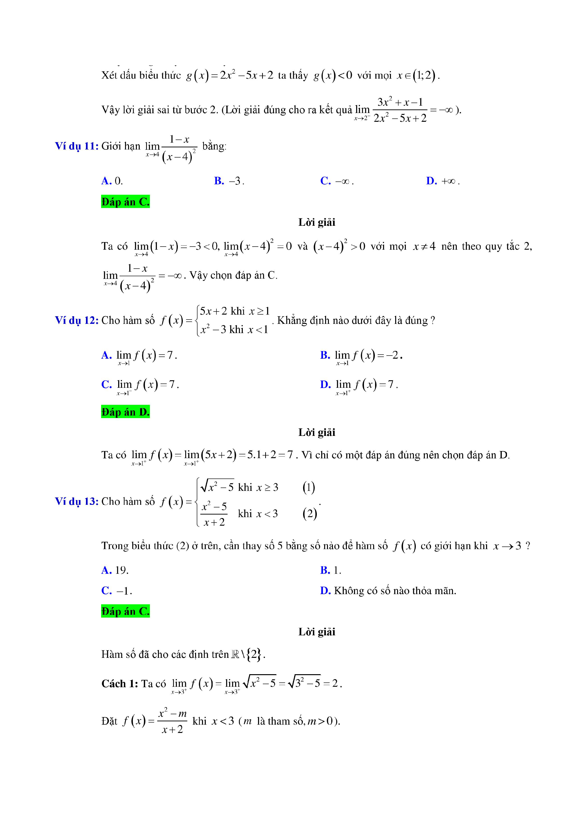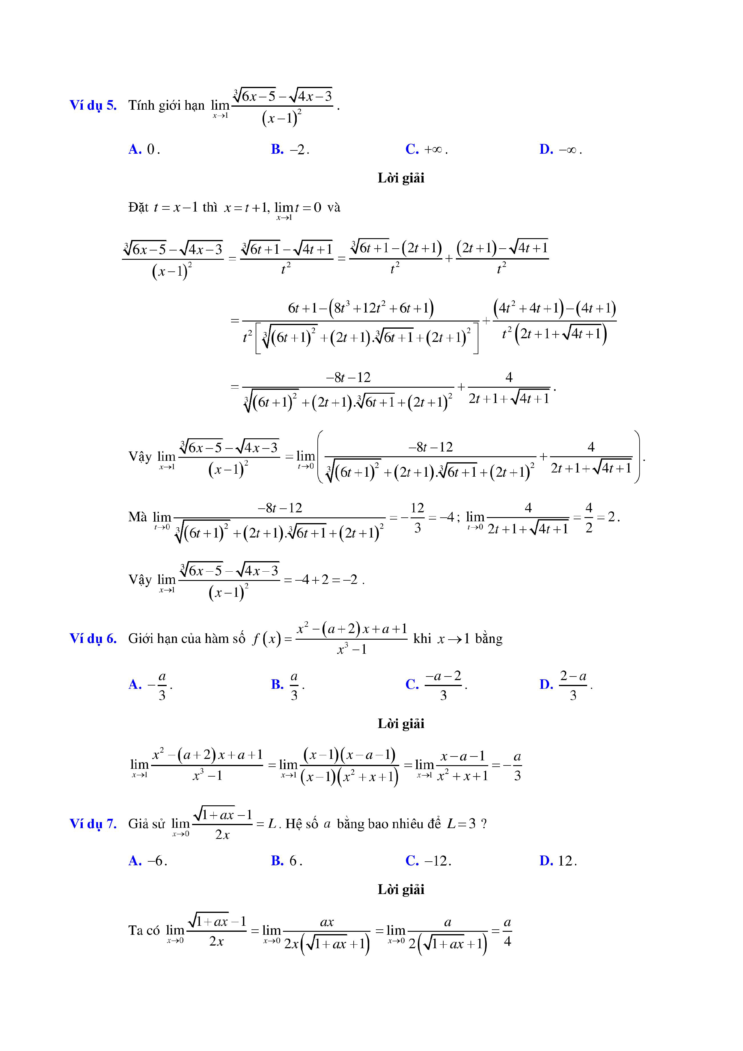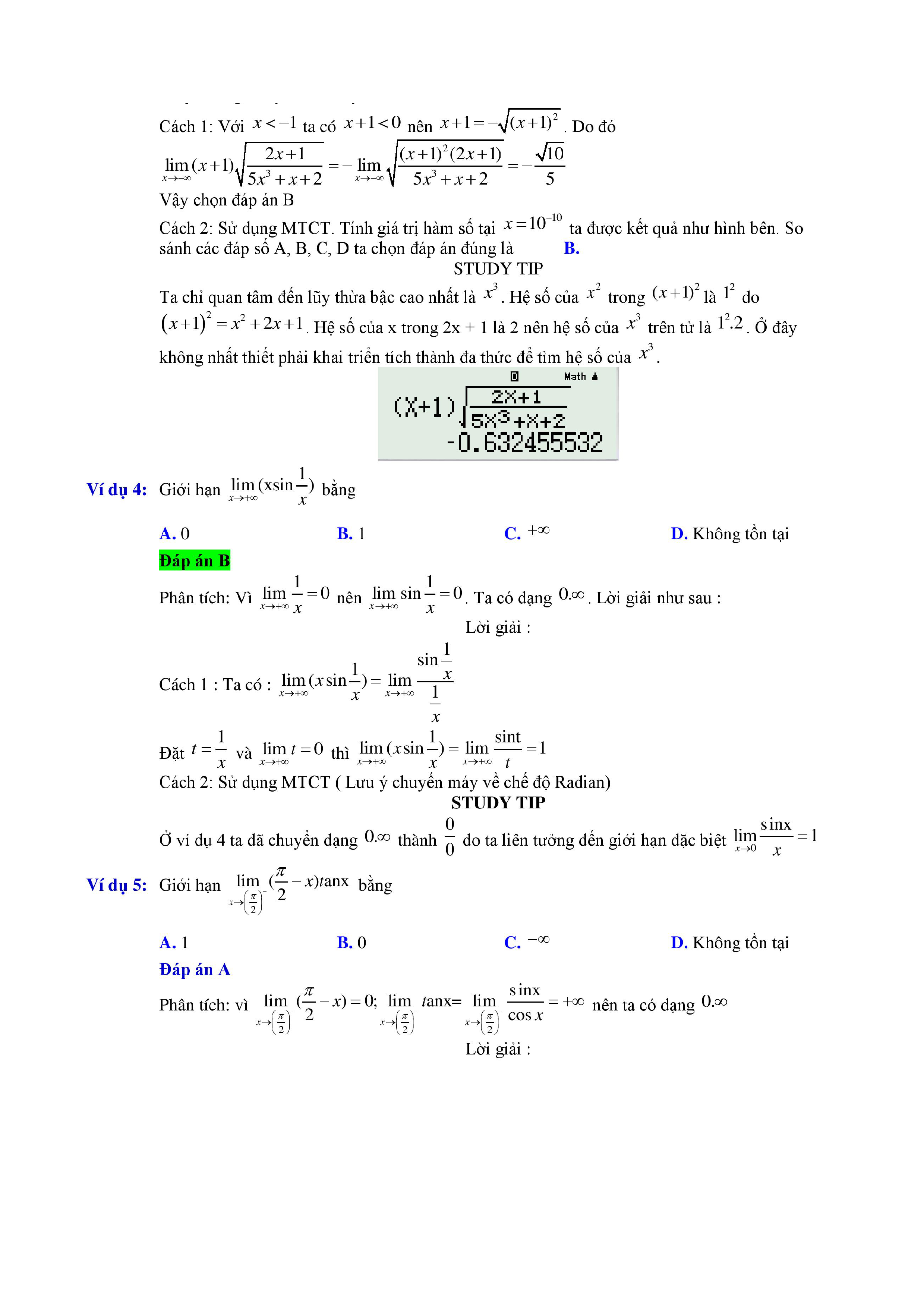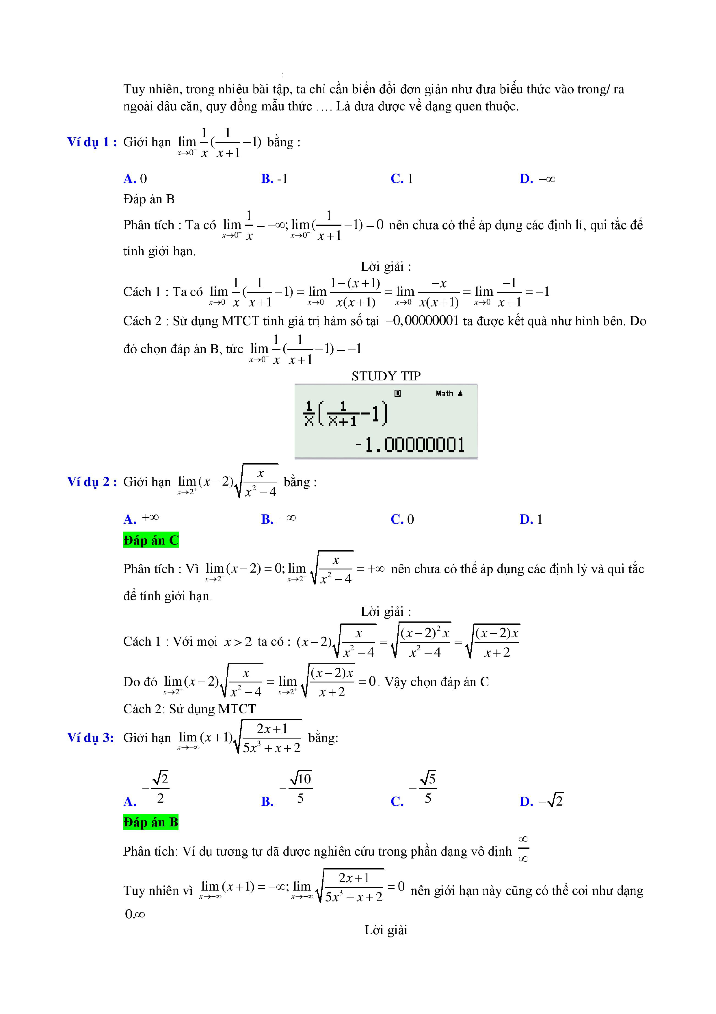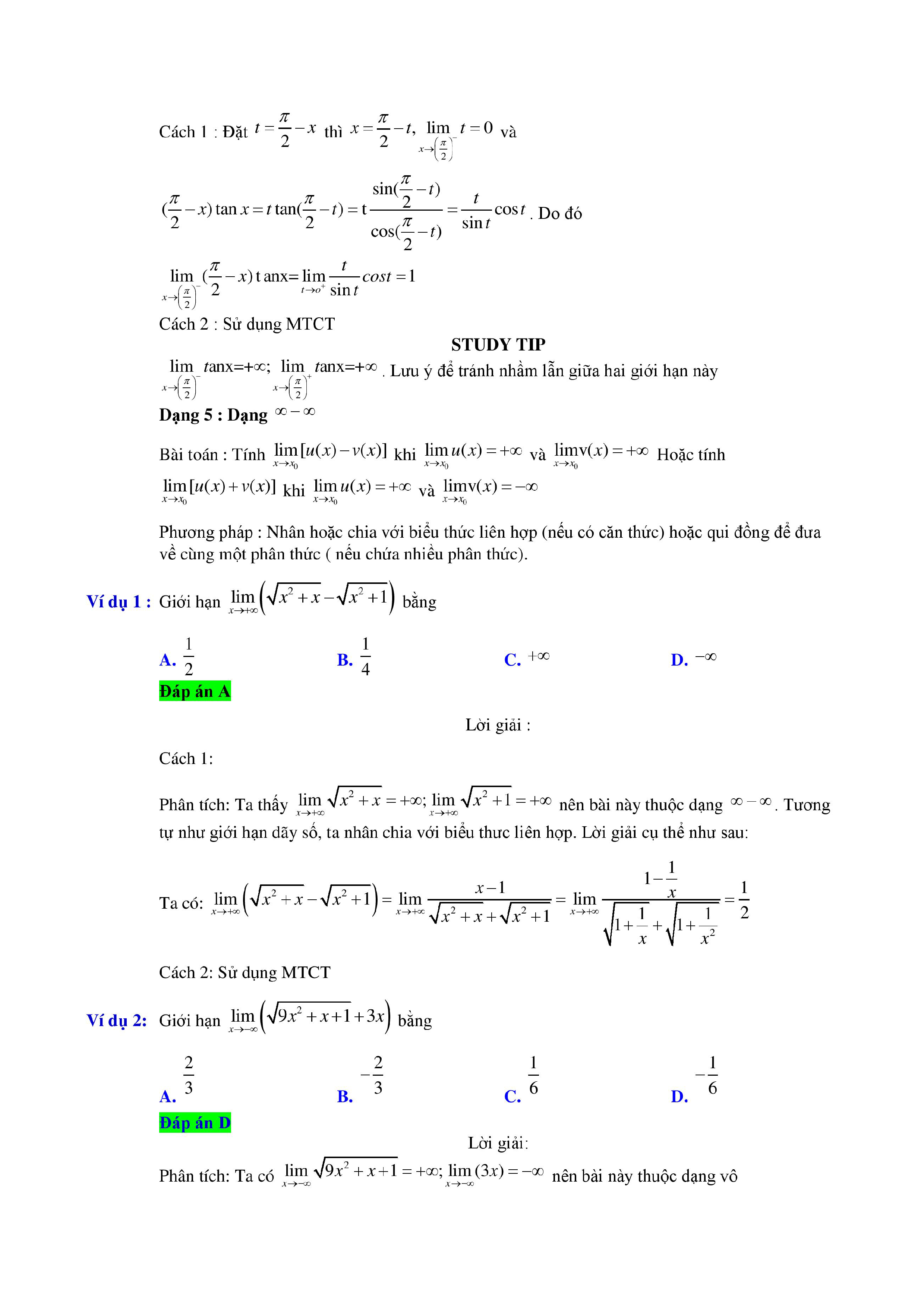 ÔN TẬP KIỂM TRA GIỚI HẠN HÀM SỐ