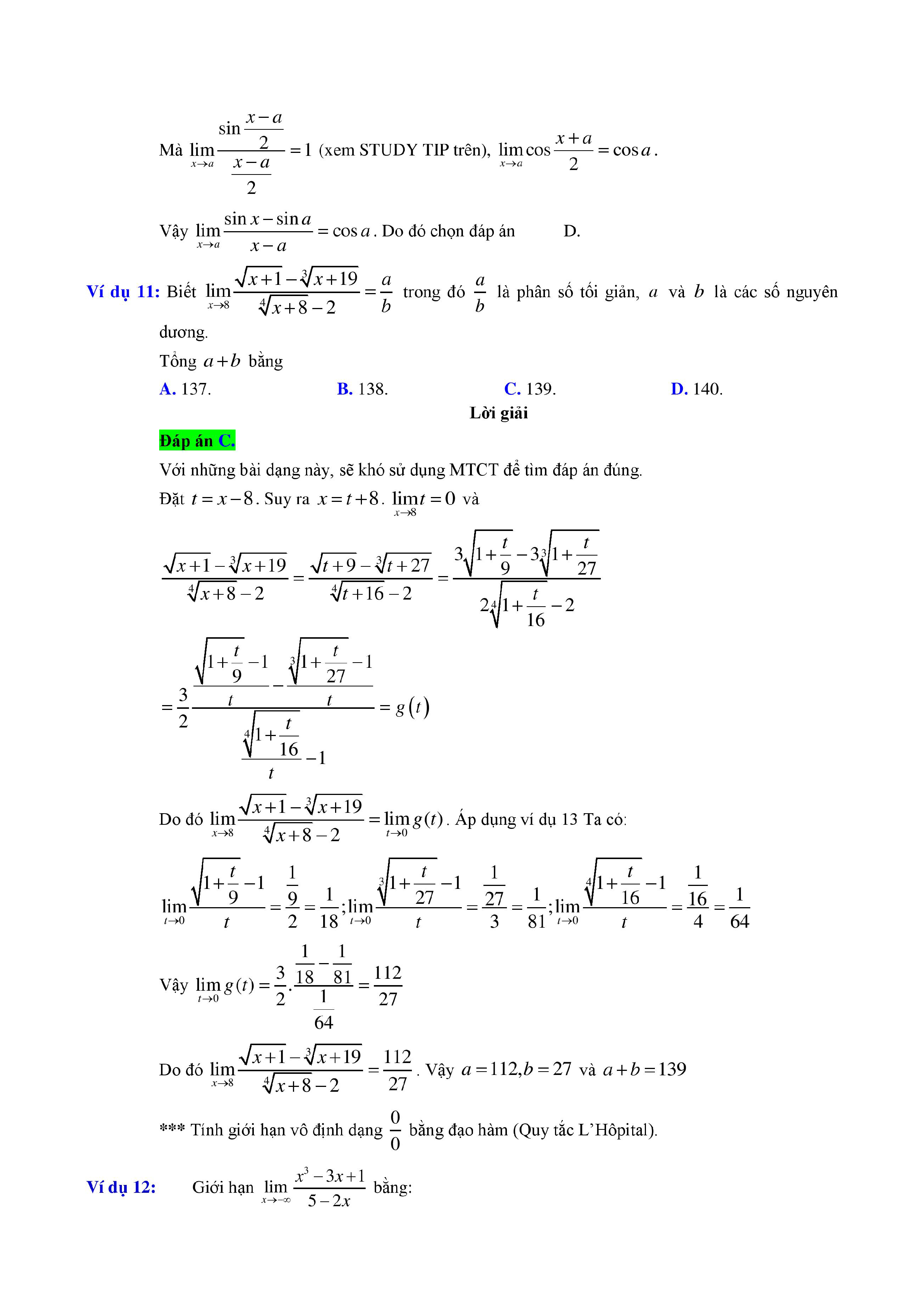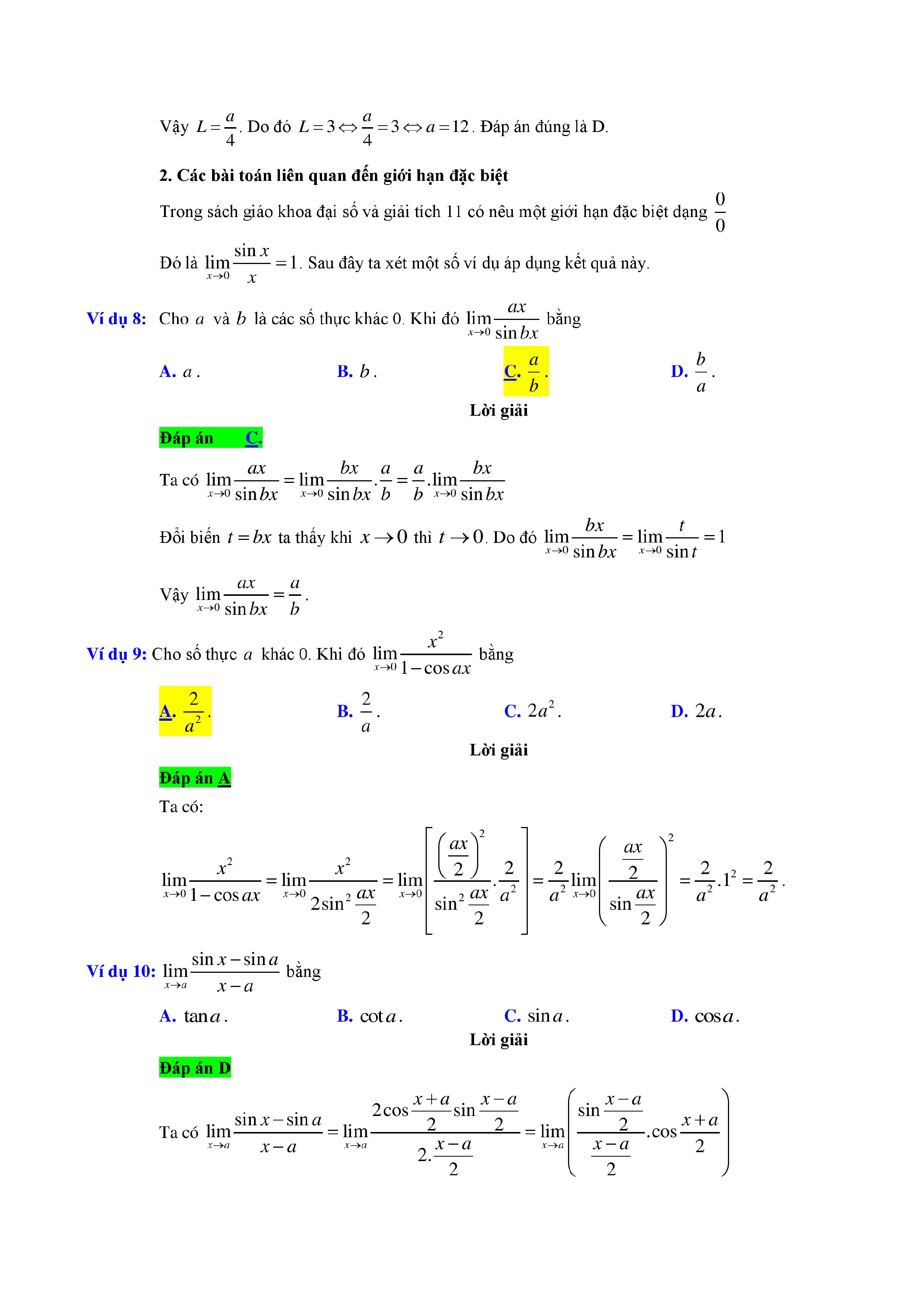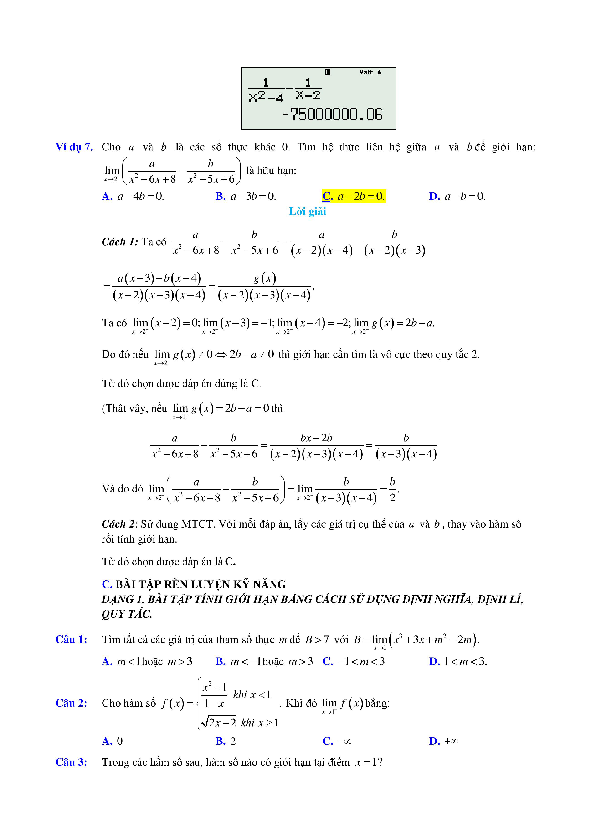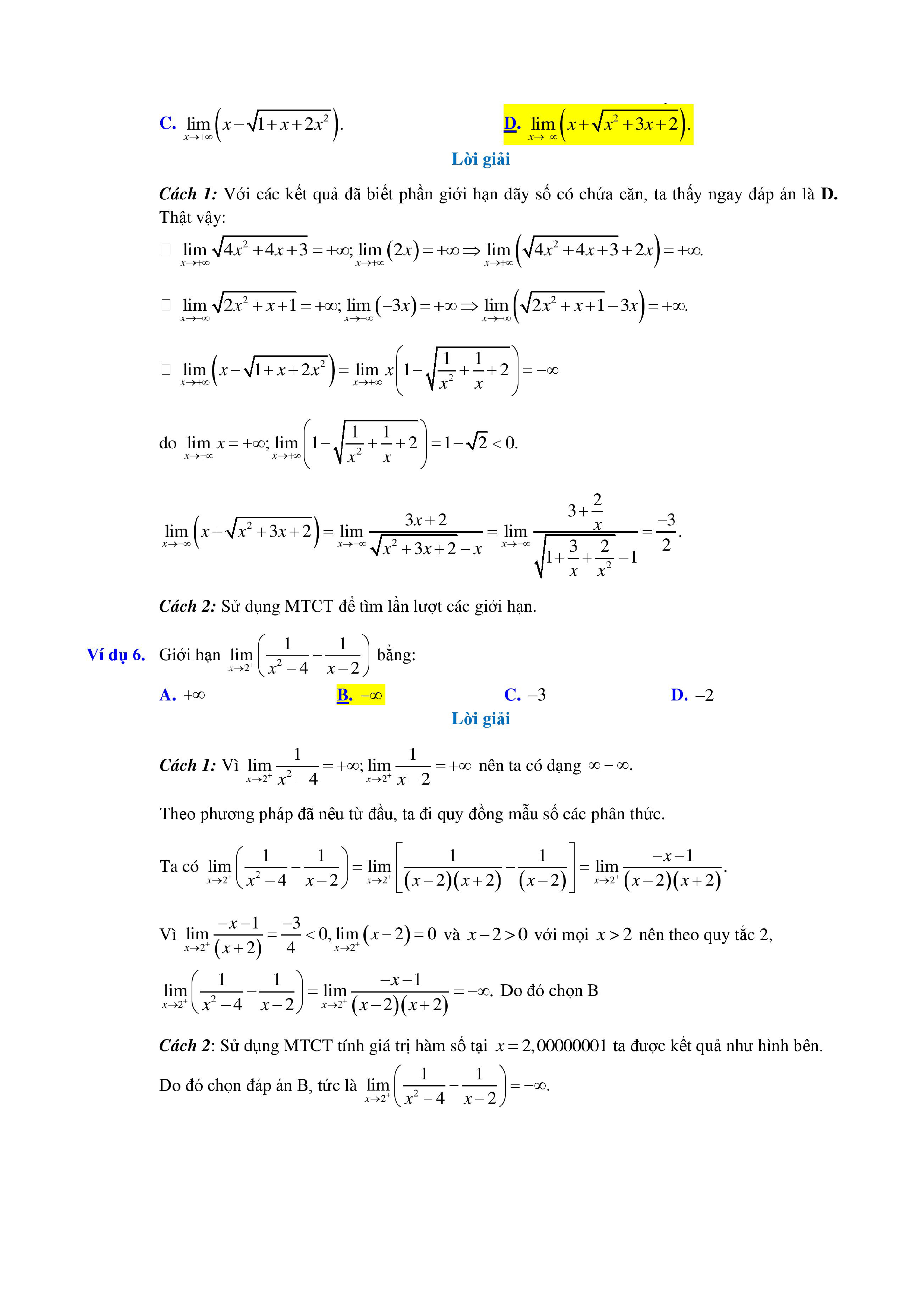 ÔN TẬP KIỂM TRA GIỚI HẠN HÀM SỐ