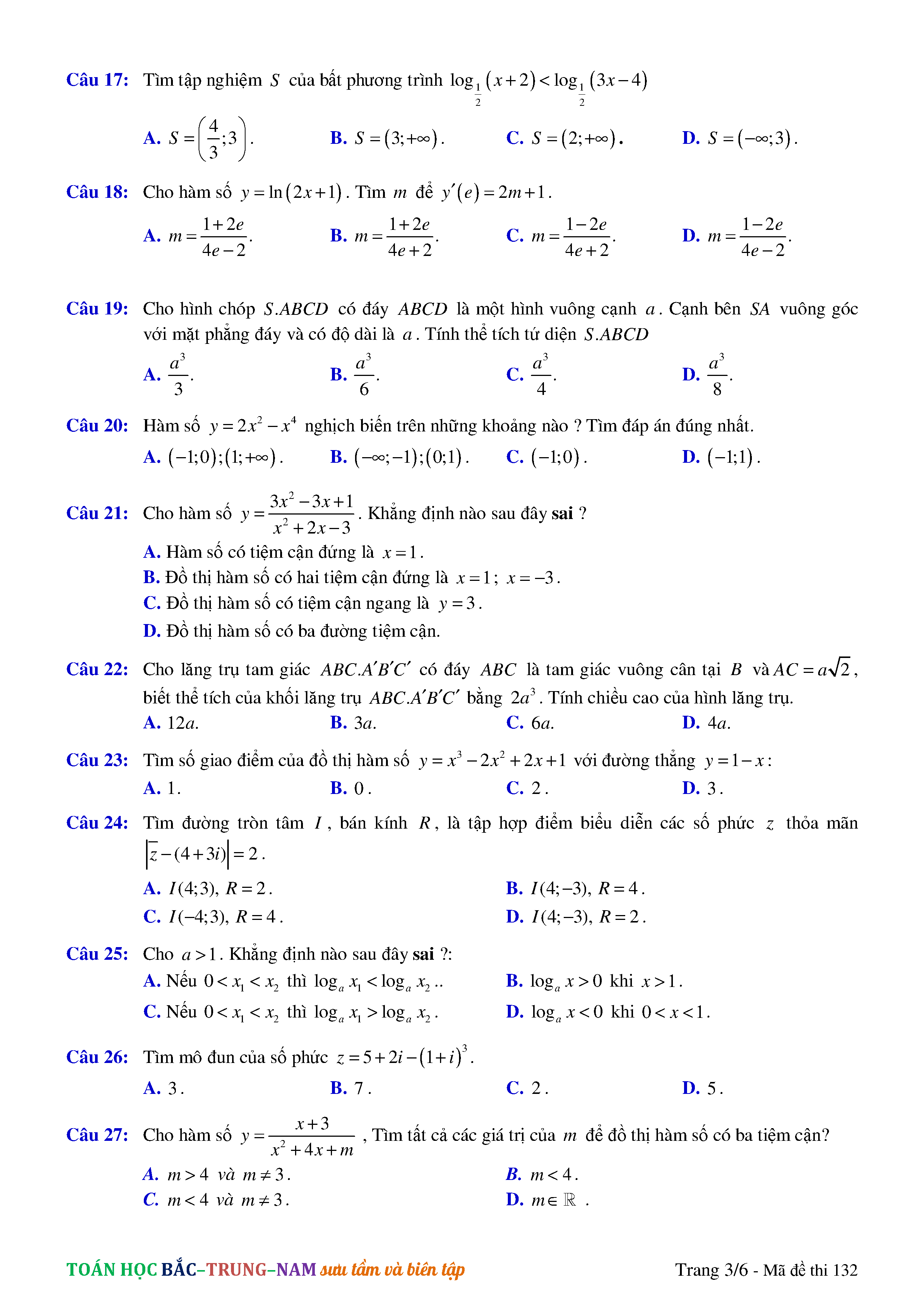 Đề thi thử THPT quốc gia môn Toán - Trường THPT Công Nhiệt, Hòa Bình - Năm 2017