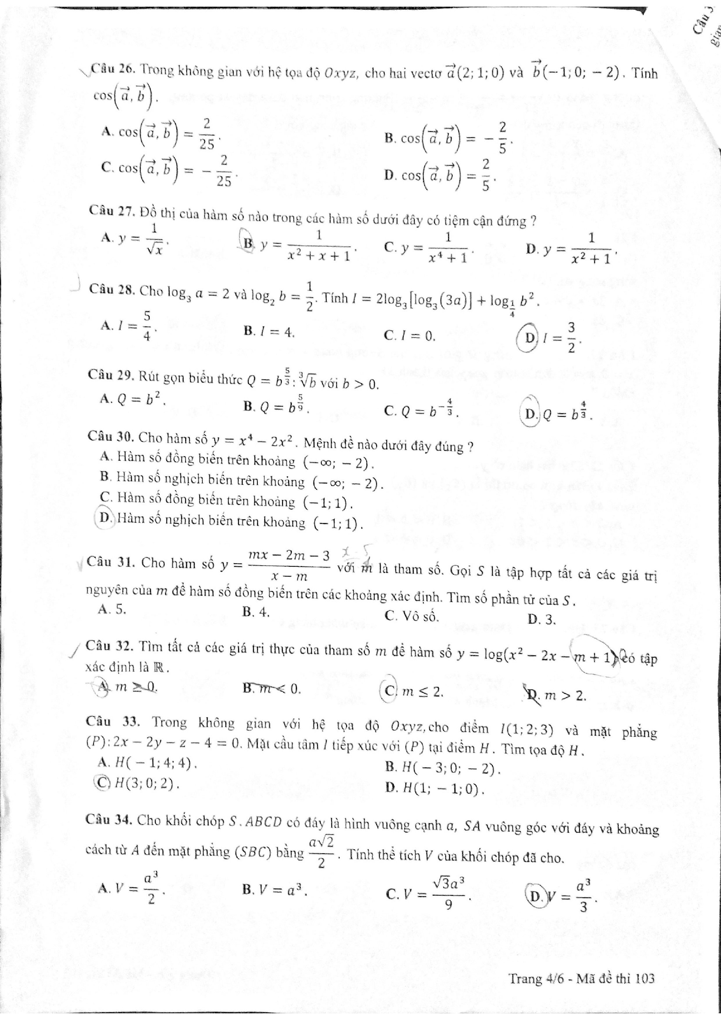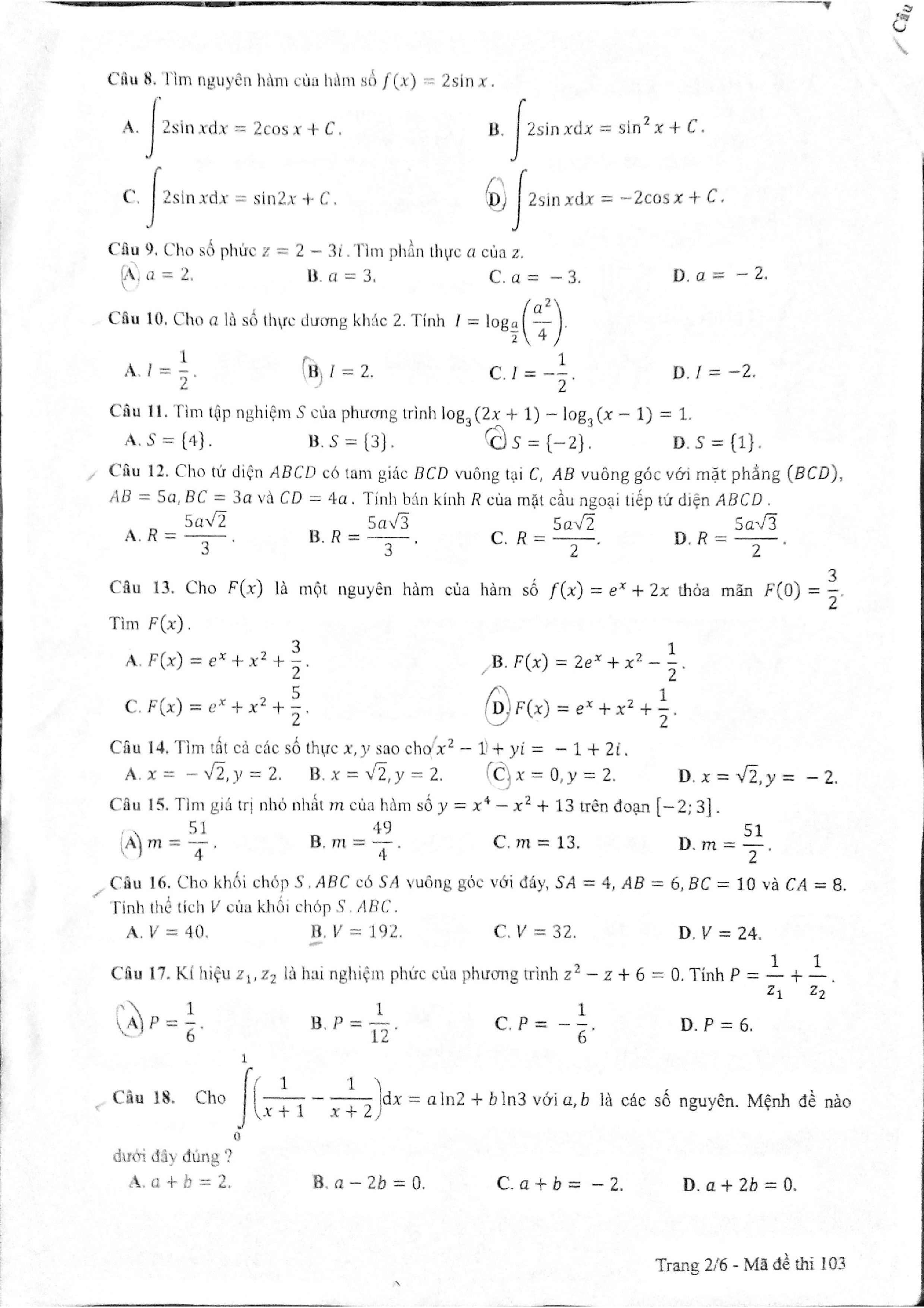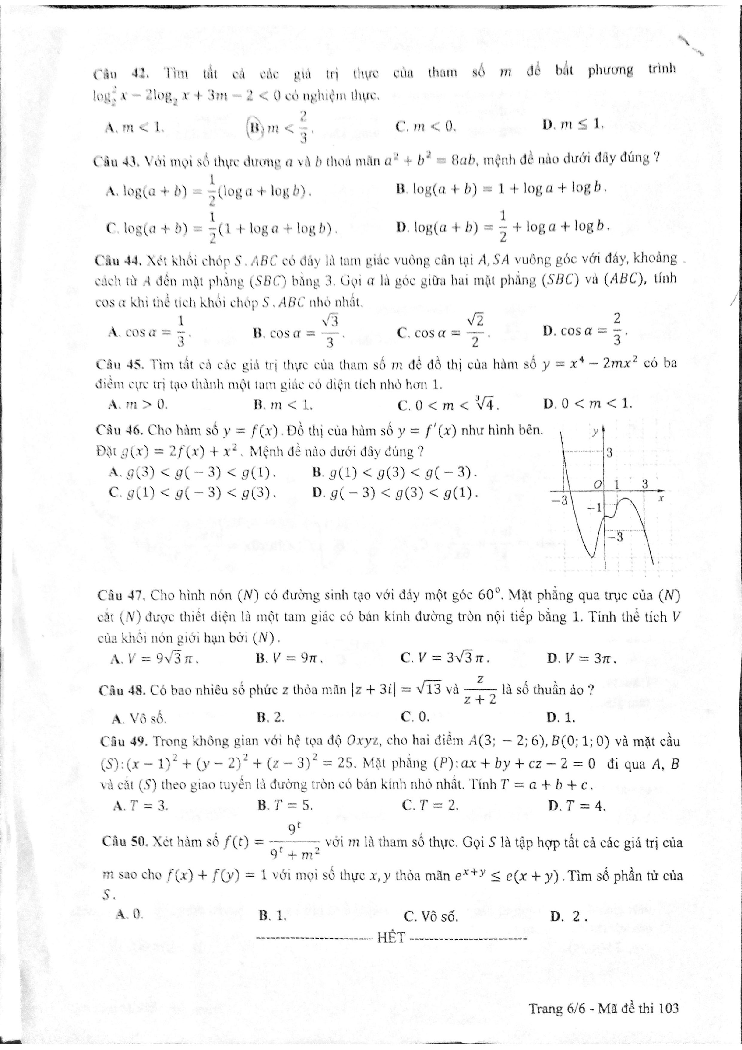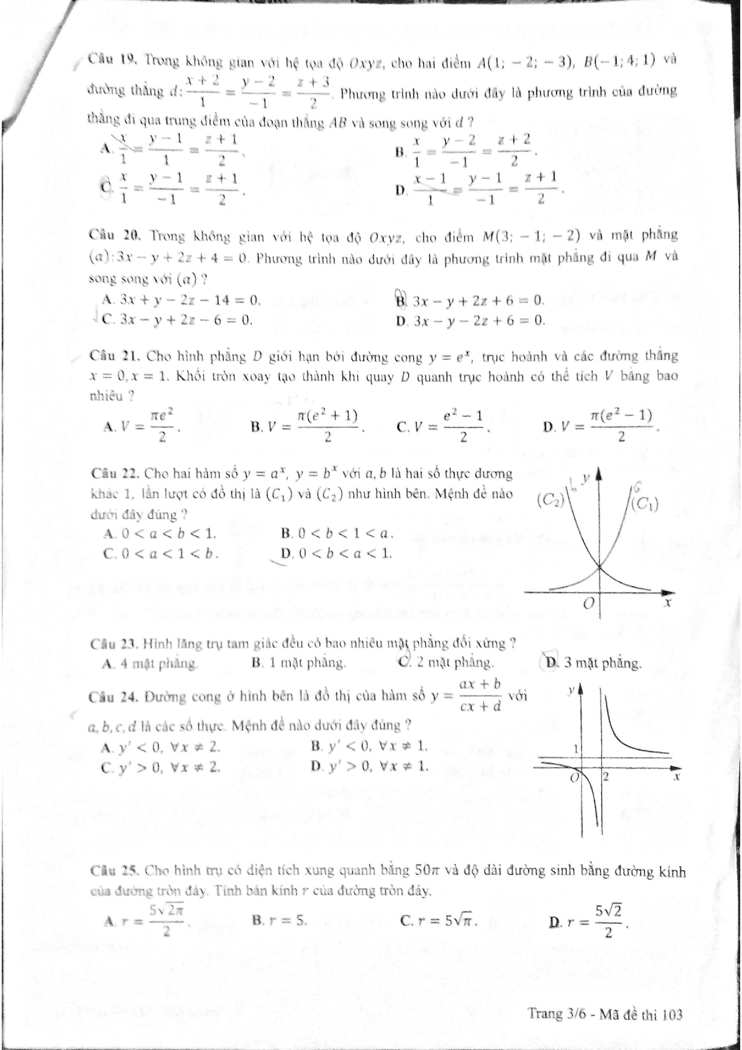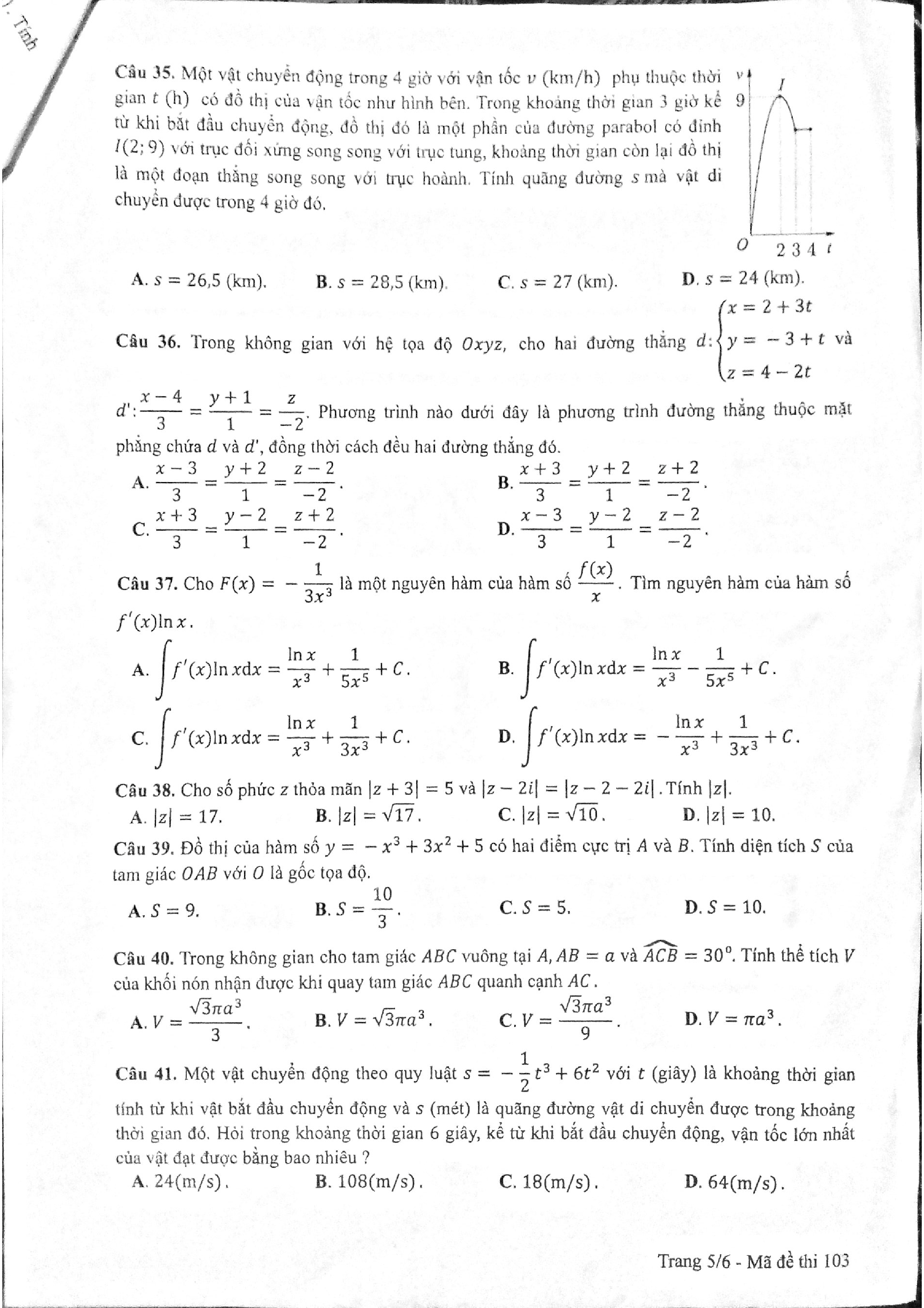 Đề thi THPT quốc gia môn Toán năm 2017 - mã đề 103
