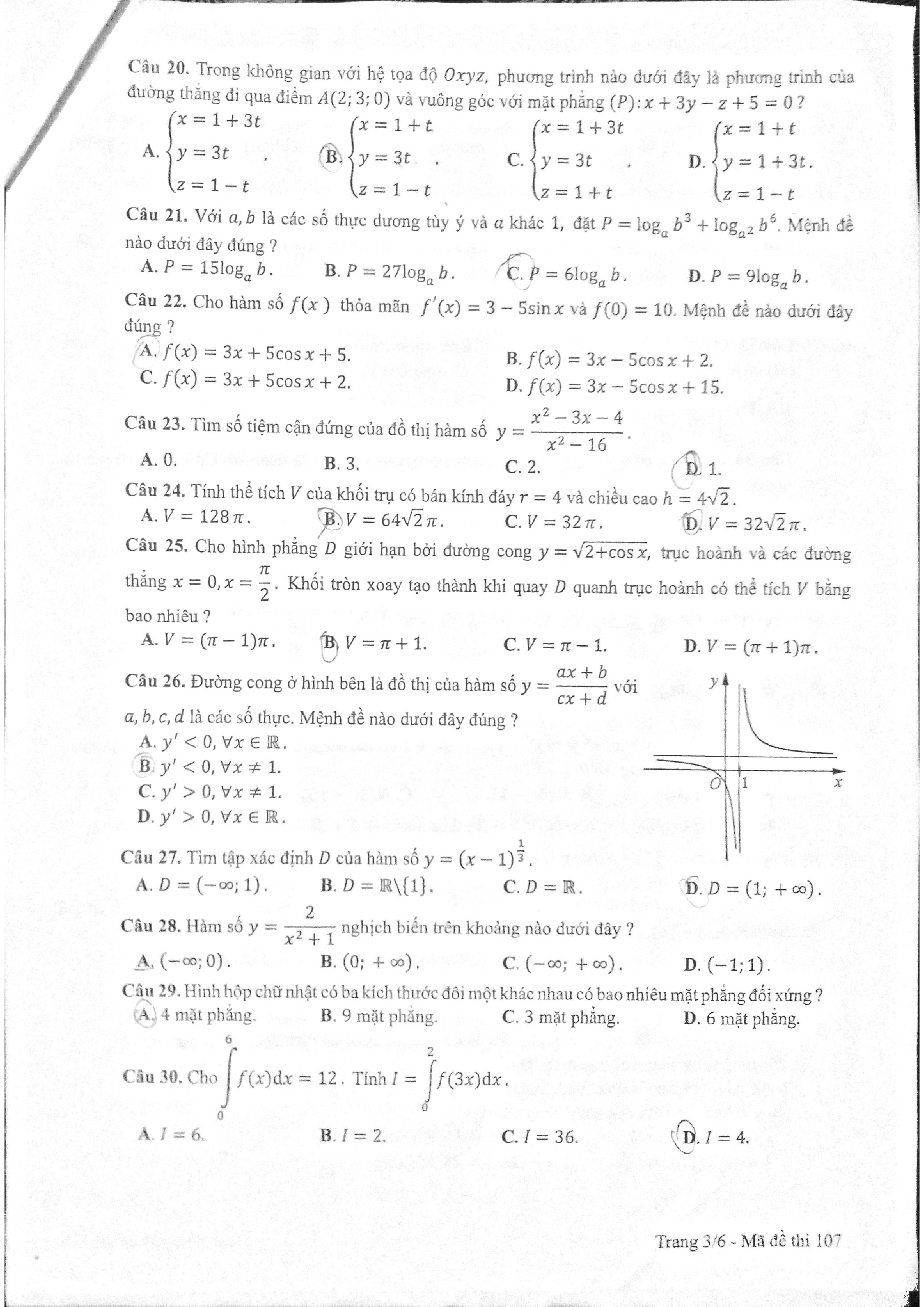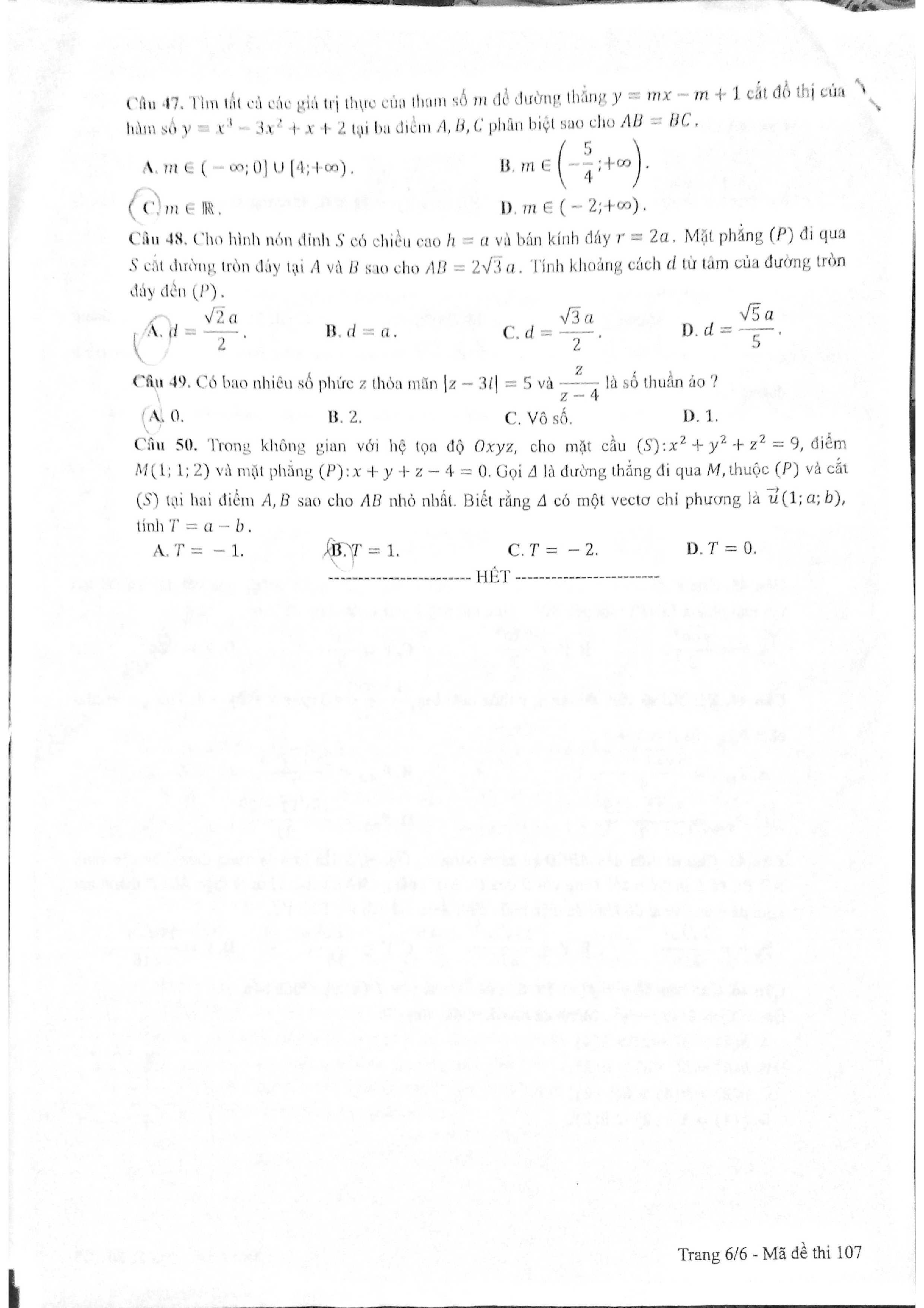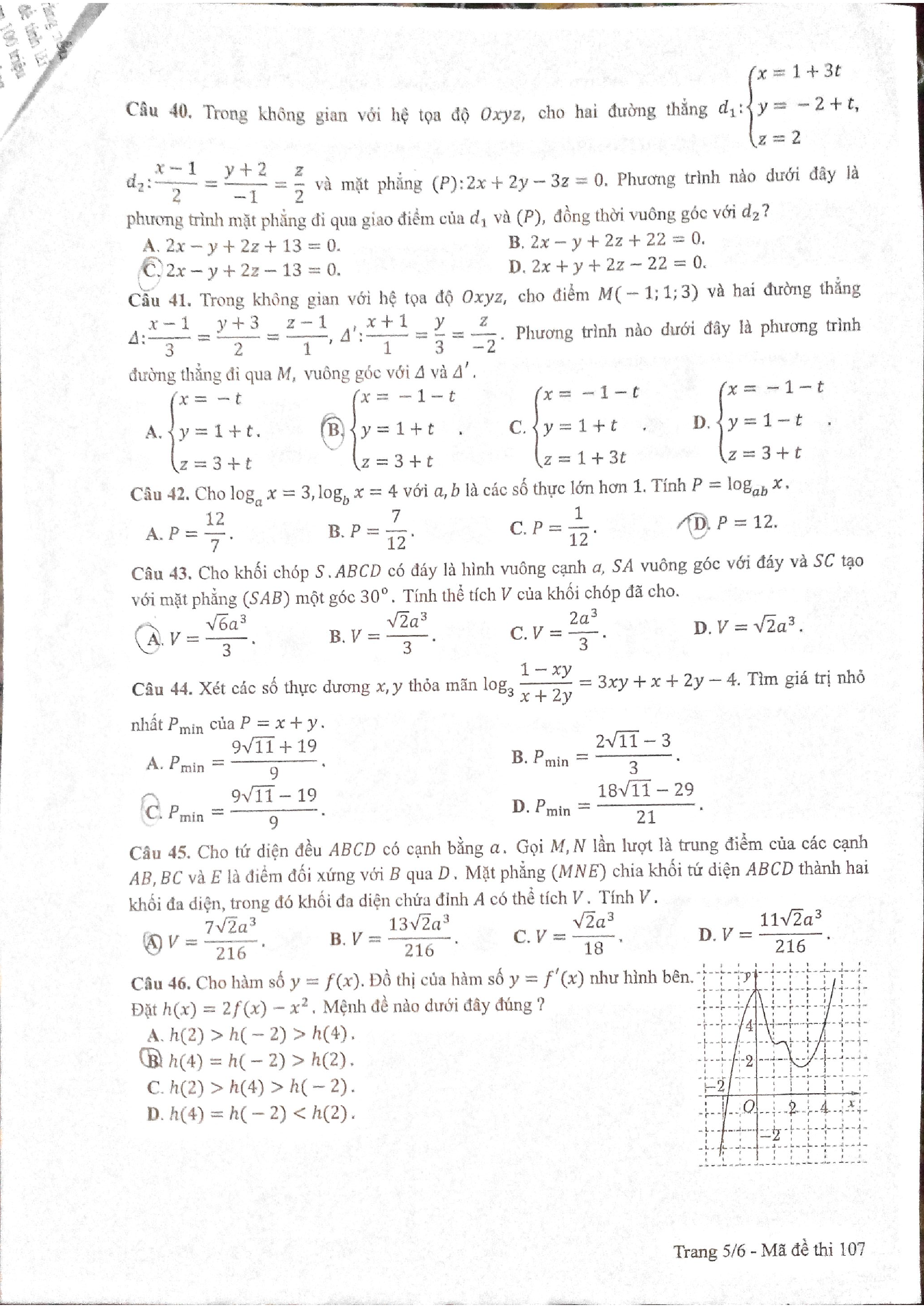 Đề thi THPT quốc gia môn Toán năm 2017 - mã đề 107