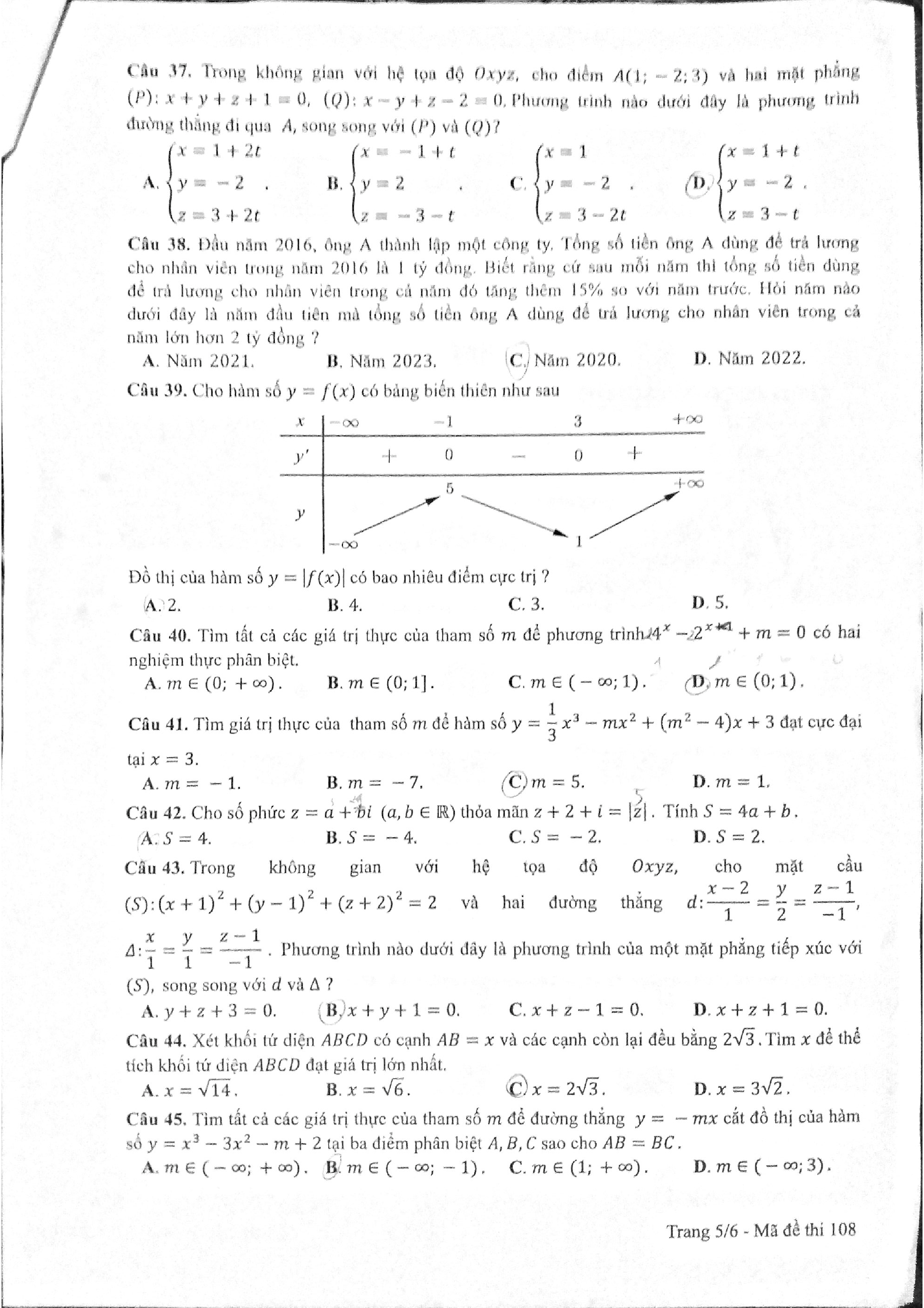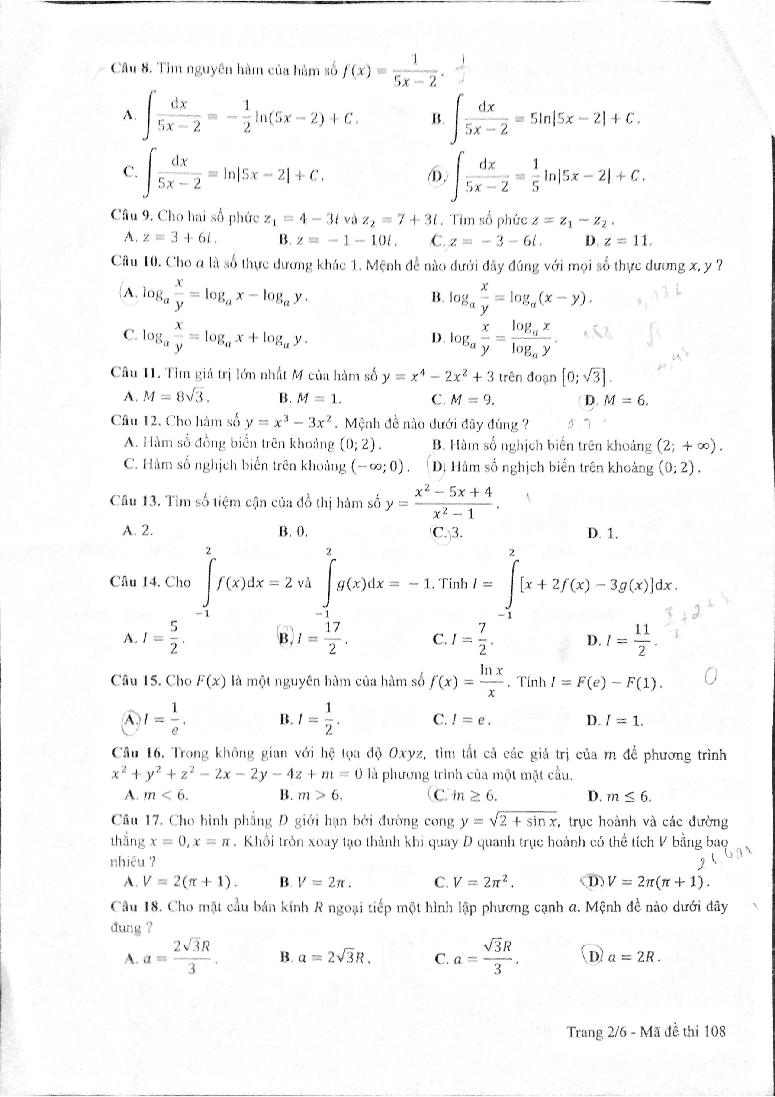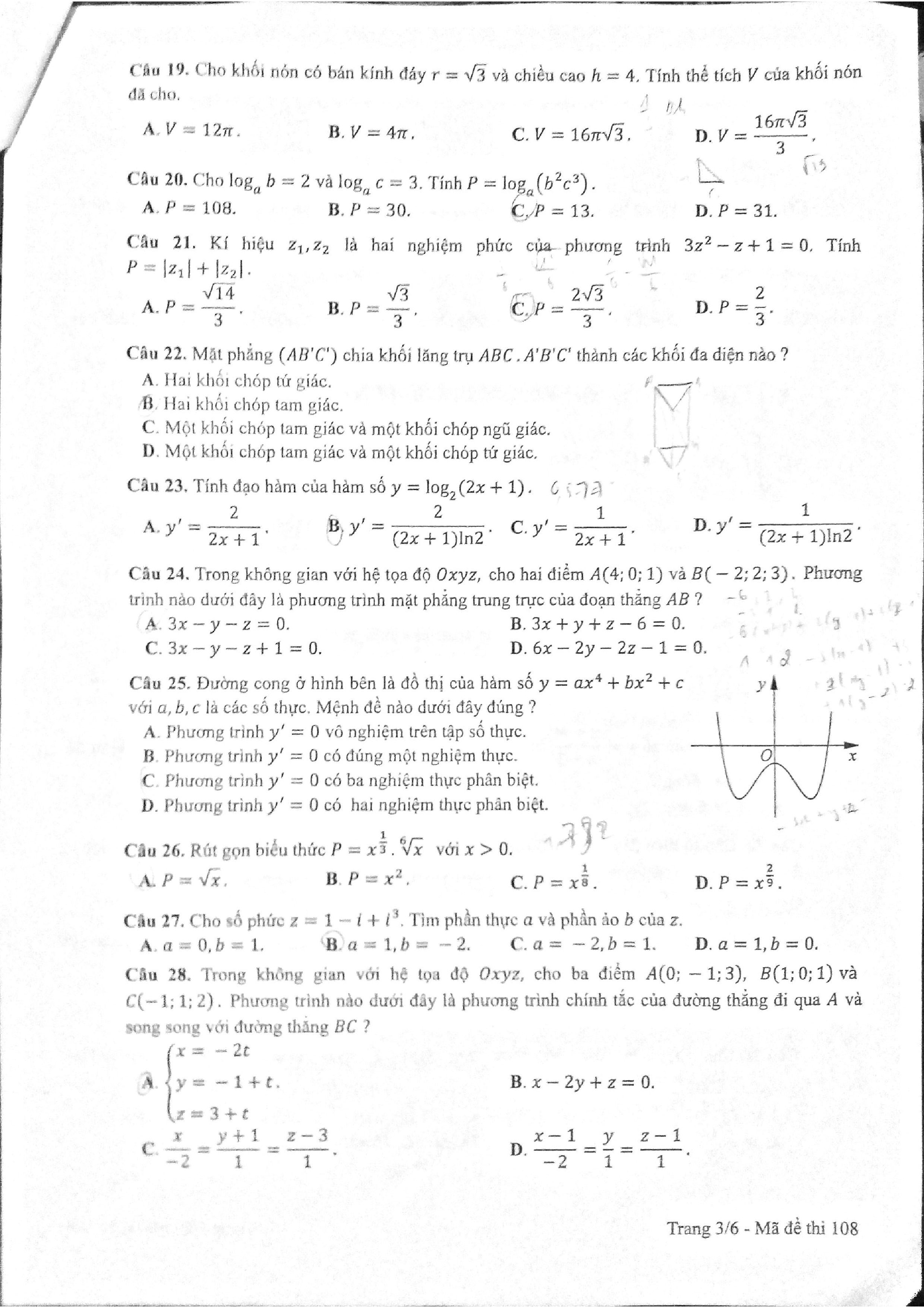Đề thi THPT quốc gia môn Toán năm 2017 - mã đề 108
